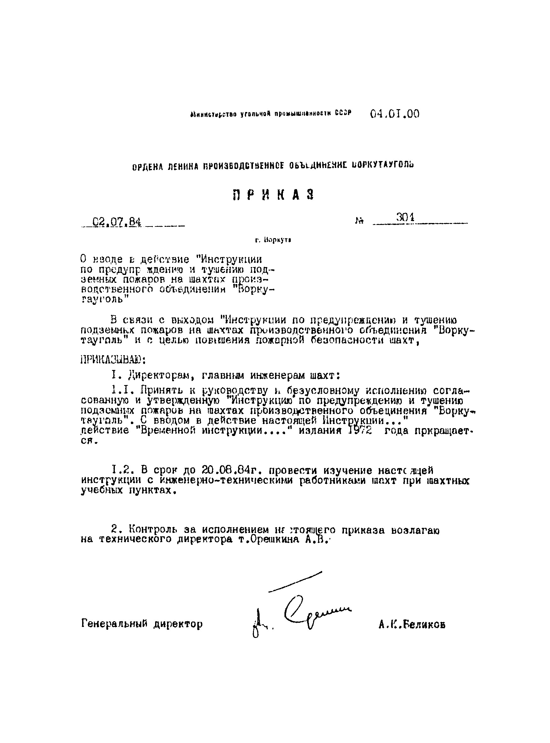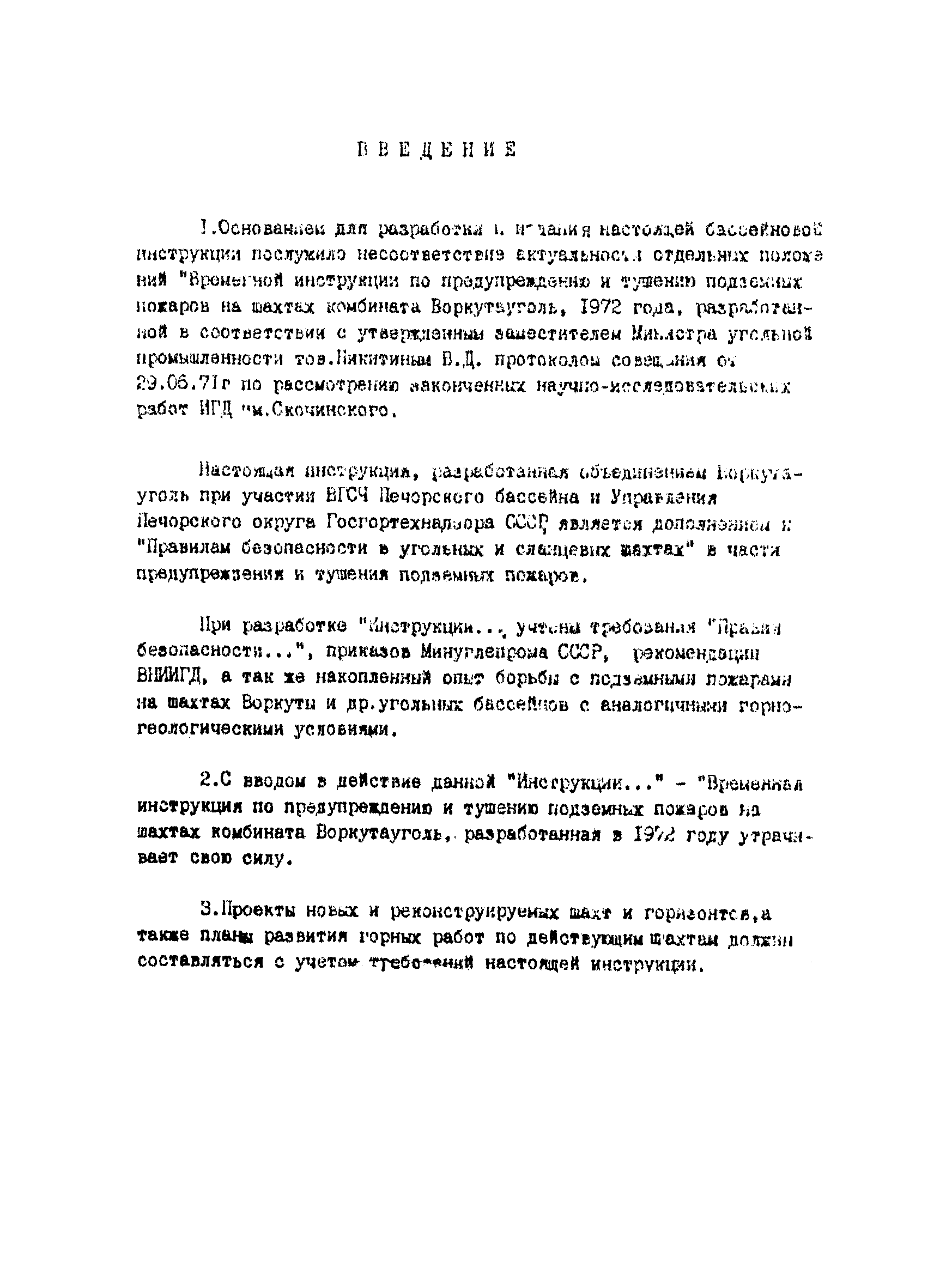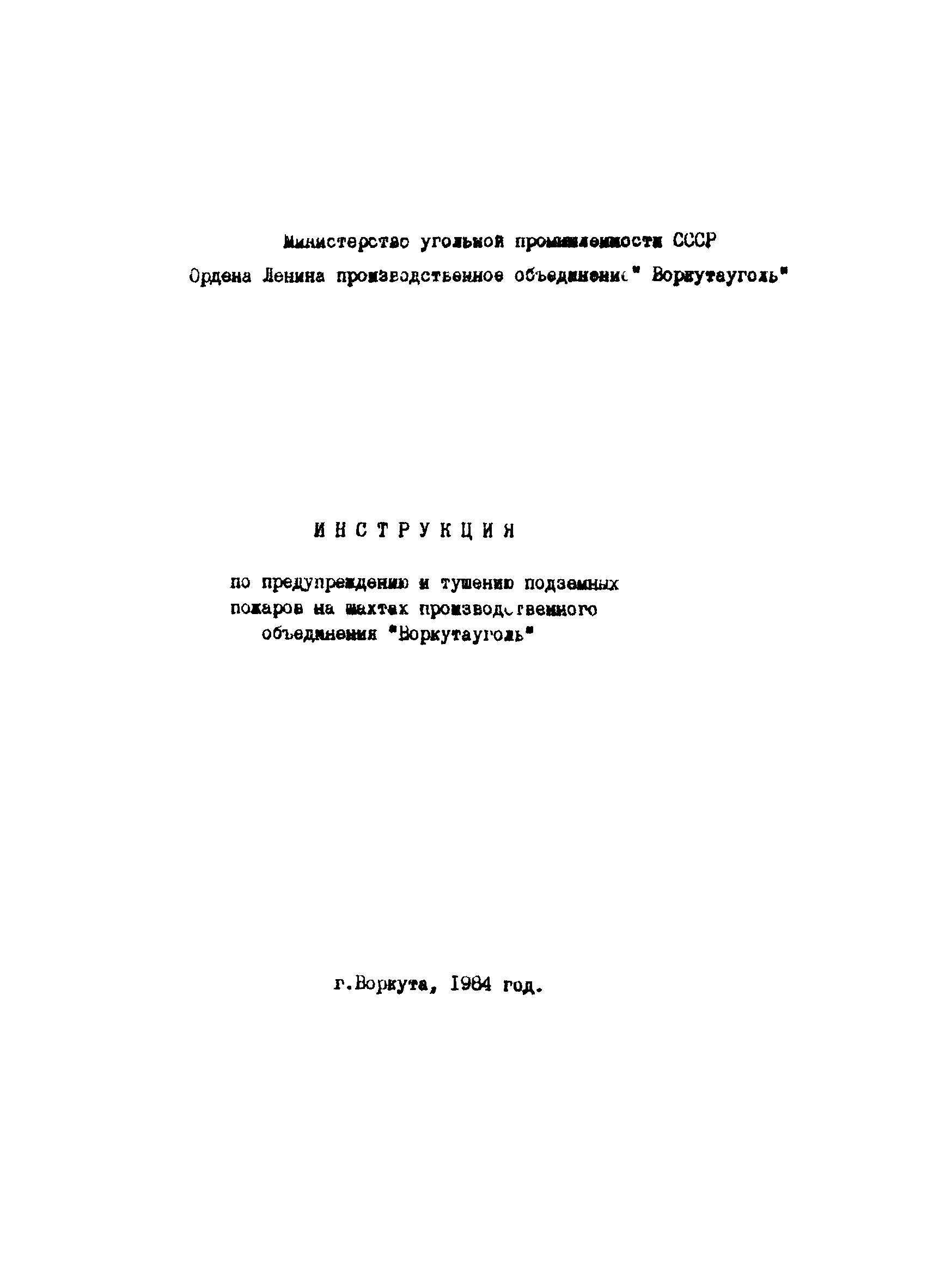 | Название рус.: | Инструкция по предупреждению и тушению подземных пожаров на шахтах производственного объединения "Воркутауголь" |