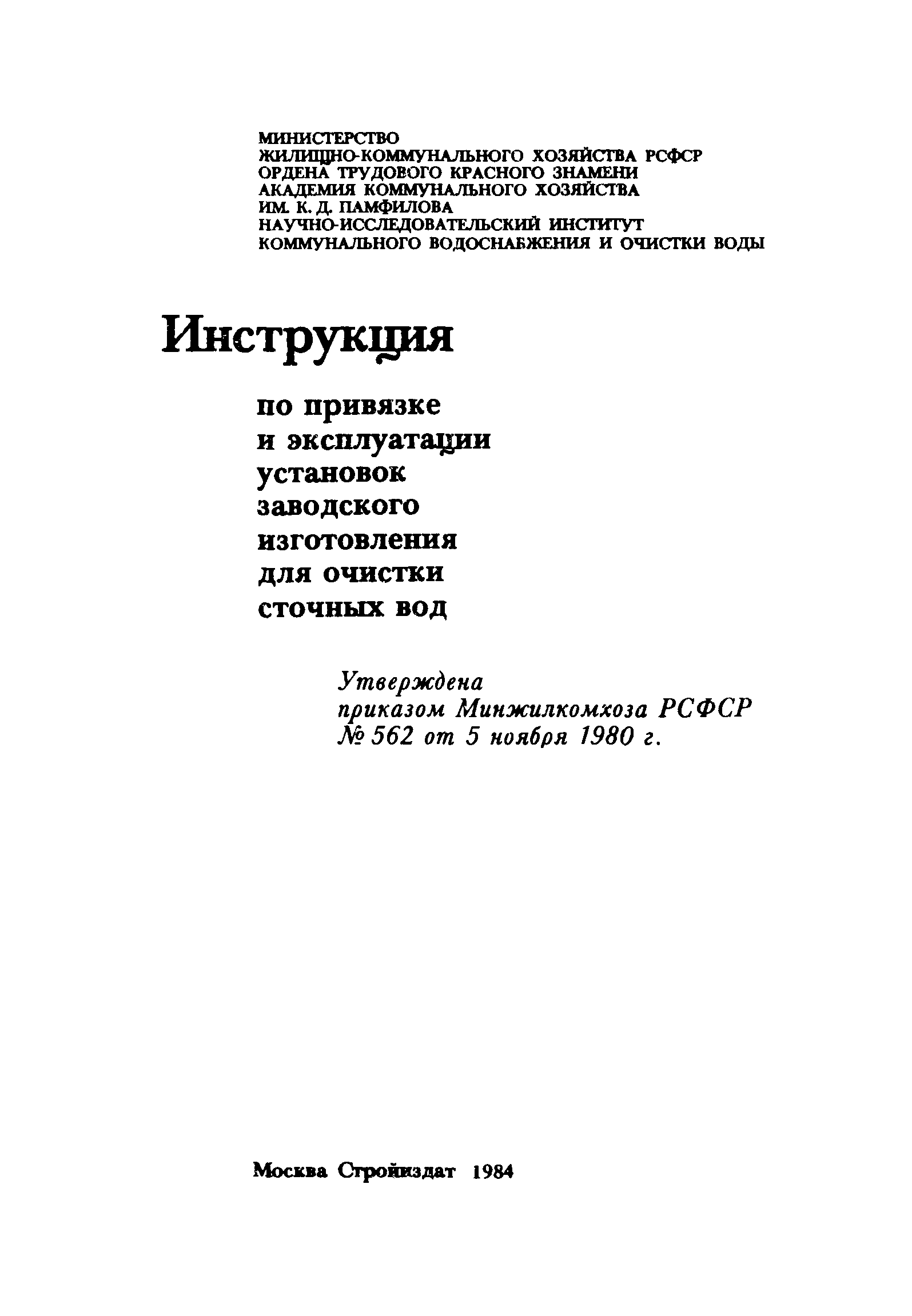 | Утверждён: | 05.11.1980 Минжилкомхоз РСФСР (Russian Federation Minzhilkomkhoz 562)