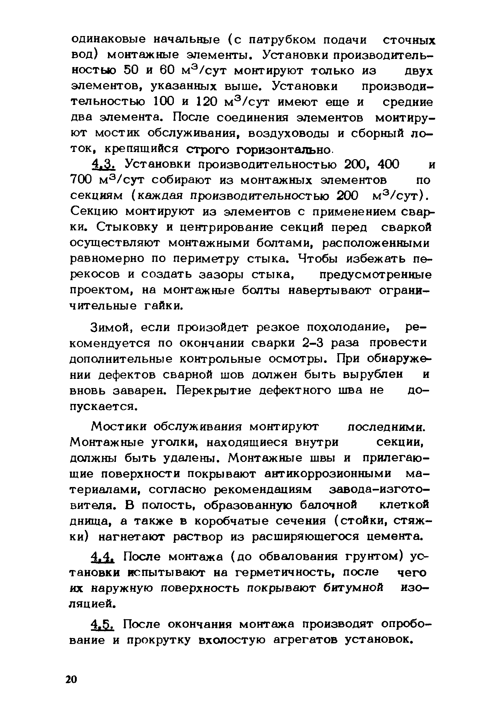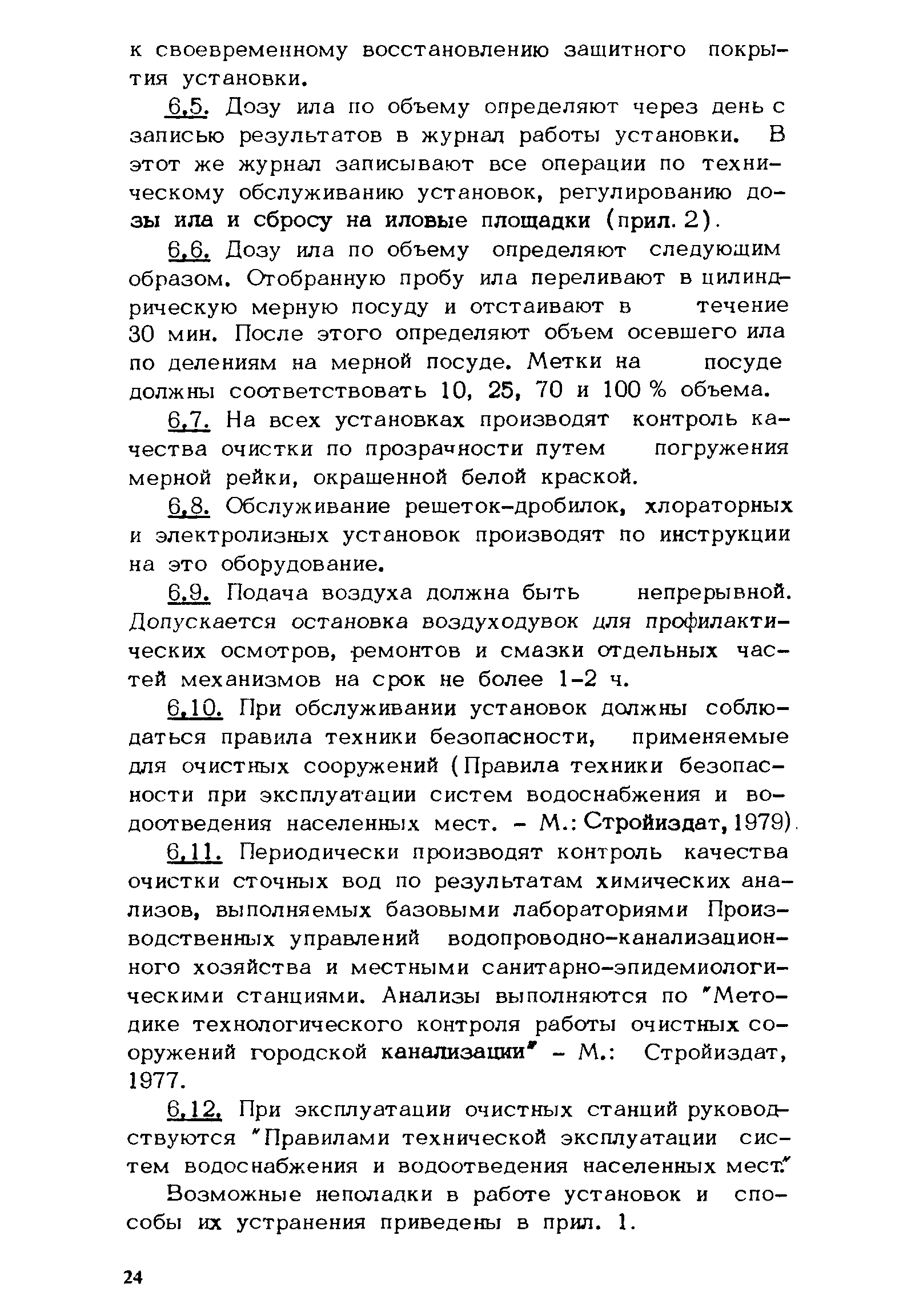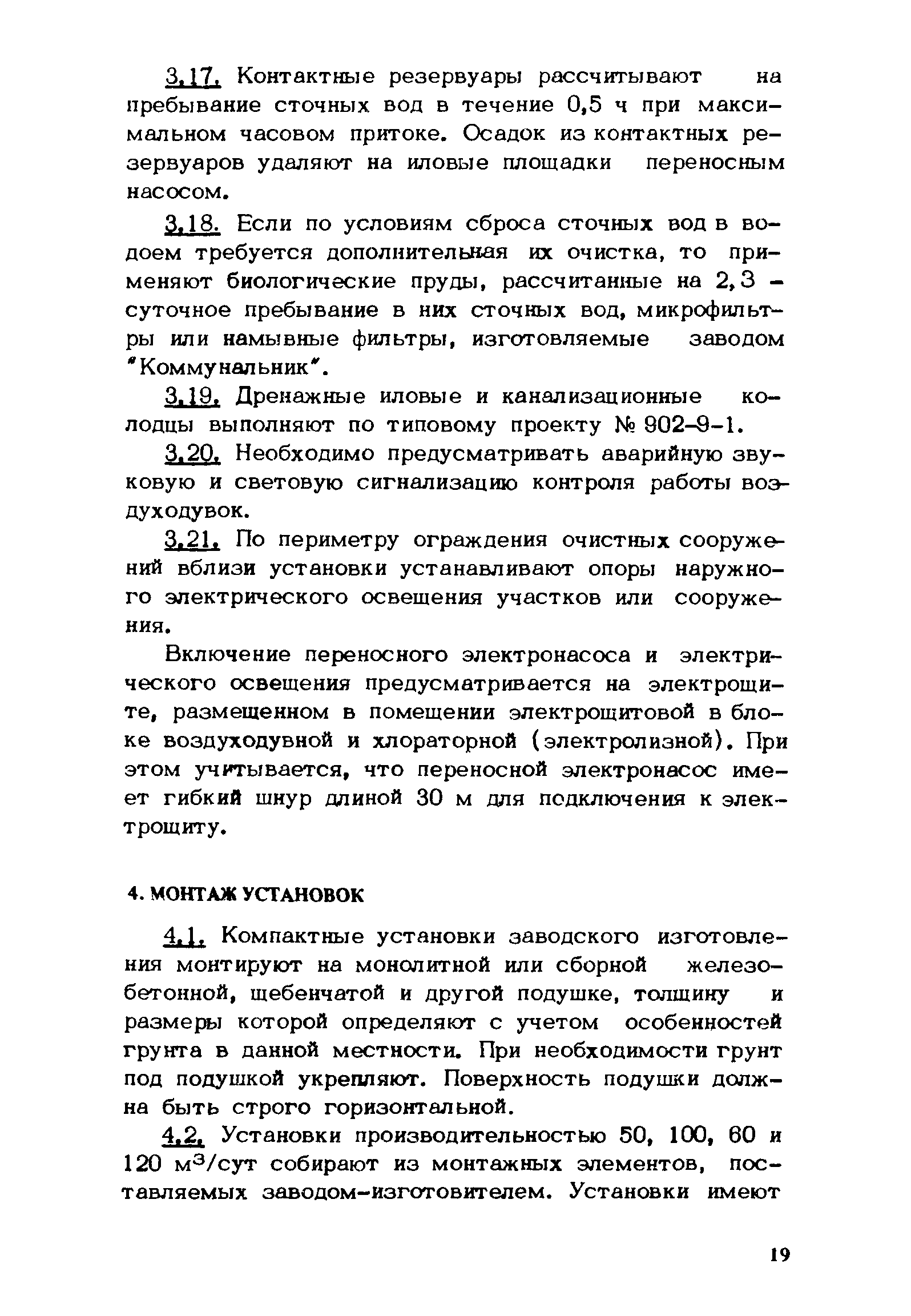 | Оглавление: | 1 Назначение и область применения 2 Технологическая схема и принцип действия 3 Привязка очистных станций с установками заводского изготовления 4 Монтаж установок 5 Пуск установок 6 Эксплуатация установок Приложение 1. Возможные неисправности в работе установок и способы их устранения Приложение 2. Состояние механизмов |