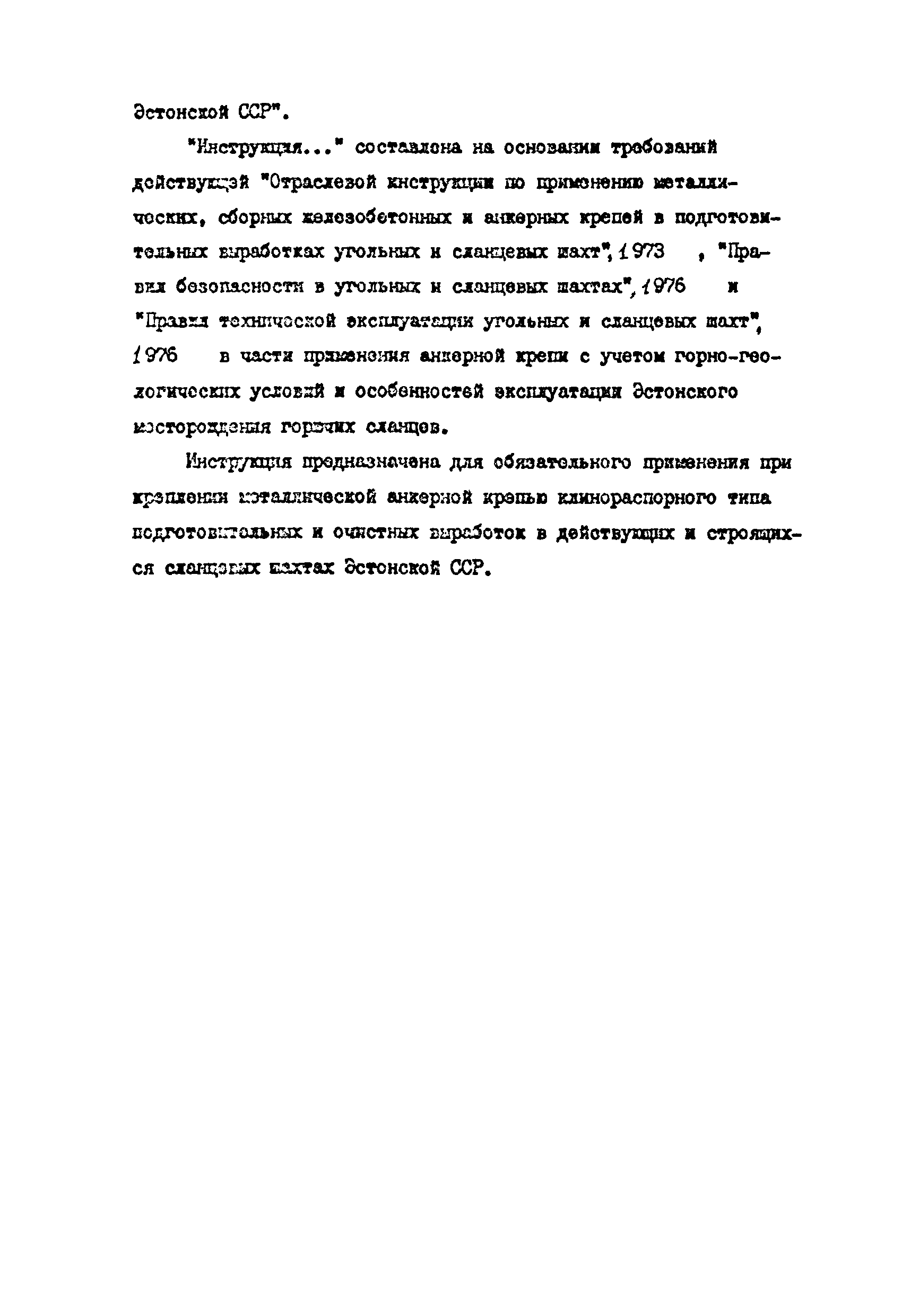 | Название рус.: | Инструкция по применению анкерной крепи на сланцевых шахтах Эстонской ССР |