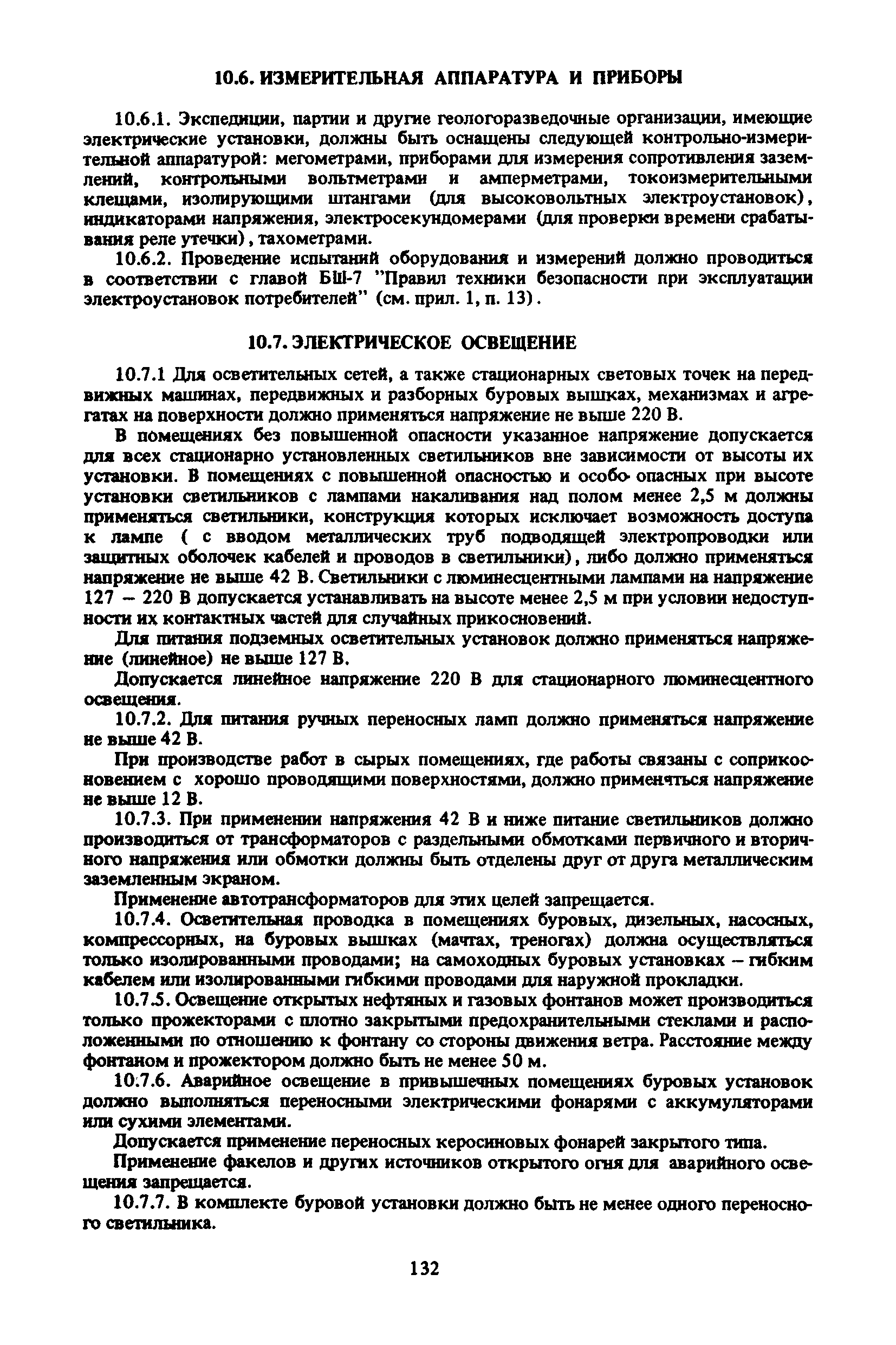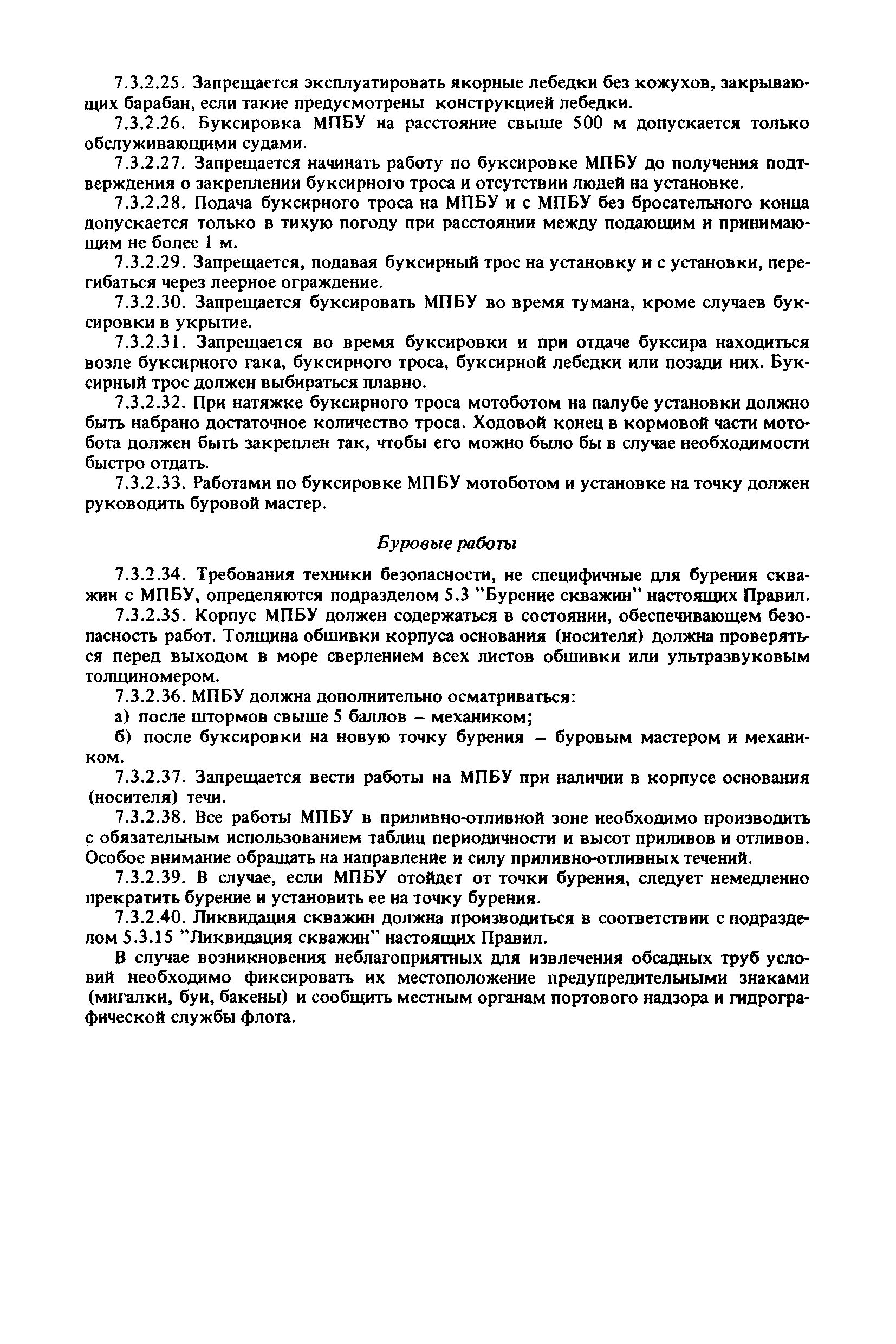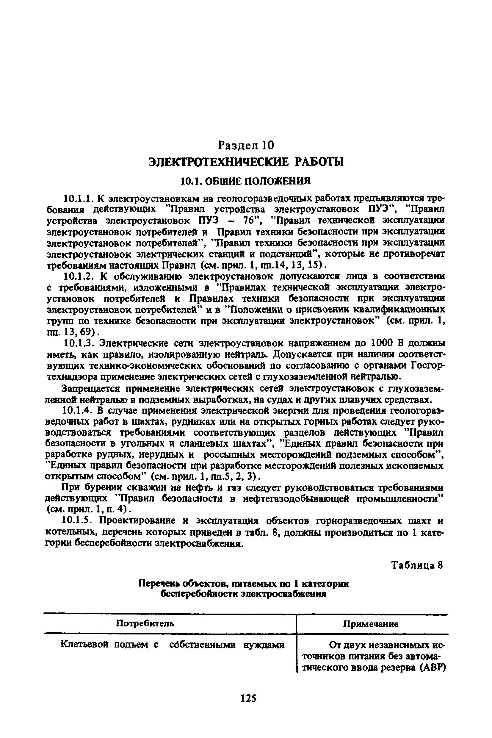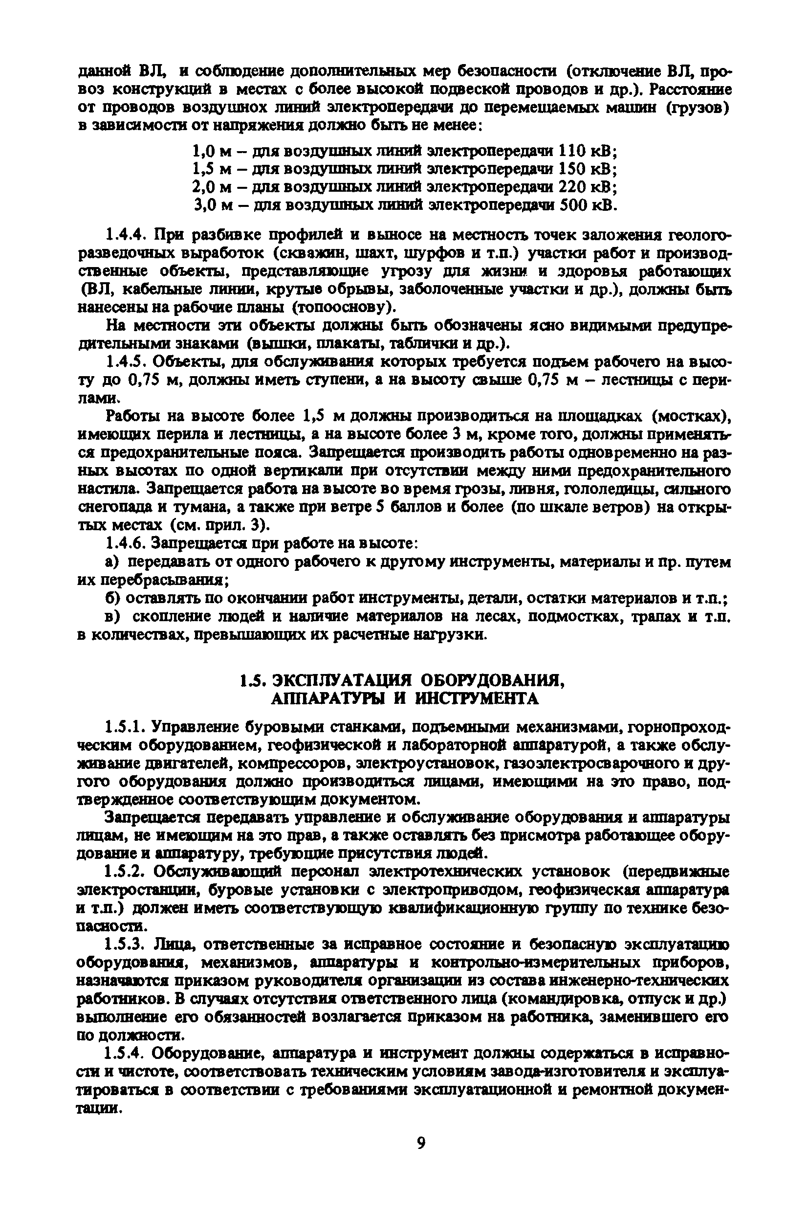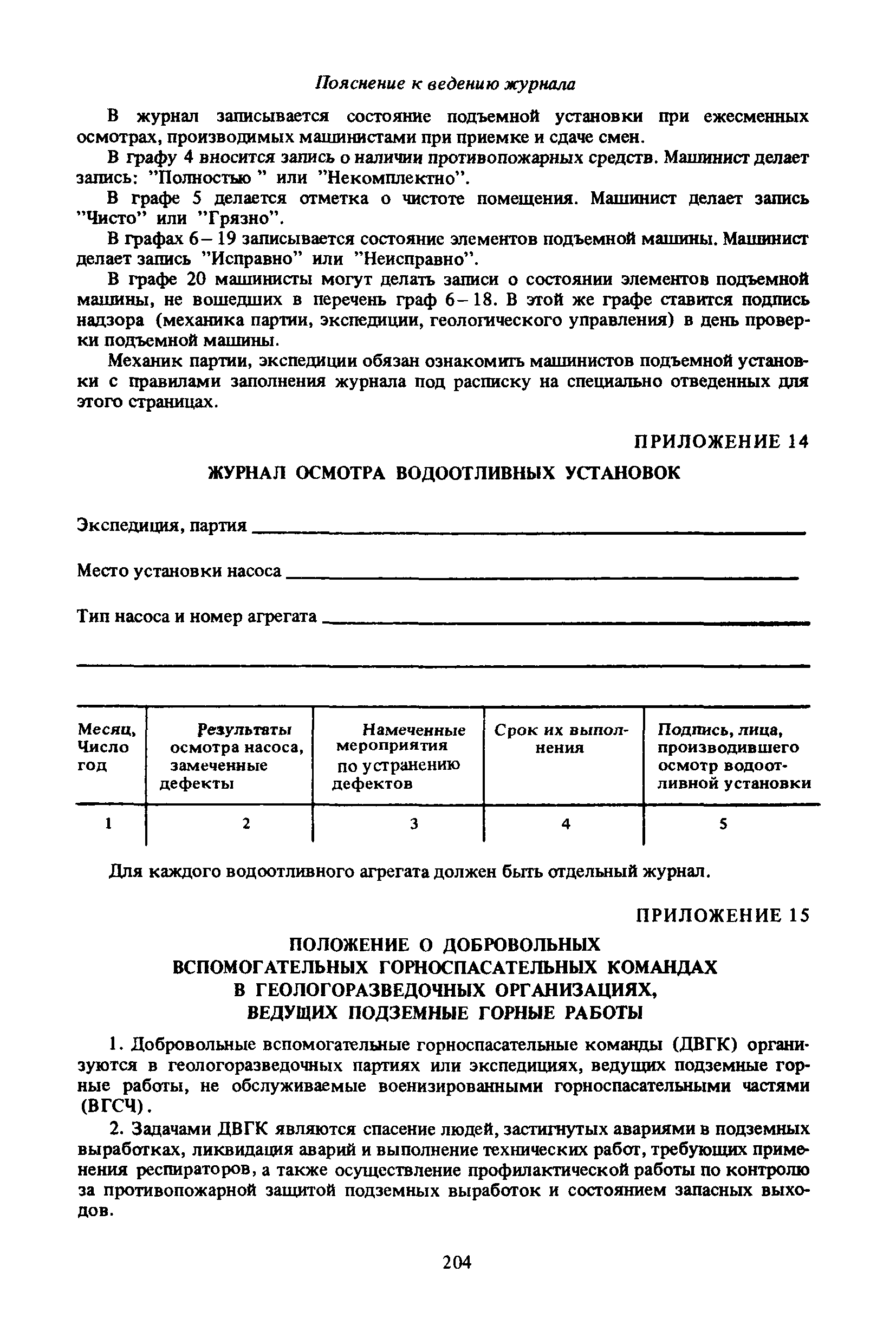 | Оглавление: | Раздел 1. Общие правила Раздел 2. Геологосъемочные и геологопоисковые работы Раздел 3. Геофизические работы Раздел 4. Гидрогеологические и инженерно-геологические работы Раздел 5. Буровые работы Раздел 6. Горноразведочные работы Раздел 7. Морские геологоразведочные работы Раздел 8. Опробовательские работы Раздел 9. Лабораторные работы Раздел 10. Электротехнические работы Раздел 11. Транспорт Раздел 12. Производственная санитария Раздел 13. Ответственность за нарушение правил безопасности Приложение 1. Перечень нормативных документов по охране труда и технике безопасности, обязательных для геологических организации Приложение 2. Журнал проверки состояния техники безопасности Приложение 3. Шкала ветров Приложение 4. Перечень средств техники безопасности и охраны труда для геологосъемочных и геологопоисковых партий и топографо-геодезических бригад Приложение 5. Типовой акт проверки готовности партии (отряда) к выезду на полевые работы Приложение 6. Журнал регистрации маршрутов (переходов) Приложение 7. Акт о приеме буровой установки в эксплуатацию Приложение 8. Акт опрессовки буровых насосов и обвязки буровой установки, смонтированной на скважине Приложение 9. Паспорта крепления и проветривания подземных горноразведочных выработок и инструкции по их составлению Приложение 10. Журнал осмотра крепи и состояния горных выработок Приложение 11. Журнал осмотра подъемной установки Приложение 12. Журнал осмотра подъемных канатов и их расхода Приложение 13. Журнал приемки и сдачи смен машинистами подъемной установки Приложение 14. Журнал осмотра водоотливных установок Приложение 15. Положение о добровольных вспомогательных горноспасательных командах в геологоразведочных организациях, ведущих подземные горные работы Приложение 16. Инструкция по составлению планов ликвидации аварий в разведочных штольнях, шахтах и шурфах с рассечками. Приложение 17. Общие технические требования к гидрометеорологическому обеспечению морских геологоразведочных работ Приложение 18. Шкала состояния моря Приложение 19. Порядок освидетельствования маломерных судов Приложение 20. Минимально допустимые нормы комплектования судовых экипажей маломерных геологоразведочных судов Приложение 21. Табель снабжения маломерных судов Приложение 22. Табель оснащения маломерных плавучих буровых установок (МПБУ) Приложение 23. Выбор массы якорей для маломерных плавучих буровых установок (МГХБУ) Приложение 24. Положение о порядке составления планов предупреждения и ликвидации аварий на маломерных плавучих буровых установках (МПБУ) Приложение 25. Типовая схема окраски маломерных плавучих буровых установок Приложение 26. Журнал осмотра и измерения заземления Приложение 27. Журнал осмотра электрооборудования Приложение 28. Акт проверки готовности скважины к геофизическим работам |