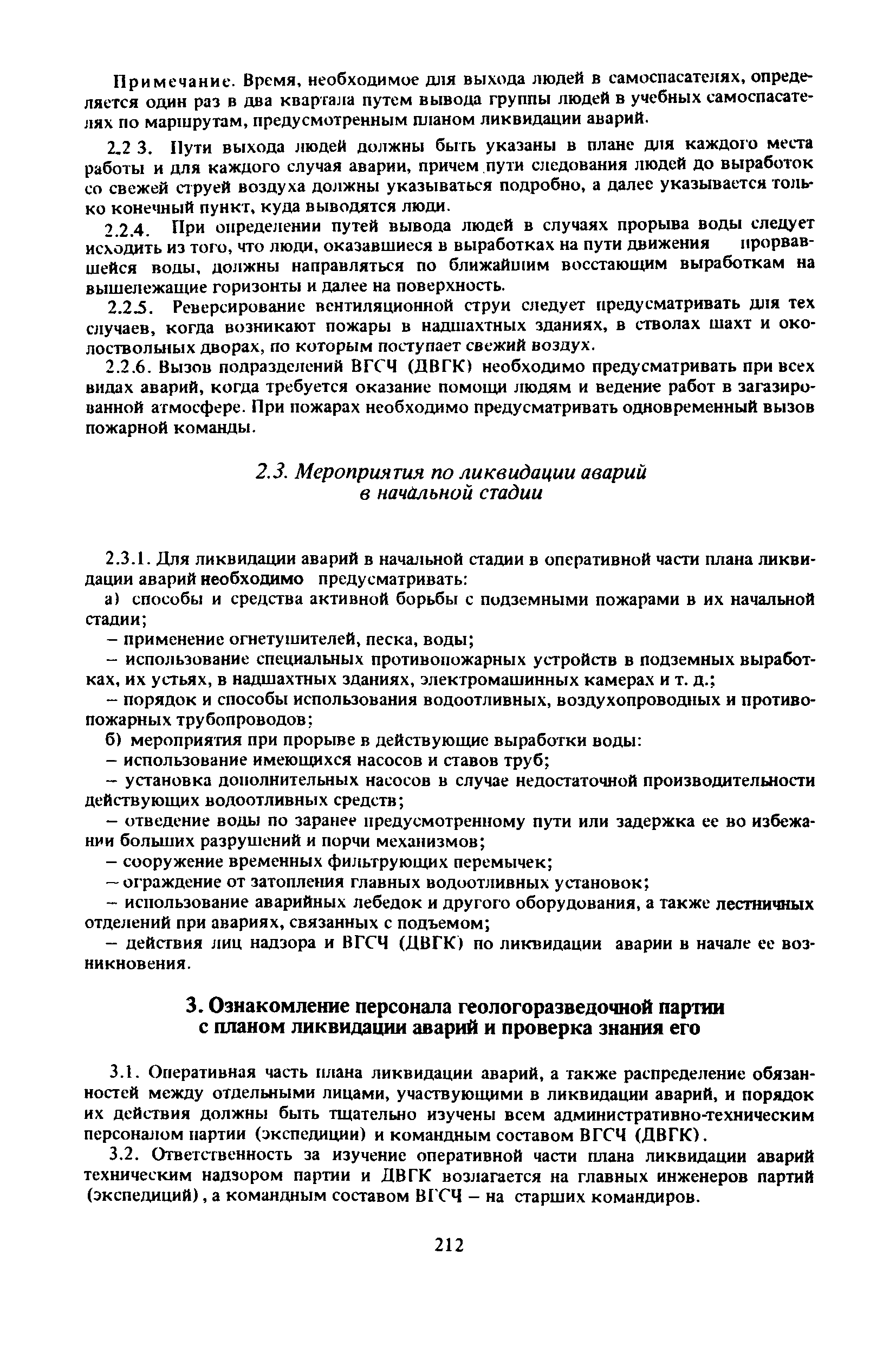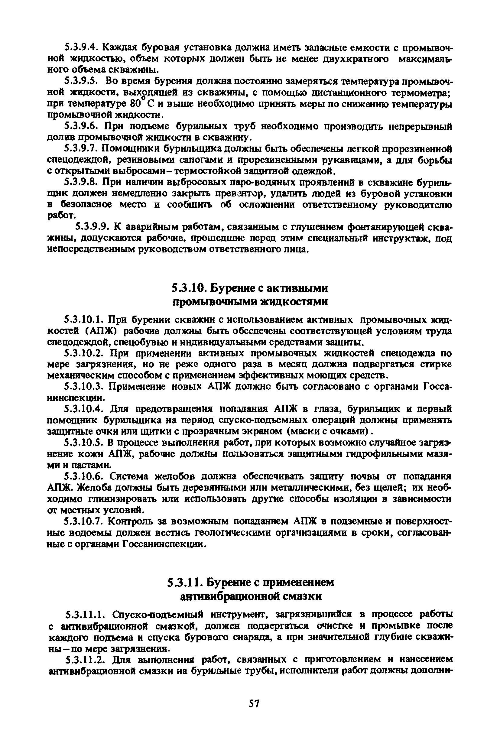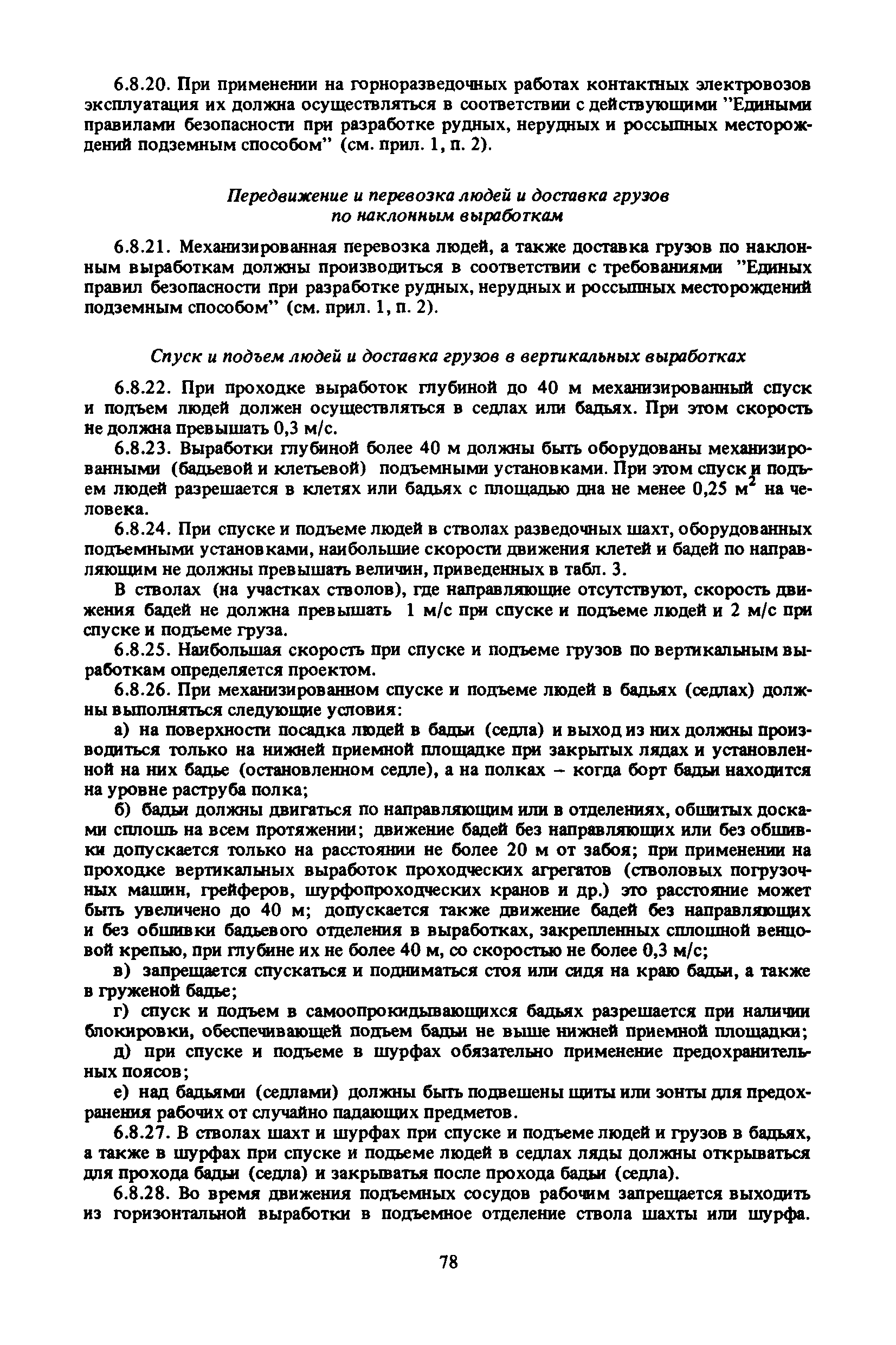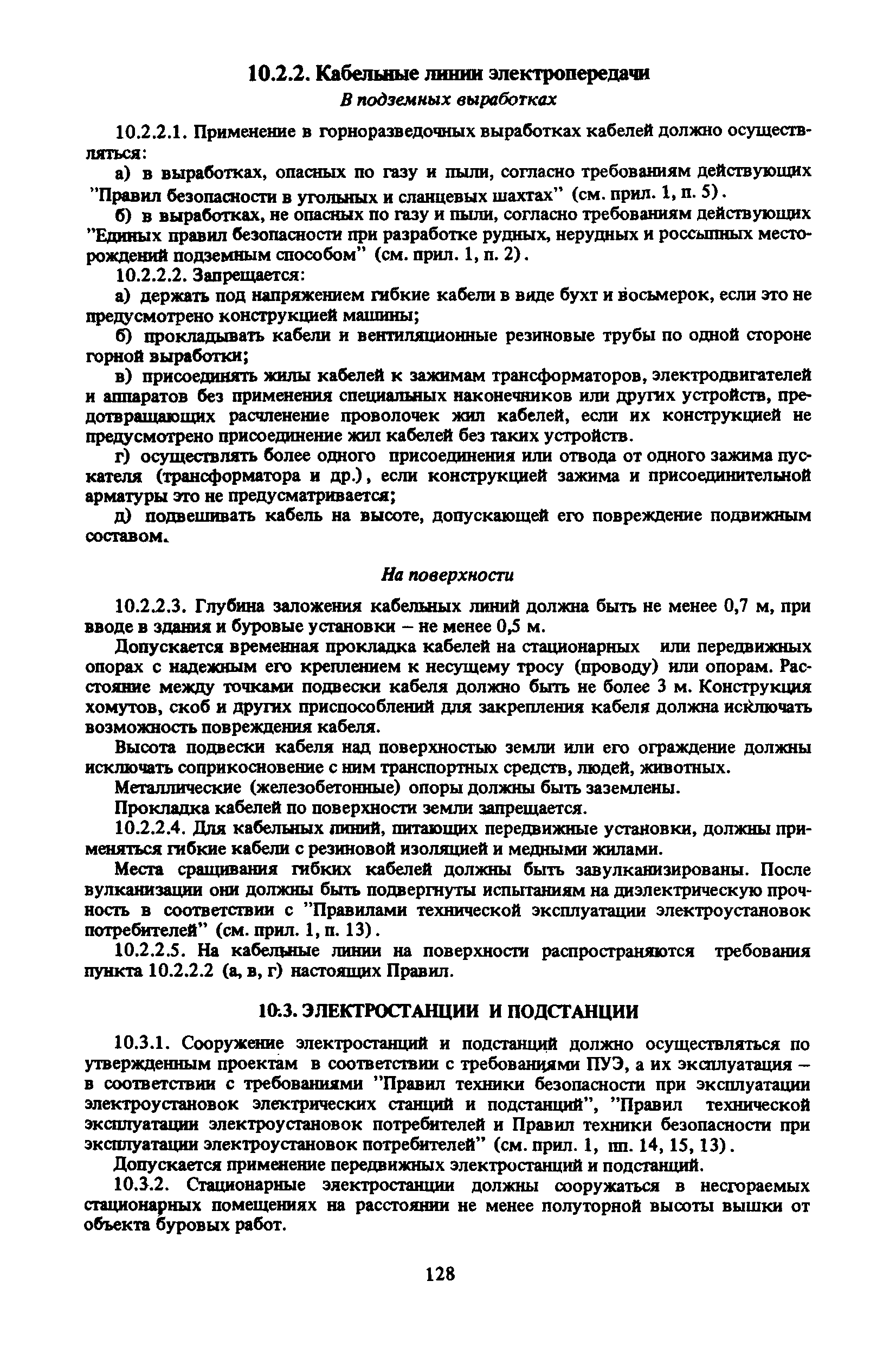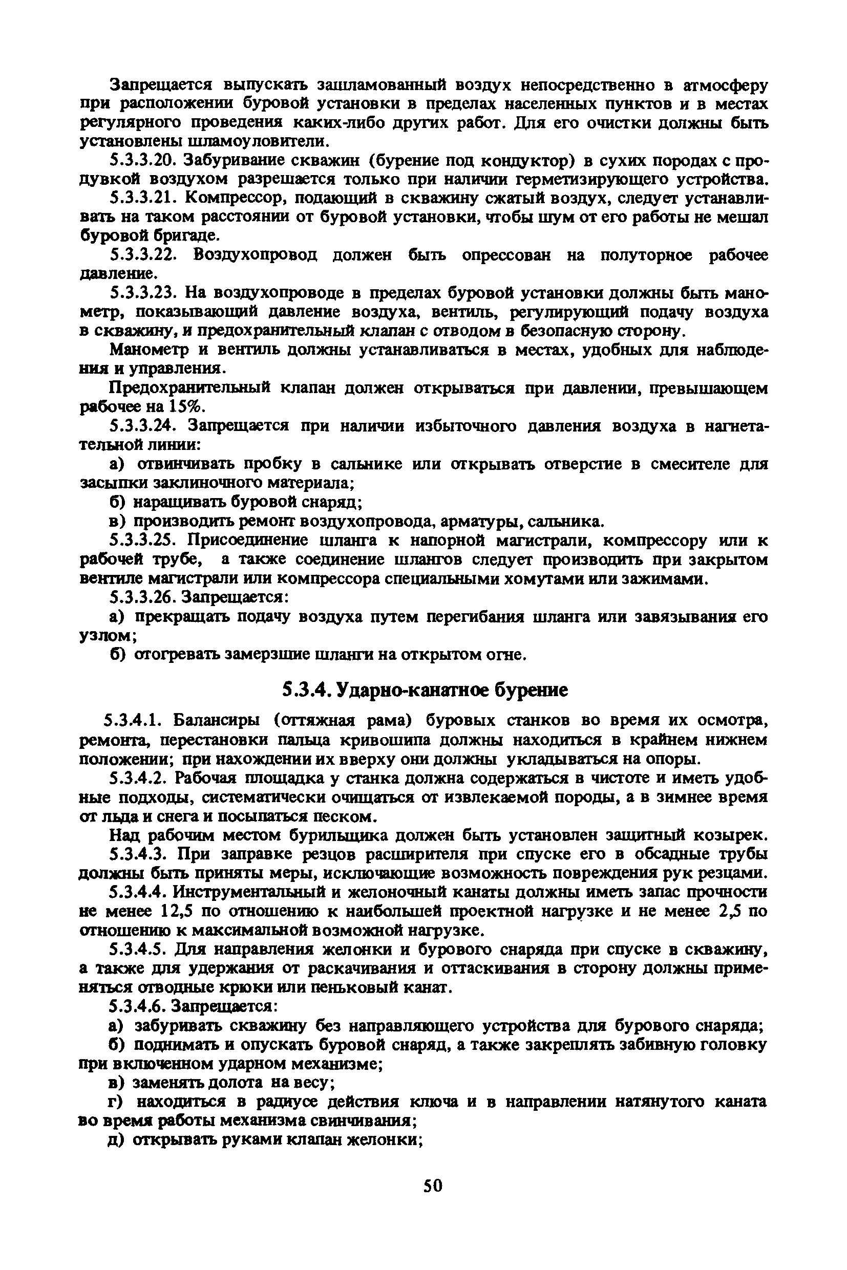 | Оглавление: | Раздел 1. Общие правила Раздел 2. Геологосъемочные и геологопоисковые работы Раздел 3. Геофизические работы Раздел 4. Гидрогеологические и инженерно-геологические работы Раздел 5. Буровые работы Раздел 6. Горноразведочные работы Раздел 7. Морские геологоразведочные работы Раздел 8. Опробовательские работы Раздел 9. Лабораторные работы Раздел 10. Электротехнические работы Раздел 11. Транспорт Раздел 12. Производственная санитария Раздел 13. Ответственность за нарушение правил безопасности Приложение 1. Перечень нормативных документов по охране труда и технике безопасности, обязательных для геологических организации Приложение 2. Журнал проверки состояния техники безопасности Приложение 3. Шкала ветров Приложение 4. Перечень средств техники безопасности и охраны труда для геологосъемочных и геологопоисковых партий и топографо-геодезических бригад Приложение 5. Типовой акт проверки готовности партии (отряда) к выезду на полевые работы Приложение 6. Журнал регистрации маршрутов (переходов) Приложение 7. Акт о приеме буровой установки в эксплуатацию Приложение 8. Акт опрессовки буровых насосов и обвязки буровой установки, смонтированной на скважине Приложение 9. Паспорта крепления и проветривания подземных горноразведочных выработок и инструкции по их составлению Приложение 10. Журнал осмотра крепи и состояния горных выработок Приложение 11. Журнал осмотра подъемной установки Приложение 12. Журнал осмотра подъемных канатов и их расхода Приложение 13. Журнал приемки и сдачи смен машинистами подъемной установки Приложение 14. Журнал осмотра водоотливных установок Приложение 15. Положение о добровольных вспомогательных горноспасательных командах в геологоразведочных организациях, ведущих подземные горные работы Приложение 16. Инструкция по составлению планов ликвидации аварий в разведочных штольнях, шахтах и шурфах с рассечками. Приложение 17. Общие технические требования к гидрометеорологическому обеспечению морских геологоразведочных работ Приложение 18. Шкала состояния моря Приложение 19. Порядок освидетельствования маломерных судов Приложение 20. Минимально допустимые нормы комплектования судовых экипажей маломерных геологоразведочных судов Приложение 21. Табель снабжения маломерных судов Приложение 22. Табель оснащения маломерных плавучих буровых установок (МПБУ) Приложение 23. Выбор массы якорей для маломерных плавучих буровых установок (МГХБУ) Приложение 24. Положение о порядке составления планов предупреждения и ликвидации аварий на маломерных плавучих буровых установках (МПБУ) Приложение 25. Типовая схема окраски маломерных плавучих буровых установок Приложение 26. Журнал осмотра и измерения заземления Приложение 27. Журнал осмотра электрооборудования Приложение 28. Акт проверки готовности скважины к геофизическим работам |