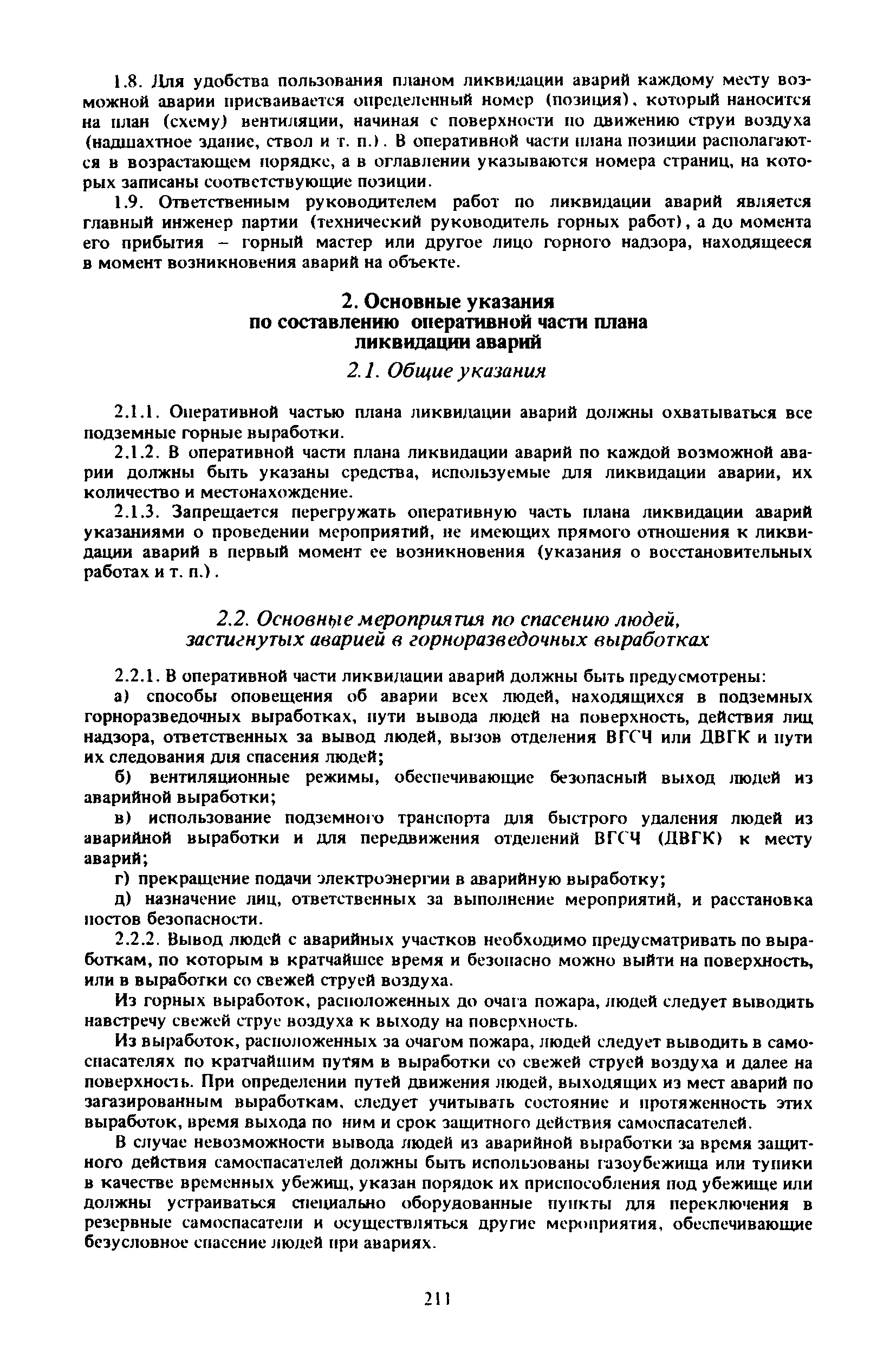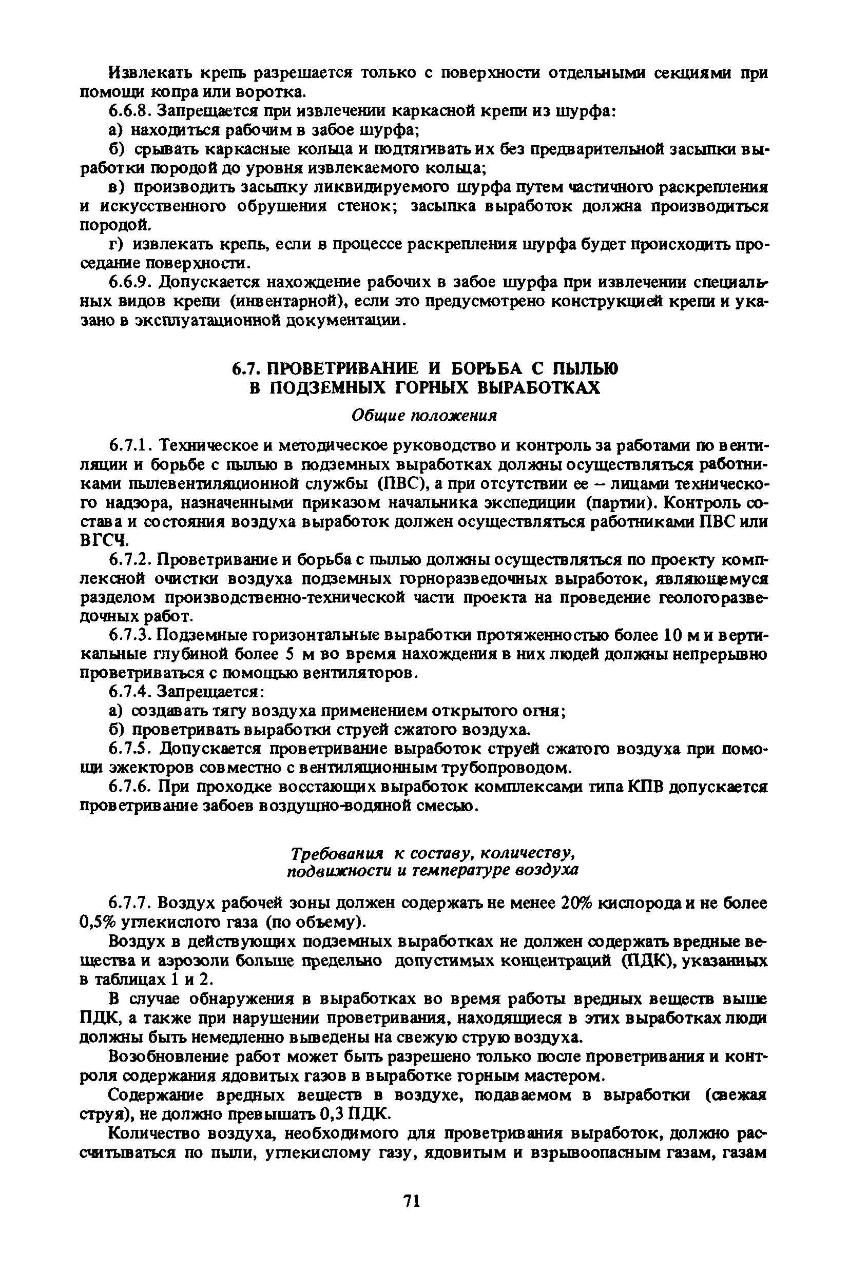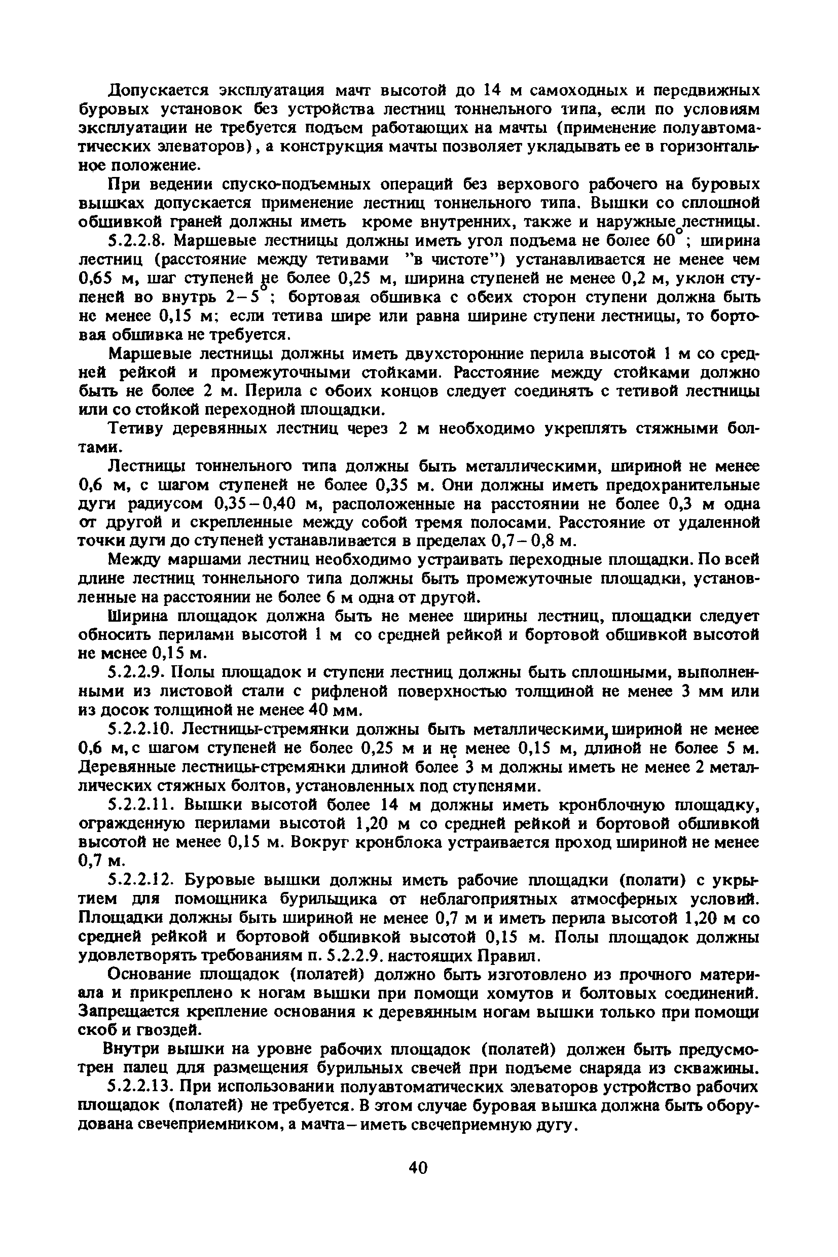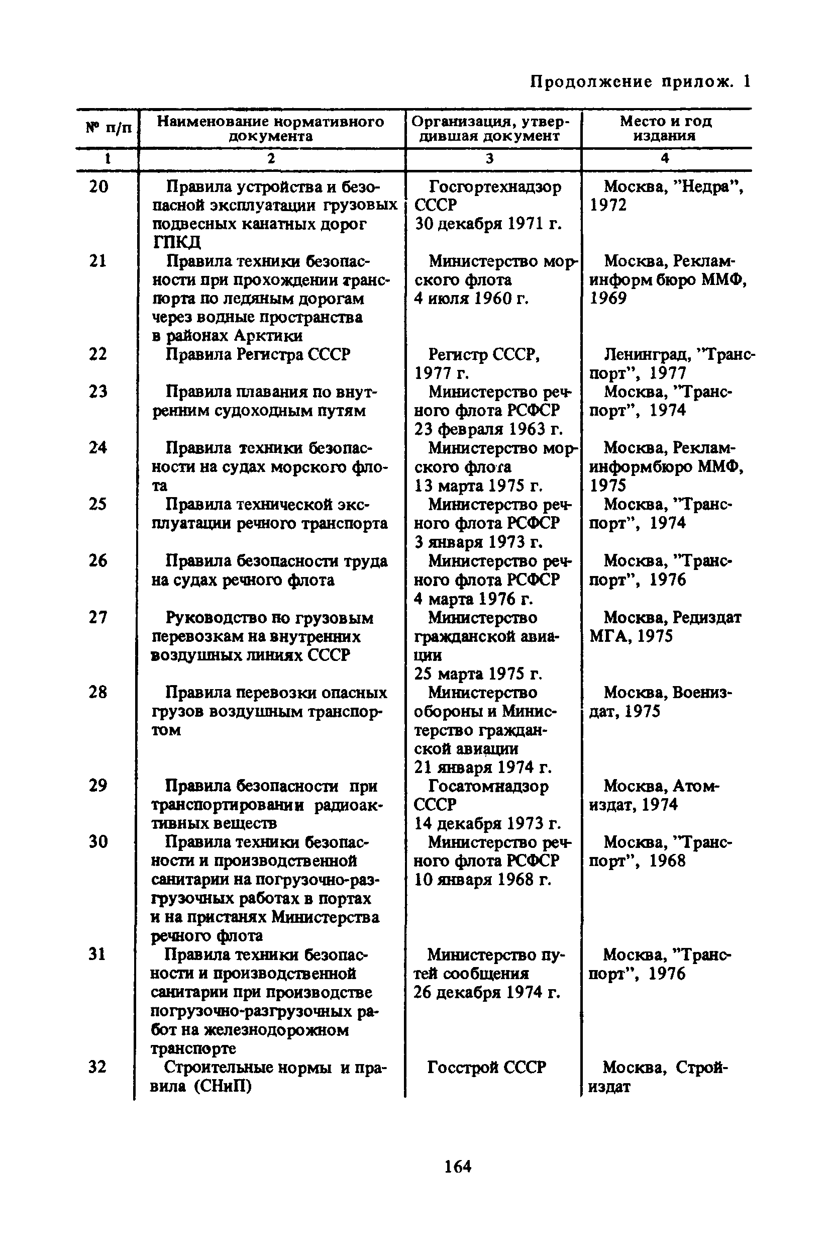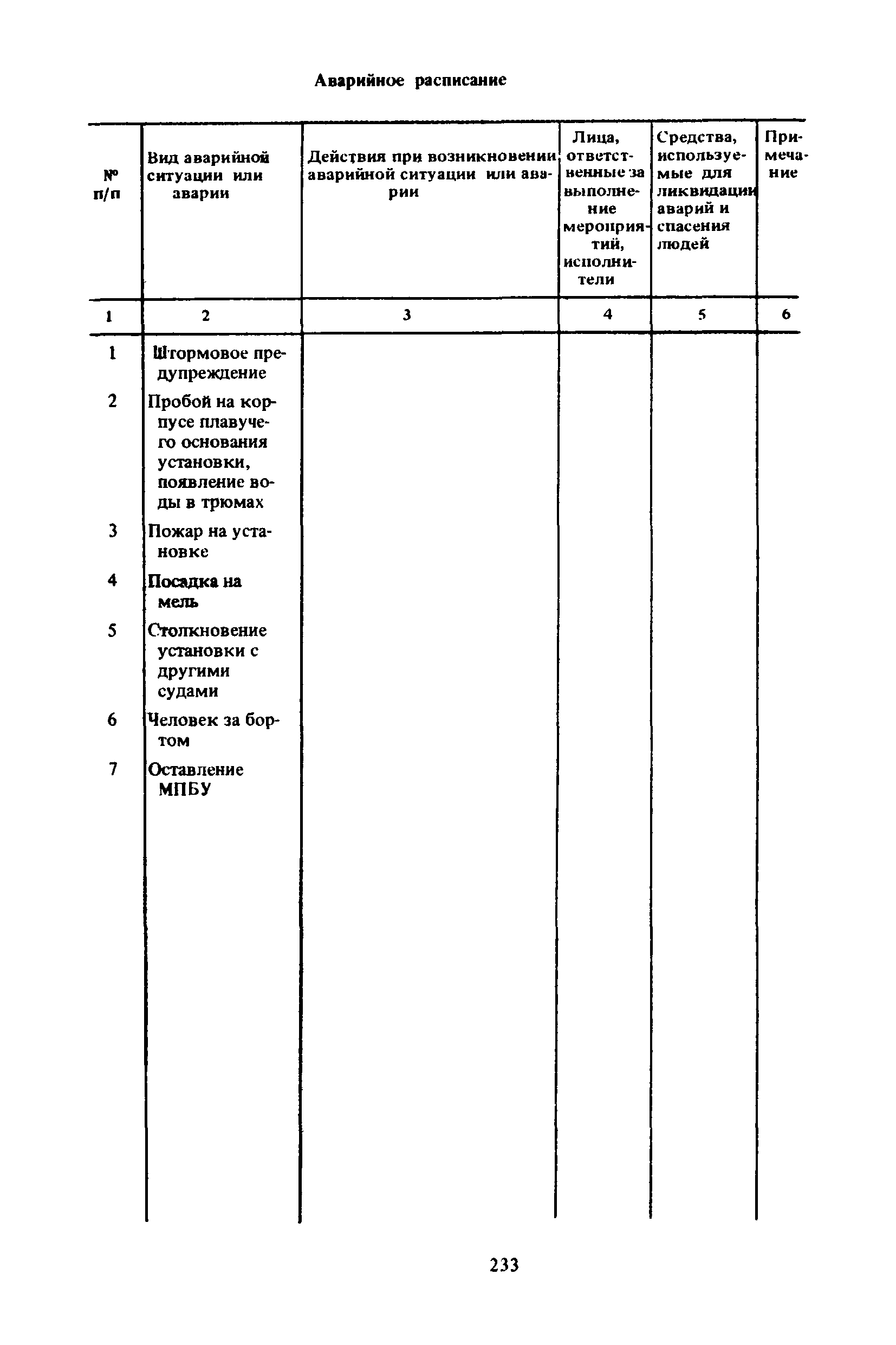 | Оглавление: | Раздел 1. Общие правила Раздел 2. Геологосъемочные и геологопоисковые работы Раздел 3. Геофизические работы Раздел 4. Гидрогеологические и инженерно-геологические работы Раздел 5. Буровые работы Раздел 6. Горноразведочные работы Раздел 7. Морские геологоразведочные работы Раздел 8. Опробовательские работы Раздел 9. Лабораторные работы Раздел 10. Электротехнические работы Раздел 11. Транспорт Раздел 12. Производственная санитария Раздел 13. Ответственность за нарушение правил безопасности Приложение 1. Перечень нормативных документов по охране труда и технике безопасности, обязательных для геологических организации Приложение 2. Журнал проверки состояния техники безопасности Приложение 3. Шкала ветров Приложение 4. Перечень средств техники безопасности и охраны труда для геологосъемочных и геологопоисковых партий и топографо-геодезических бригад Приложение 5. Типовой акт проверки готовности партии (отряда) к выезду на полевые работы Приложение 6. Журнал регистрации маршрутов (переходов) Приложение 7. Акт о приеме буровой установки в эксплуатацию Приложение 8. Акт опрессовки буровых насосов и обвязки буровой установки, смонтированной на скважине Приложение 9. Паспорта крепления и проветривания подземных горноразведочных выработок и инструкции по их составлению Приложение 10. Журнал осмотра крепи и состояния горных выработок Приложение 11. Журнал осмотра подъемной установки Приложение 12. Журнал осмотра подъемных канатов и их расхода Приложение 13. Журнал приемки и сдачи смен машинистами подъемной установки Приложение 14. Журнал осмотра водоотливных установок Приложение 15. Положение о добровольных вспомогательных горноспасательных командах в геологоразведочных организациях, ведущих подземные горные работы Приложение 16. Инструкция по составлению планов ликвидации аварий в разведочных штольнях, шахтах и шурфах с рассечками. Приложение 17. Общие технические требования к гидрометеорологическому обеспечению морских геологоразведочных работ Приложение 18. Шкала состояния моря Приложение 19. Порядок освидетельствования маломерных судов Приложение 20. Минимально допустимые нормы комплектования судовых экипажей маломерных геологоразведочных судов Приложение 21. Табель снабжения маломерных судов Приложение 22. Табель оснащения маломерных плавучих буровых установок (МПБУ) Приложение 23. Выбор массы якорей для маломерных плавучих буровых установок (МГХБУ) Приложение 24. Положение о порядке составления планов предупреждения и ликвидации аварий на маломерных плавучих буровых установках (МПБУ) Приложение 25. Типовая схема окраски маломерных плавучих буровых установок Приложение 26. Журнал осмотра и измерения заземления Приложение 27. Журнал осмотра электрооборудования Приложение 28. Акт проверки готовности скважины к геофизическим работам |