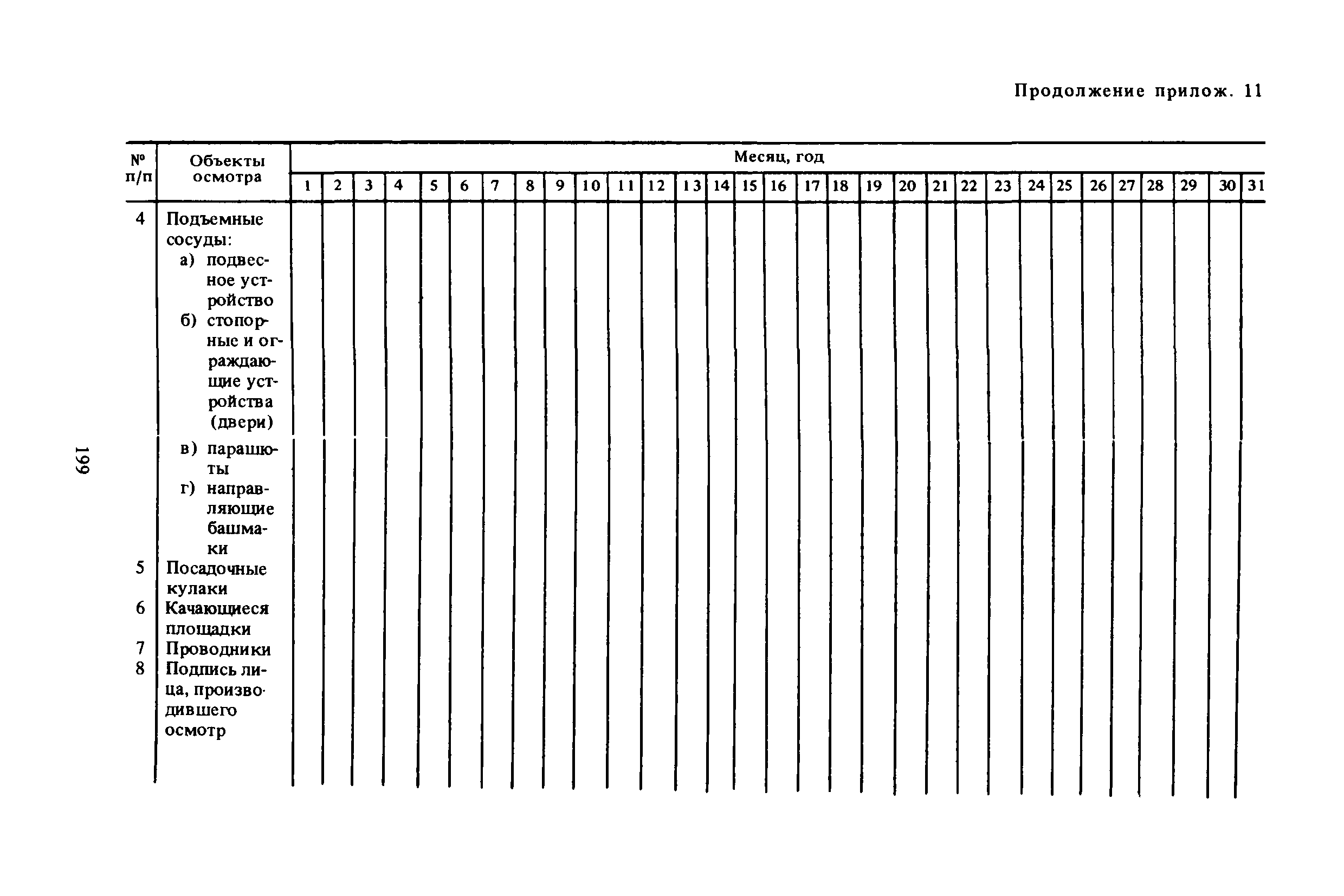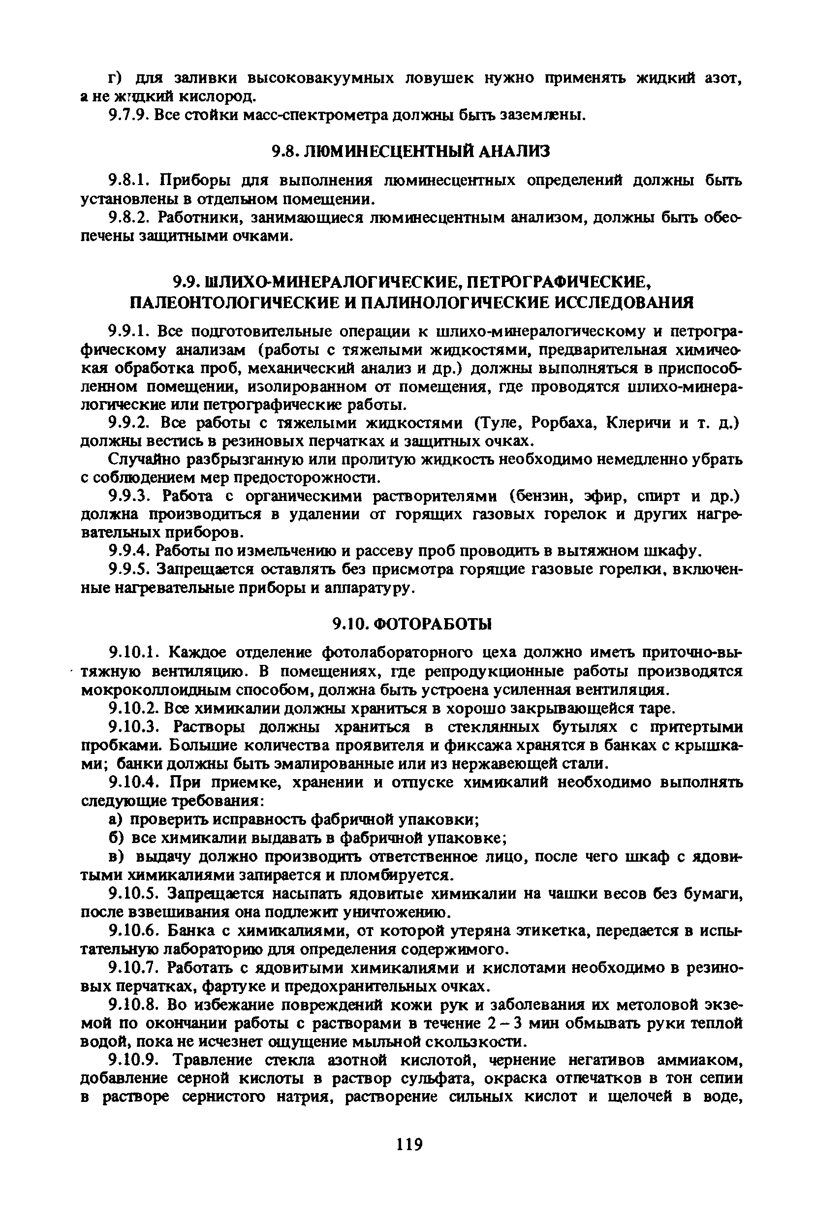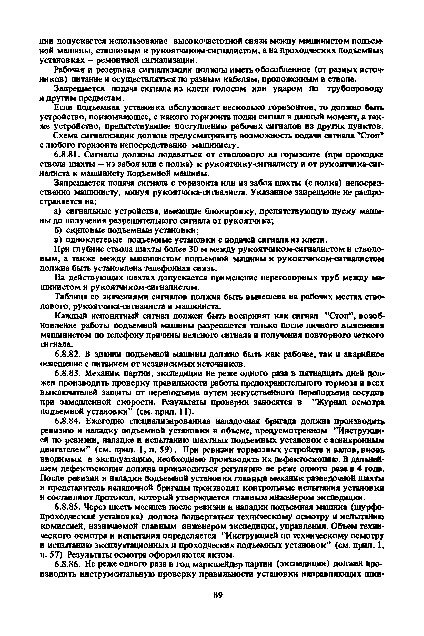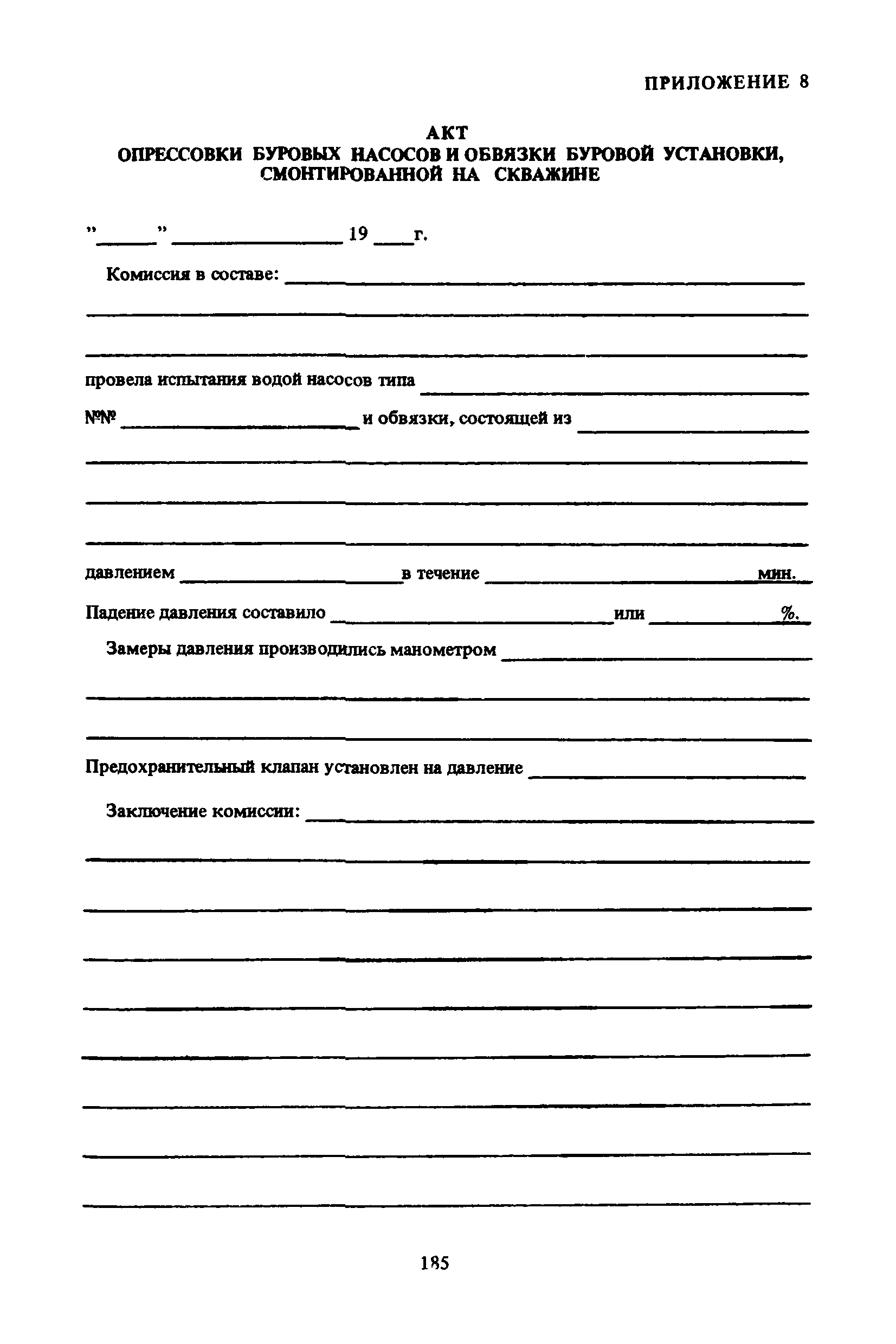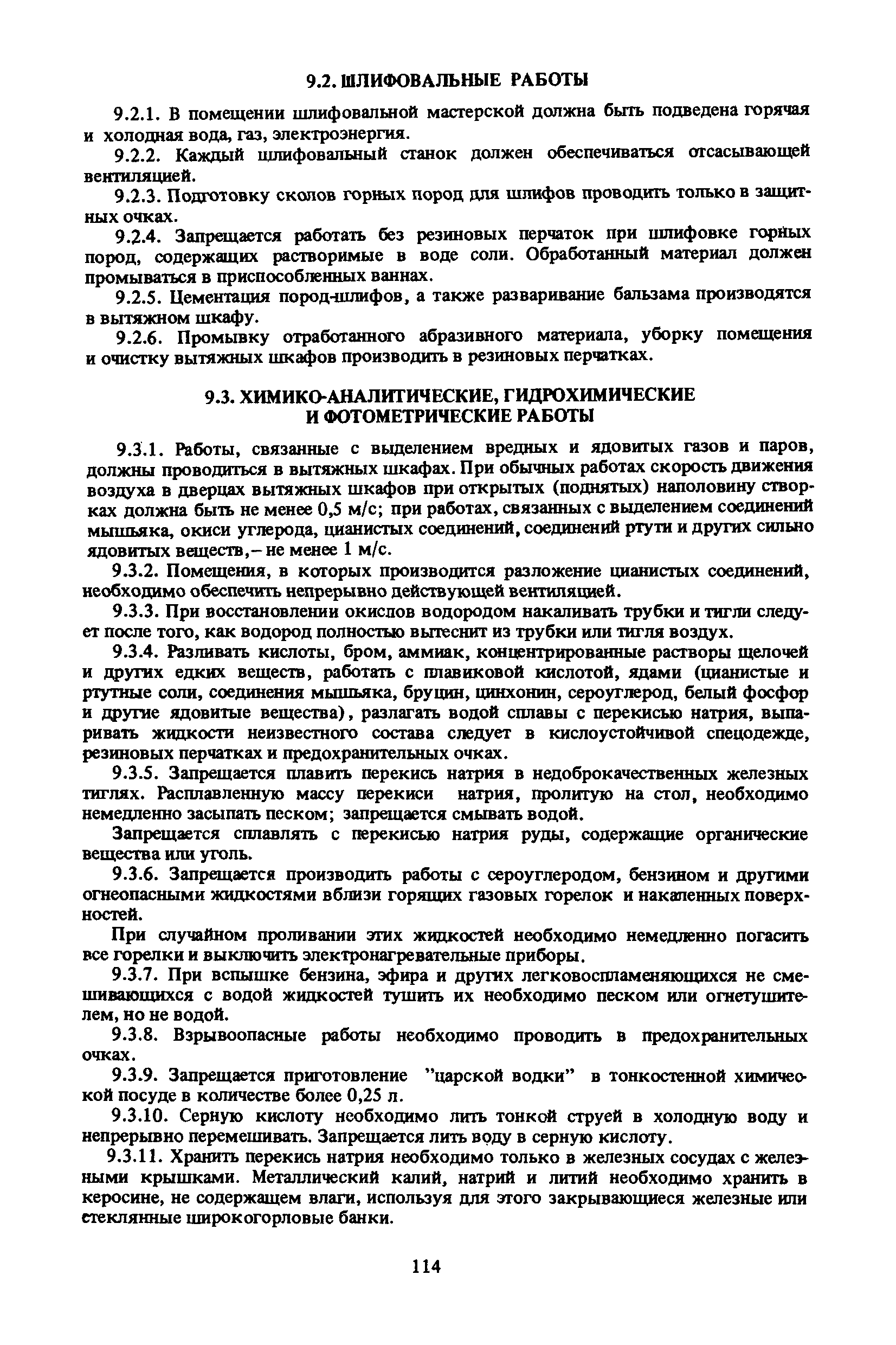 | Оглавление: | Раздел 1. Общие правила Раздел 2. Геологосъемочные и геологопоисковые работы Раздел 3. Геофизические работы Раздел 4. Гидрогеологические и инженерно-геологические работы Раздел 5. Буровые работы Раздел 6. Горноразведочные работы Раздел 7. Морские геологоразведочные работы Раздел 8. Опробовательские работы Раздел 9. Лабораторные работы Раздел 10. Электротехнические работы Раздел 11. Транспорт Раздел 12. Производственная санитария Раздел 13. Ответственность за нарушение правил безопасности Приложение 1. Перечень нормативных документов по охране труда и технике безопасности, обязательных для геологических организации Приложение 2. Журнал проверки состояния техники безопасности Приложение 3. Шкала ветров Приложение 4. Перечень средств техники безопасности и охраны труда для геологосъемочных и геологопоисковых партий и топографо-геодезических бригад Приложение 5. Типовой акт проверки готовности партии (отряда) к выезду на полевые работы Приложение 6. Журнал регистрации маршрутов (переходов) Приложение 7. Акт о приеме буровой установки в эксплуатацию Приложение 8. Акт опрессовки буровых насосов и обвязки буровой установки, смонтированной на скважине Приложение 9. Паспорта крепления и проветривания подземных горноразведочных выработок и инструкции по их составлению Приложение 10. Журнал осмотра крепи и состояния горных выработок Приложение 11. Журнал осмотра подъемной установки Приложение 12. Журнал осмотра подъемных канатов и их расхода Приложение 13. Журнал приемки и сдачи смен машинистами подъемной установки Приложение 14. Журнал осмотра водоотливных установок Приложение 15. Положение о добровольных вспомогательных горноспасательных командах в геологоразведочных организациях, ведущих подземные горные работы Приложение 16. Инструкция по составлению планов ликвидации аварий в разведочных штольнях, шахтах и шурфах с рассечками. Приложение 17. Общие технические требования к гидрометеорологическому обеспечению морских геологоразведочных работ Приложение 18. Шкала состояния моря Приложение 19. Порядок освидетельствования маломерных судов Приложение 20. Минимально допустимые нормы комплектования судовых экипажей маломерных геологоразведочных судов Приложение 21. Табель снабжения маломерных судов Приложение 22. Табель оснащения маломерных плавучих буровых установок (МПБУ) Приложение 23. Выбор массы якорей для маломерных плавучих буровых установок (МГХБУ) Приложение 24. Положение о порядке составления планов предупреждения и ликвидации аварий на маломерных плавучих буровых установках (МПБУ) Приложение 25. Типовая схема окраски маломерных плавучих буровых установок Приложение 26. Журнал осмотра и измерения заземления Приложение 27. Журнал осмотра электрооборудования Приложение 28. Акт проверки готовности скважины к геофизическим работам |