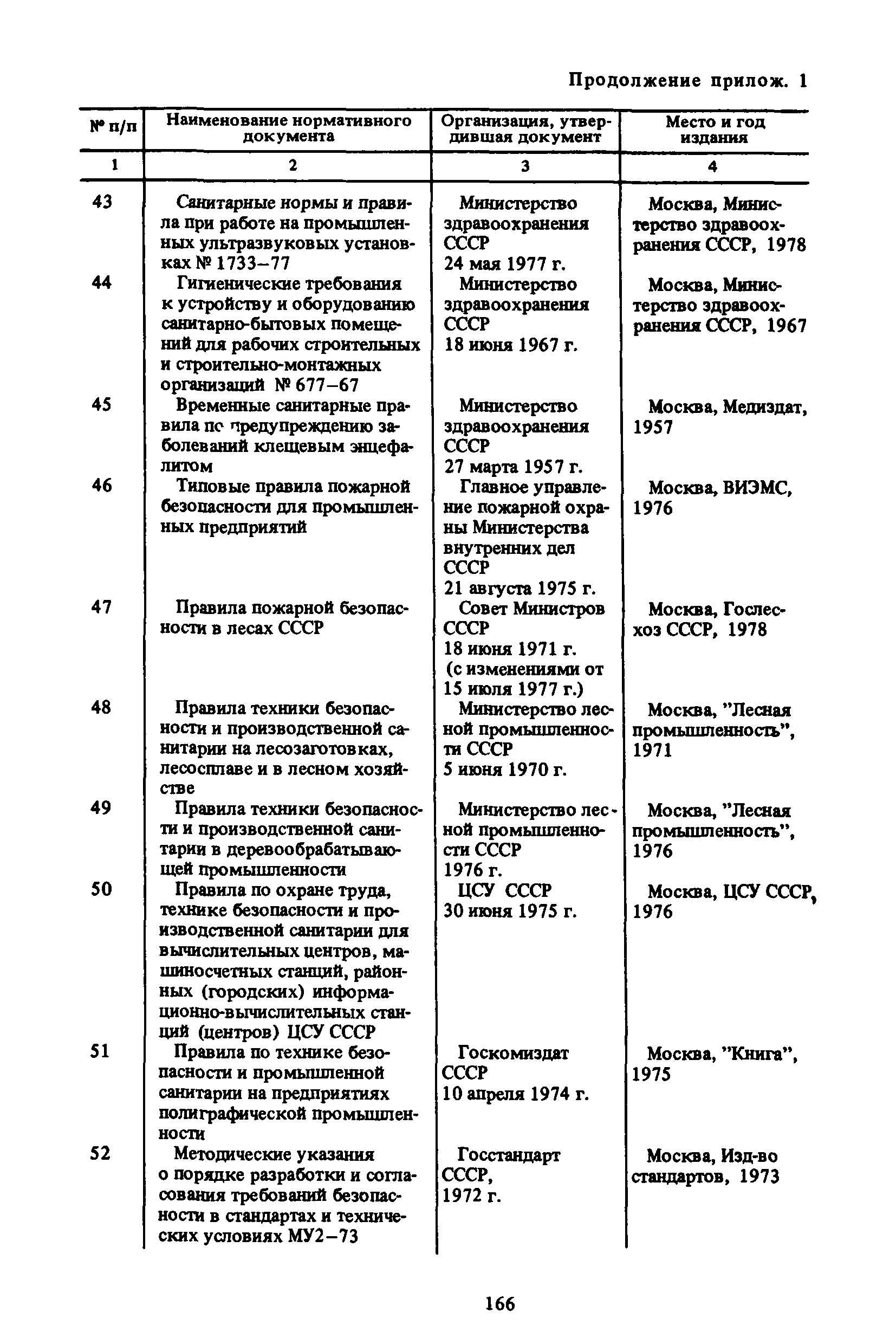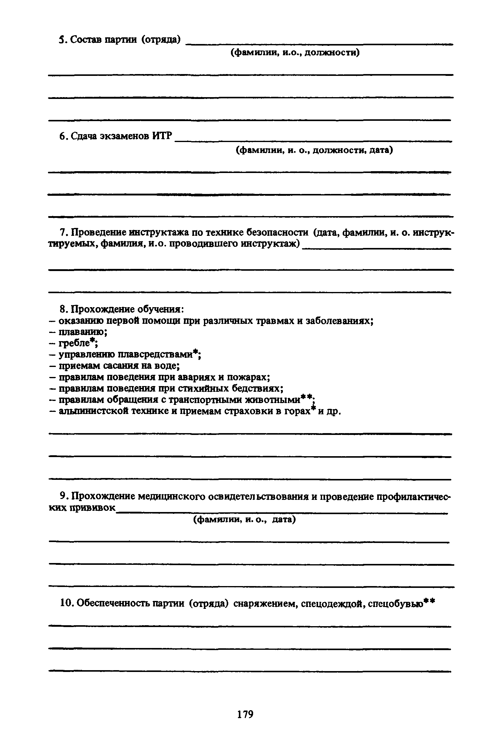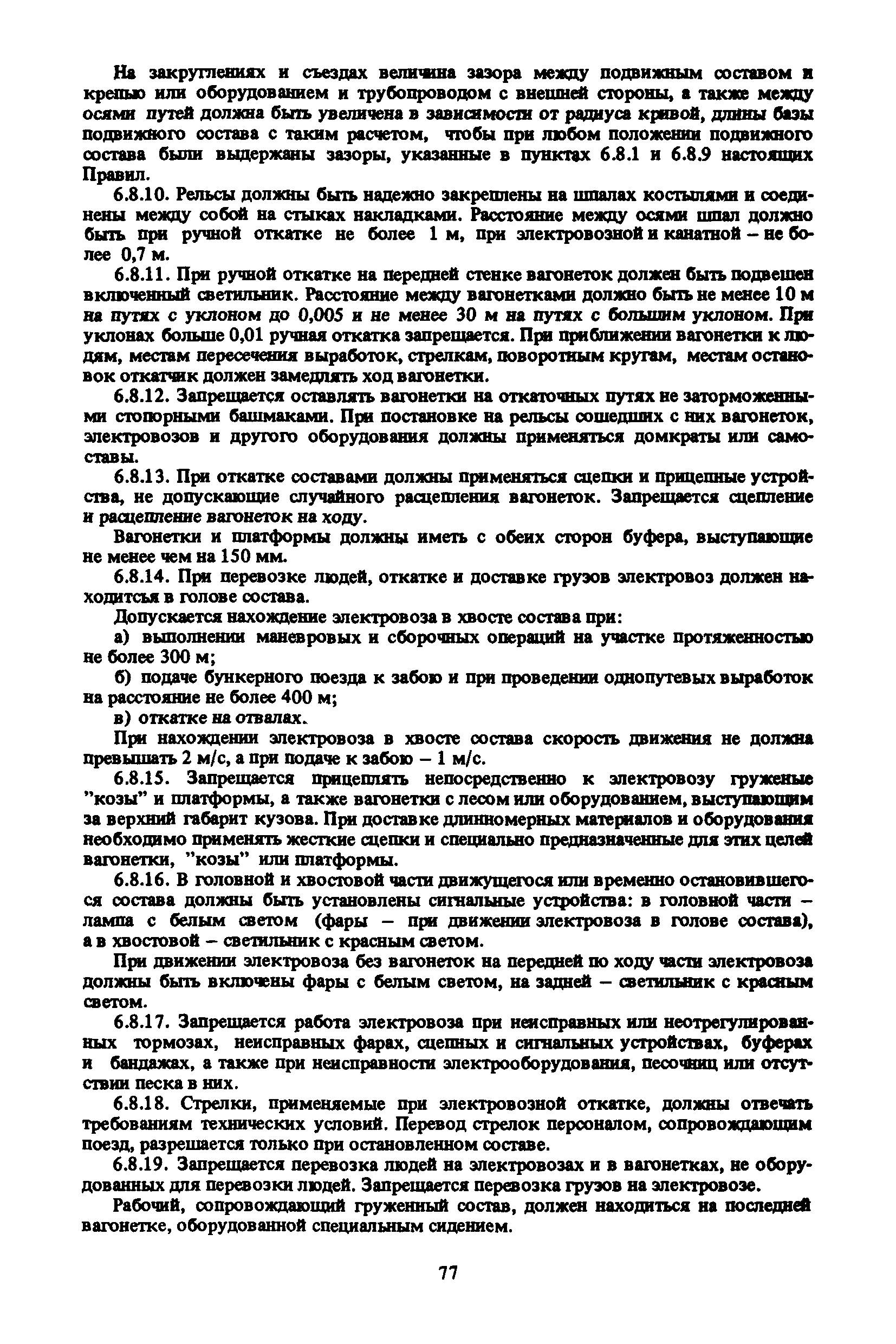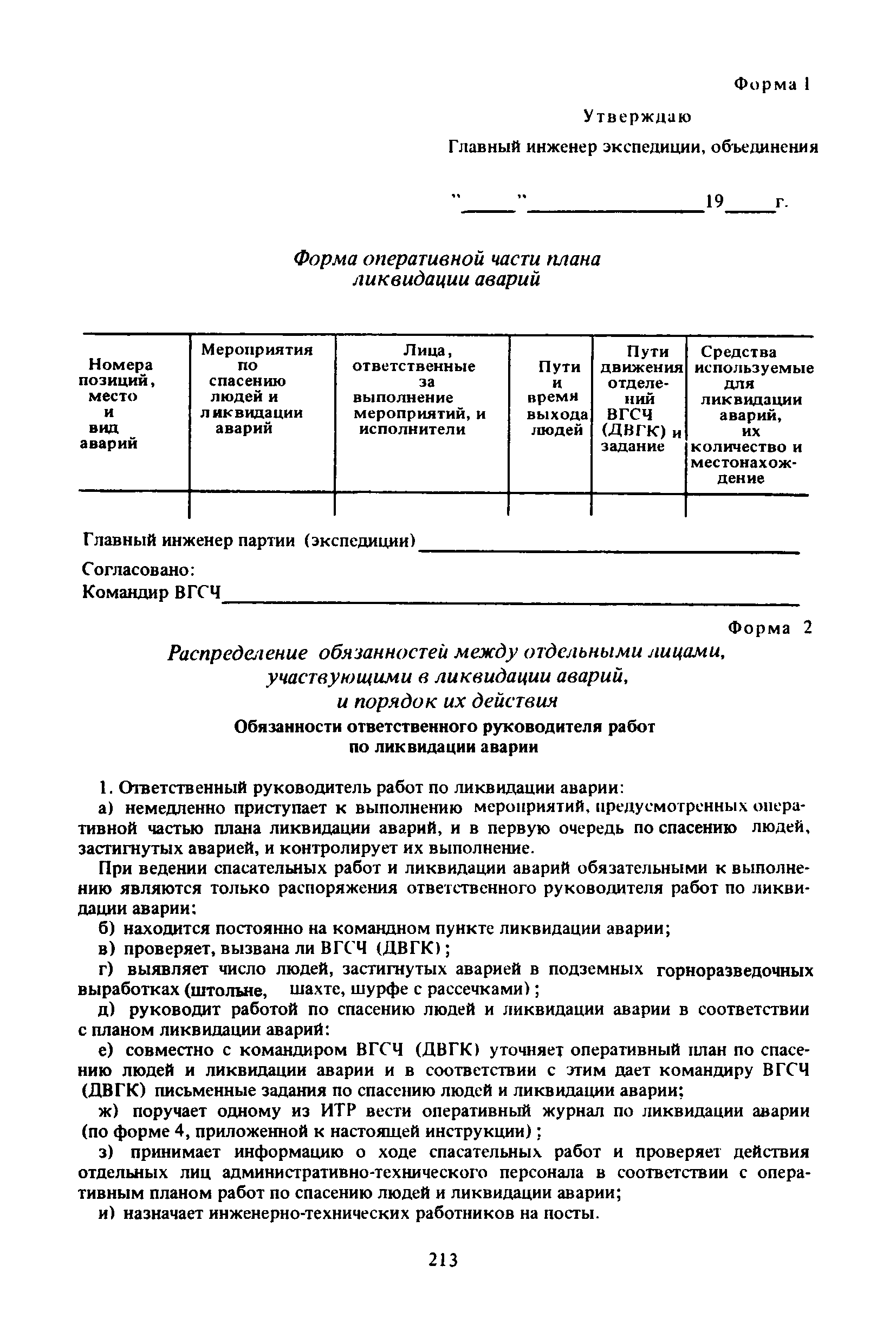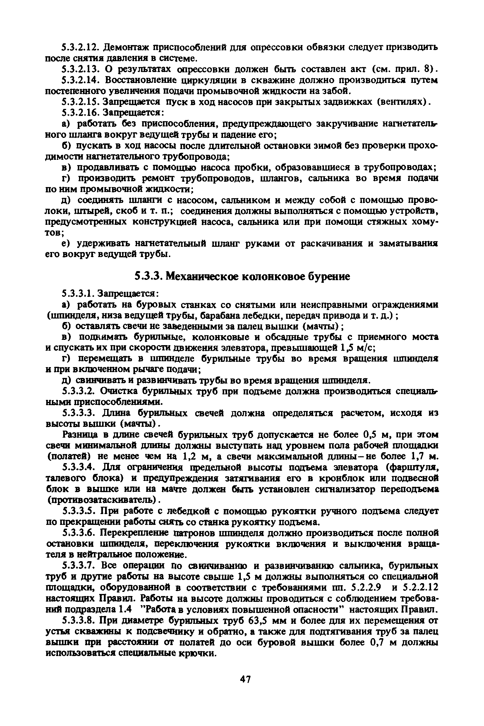 | Оглавление: | Раздел 1. Общие правила Раздел 2. Геологосъемочные и геологопоисковые работы Раздел 3. Геофизические работы Раздел 4. Гидрогеологические и инженерно-геологические работы Раздел 5. Буровые работы Раздел 6. Горноразведочные работы Раздел 7. Морские геологоразведочные работы Раздел 8. Опробовательские работы Раздел 9. Лабораторные работы Раздел 10. Электротехнические работы Раздел 11. Транспорт Раздел 12. Производственная санитария Раздел 13. Ответственность за нарушение правил безопасности Приложение 1. Перечень нормативных документов по охране труда и технике безопасности, обязательных для геологических организации Приложение 2. Журнал проверки состояния техники безопасности Приложение 3. Шкала ветров Приложение 4. Перечень средств техники безопасности и охраны труда для геологосъемочных и геологопоисковых партий и топографо-геодезических бригад Приложение 5. Типовой акт проверки готовности партии (отряда) к выезду на полевые работы Приложение 6. Журнал регистрации маршрутов (переходов) Приложение 7. Акт о приеме буровой установки в эксплуатацию Приложение 8. Акт опрессовки буровых насосов и обвязки буровой установки, смонтированной на скважине Приложение 9. Паспорта крепления и проветривания подземных горноразведочных выработок и инструкции по их составлению Приложение 10. Журнал осмотра крепи и состояния горных выработок Приложение 11. Журнал осмотра подъемной установки Приложение 12. Журнал осмотра подъемных канатов и их расхода Приложение 13. Журнал приемки и сдачи смен машинистами подъемной установки Приложение 14. Журнал осмотра водоотливных установок Приложение 15. Положение о добровольных вспомогательных горноспасательных командах в геологоразведочных организациях, ведущих подземные горные работы Приложение 16. Инструкция по составлению планов ликвидации аварий в разведочных штольнях, шахтах и шурфах с рассечками. Приложение 17. Общие технические требования к гидрометеорологическому обеспечению морских геологоразведочных работ Приложение 18. Шкала состояния моря Приложение 19. Порядок освидетельствования маломерных судов Приложение 20. Минимально допустимые нормы комплектования судовых экипажей маломерных геологоразведочных судов Приложение 21. Табель снабжения маломерных судов Приложение 22. Табель оснащения маломерных плавучих буровых установок (МПБУ) Приложение 23. Выбор массы якорей для маломерных плавучих буровых установок (МГХБУ) Приложение 24. Положение о порядке составления планов предупреждения и ликвидации аварий на маломерных плавучих буровых установках (МПБУ) Приложение 25. Типовая схема окраски маломерных плавучих буровых установок Приложение 26. Журнал осмотра и измерения заземления Приложение 27. Журнал осмотра электрооборудования Приложение 28. Акт проверки готовности скважины к геофизическим работам |