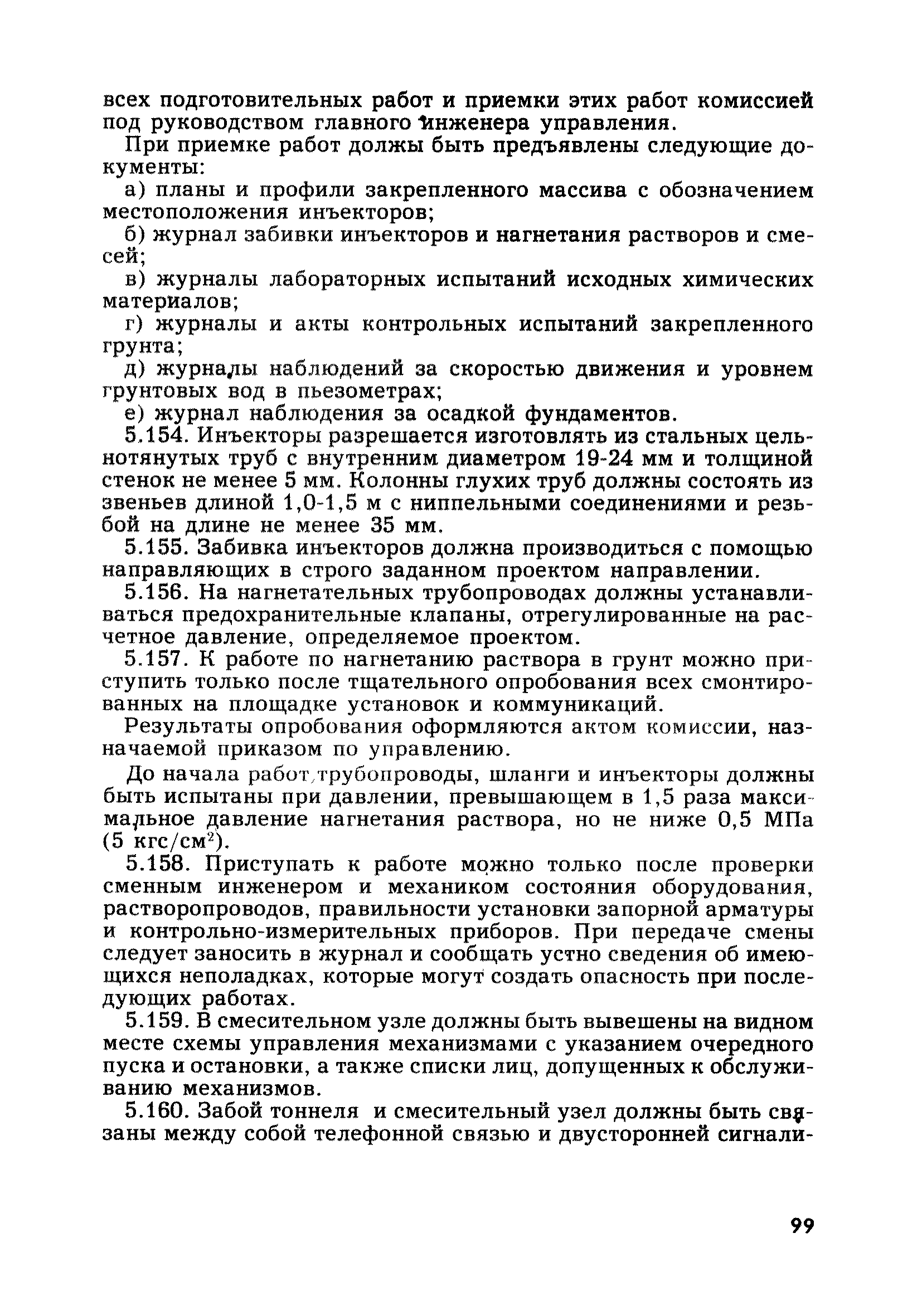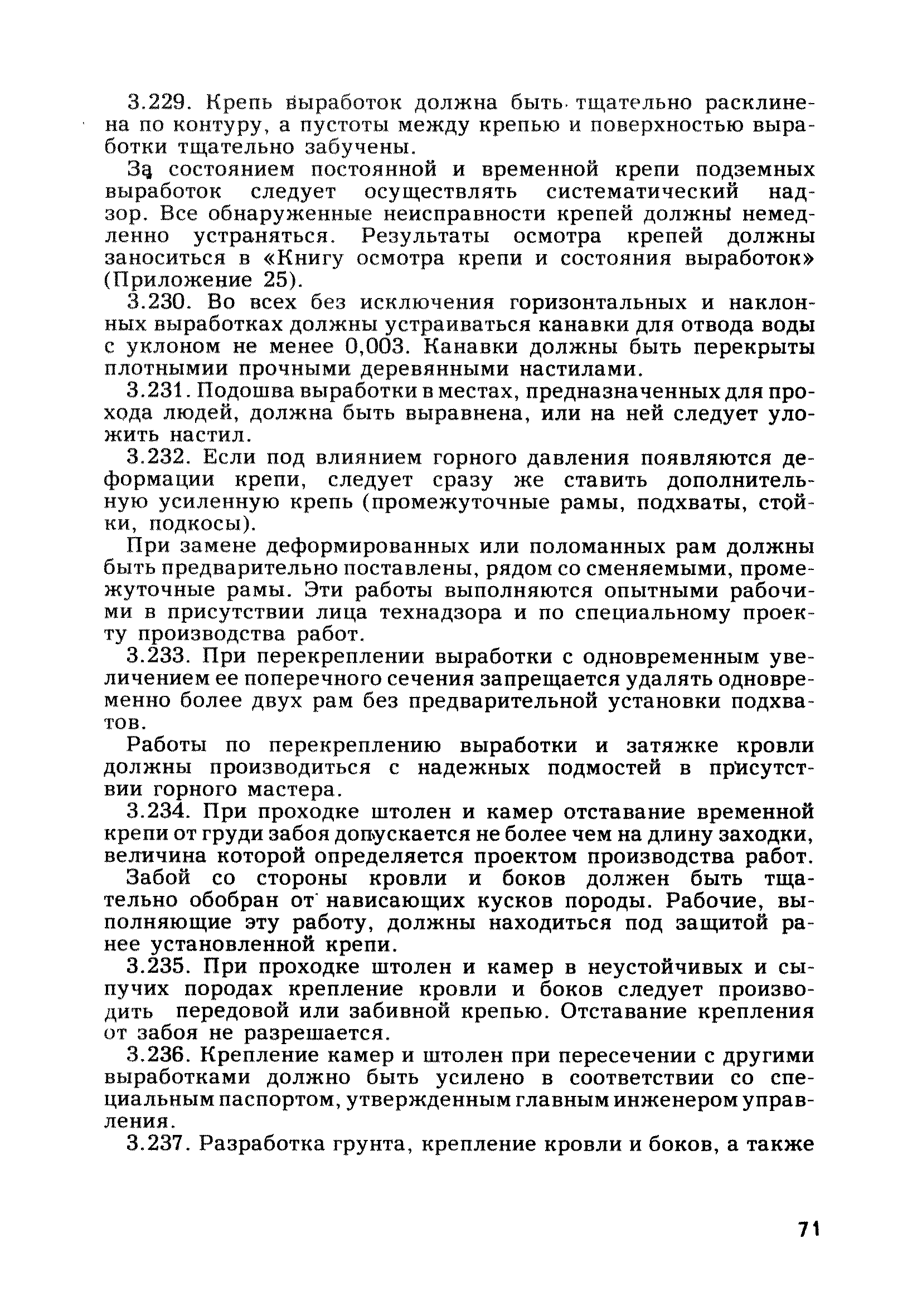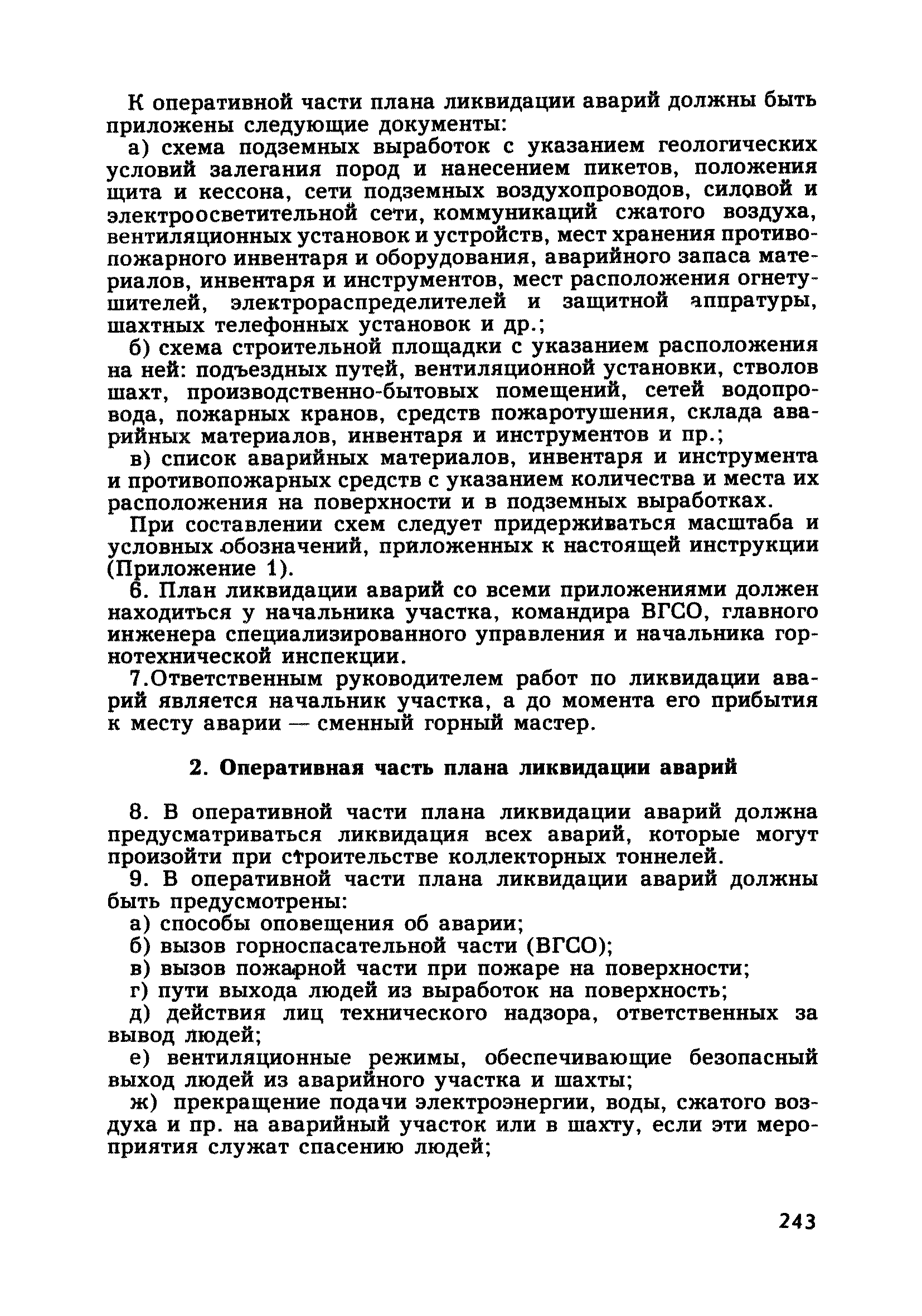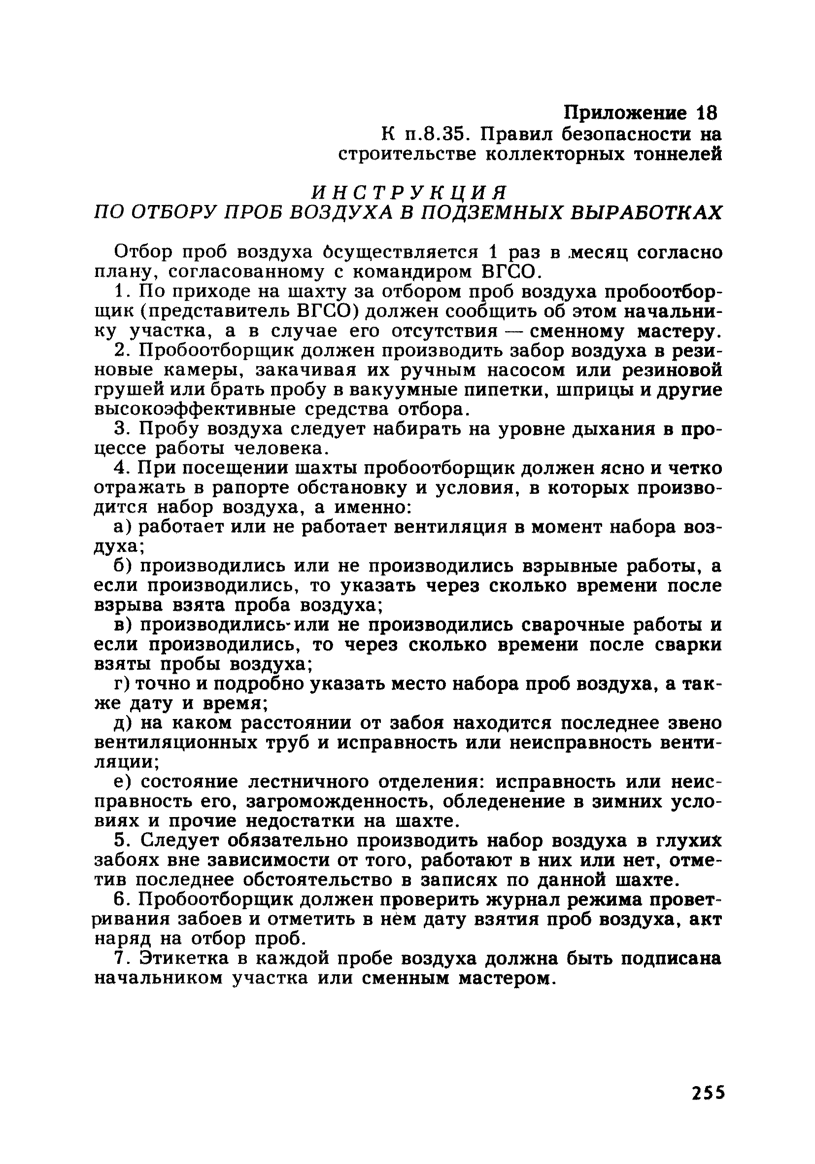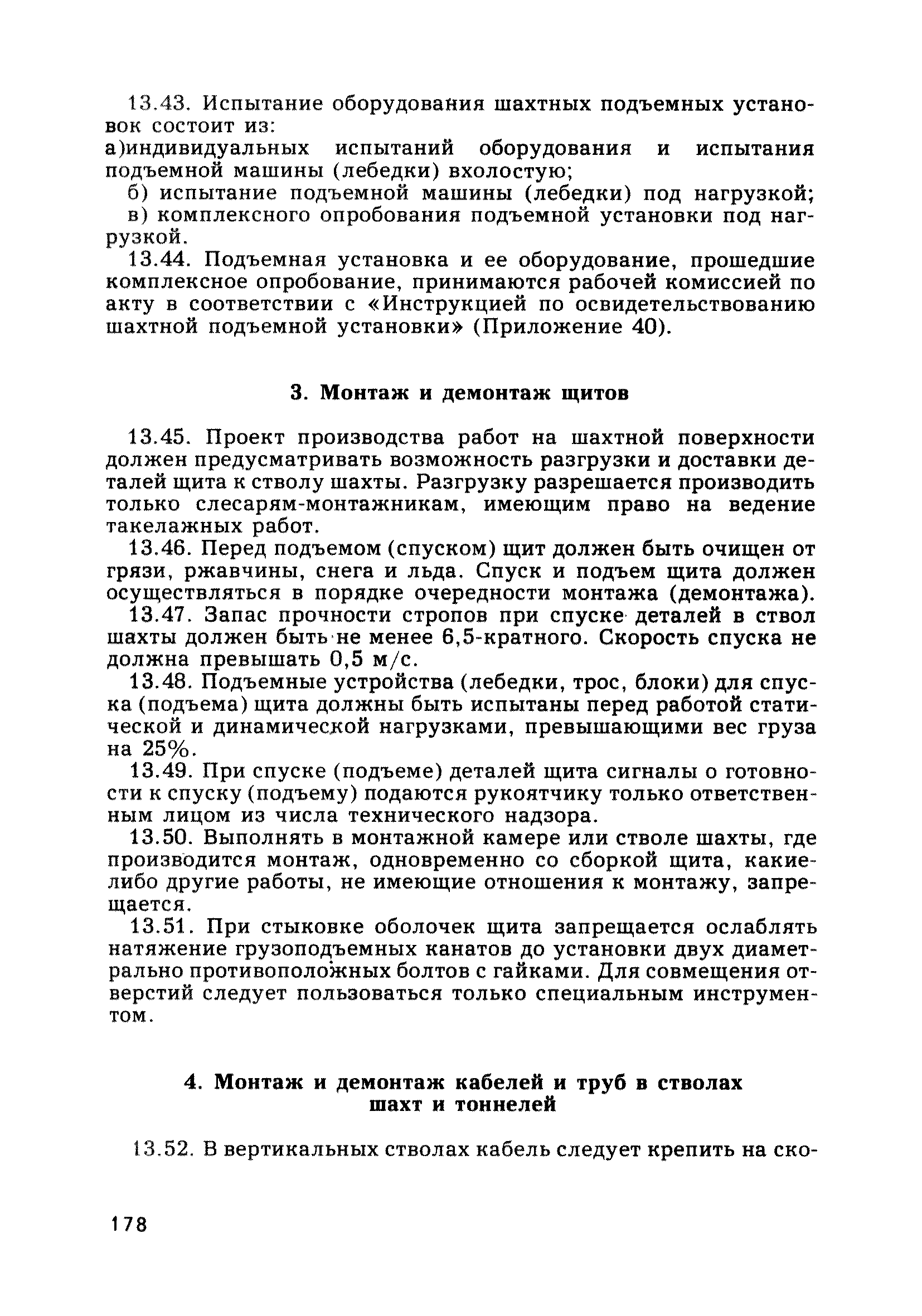 | Оглавление: | Глава 1. Общие правила Глава 2. Строительная площадка Глава 3. Проходка коллекторных тоннелей закрытым способом Глава 4. Сооружение тоннелей открытым способом Глава 5. Специальные способы работ Глава 6. Внутреннее обустройство тоннелей, канализационных насосных станций и стволов шахт Глава 7. Содержание и ликвидация подземных выработок Глава 8. Проветривание подземных выработок Глава 9. Водоотлив Глава 10. Подземный транспорт и шахтный подъем Глава 11. Электротехническое хозяйство Глава 12. Освещение Глава 13. Монтажные и демонтажные работы Глава 14. Строительные машины, механизмы и инструмент Глава 15. Ремонтные работы в действующих тоннельных канализационных коллекторах и шахтах Глава 16. Общие санитарные правила Глава 17. Ответственность за нарушение правил безопасности Приложение 1. Нормы и правила безопасности и производственной санитарии, которыми следует руководствоваться при проектировании и строительстве коллекторных тоннелей и других сооружений Приложение 2. Форма акта-допуска для производства строительно-монтажных работ на территории действующего предприятия Приложение 3. Форма наряда-допуска на производство работ повышенной опасности Приложение 4. Положение о порядке проведения инструктажа и об обучении безопасности труда Приложение 5. Журнал регистрации вводного инструктажа по охране труда Приложение 6. Журнал регистрации инструктажа на рабочем месте Приложение 7. Журнал регистрации проверки знаний работников по технике безопасности Приложение 8. Форма удостоверения для рабочих Приложение 9. Форма удостоверения для инженерно-технических работников Приложение 10. Нормы и сроки испытаний подъемных механизмов и приспособлений Приложение 11. Перечень документации по технике безопасности на объектах работ Приложение 12. Журнал горных работ Приложение 13. Положение о расследовании и учете несчастных случаев на производстве Приложение 14. Журнал проверки техники безопасности (3-ступенчатый контроль) Приложение 15. Методические указания по составлению планов ликвидации аварий Приложение 16. Журнал ознакомления рабочих с планом ликвидации аварий Приложение 17. Предельно допустимые концентрации некоторых вредных веществ в воздухе рабочей зоны Приложение 18. Инструкция по отбору проб воздуха в подземных выработках Приложение 19. Журнал учета результатов анализа воздуха Приложение 20. Книга осмотра вентиляторных установок Приложение 21. Нормы искусственного освещения подземных выработок и открытых строительных площадок при сооружении коллекторных тоннелей Приложение 22. Мероприятия по противопожарной защите при сооружении коллекторных тоннелей Приложение 23. Состав и содержание основных решений по технике безопасности в проектах производства работ (ППР) Приложение 24. Инструкция по составлению паспортов креплений подземных выработок Приложение 25. Книга осмотра крепи и состояния выработок Приложение 26. Книга № 1 для записи результатов осмотра деталей шахтного подъема Приложение 27. Книга № 2 для записи повреждений, обнаруженных на подъемной установке, и мер, принятых к их устранению Приложение 28. Книга № 3 для записи дат навески, снятия и испытания канатов Приложение 29. Нормы браковки стальных канатов Приложение 30. Журнал записи результатов осмотра состояния стволов шахт Приложение 31. Журнал для зап