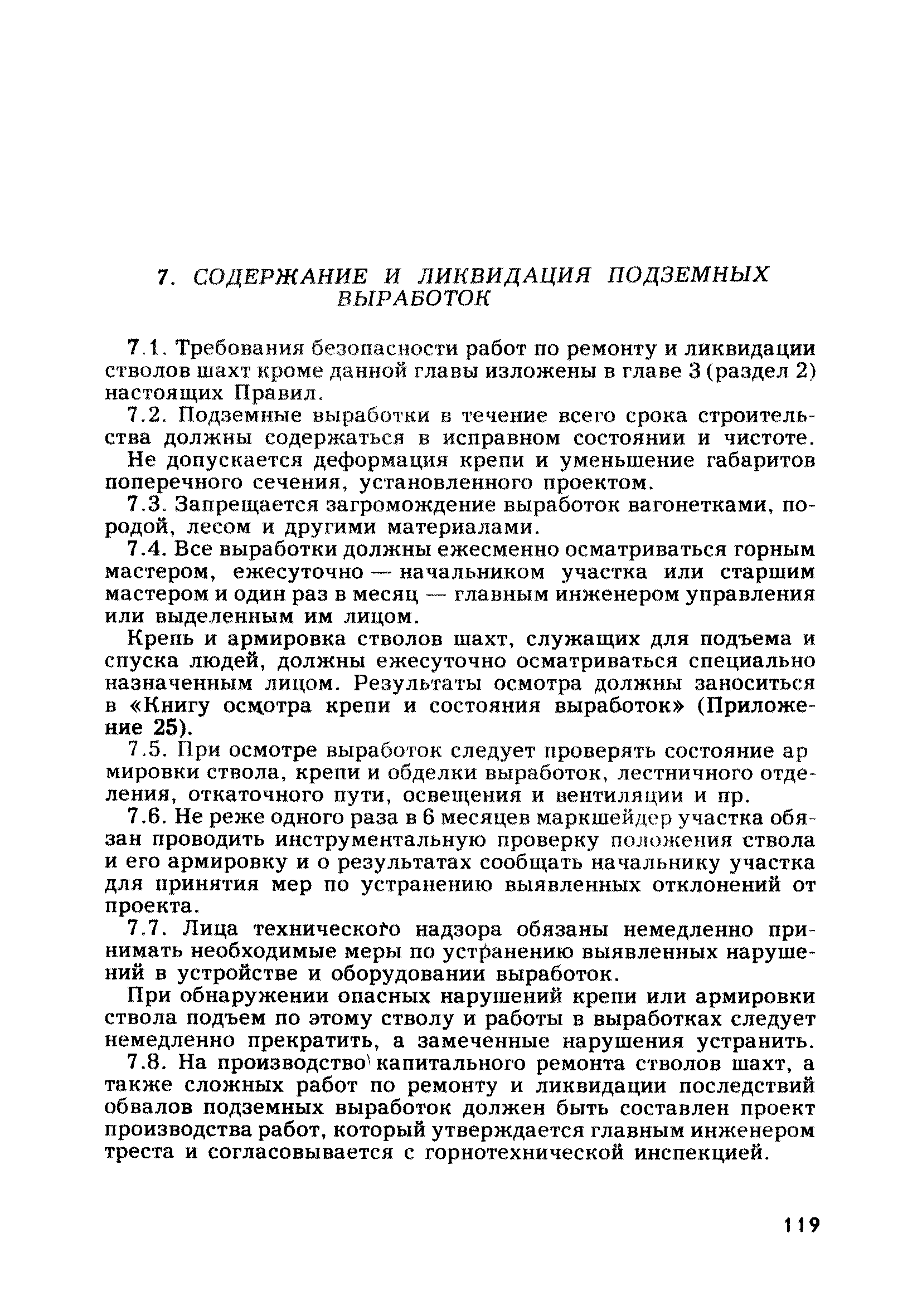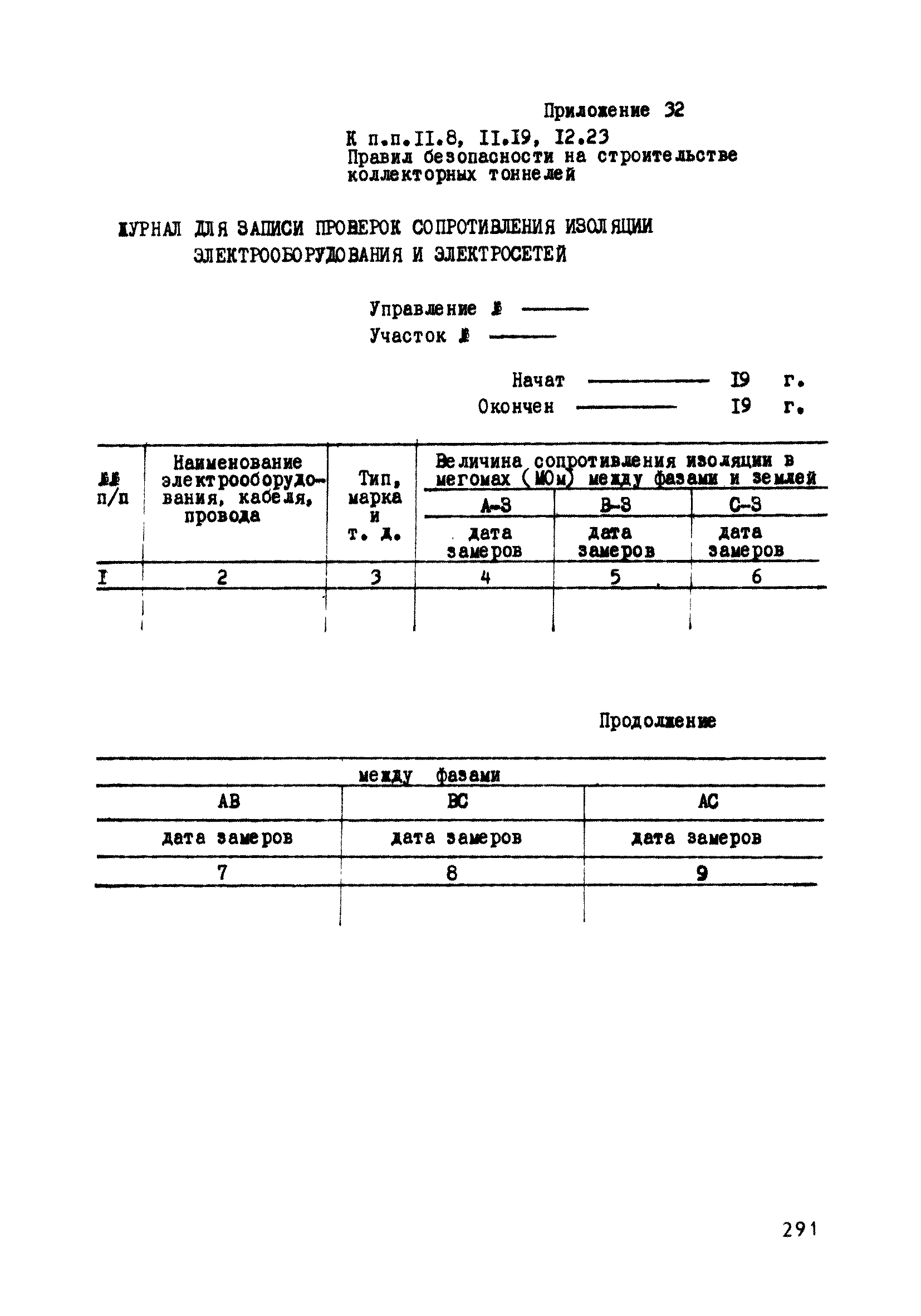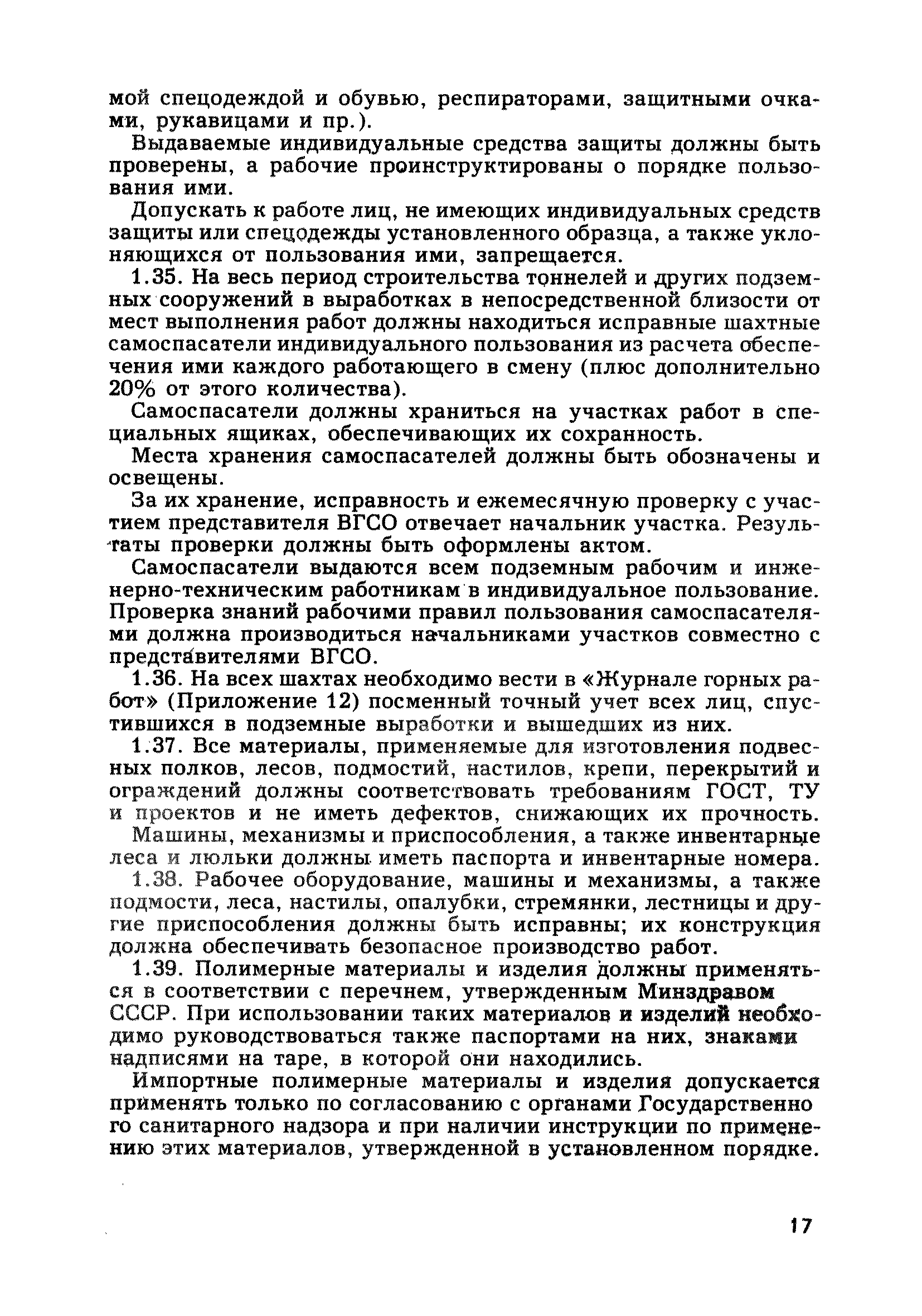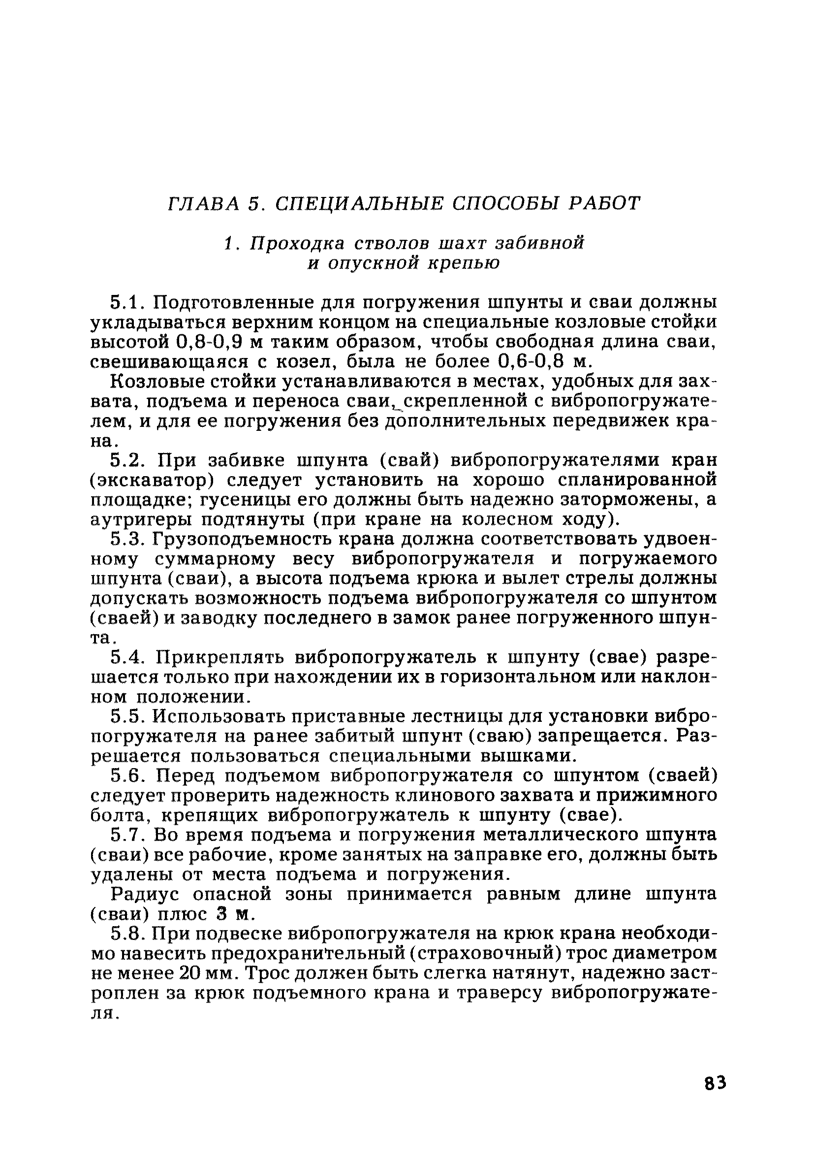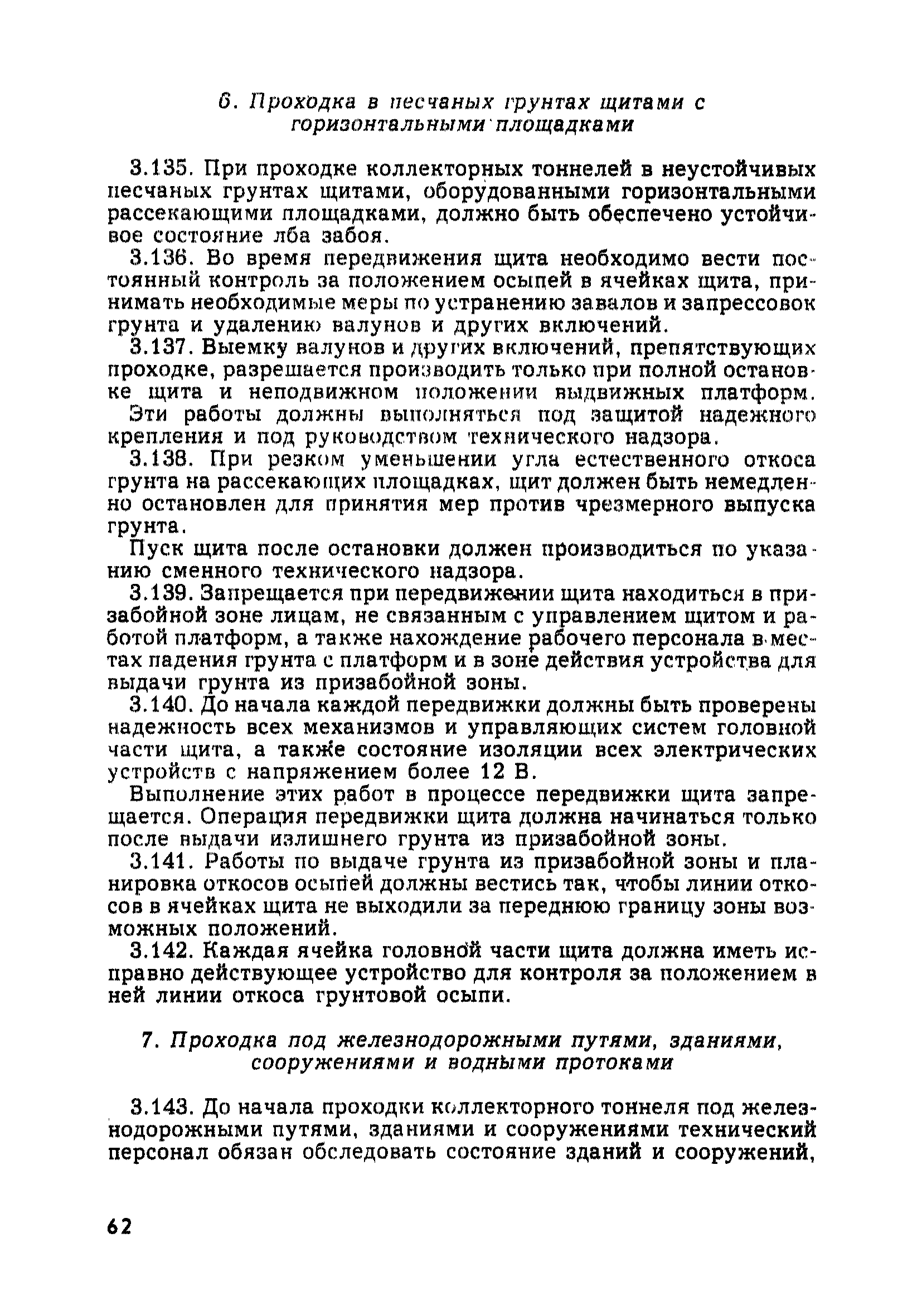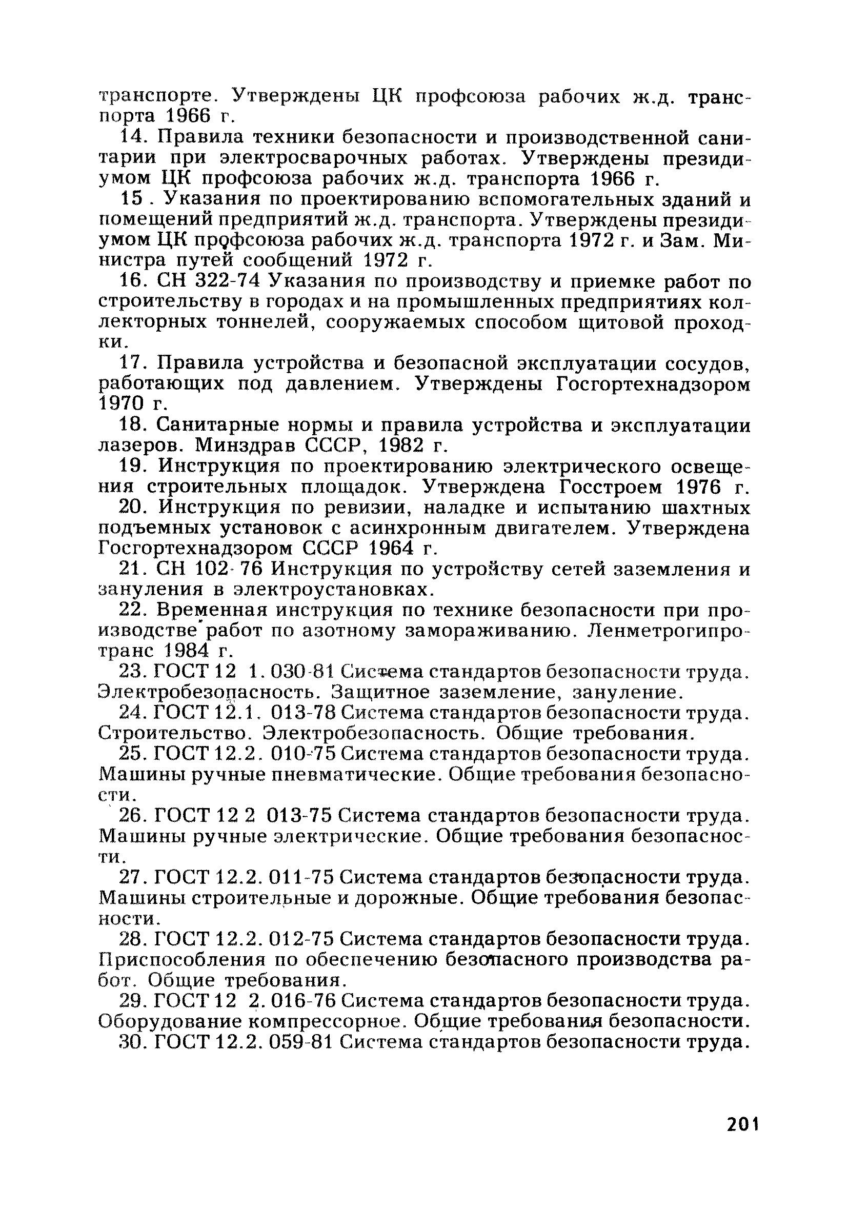 | Оглавление: | Глава 1. Общие правила Глава 2. Строительная площадка Глава 3. Проходка коллекторных тоннелей закрытым способом Глава 4. Сооружение тоннелей открытым способом Глава 5. Специальные способы работ Глава 6. Внутреннее обустройство тоннелей, канализационных насосных станций и стволов шахт Глава 7. Содержание и ликвидация подземных выработок Глава 8. Проветривание подземных выработок Глава 9. Водоотлив Глава 10. Подземный транспорт и шахтный подъем Глава 11. Электротехническое хозяйство Глава 12. Освещение Глава 13. Монтажные и демонтажные работы Глава 14. Строительные машины, механизмы и инструмент Глава 15. Ремонтные работы в действующих тоннельных канализационных коллекторах и шахтах Глава 16. Общие санитарные правила Глава 17. Ответственность за нарушение правил безопасности Приложение 1. Нормы и правила безопасности и производственной санитарии, которыми следует руководствоваться при проектировании и строительстве коллекторных тоннелей и других сооружений Приложение 2. Форма акта-допуска для производства строительно-монтажных работ на территории действующего предприятия Приложение 3. Форма наряда-допуска на производство работ повышенной опасности Приложение 4. Положение о порядке проведения инструктажа и об обучении безопасности труда Приложение 5. Журнал регистрации вводного инструктажа по охране труда Приложение 6. Журнал регистрации инструктажа на рабочем месте Приложение 7. Журнал регистрации проверки знаний работников по технике безопасности Приложение 8. Форма удостоверения для рабочих Приложение 9. Форма удостоверения для инженерно-технических работников Приложение 10. Нормы и сроки испытаний подъемных механизмов и приспособлений Приложение 11. Перечень документации по технике безопасности на объектах работ Приложение 12. Журнал горных работ Приложение 13. Положение о расследовании и учете несчастных случаев на производстве Приложение 14. Журнал проверки техники безопасности (3-ступенчатый контроль) Приложение 15. Методические указания по составлению планов ликвидации аварий Приложение 16. Журнал ознакомления рабочих с планом ликвидации аварий Приложение 17. Предельно допустимые концентрации некоторых вредных веществ в воздухе рабочей зоны Приложение 18. Инструкция по отбору проб воздуха в подземных выработках Приложение 19. Журнал учета результатов анализа воздуха Приложение 20. Книга осмотра вентиляторных установок Приложение 21. Нормы искусственного освещения подземных выработок и открытых строительных площадок при сооружении коллекторных тоннелей Приложение 22. Мероприятия по противопожарной защите при сооружении коллекторных тоннелей Приложение 23. Состав и содержание основных решений по технике безопасности в проектах производства работ (ППР) Приложение 24. Инструкция по составлению паспортов креплений подземных выработок Приложение 25. Книга осмотра крепи и состояния выработок Приложение 26. Книга № 1 для записи результатов осмотра деталей шахтного подъема Приложение 27. Книга № 2 для записи повреждений, обнаруженных на подъемной установке, и мер, принятых к их устранению Приложение 28. Книга № 3 для записи дат навески, снятия и испытания канатов Приложение 29. Нормы браковки стальных канатов Приложение 30. Журнал записи результатов осмотра состояния стволов шахт Приложение 31. Журнал для зап