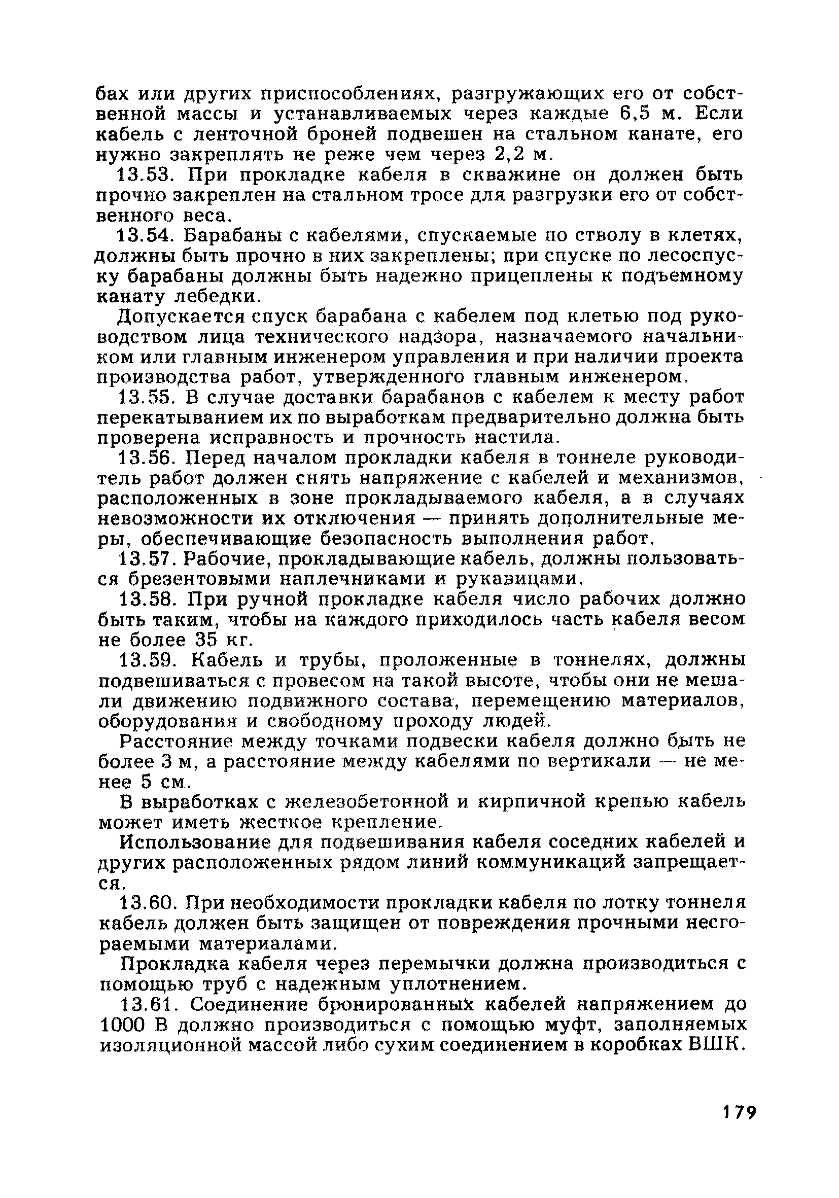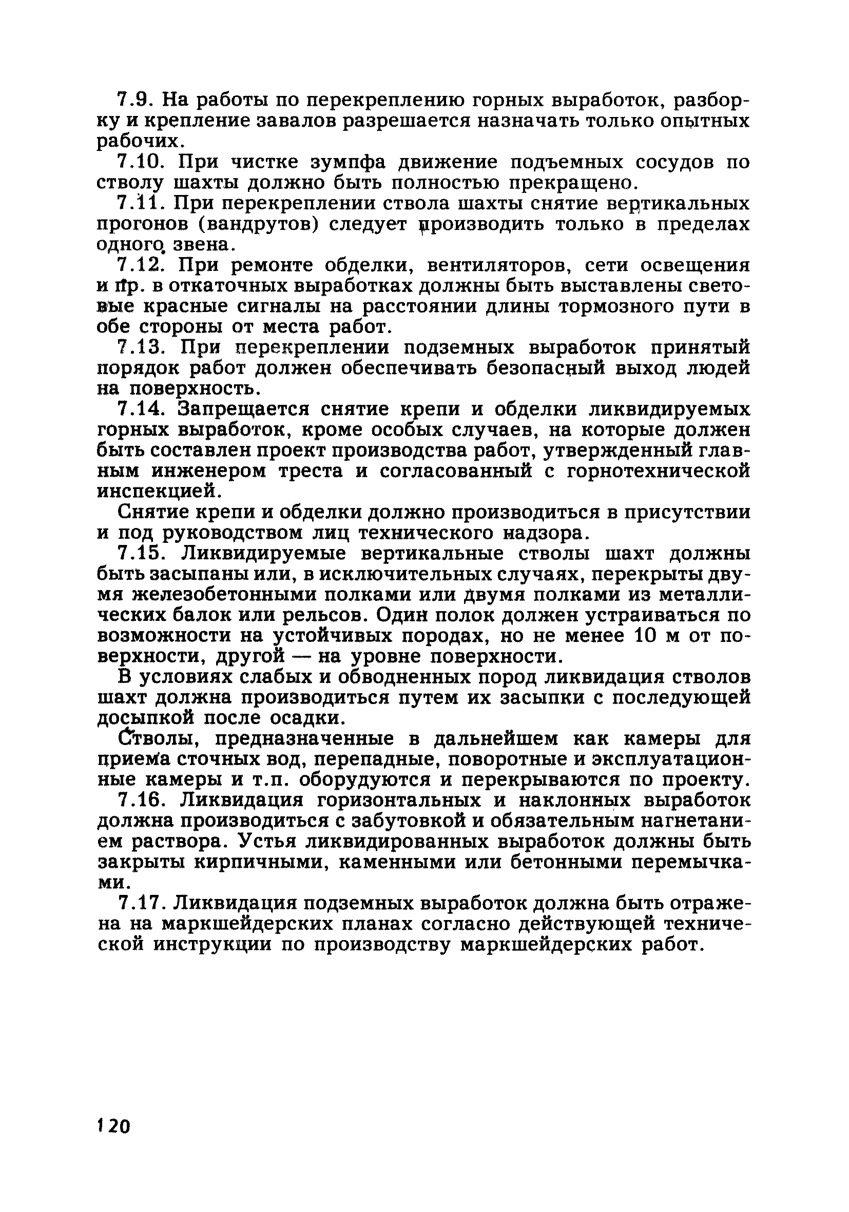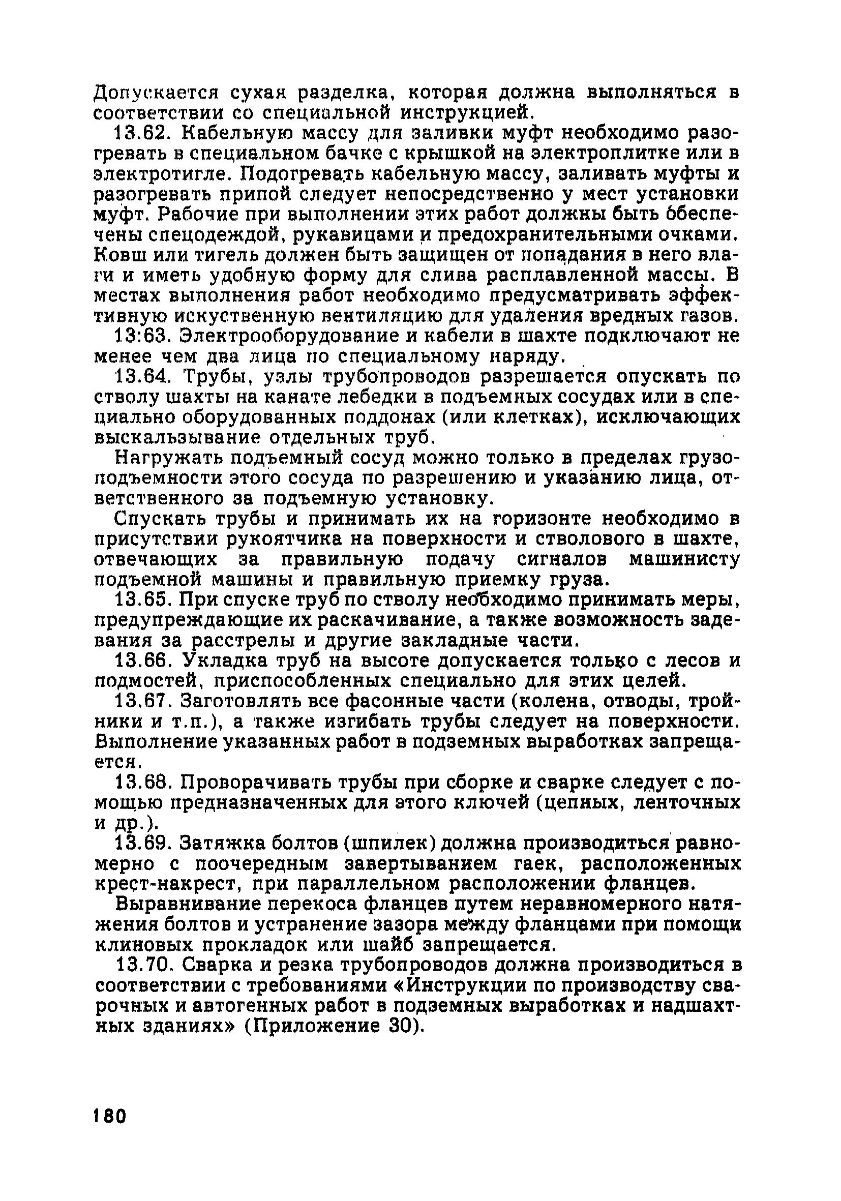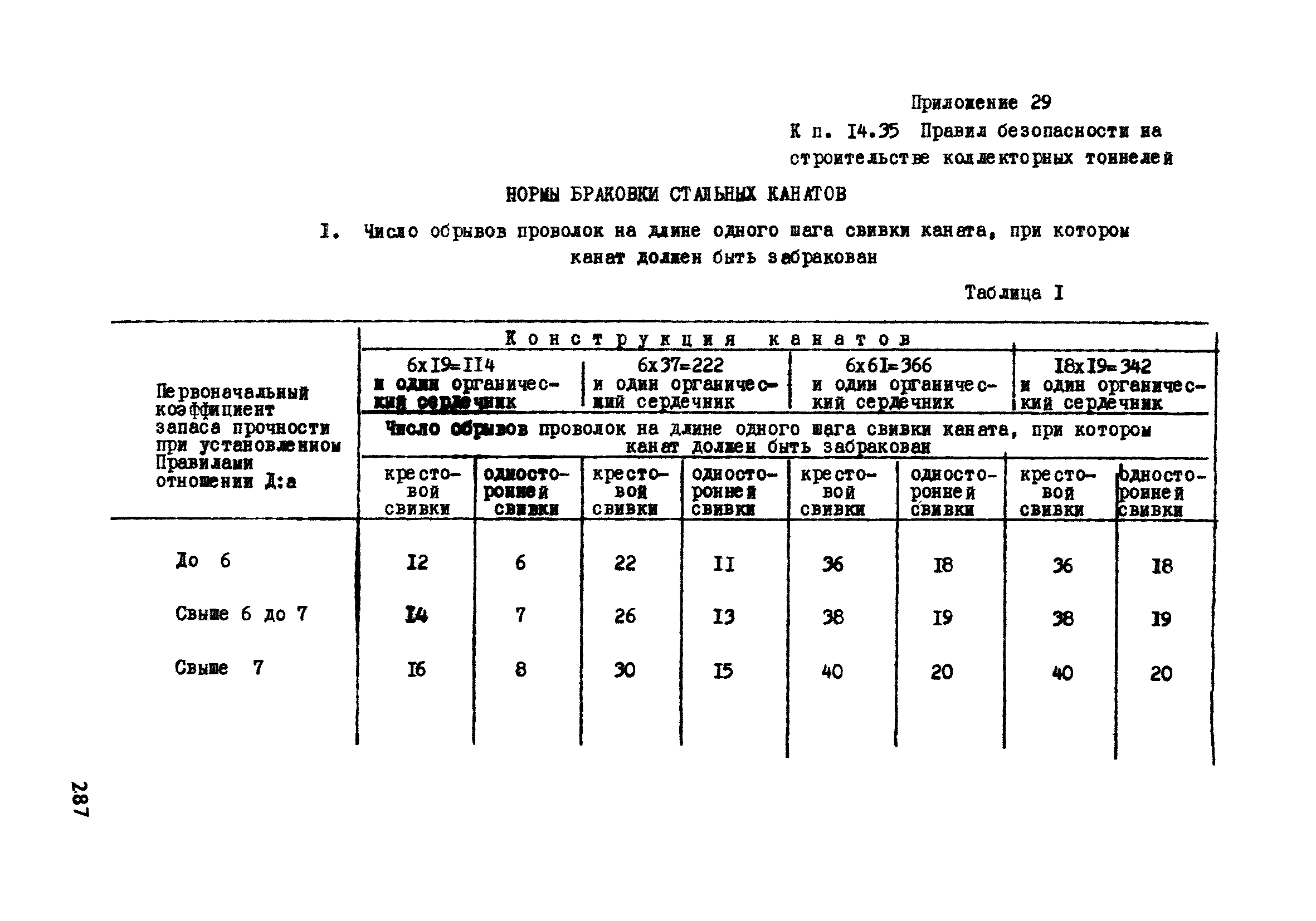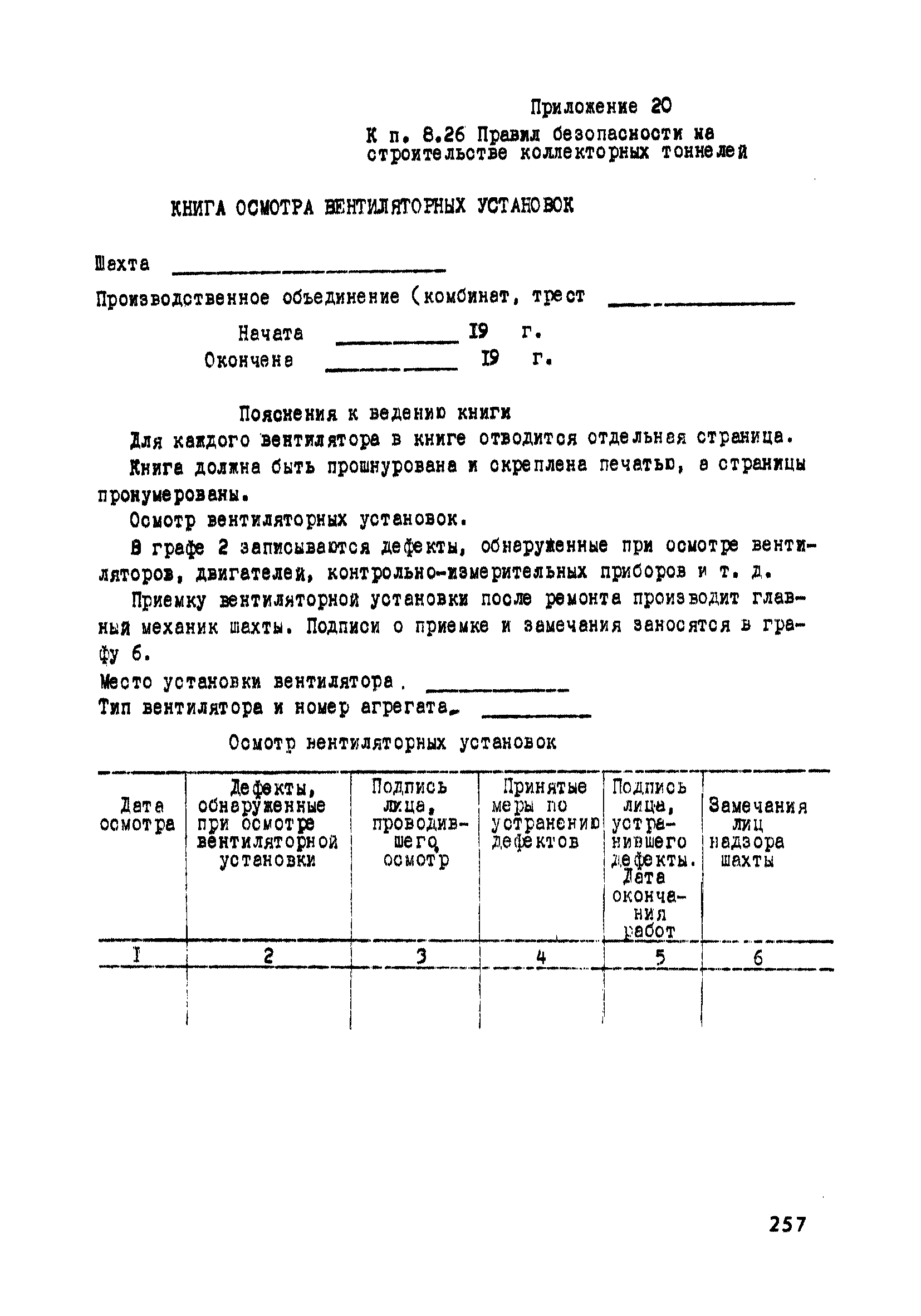 | Оглавление: | Глава 1. Общие правила Глава 2. Строительная площадка Глава 3. Проходка коллекторных тоннелей закрытым способом Глава 4. Сооружение тоннелей открытым способом Глава 5. Специальные способы работ Глава 6. Внутреннее обустройство тоннелей, канализационных насосных станций и стволов шахт Глава 7. Содержание и ликвидация подземных выработок Глава 8. Проветривание подземных выработок Глава 9. Водоотлив Глава 10. Подземный транспорт и шахтный подъем Глава 11. Электротехническое хозяйство Глава 12. Освещение Глава 13. Монтажные и демонтажные работы Глава 14. Строительные машины, механизмы и инструмент Глава 15. Ремонтные работы в действующих тоннельных канализационных коллекторах и шахтах Глава 16. Общие санитарные правила Глава 17. Ответственность за нарушение правил безопасности Приложение 1. Нормы и правила безопасности и производственной санитарии, которыми следует руководствоваться при проектировании и строительстве коллекторных тоннелей и других сооружений Приложение 2. Форма акта-допуска для производства строительно-монтажных работ на территории действующего предприятия Приложение 3. Форма наряда-допуска на производство работ повышенной опасности Приложение 4. Положение о порядке проведения инструктажа и об обучении безопасности труда Приложение 5. Журнал регистрации вводного инструктажа по охране труда Приложение 6. Журнал регистрации инструктажа на рабочем месте Приложение 7. Журнал регистрации проверки знаний работников по технике безопасности Приложение 8. Форма удостоверения для рабочих Приложение 9. Форма удостоверения для инженерно-технических работников Приложение 10. Нормы и сроки испытаний подъемных механизмов и приспособлений Приложение 11. Перечень документации по технике безопасности на объектах работ Приложение 12. Журнал горных работ Приложение 13. Положение о расследовании и учете несчастных случаев на производстве Приложение 14. Журнал проверки техники безопасности (3-ступенчатый контроль) Приложение 15. Методические указания по составлению планов ликвидации аварий Приложение 16. Журнал ознакомления рабочих с планом ликвидации аварий Приложение 17. Предельно допустимые концентрации некоторых вредных веществ в воздухе рабочей зоны Приложение 18. Инструкция по отбору проб воздуха в подземных выработках Приложение 19. Журнал учета результатов анализа воздуха Приложение 20. Книга осмотра вентиляторных установок Приложение 21. Нормы искусственного освещения подземных выработок и открытых строительных площадок при сооружении коллекторных тоннелей Приложение 22. Мероприятия по противопожарной защите при сооружении коллекторных тоннелей Приложение 23. Состав и содержание основных решений по технике безопасности в проектах производства работ (ППР) Приложение 24. Инструкция по составлению паспортов креплений подземных выработок Приложение 25. Книга осмотра крепи и состояния выработок Приложение 26. Книга № 1 для записи результатов осмотра деталей шахтного подъема Приложение 27. Книга № 2 для записи повреждений, обнаруженных на подъемной установке, и мер, принятых к их устранению Приложение 28. Книга № 3 для записи дат навески, снятия и испытания канатов Приложение 29. Нормы браковки стальных канатов Приложение 30. Журнал записи результатов осмотра состояния стволов шахт Приложение 31. Журнал для зап