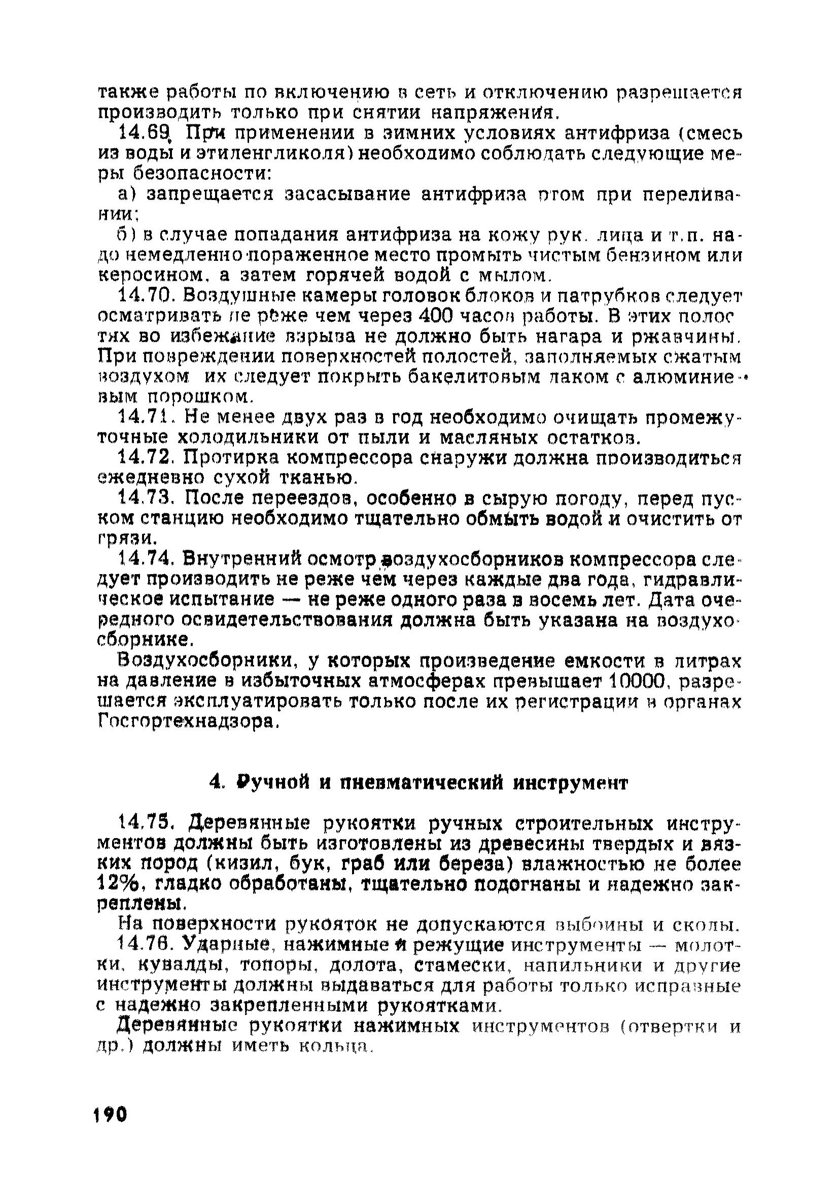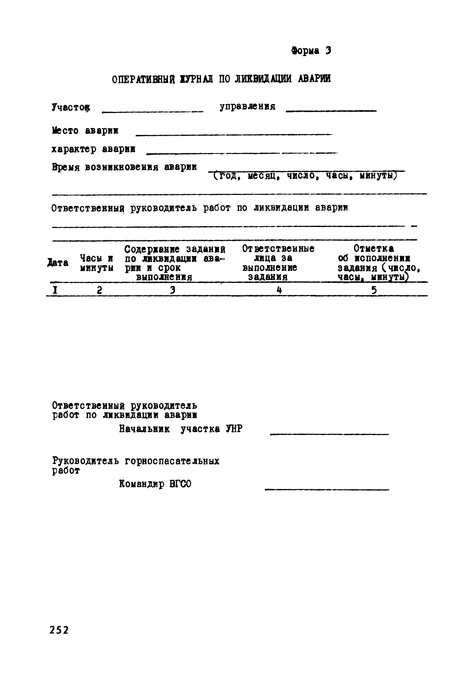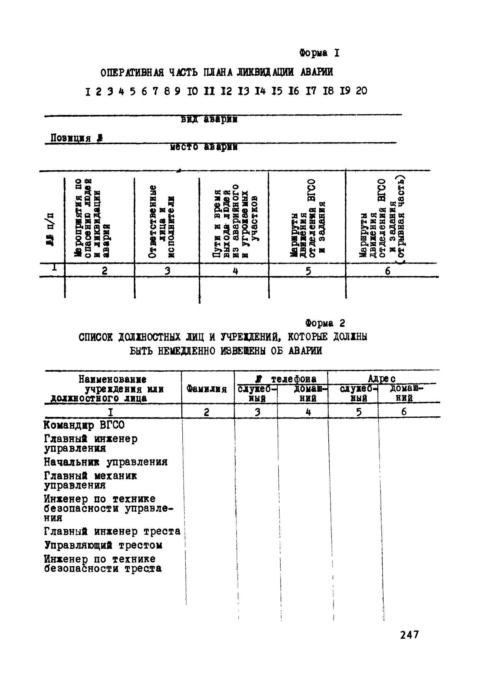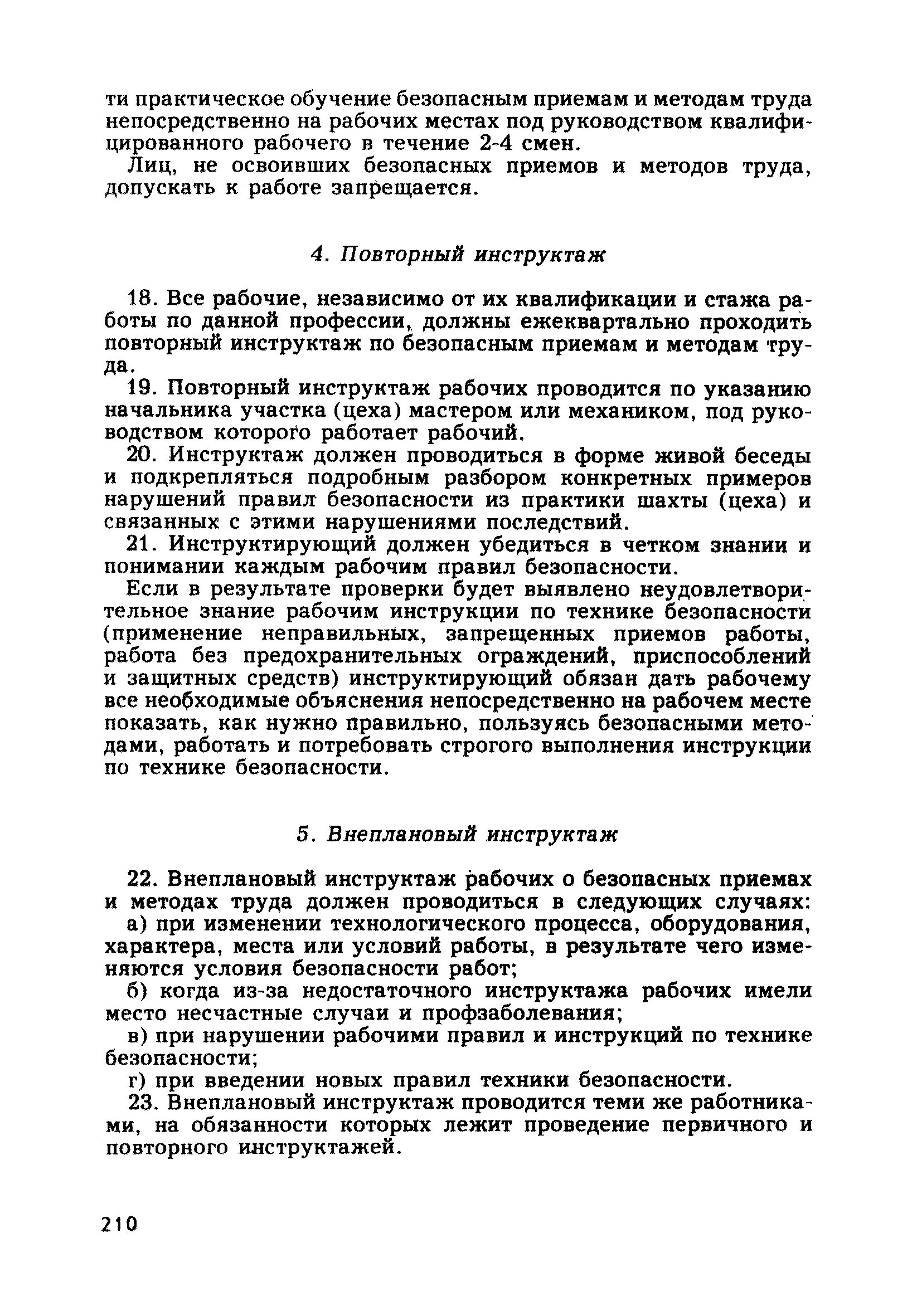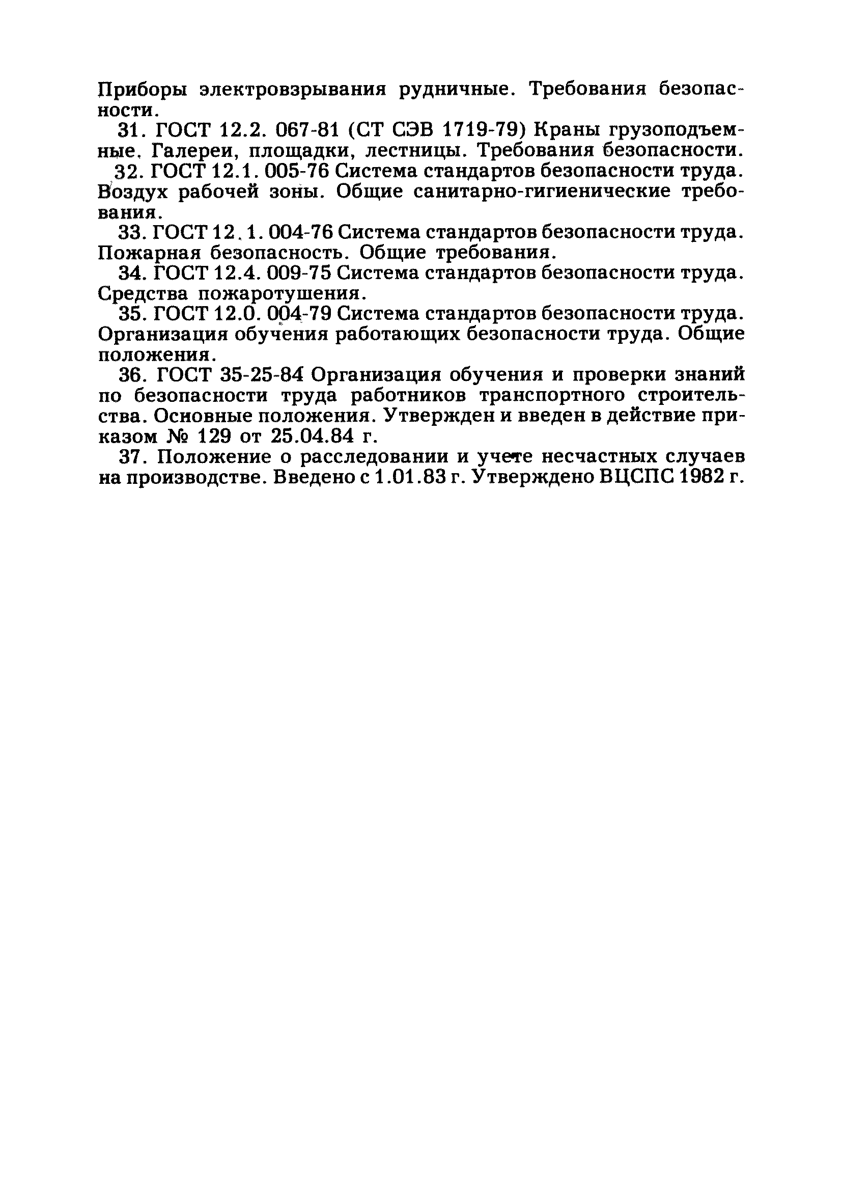| Оглавление: | Глава 1. Общие правила Глава 2. Строительная площадка Глава 3. Проходка коллекторных тоннелей закрытым способом Глава 4. Сооружение тоннелей открытым способом Глава 5. Специальные способы работ Глава 6. Внутреннее обустройство тоннелей, канализационных насосных станций и стволов шахт Глава 7. Содержание и ликвидация подземных выработок Глава 8. Проветривание подземных выработок Глава 9. Водоотлив Глава 10. Подземный транспорт и шахтный подъем Глава 11. Электротехническое хозяйство Глава 12. Освещение Глава 13. Монтажные и демонтажные работы Глава 14. Строительные машины, механизмы и инструмент Глава 15. Ремонтные работы в действующих тоннельных канализационных коллекторах и шахтах Глава 16. Общие санитарные правила Глава 17. Ответственность за нарушение правил безопасности Приложение 1. Нормы и правила безопасности и производственной санитарии, которыми следует руководствоваться при проектировании и строительстве коллекторных тоннелей и других сооружений Приложение 2. Форма акта-допуска для производства строительно-монтажных работ на территории действующего предприятия Приложение 3. Форма наряда-допуска на производство работ повышенной опасности Приложение 4. Положение о порядке проведения инструктажа и об обучении безопасности труда Приложение 5. Журнал регистрации вводного инструктажа по охране труда Приложение 6. Журнал регистрации инструктажа на рабочем месте Приложение 7. Журнал регистрации проверки знаний работников по технике безопасности Приложение 8. Форма удостоверения для рабочих Приложение 9. Форма удостоверения для инженерно-технических работников Приложение 10. Нормы и сроки испытаний подъемных механизмов и приспособлений Приложение 11. Перечень документации по технике безопасности на объектах работ Приложение 12. Журнал горных работ Приложение 13. Положение о расследовании и учете несчастных случаев на производстве Приложение 14. Журнал проверки техники безопасности (3-ступенчатый контроль) Приложение 15. Методические указания по составлению планов ликвидации аварий Приложение 16. Журнал ознакомления рабочих с планом ликвидации аварий Приложение 17. Предельно допустимые концентрации некоторых вредных веществ в воздухе рабочей зоны Приложение 18. Инструкция по отбору проб воздуха в подземных выработках Приложение 19. Журнал учета результатов анализа воздуха Приложение 20. Книга осмотра вентиляторных установок Приложение 21. Нормы искусственного освещения подземных выработок и открытых строительных площадок при сооружении коллекторных тоннелей Приложение 22. Мероприятия по противопожарной защите при сооружении коллекторных тоннелей Приложение 23. Состав и содержание основных решений по технике безопасности в проектах производства работ (ППР) Приложение 24. Инструкция по составлению паспортов креплений подземных выработок Приложение 25. Книга осмотра крепи и состояния выработок Приложение 26. Книга № 1 для записи результатов осмотра деталей шахтного подъема Приложение 27. Книга № 2 для записи повреждений, обнаруженных на подъемной установке, и мер, принятых к их устранению Приложение 28. Книга № 3 для записи дат навески, снятия и испытания канатов Приложение 29. Нормы браковки стальных канатов Приложение 30. Журнал записи результатов осмотра состояния стволов шахт Приложение 31. Журнал для зап
