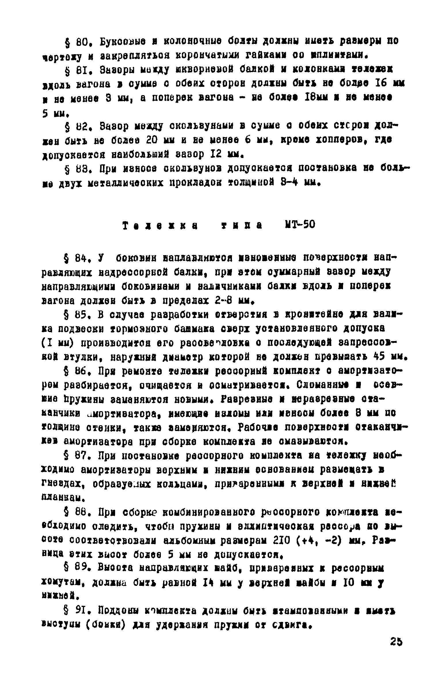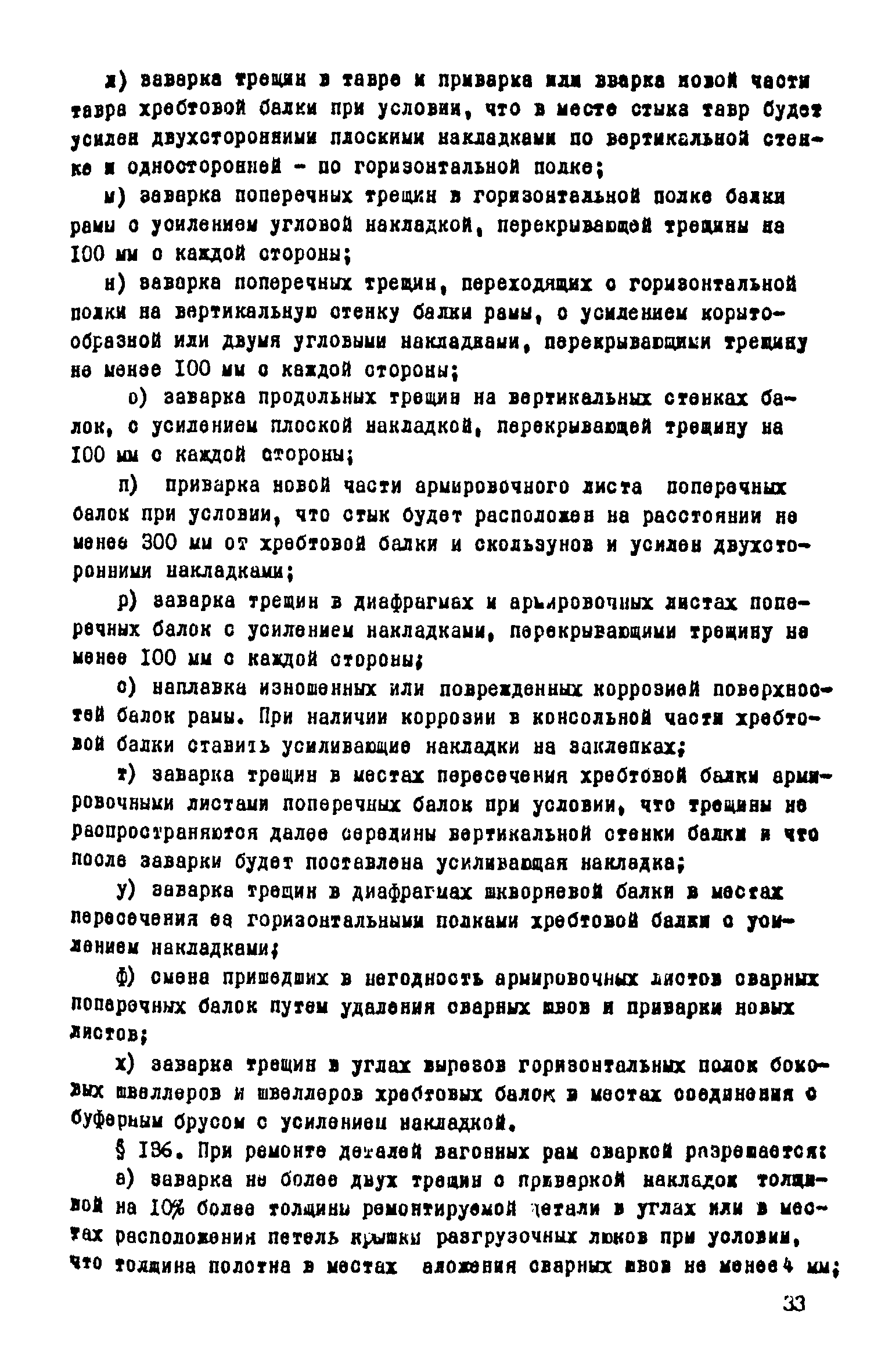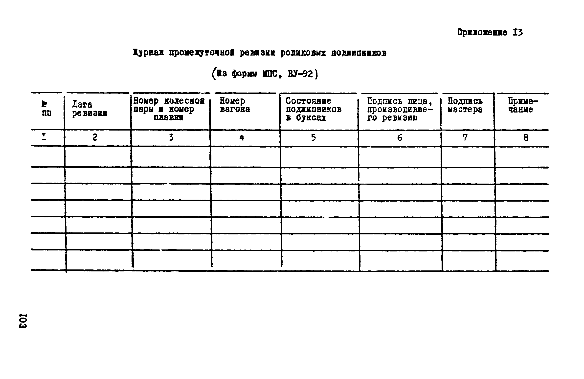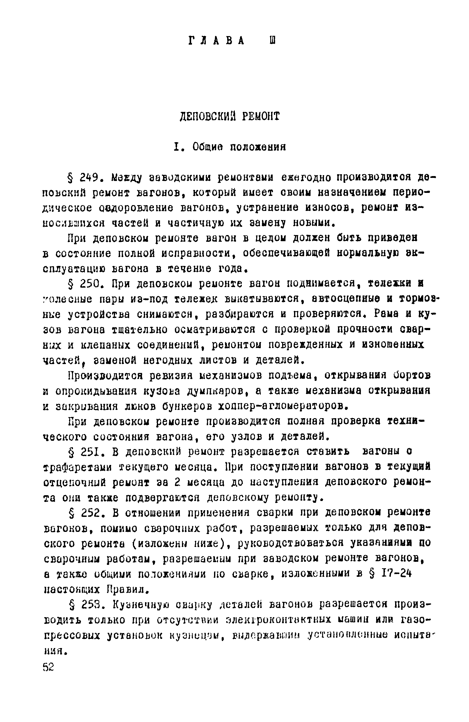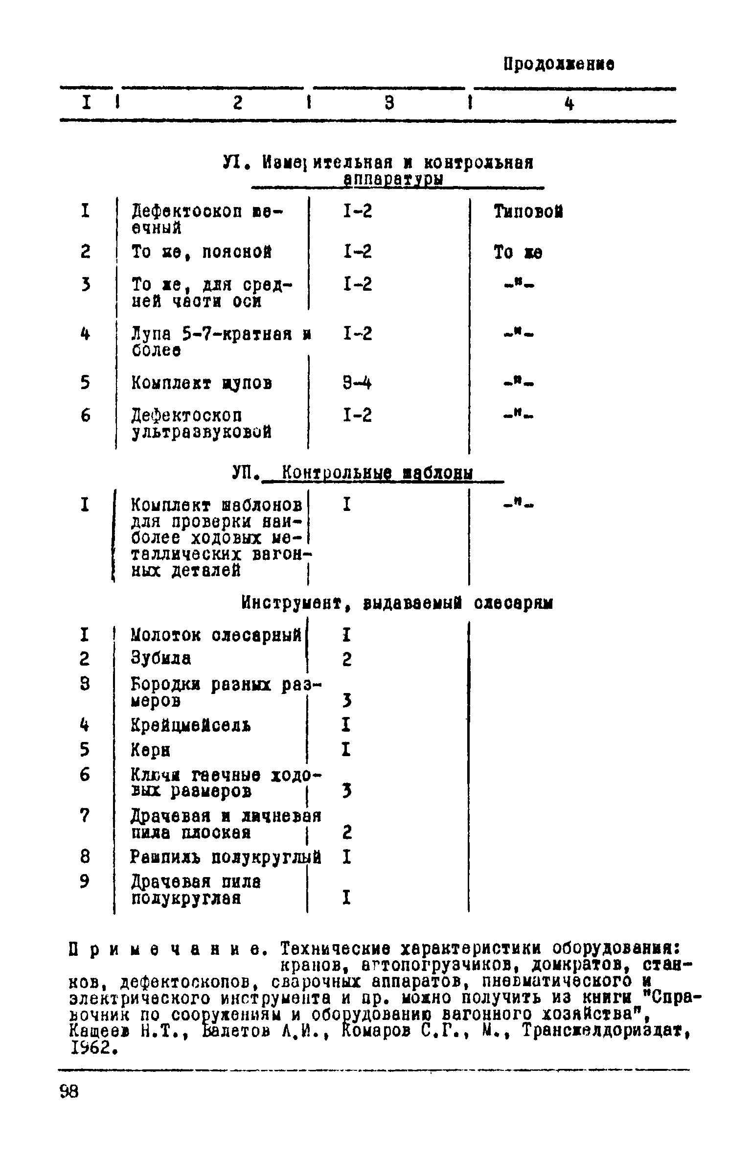 Правила заводского, деповского, профилактического и текущего ремонта вагонов промышленного транспорта колеи 1524 мм| Статус: | справочные материалы, мп, тпр | | Название рус.: | Правила заводского, деповского, профилактического и текущего ремонта вагонов промышленного транспорта колеи 1524 мм | | Дата добавления в базу: | 01.02.2020 | | Дата актуализации: | 01.01.2021 | | Область применения: | Правила ремонта вагонов являются обязательными для всех промышленных предприятий, имеющих и ремонтирующих вагоны серийной постройки (думпкары, хоппер-агломераторы, платформы для перевозки горячего чугуна, полувагоны для перевозки угля, скальных пород, руды и др. грузов), обращающиеся внутри предприятий без выхода на пути железных дорог Министерства путей сообщения. | | Оглавление: | Глава I. Общие положение по ремонту вагонов Глава II. Вагонный ремонт Глава III. Деповский ремонт Глава IV. Профилактический ремонт Глава V. Текущий ремонт вагонов Приложение 1 Перечень официальных изданий Министерства путей сообщения по ремонту и содержанию грузовых вагонов широкой колеи Приложение 2 Наряд-ведомость на ремонт вагонов Приложение 3 Акт о выполненных работах по модернизации вагонов Приложение 4 Допускаемые размеры при ремонте вагонов промышленного транспорта Приложение 5 Таблица наименьших допускаемых диаметров шеек осей колесных пар, подкатываемых под специальные вагоны Приложение 6 Нагрузки и расчетные прогибы для пружин тележек Приложение 7 Перечень вагонных деталей, подлежащих проверке магнитными дефектоскопами Приложение 8 Перечень вагонных деталей, подлежащих испытанию на растяжение Приложение 9 Перечень подъемных механизмов, приспособлений и механизированного инструмента для вагонных депо Приложение 10 Уведомление о приемке вагонов из ремонта Приложение 11 Журнал монтажа роликовых подшипников Приложение 12 Журнал демонтажа роликовых подшипников Приложение 13 Журнал промежуточной ревизии роликовых подшипников Приложение 14 Гарантия на прочность и исправность отремонтированных вагонов и их деталей Приложение 15 Натуральная книжка старшего осмотрщика вагонов на пункте технического осмотра Приложение 16 Уведомление на подачу неисправного вагона для ремонта на ремонтные пути Приложение 17 Справка о тормозах Приложение 18 Перечень подъемных механизмов, приспособлений и инструмента, применяемого при ремонте вагонов (для пунктов технического осмотра вагонов) | | Разработан: | Промтрансниипроект