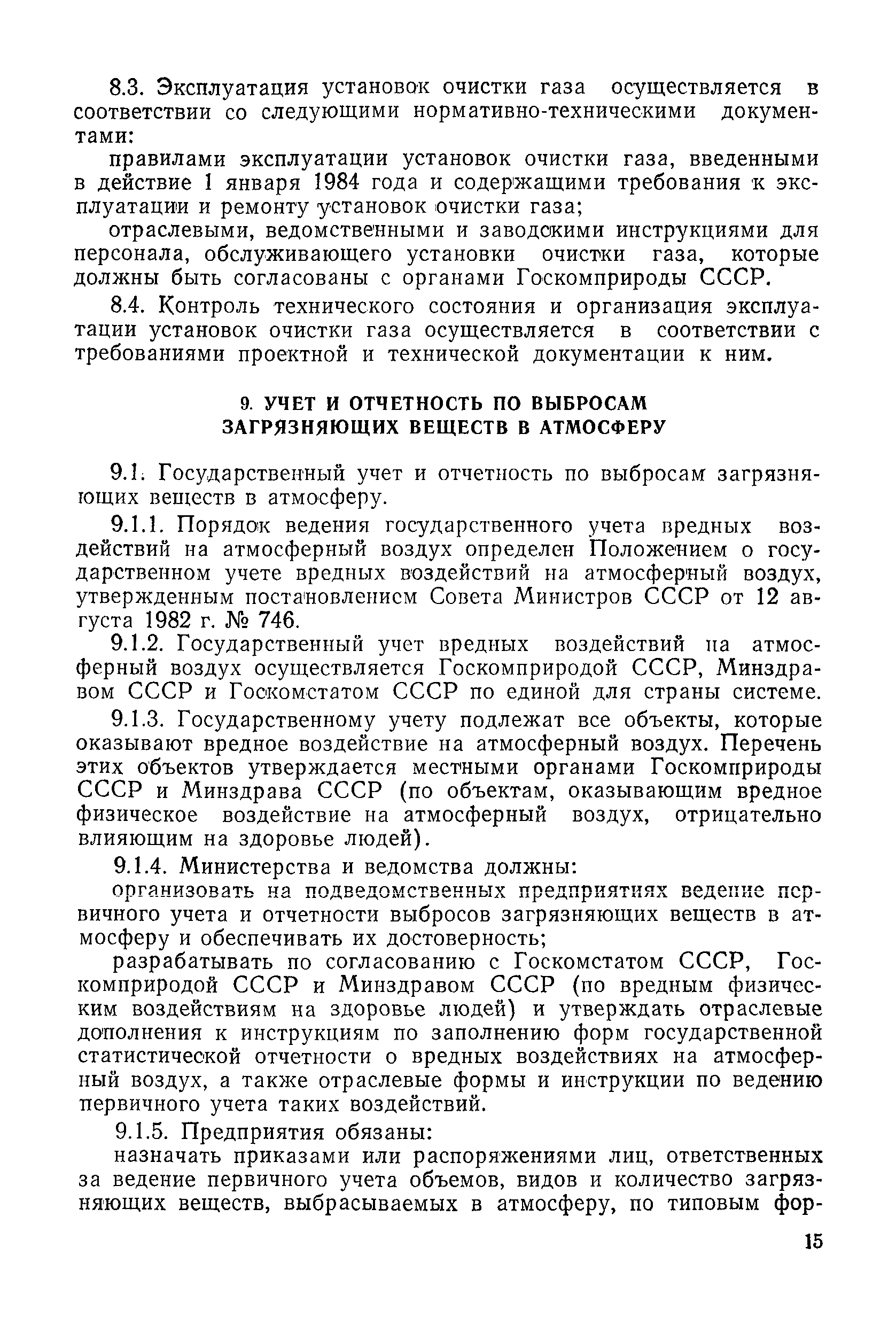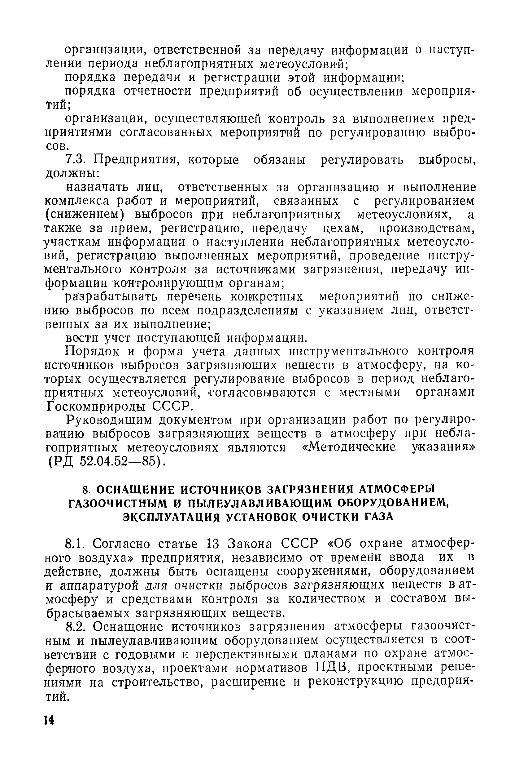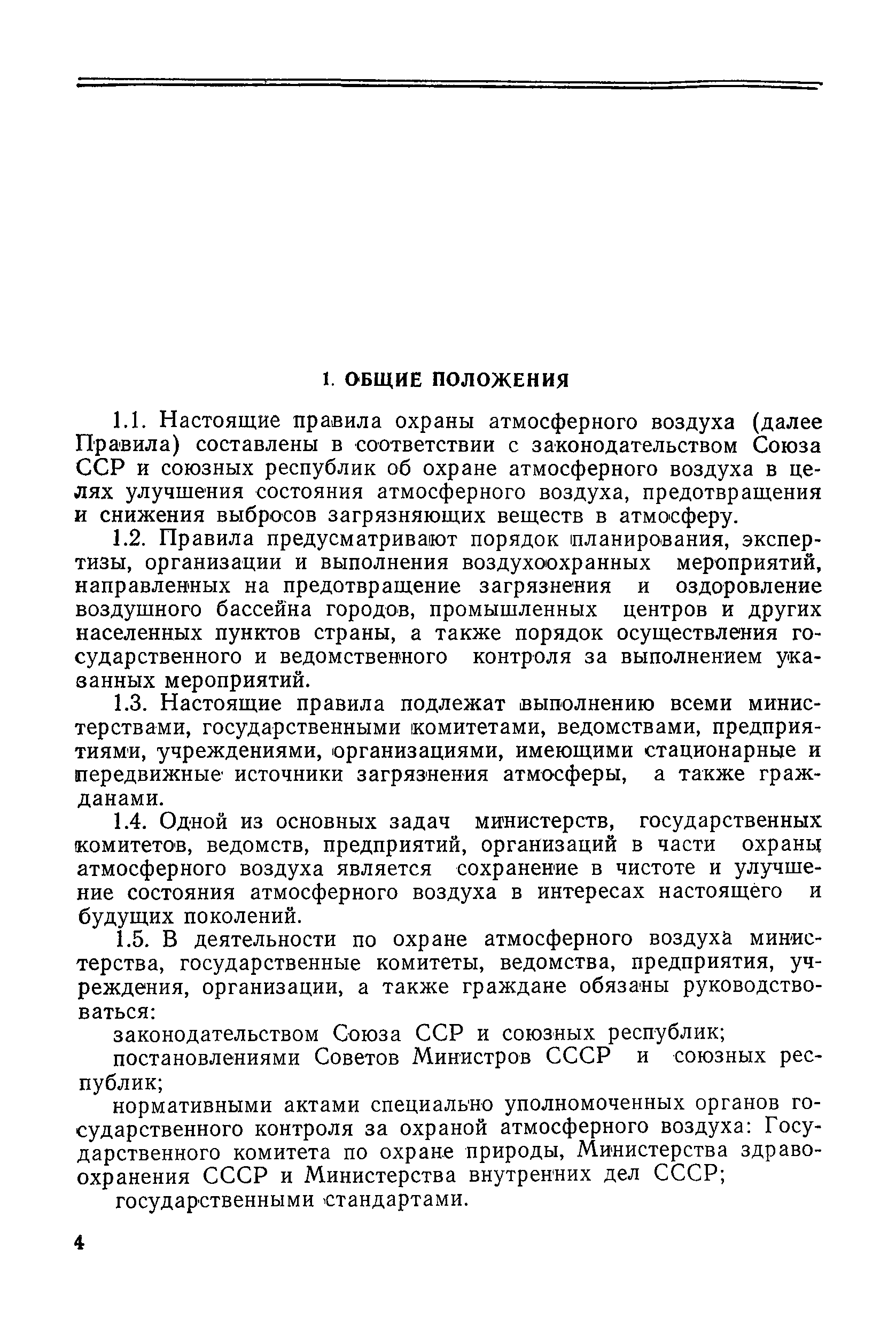 | Область применения: | Правила предусматривают порядок планирования, экспертизы, организации и выполнения воздухоохранных мероприятий, направленных на предотвращение загрязнения и оздоровление воздушного бассейна городов, промышленных центров и других населенных пунктов страны, а также порядок осуществления указанных мероприятий. Правила подлежат выполнению всеми министерствами, государственными комитетами, ведомствами, предприятиями, учреждениями, организациями, имеющими стационарные и передвижные источники загрязнения атмосферы, а также гражданами. |