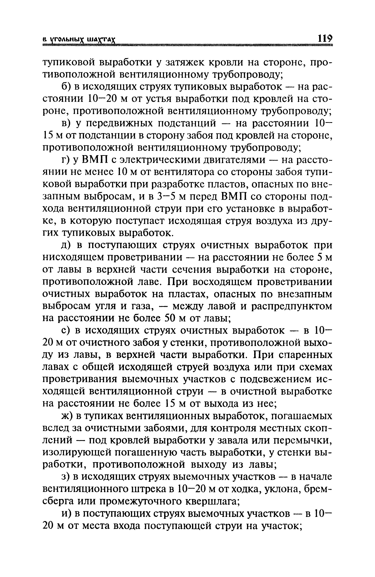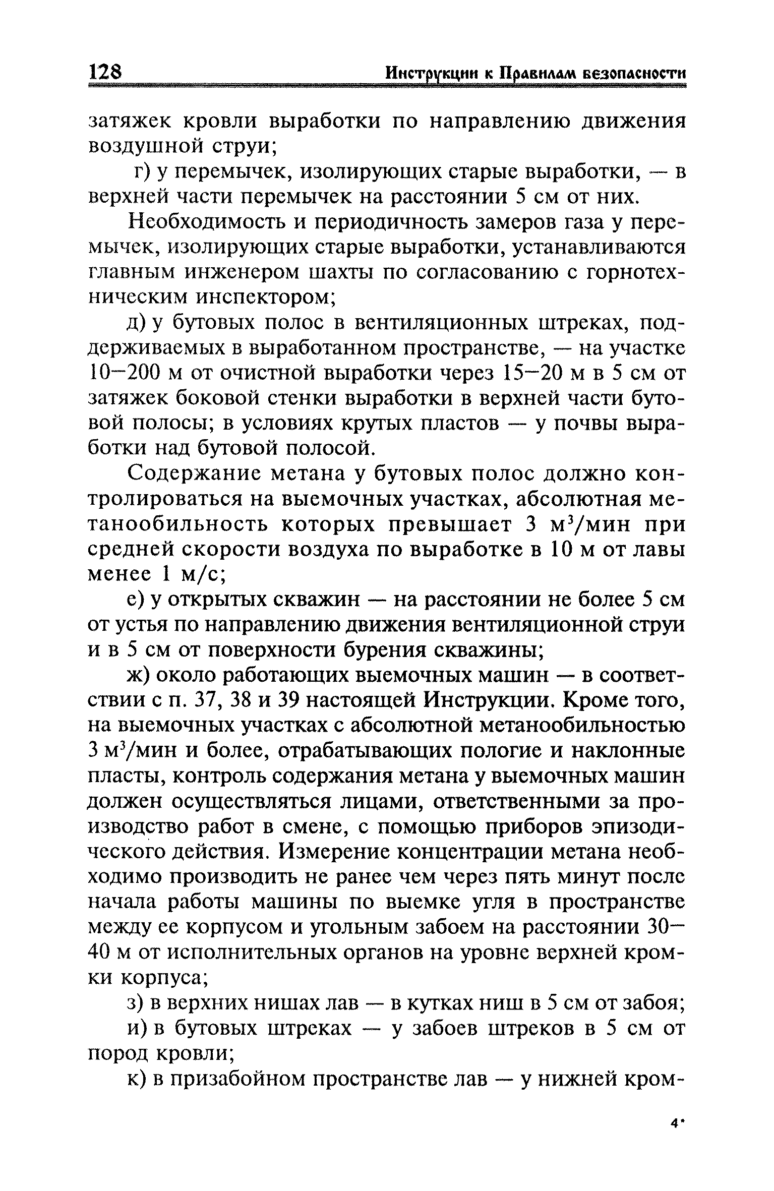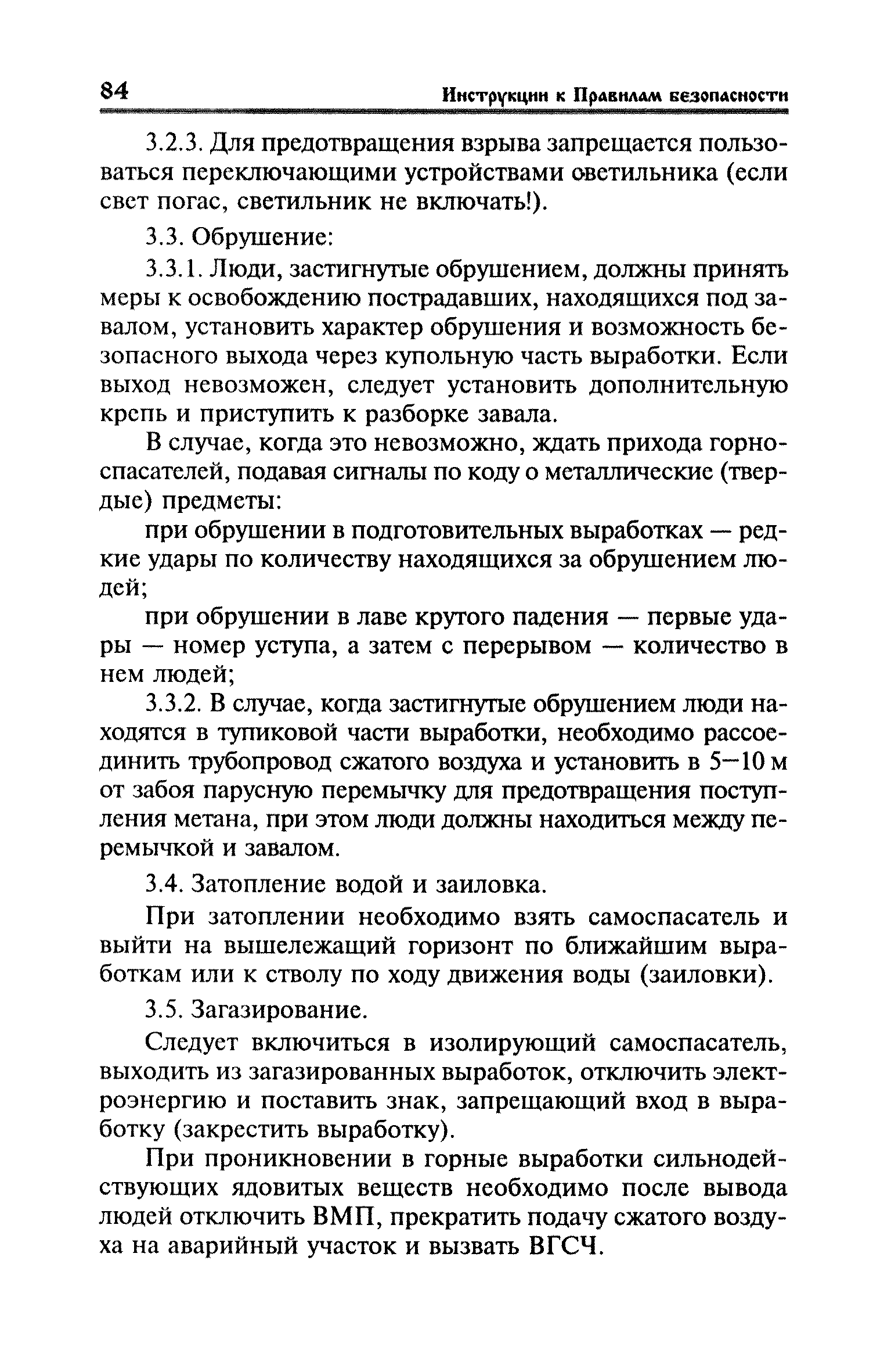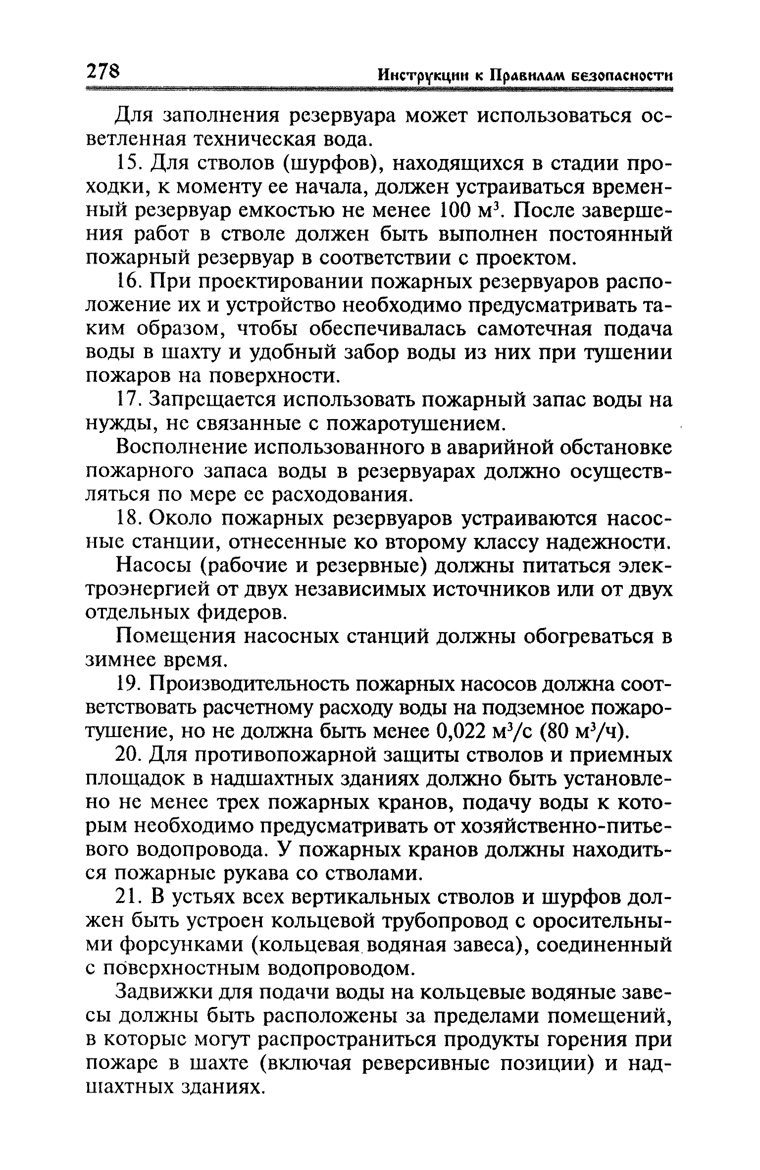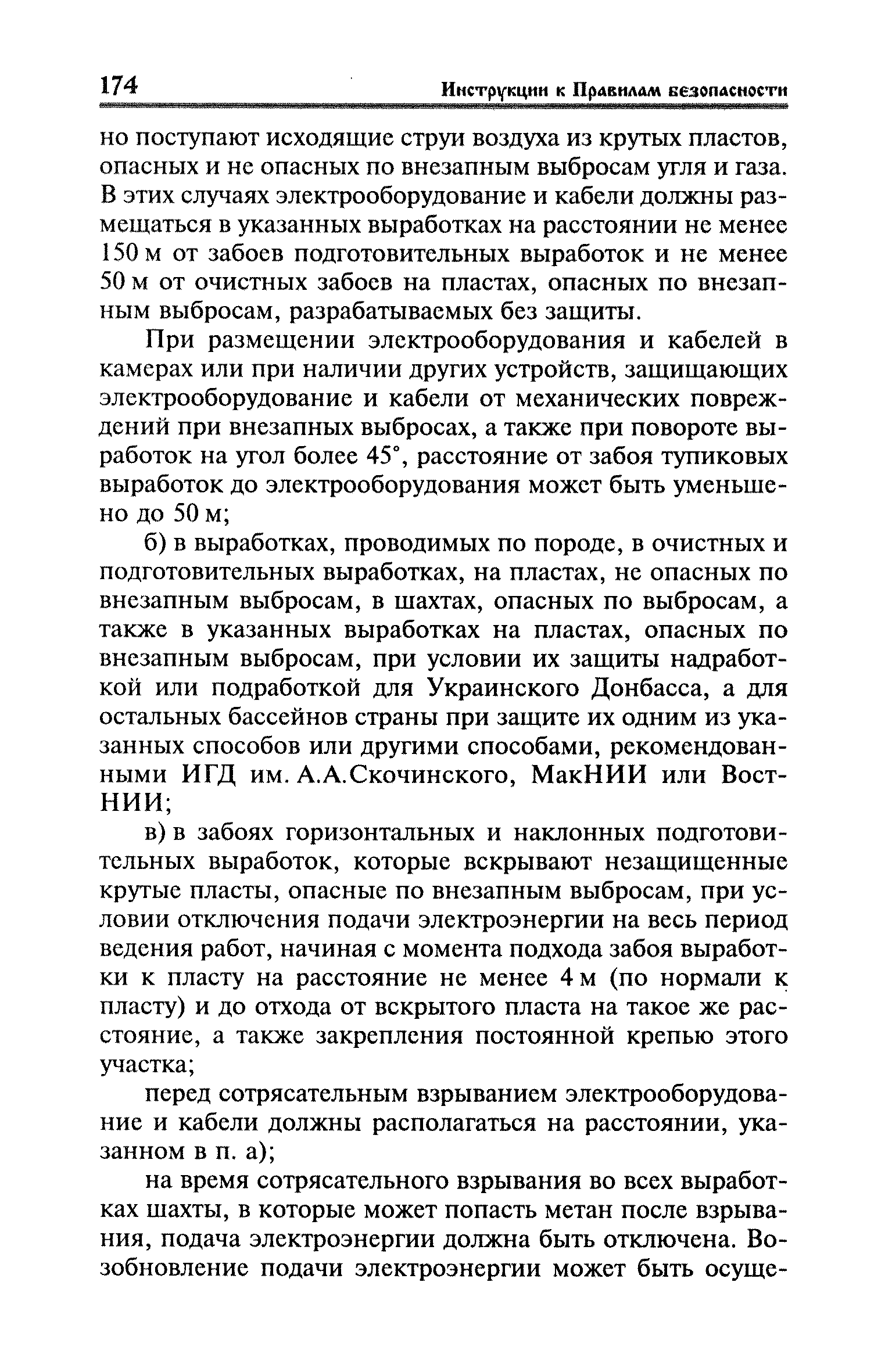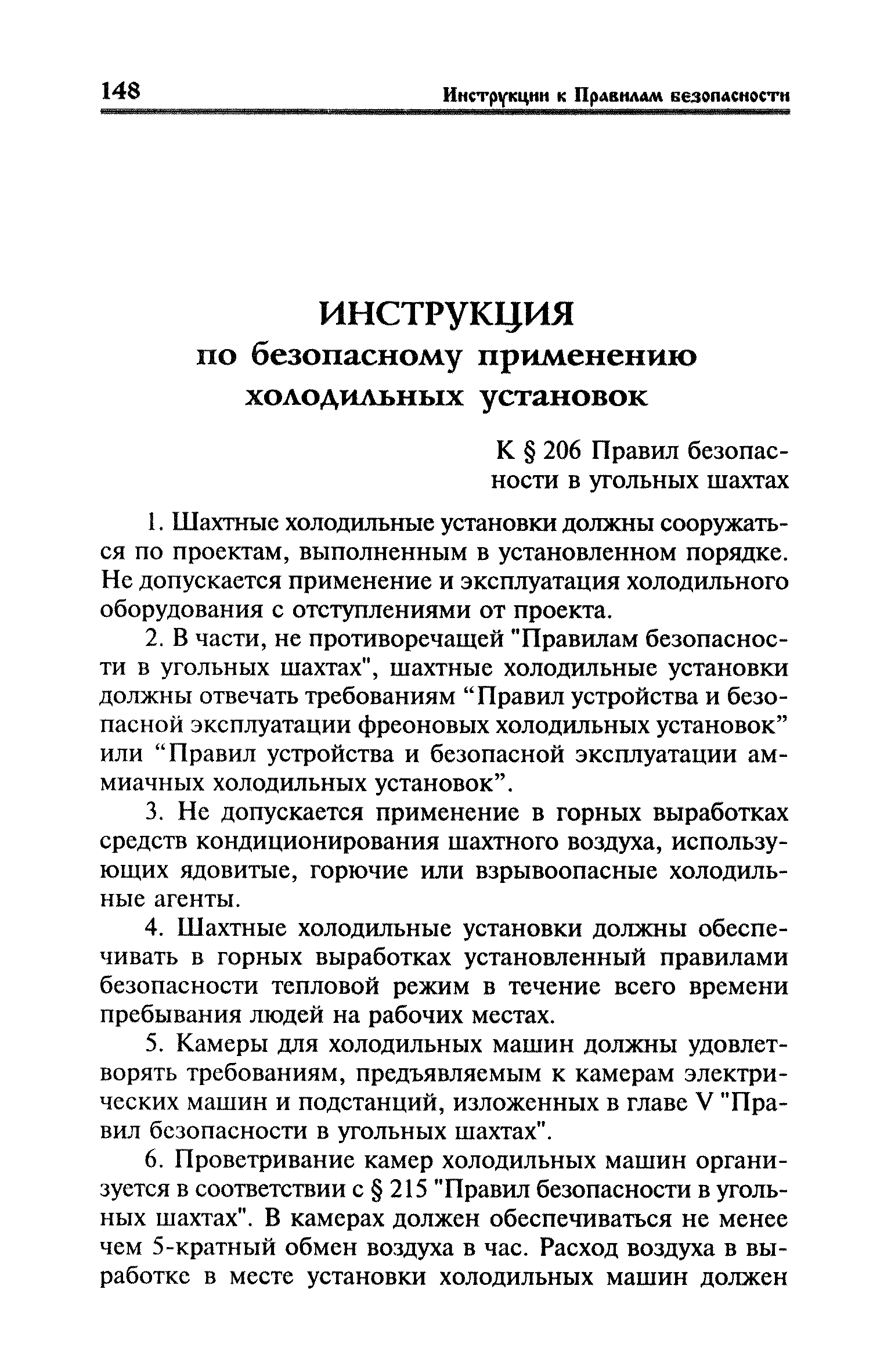 Правила безопасности в угольных шахтах (Инструкции). Книга 2| Статус: | справочные материалы, мп, тпр | | Название рус.: | Правила безопасности в угольных шахтах (Инструкции). Книга 2 | | Дата добавления в базу: | 01.02.2020 | | Дата актуализации: | 01.01.2021 | | Область применения: | В книгу 2 "Правил безопасности в угольных шахтах" включены Инструкции, определяющие вопросы безопасности при ведении горных работ, а также порядок выполнения ряда требований "Правил безопасности в угольных шахтах" (по составлению паспортов выемочных участков, проведению и креплению горных выработок; по ведению огневых работ в подземных выработках и надшахтных зданиях; по обеспечению безопасности при эксплуатации электромеханического оборудования, соблюдению пылегазового режима; противопожарной защите и др.). Приведены формы книг и журналов, ведение которых предусмотрено "Правилами безопасности в угольных шахтах". Все инструкции являются неотъемлемой частью "Правил безопасности в угольных шахтах» и на них полностью распространяются положения, изложенные в главе IХ "Правил безопасности в угольных шахтах" - "Ответственность за нарушение правил безопасности". | | Оглавление: | Инструкция по составлению паспортов выемочного участка проведения и крепления подземных выработок (к § 11, 113) Инструкция по безопасному производству работ в подземных электроустановках (к § 450, 541 - 543) Инструкция по ведению огневых работ в подземных выработках и надшахтных зданиях (к § 57, 533, 570) Инструкция по обучению работников шахт (к § 45, 49, 51) Инструкция по составлению планов ликвидации аварий (к § 16) Инструкция по контролю состава рудничного воздуха, определению газообильности и установлению категорий шахт по метану (к § 204, 273, 275, 276, 278, 220) Инструкция по безопасному применению холодильных установок (к § 206) Инструкция по реверсированию вснтиляционной струи и проверке действия реверсивных устройств вентиляционных установок (к § 222, 223) Инструкция по разгазированию горных выработок, расследованию, учету и предупреждению загазирований (к § 238) Инструкция по составлению вентиляционных планов (к § 272) Инструкция по электроснабжению и применению электрооборудования на шахтах, опасных по внезапным выбросам, разрабатывающих крутые пласты (к § 454) Инструкция по электроснабжению и применению электрооборудования в проветриваемых ВМП тупиковых выработок шахт, опасных по газу(к § 456) Инструкции по применению электрооборудования в рудничном нормальном исполнении и электрооборудования общего назначения в шахтах, опасных по газу и пыли (к § 463) Инструкция по выбору и проверке электрических аппаратов напряжением выше 1200 В (к § 497) Инструкция по определению токов короткого замыкания, выбору и проверке уставок максимальной токовой защиты в сетях напряжением до 1200 В (к § 499) Инструкция по устройству, осмотру и измерению сопротивления шахтных заземлений (к § 522, 550) Инструкция по осмотру и ревизии рудничного взрывобезопасного электрооборудования (к § 542) Инструкция по проверке максимальной токовой защиты шахтных аппаратов (к § 545) Инструкция по противопожарной защите угольных шахт (к § 553) Инструкция по предупреждению самовозгорания, тушению и разборке породных отвалов (к § 666) Книга осмотра стволов шахт (к § 182) Книга осмотра вентиляционных установок и проверки реверсирования (к § 223, 224) Книга учета работы вентиляцион