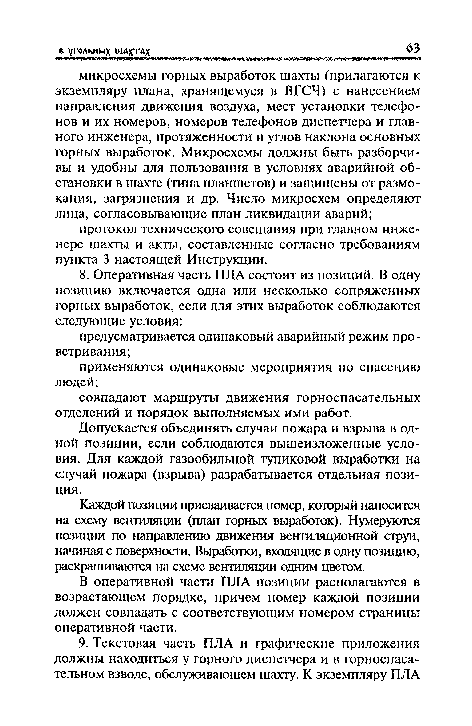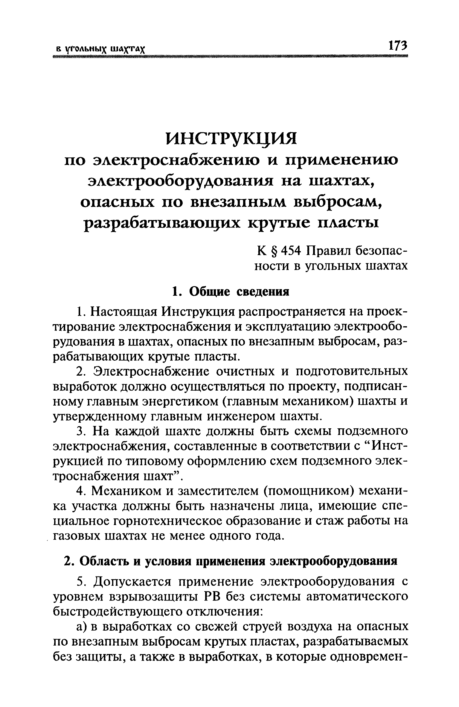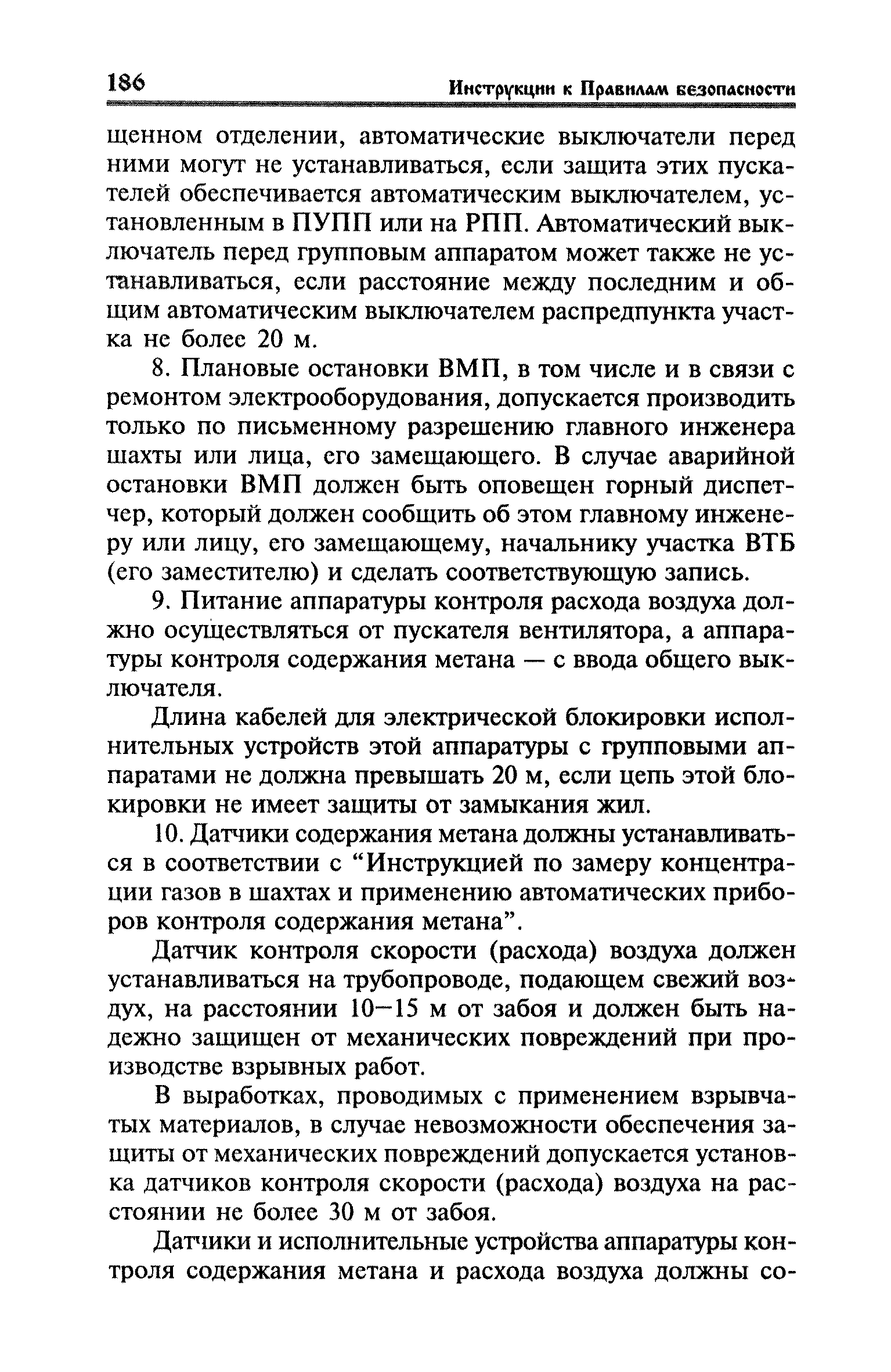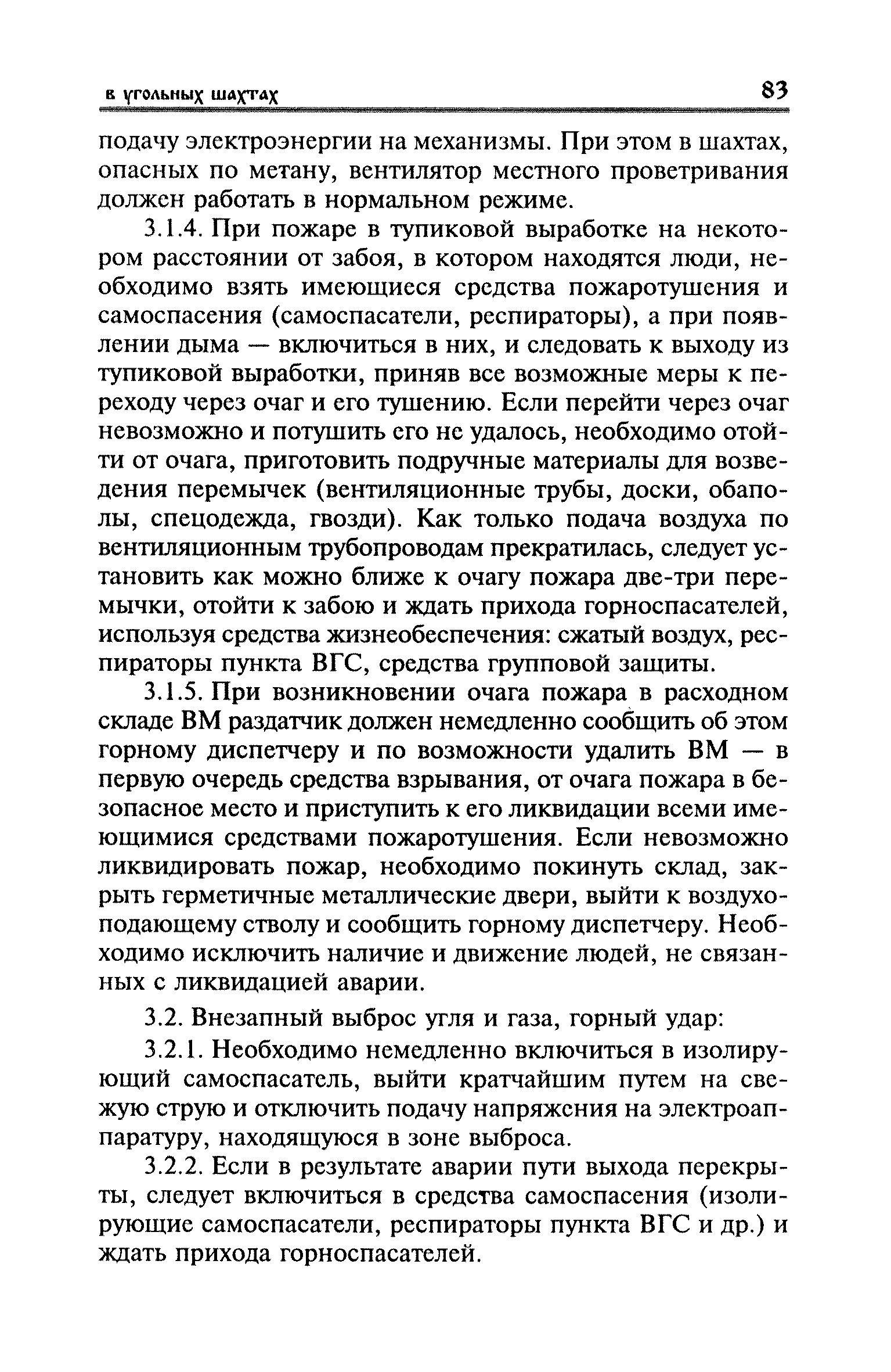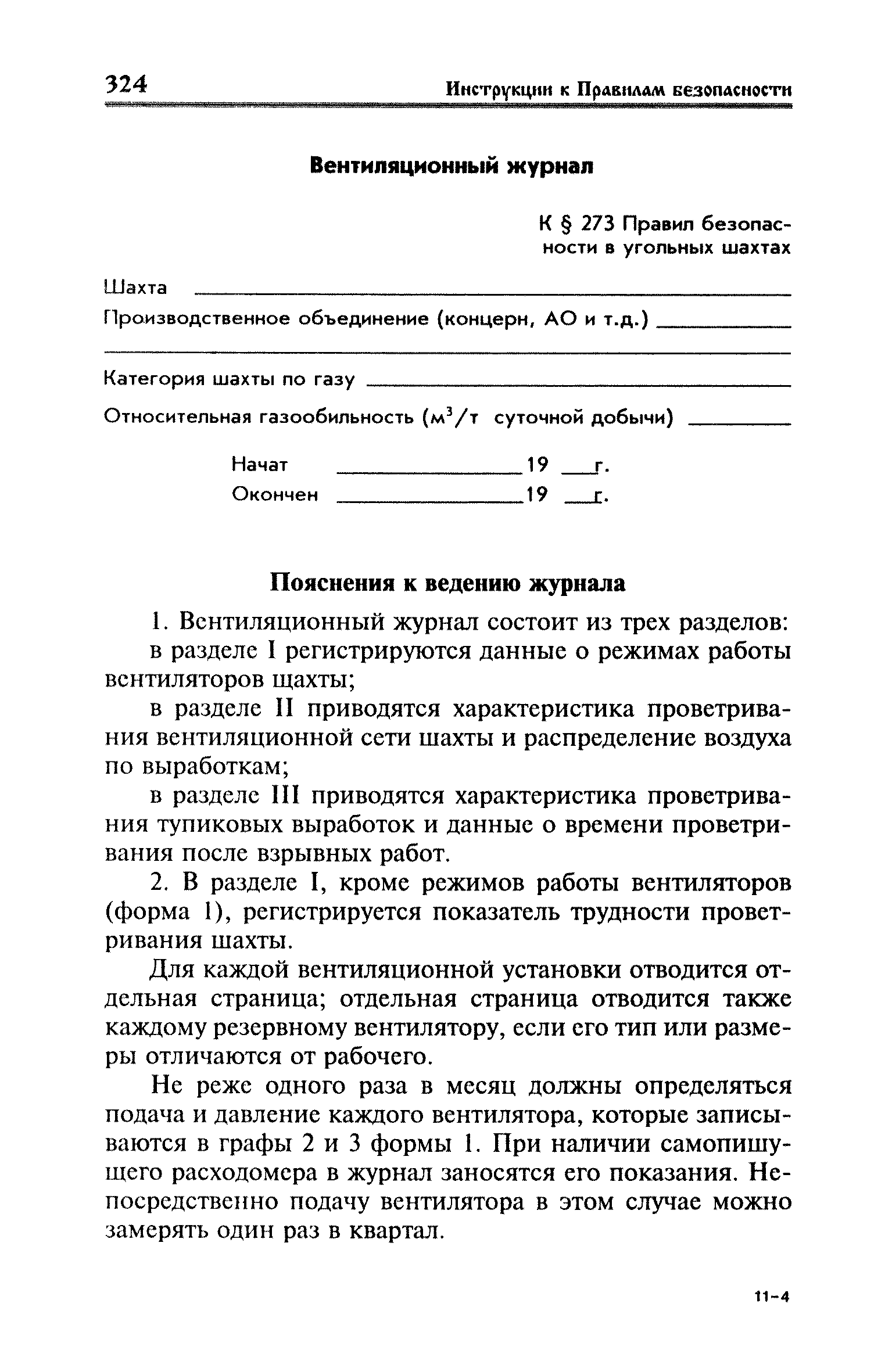 Правила безопасности в угольных шахтах (Инструкции). Книга 2| Статус: | справочные материалы, мп, тпр | | Название рус.: | Правила безопасности в угольных шахтах (Инструкции). Книга 2 | | Дата добавления в базу: | 01.02.2020 | | Дата актуализации: | 01.01.2021 | | Область применения: | В книгу 2 "Правил безопасности в угольных шахтах" включены Инструкции, определяющие вопросы безопасности при ведении горных работ, а также порядок выполнения ряда требований "Правил безопасности в угольных шахтах" (по составлению паспортов выемочных участков, проведению и креплению горных выработок; по ведению огневых работ в подземных выработках и надшахтных зданиях; по обеспечению безопасности при эксплуатации электромеханического оборудования, соблюдению пылегазового режима; противопожарной защите и др.). Приведены формы книг и журналов, ведение которых предусмотрено "Правилами безопасности в угольных шахтах". Все инструкции являются неотъемлемой частью "Правил безопасности в угольных шахтах» и на них полностью распространяются положения, изложенные в главе IХ "Правил безопасности в угольных шахтах" - "Ответственность за нарушение правил безопасности". | | Оглавление: | Инструкция по составлению паспортов выемочного участка проведения и крепления подземных выработок (к § 11, 113) Инструкция по безопасному производству работ в подземных электроустановках (к § 450, 541 - 543) Инструкция по ведению огневых работ в подземных выработках и надшахтных зданиях (к § 57, 533, 570) Инструкция по обучению работников шахт (к § 45, 49, 51) Инструкция по составлению планов ликвидации аварий (к § 16) Инструкция по контролю состава рудничного воздуха, определению газообильности и установлению категорий шахт по метану (к § 204, 273, 275, 276, 278, 220) Инструкция по безопасному применению холодильных установок (к § 206) Инструкция по реверсированию вснтиляционной струи и проверке действия реверсивных устройств вентиляционных установок (к § 222, 223) Инструкция по разгазированию горных выработок, расследованию, учету и предупреждению загазирований (к § 238) Инструкция по составлению вентиляционных планов (к § 272) Инструкция по электроснабжению и применению электрооборудования на шахтах, опасных по внезапным выбросам, разрабатывающих крутые пласты (к § 454) Инструкция по электроснабжению и применению электрооборудования в проветриваемых ВМП тупиковых выработок шахт, опасных по газу(к § 456) Инструкции по применению электрооборудования в рудничном нормальном исполнении и электрооборудования общего назначения в шахтах, опасных по газу и пыли (к § 463) Инструкция по выбору и проверке электрических аппаратов напряжением выше 1200 В (к § 497) Инструкция по определению токов короткого замыкания, выбору и проверке уставок максимальной токовой защиты в сетях напряжением до 1200 В (к § 499) Инструкция по устройству, осмотру и измерению сопротивления шахтных заземлений (к § 522, 550) Инструкция по осмотру и ревизии рудничного взрывобезопасного электрооборудования (к § 542) Инструкция по проверке максимальной токовой защиты шахтных аппаратов (к § 545) Инструкция по противопожарной защите угольных шахт (к § 553) Инструкция по предупреждению самовозгорания, тушению и разборке породных отвалов (к § 666) Книга осмотра стволов шахт (к § 182) Книга осмотра вентиляционных установок и проверки реверсирования (к § 223, 224) Книга учета работы вентиляцион