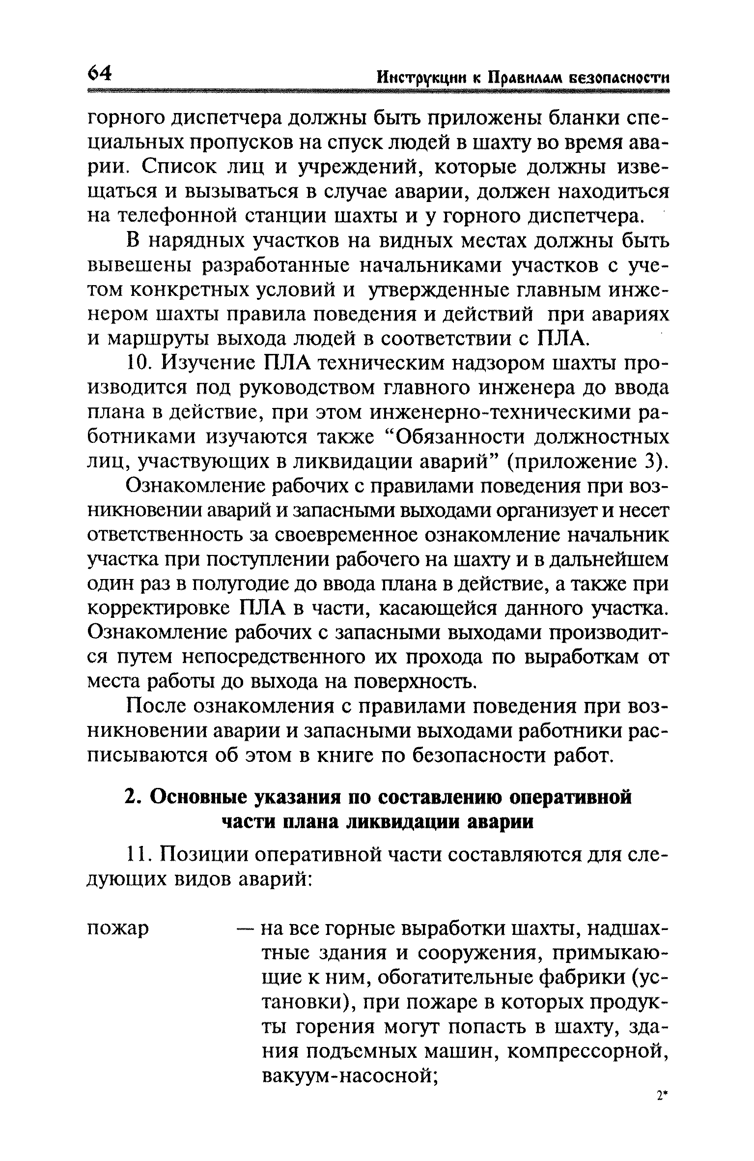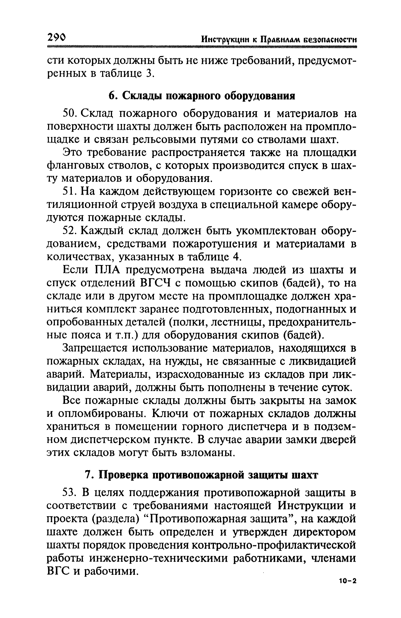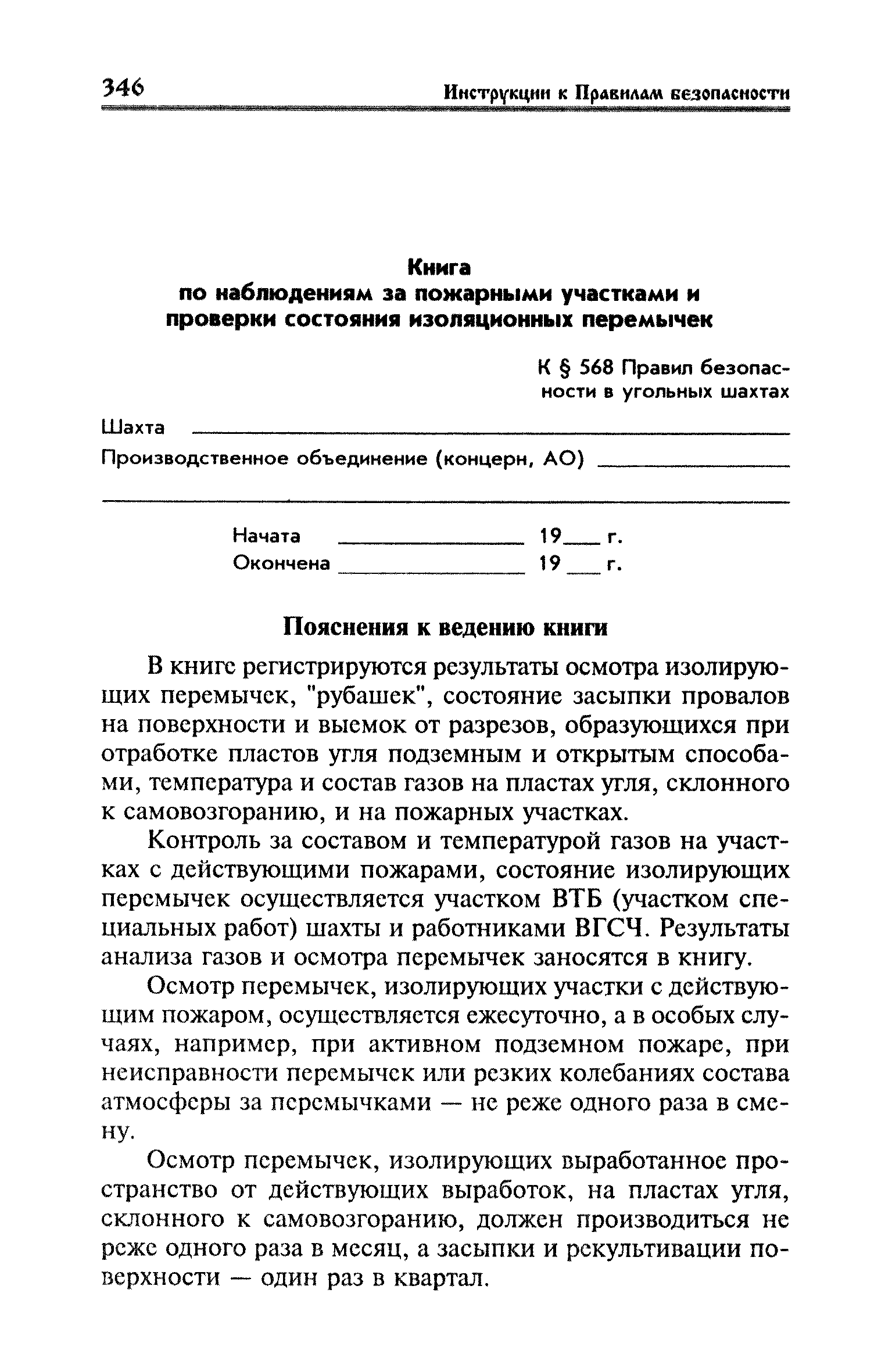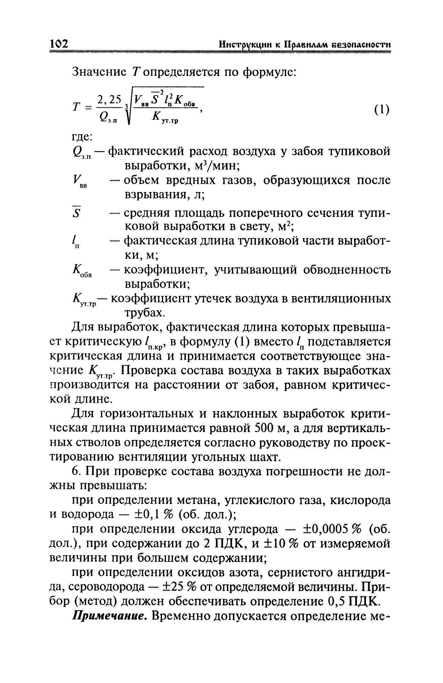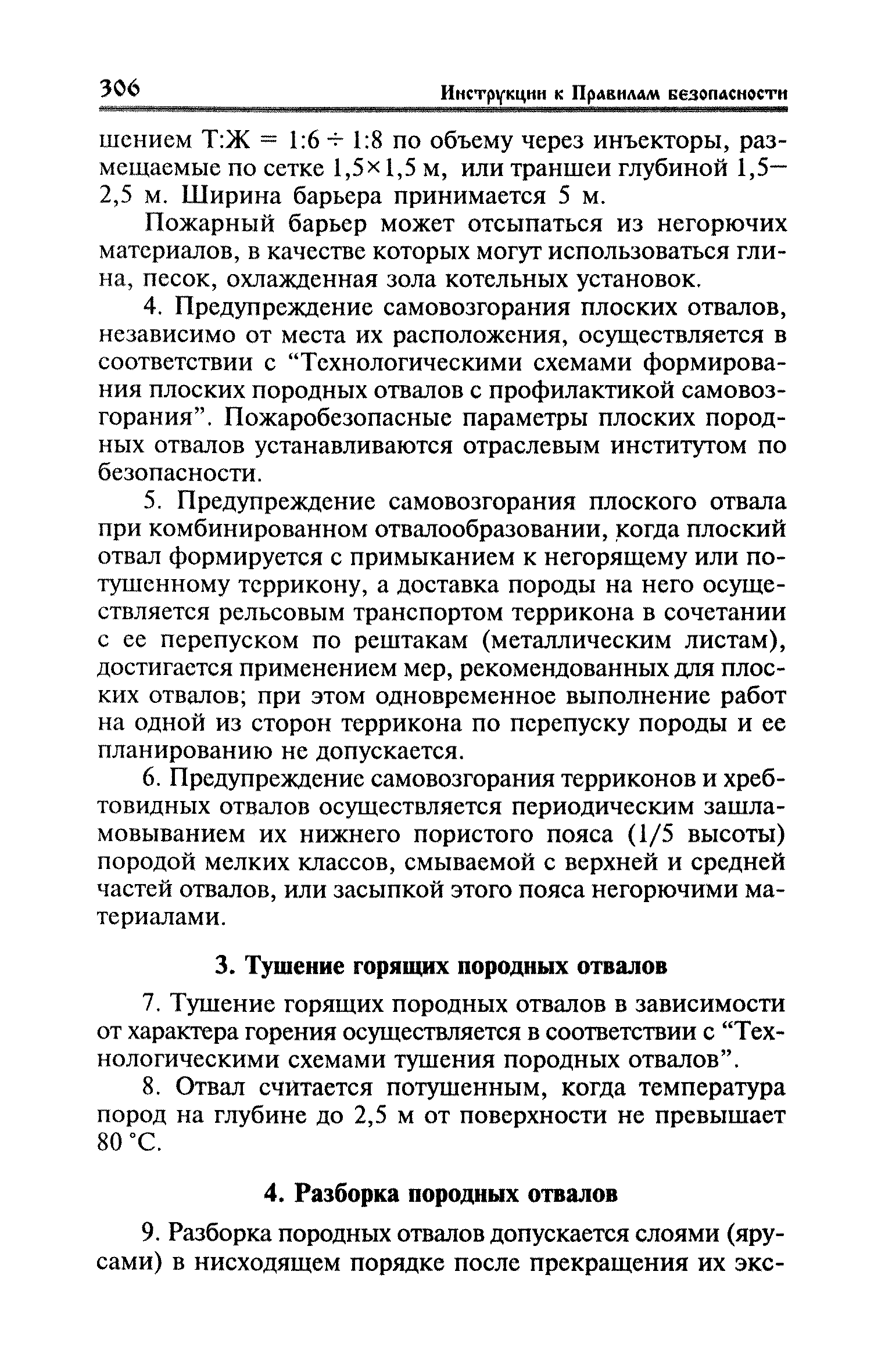 Правила безопасности в угольных шахтах (Инструкции). Книга 2| Статус: | справочные материалы, мп, тпр | | Название рус.: | Правила безопасности в угольных шахтах (Инструкции). Книга 2 | | Дата добавления в базу: | 01.02.2020 | | Дата актуализации: | 01.01.2021 | | Область применения: | В книгу 2 "Правил безопасности в угольных шахтах" включены Инструкции, определяющие вопросы безопасности при ведении горных работ, а также порядок выполнения ряда требований "Правил безопасности в угольных шахтах" (по составлению паспортов выемочных участков, проведению и креплению горных выработок; по ведению огневых работ в подземных выработках и надшахтных зданиях; по обеспечению безопасности при эксплуатации электромеханического оборудования, соблюдению пылегазового режима; противопожарной защите и др.). Приведены формы книг и журналов, ведение которых предусмотрено "Правилами безопасности в угольных шахтах". Все инструкции являются неотъемлемой частью "Правил безопасности в угольных шахтах» и на них полностью распространяются положения, изложенные в главе IХ "Правил безопасности в угольных шахтах" - "Ответственность за нарушение правил безопасности". | | Оглавление: | Инструкция по составлению паспортов выемочного участка проведения и крепления подземных выработок (к § 11, 113) Инструкция по безопасному производству работ в подземных электроустановках (к § 450, 541 - 543) Инструкция по ведению огневых работ в подземных выработках и надшахтных зданиях (к § 57, 533, 570) Инструкция по обучению работников шахт (к § 45, 49, 51) Инструкция по составлению планов ликвидации аварий (к § 16) Инструкция по контролю состава рудничного воздуха, определению газообильности и установлению категорий шахт по метану (к § 204, 273, 275, 276, 278, 220) Инструкция по безопасному применению холодильных установок (к § 206) Инструкция по реверсированию вснтиляционной струи и проверке действия реверсивных устройств вентиляционных установок (к § 222, 223) Инструкция по разгазированию горных выработок, расследованию, учету и предупреждению загазирований (к § 238) Инструкция по составлению вентиляционных планов (к § 272) Инструкция по электроснабжению и применению электрооборудования на шахтах, опасных по внезапным выбросам, разрабатывающих крутые пласты (к § 454) Инструкция по электроснабжению и применению электрооборудования в проветриваемых ВМП тупиковых выработок шахт, опасных по газу(к § 456) Инструкции по применению электрооборудования в рудничном нормальном исполнении и электрооборудования общего назначения в шахтах, опасных по газу и пыли (к § 463) Инструкция по выбору и проверке электрических аппаратов напряжением выше 1200 В (к § 497) Инструкция по определению токов короткого замыкания, выбору и проверке уставок максимальной токовой защиты в сетях напряжением до 1200 В (к § 499) Инструкция по устройству, осмотру и измерению сопротивления шахтных заземлений (к § 522, 550) Инструкция по осмотру и ревизии рудничного взрывобезопасного электрооборудования (к § 542) Инструкция по проверке максимальной токовой защиты шахтных аппаратов (к § 545) Инструкция по противопожарной защите угольных шахт (к § 553) Инструкция по предупреждению самовозгорания, тушению и разборке породных отвалов (к § 666) Книга осмотра стволов шахт (к § 182) Книга осмотра вентиляционных установок и проверки реверсирования (к § 223, 224) Книга учета работы вентиляцион