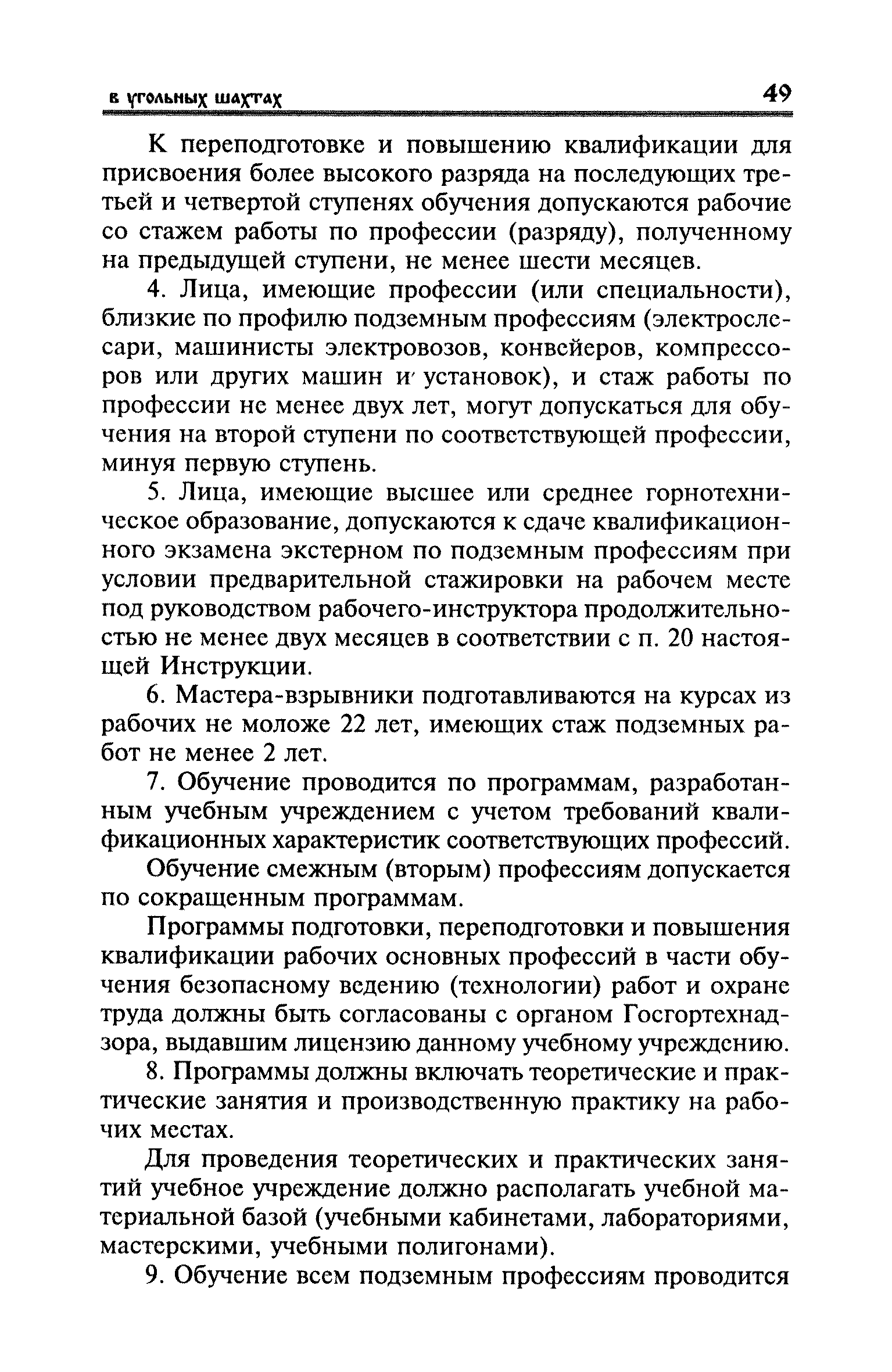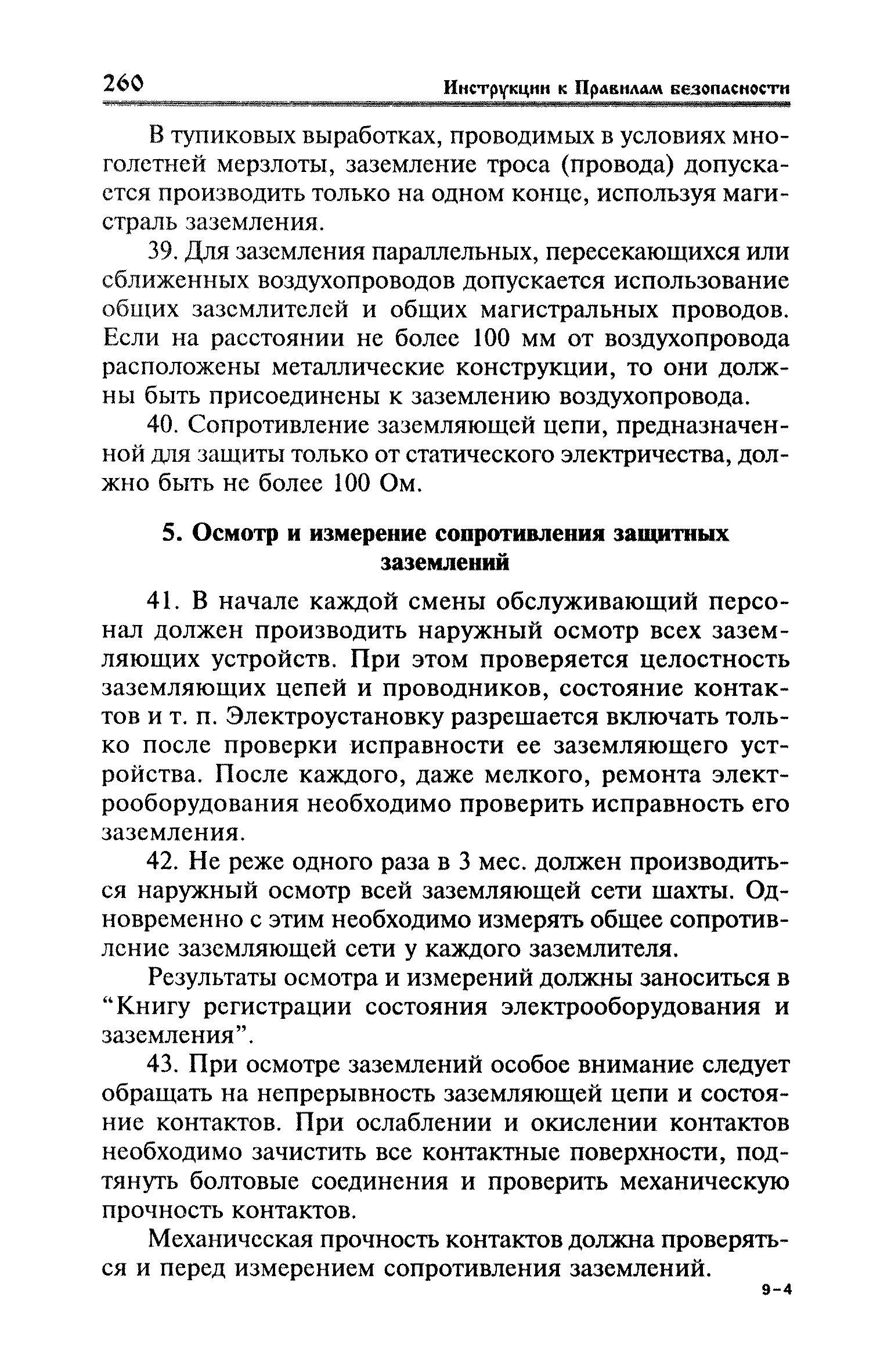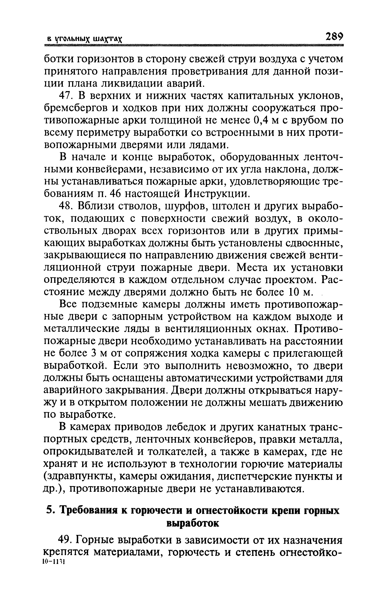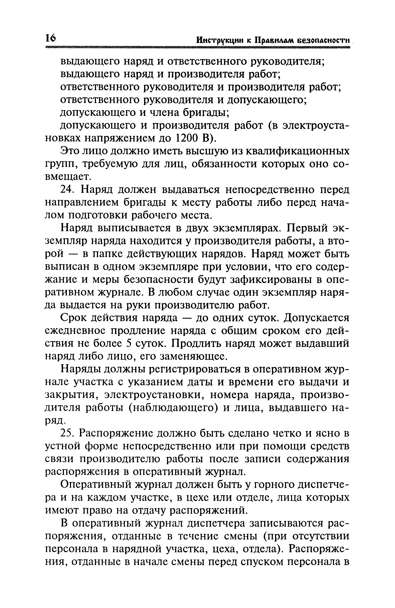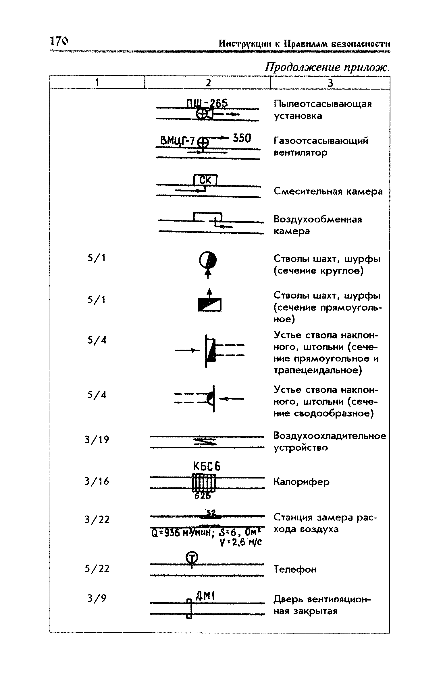 Правила безопасности в угольных шахтах (Инструкции). Книга 2| Статус: | справочные материалы, мп, тпр | | Название рус.: | Правила безопасности в угольных шахтах (Инструкции). Книга 2 | | Дата добавления в базу: | 01.02.2020 | | Дата актуализации: | 01.01.2021 | | Область применения: | В книгу 2 "Правил безопасности в угольных шахтах" включены Инструкции, определяющие вопросы безопасности при ведении горных работ, а также порядок выполнения ряда требований "Правил безопасности в угольных шахтах" (по составлению паспортов выемочных участков, проведению и креплению горных выработок; по ведению огневых работ в подземных выработках и надшахтных зданиях; по обеспечению безопасности при эксплуатации электромеханического оборудования, соблюдению пылегазового режима; противопожарной защите и др.). Приведены формы книг и журналов, ведение которых предусмотрено "Правилами безопасности в угольных шахтах". Все инструкции являются неотъемлемой частью "Правил безопасности в угольных шахтах» и на них полностью распространяются положения, изложенные в главе IХ "Правил безопасности в угольных шахтах" - "Ответственность за нарушение правил безопасности". | | Оглавление: | Инструкция по составлению паспортов выемочного участка проведения и крепления подземных выработок (к § 11, 113) Инструкция по безопасному производству работ в подземных электроустановках (к § 450, 541 - 543) Инструкция по ведению огневых работ в подземных выработках и надшахтных зданиях (к § 57, 533, 570) Инструкция по обучению работников шахт (к § 45, 49, 51) Инструкция по составлению планов ликвидации аварий (к § 16) Инструкция по контролю состава рудничного воздуха, определению газообильности и установлению категорий шахт по метану (к § 204, 273, 275, 276, 278, 220) Инструкция по безопасному применению холодильных установок (к § 206) Инструкция по реверсированию вснтиляционной струи и проверке действия реверсивных устройств вентиляционных установок (к § 222, 223) Инструкция по разгазированию горных выработок, расследованию, учету и предупреждению загазирований (к § 238) Инструкция по составлению вентиляционных планов (к § 272) Инструкция по электроснабжению и применению электрооборудования на шахтах, опасных по внезапным выбросам, разрабатывающих крутые пласты (к § 454) Инструкция по электроснабжению и применению электрооборудования в проветриваемых ВМП тупиковых выработок шахт, опасных по газу(к § 456) Инструкции по применению электрооборудования в рудничном нормальном исполнении и электрооборудования общего назначения в шахтах, опасных по газу и пыли (к § 463) Инструкция по выбору и проверке электрических аппаратов напряжением выше 1200 В (к § 497) Инструкция по определению токов короткого замыкания, выбору и проверке уставок максимальной токовой защиты в сетях напряжением до 1200 В (к § 499) Инструкция по устройству, осмотру и измерению сопротивления шахтных заземлений (к § 522, 550) Инструкция по осмотру и ревизии рудничного взрывобезопасного электрооборудования (к § 542) Инструкция по проверке максимальной токовой защиты шахтных аппаратов (к § 545) Инструкция по противопожарной защите угольных шахт (к § 553) Инструкция по предупреждению самовозгорания, тушению и разборке породных отвалов (к § 666) Книга осмотра стволов шахт (к § 182) Книга осмотра вентиляционных установок и проверки реверсирования (к § 223, 224) Книга учета работы вентиляцион