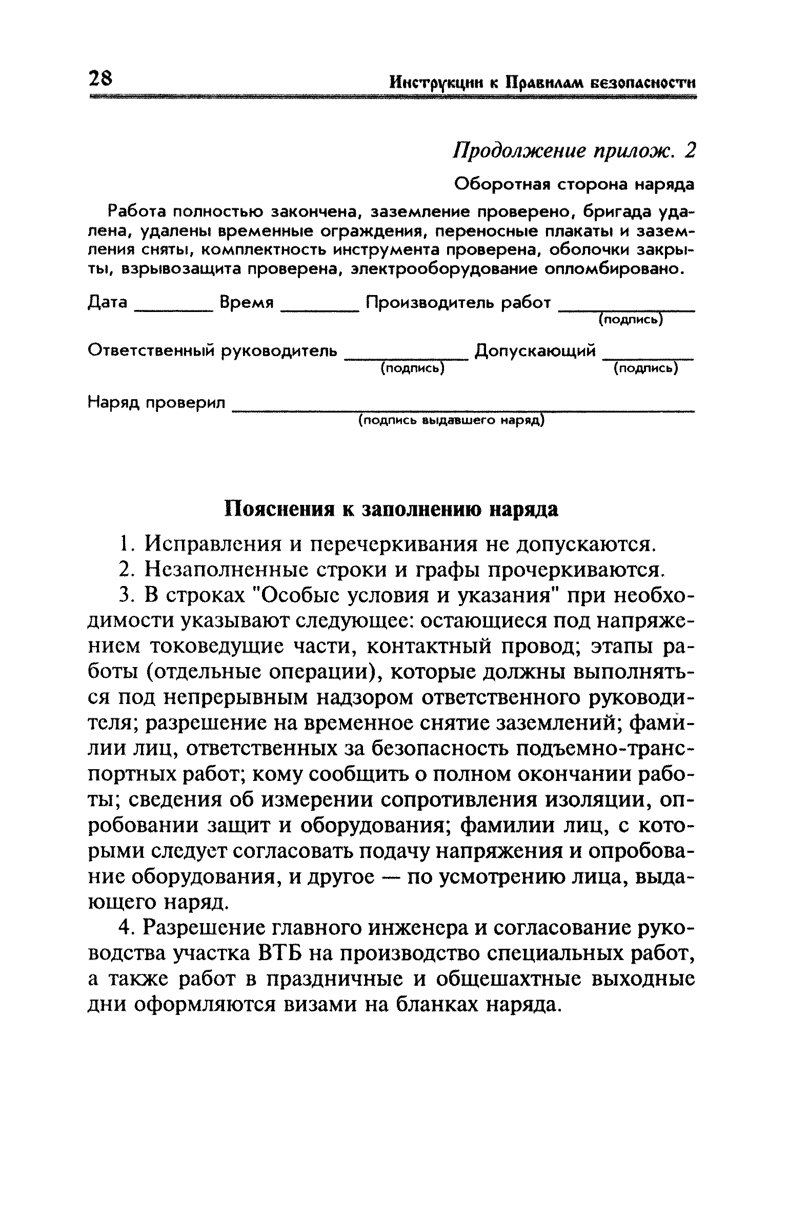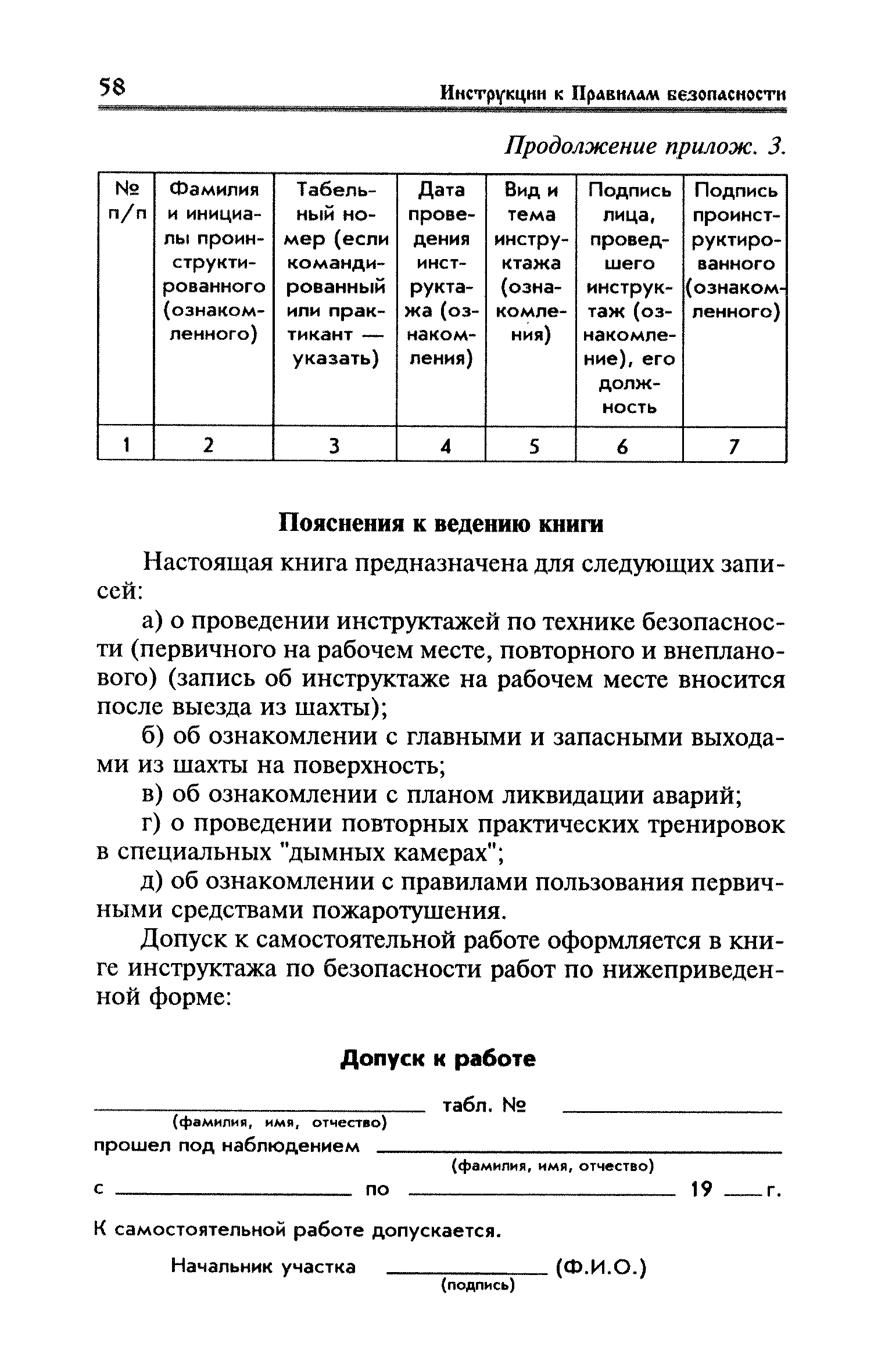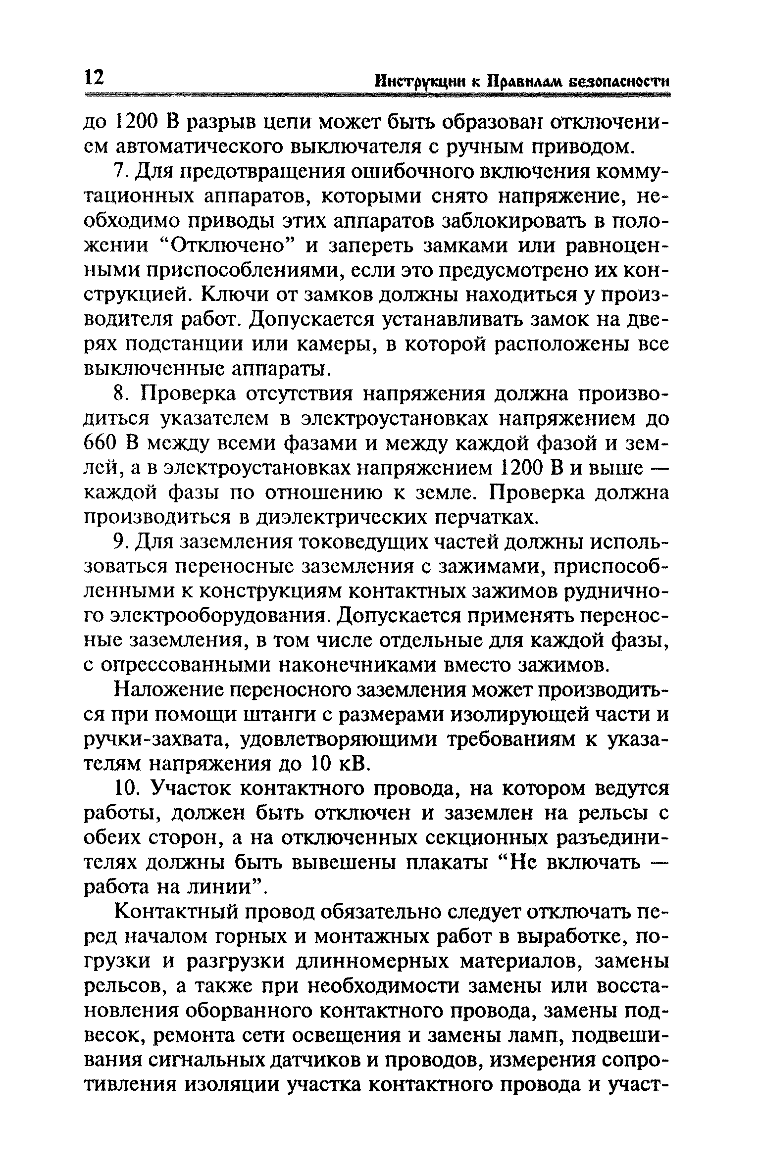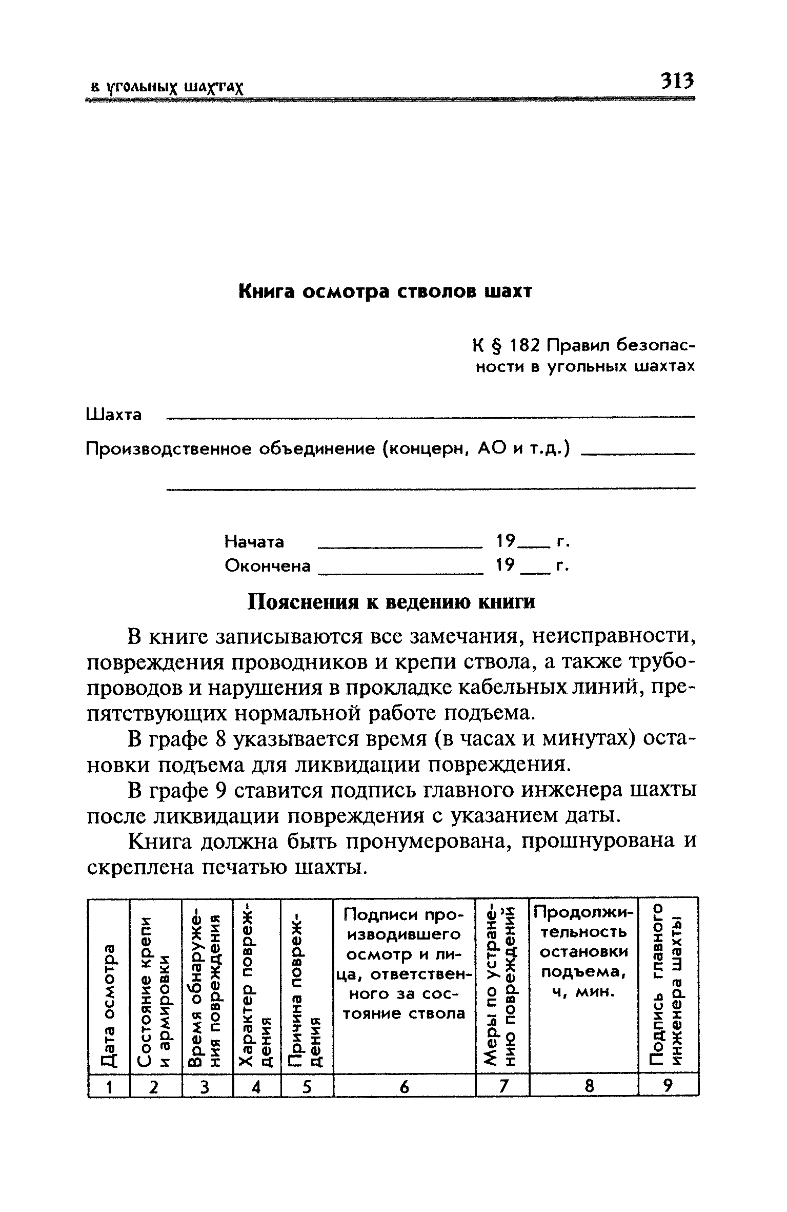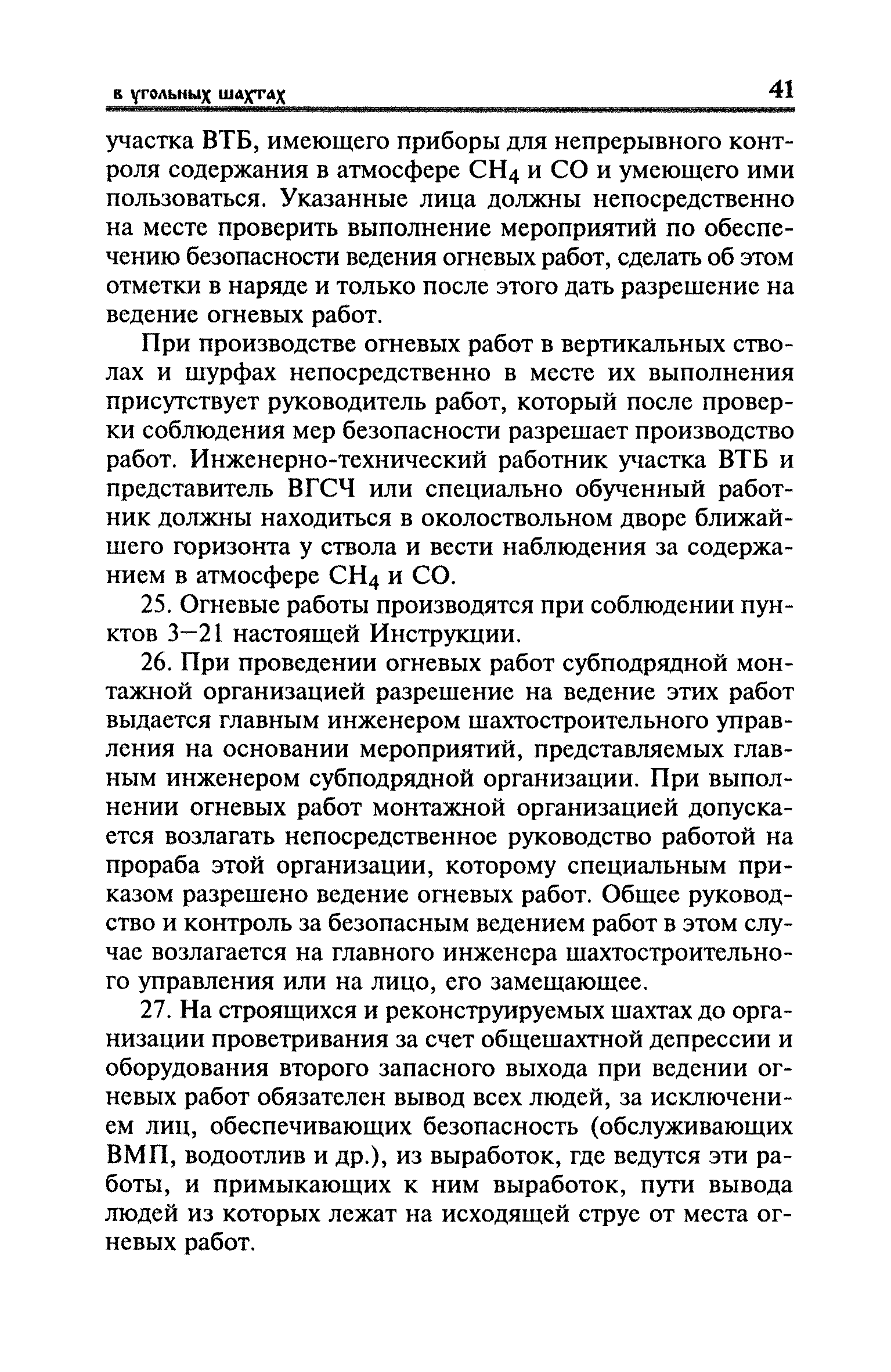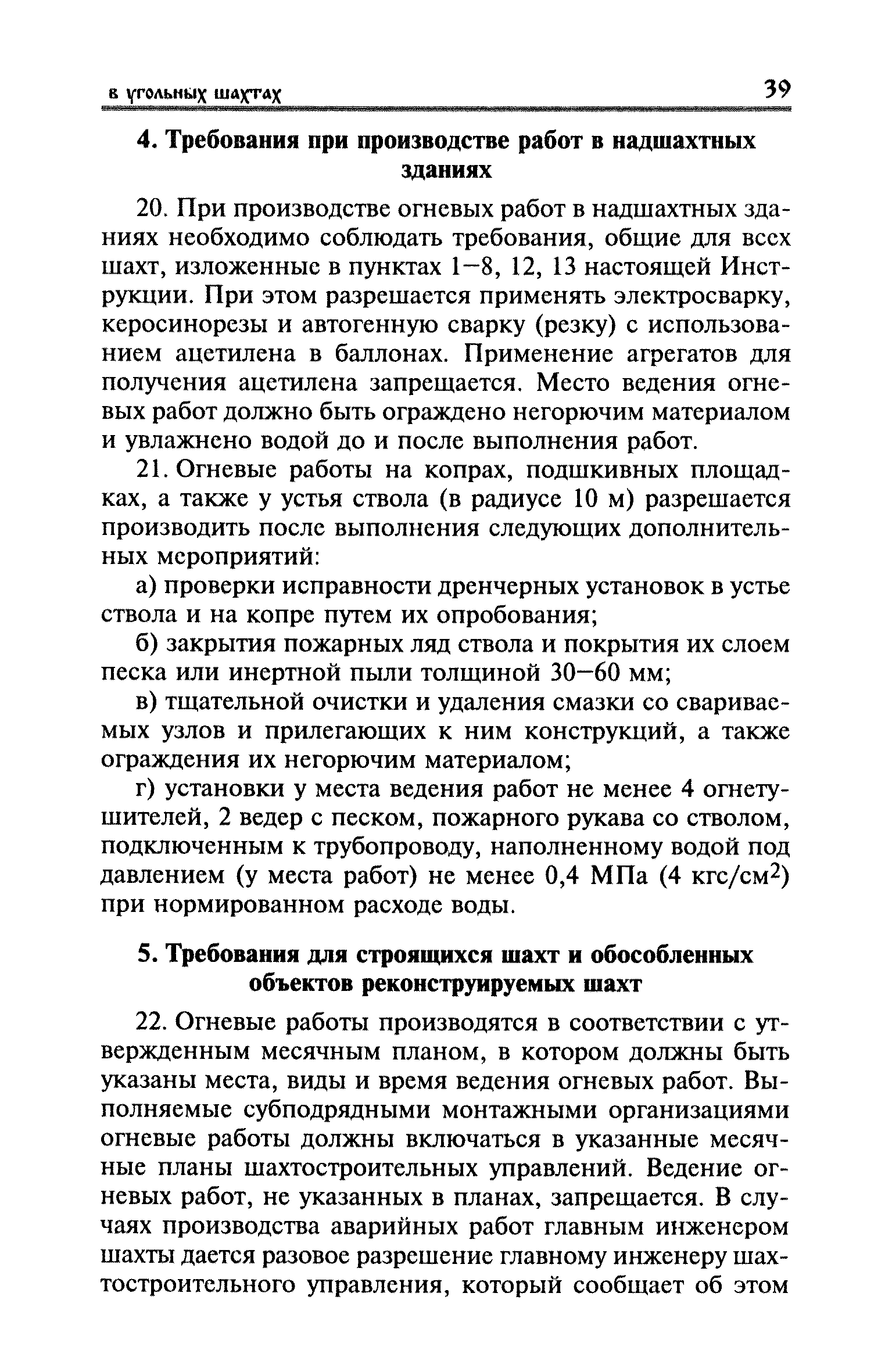 Правила безопасности в угольных шахтах (Инструкции). Книга 2| Статус: | справочные материалы, мп, тпр | | Название рус.: | Правила безопасности в угольных шахтах (Инструкции). Книга 2 | | Дата добавления в базу: | 01.02.2020 | | Дата актуализации: | 01.01.2021 | | Область применения: | В книгу 2 "Правил безопасности в угольных шахтах" включены Инструкции, определяющие вопросы безопасности при ведении горных работ, а также порядок выполнения ряда требований "Правил безопасности в угольных шахтах" (по составлению паспортов выемочных участков, проведению и креплению горных выработок; по ведению огневых работ в подземных выработках и надшахтных зданиях; по обеспечению безопасности при эксплуатации электромеханического оборудования, соблюдению пылегазового режима; противопожарной защите и др.). Приведены формы книг и журналов, ведение которых предусмотрено "Правилами безопасности в угольных шахтах". Все инструкции являются неотъемлемой частью "Правил безопасности в угольных шахтах» и на них полностью распространяются положения, изложенные в главе IХ "Правил безопасности в угольных шахтах" - "Ответственность за нарушение правил безопасности". | | Оглавление: | Инструкция по составлению паспортов выемочного участка проведения и крепления подземных выработок (к § 11, 113) Инструкция по безопасному производству работ в подземных электроустановках (к § 450, 541 - 543) Инструкция по ведению огневых работ в подземных выработках и надшахтных зданиях (к § 57, 533, 570) Инструкция по обучению работников шахт (к § 45, 49, 51) Инструкция по составлению планов ликвидации аварий (к § 16) Инструкция по контролю состава рудничного воздуха, определению газообильности и установлению категорий шахт по метану (к § 204, 273, 275, 276, 278, 220) Инструкция по безопасному применению холодильных установок (к § 206) Инструкция по реверсированию вснтиляционной струи и проверке действия реверсивных устройств вентиляционных установок (к § 222, 223) Инструкция по разгазированию горных выработок, расследованию, учету и предупреждению загазирований (к § 238) Инструкция по составлению вентиляционных планов (к § 272) Инструкция по электроснабжению и применению электрооборудования на шахтах, опасных по внезапным выбросам, разрабатывающих крутые пласты (к § 454) Инструкция по электроснабжению и применению электрооборудования в проветриваемых ВМП тупиковых выработок шахт, опасных по газу(к § 456) Инструкции по применению электрооборудования в рудничном нормальном исполнении и электрооборудования общего назначения в шахтах, опасных по газу и пыли (к § 463) Инструкция по выбору и проверке электрических аппаратов напряжением выше 1200 В (к § 497) Инструкция по определению токов короткого замыкания, выбору и проверке уставок максимальной токовой защиты в сетях напряжением до 1200 В (к § 499) Инструкция по устройству, осмотру и измерению сопротивления шахтных заземлений (к § 522, 550) Инструкция по осмотру и ревизии рудничного взрывобезопасного электрооборудования (к § 542) Инструкция по проверке максимальной токовой защиты шахтных аппаратов (к § 545) Инструкция по противопожарной защите угольных шахт (к § 553) Инструкция по предупреждению самовозгорания, тушению и разборке породных отвалов (к § 666) Книга осмотра стволов шахт (к § 182) Книга осмотра вентиляционных установок и проверки реверсирования (к § 223, 224) Книга учета работы вентиляцион