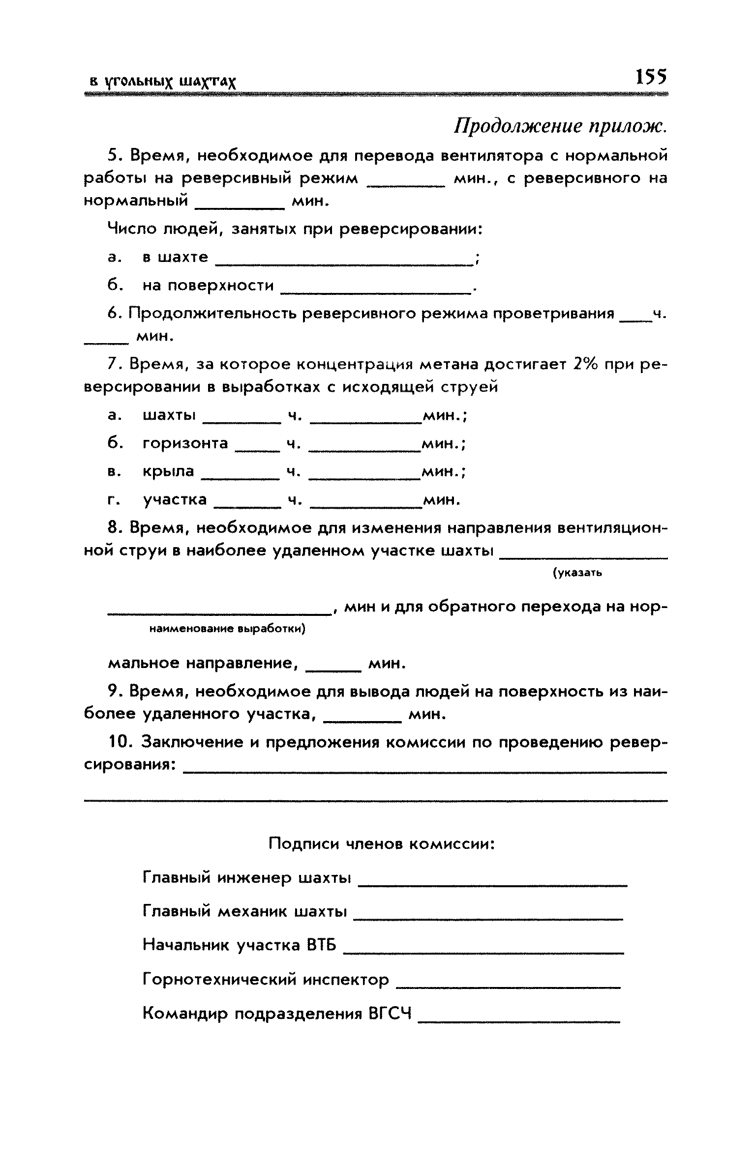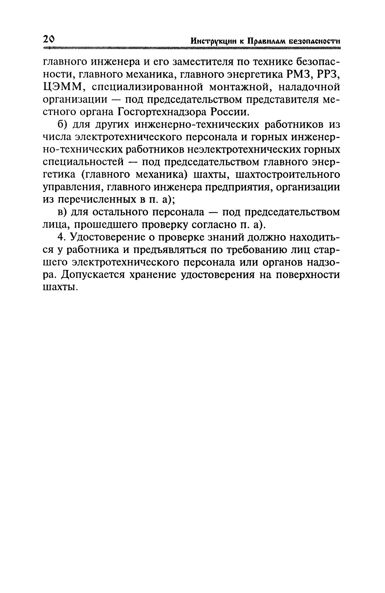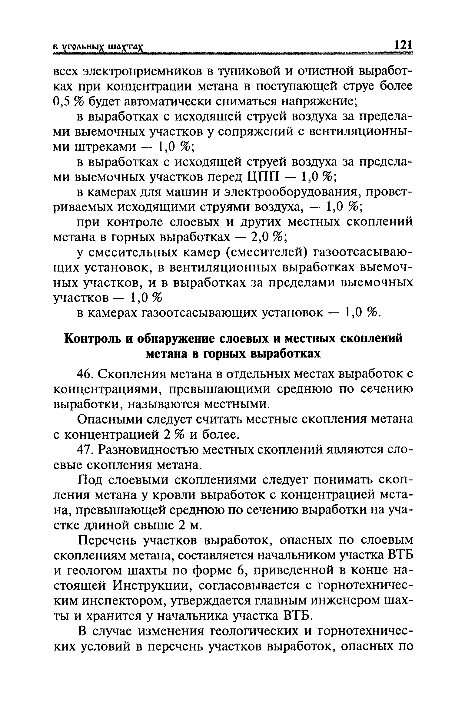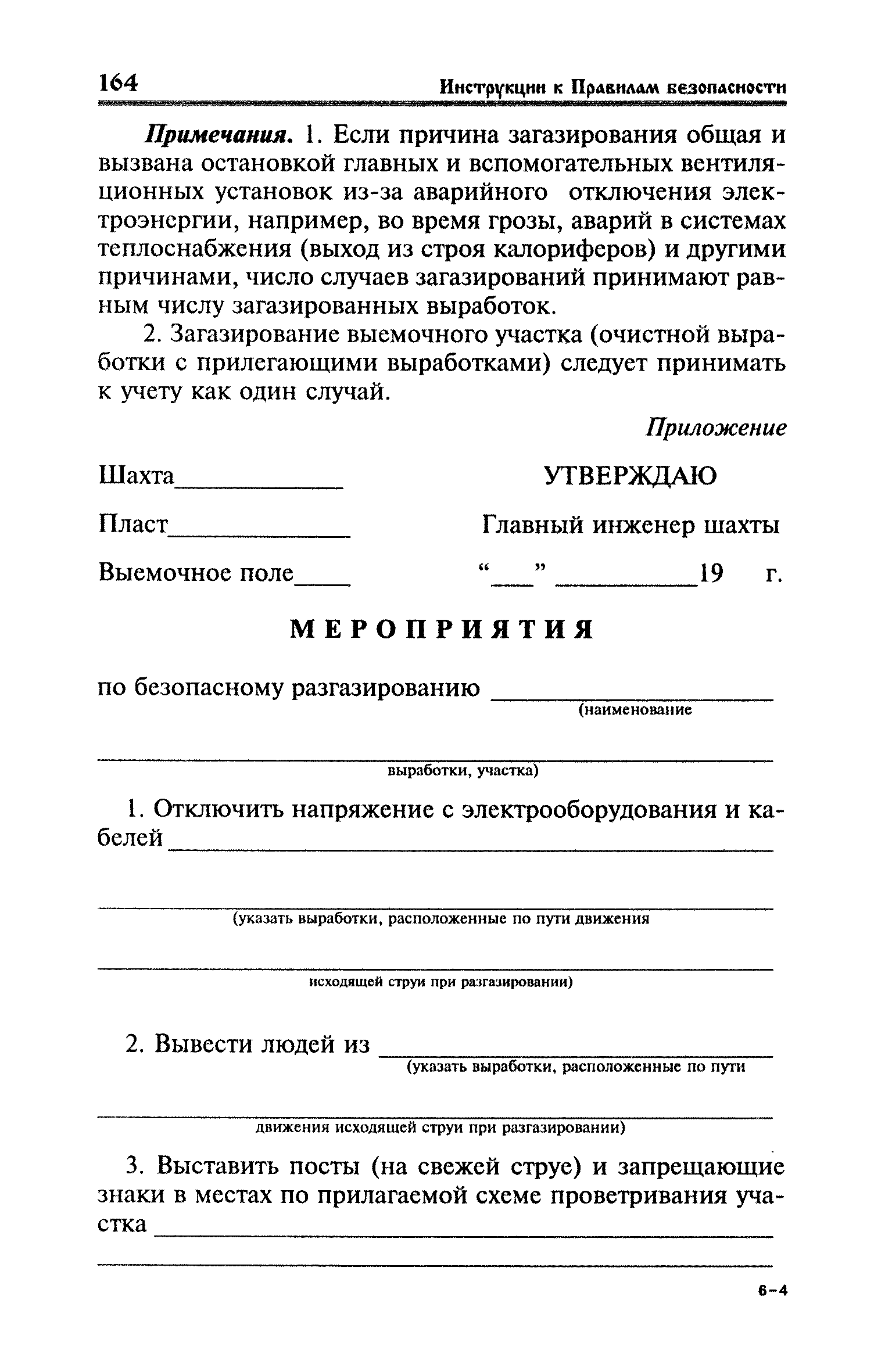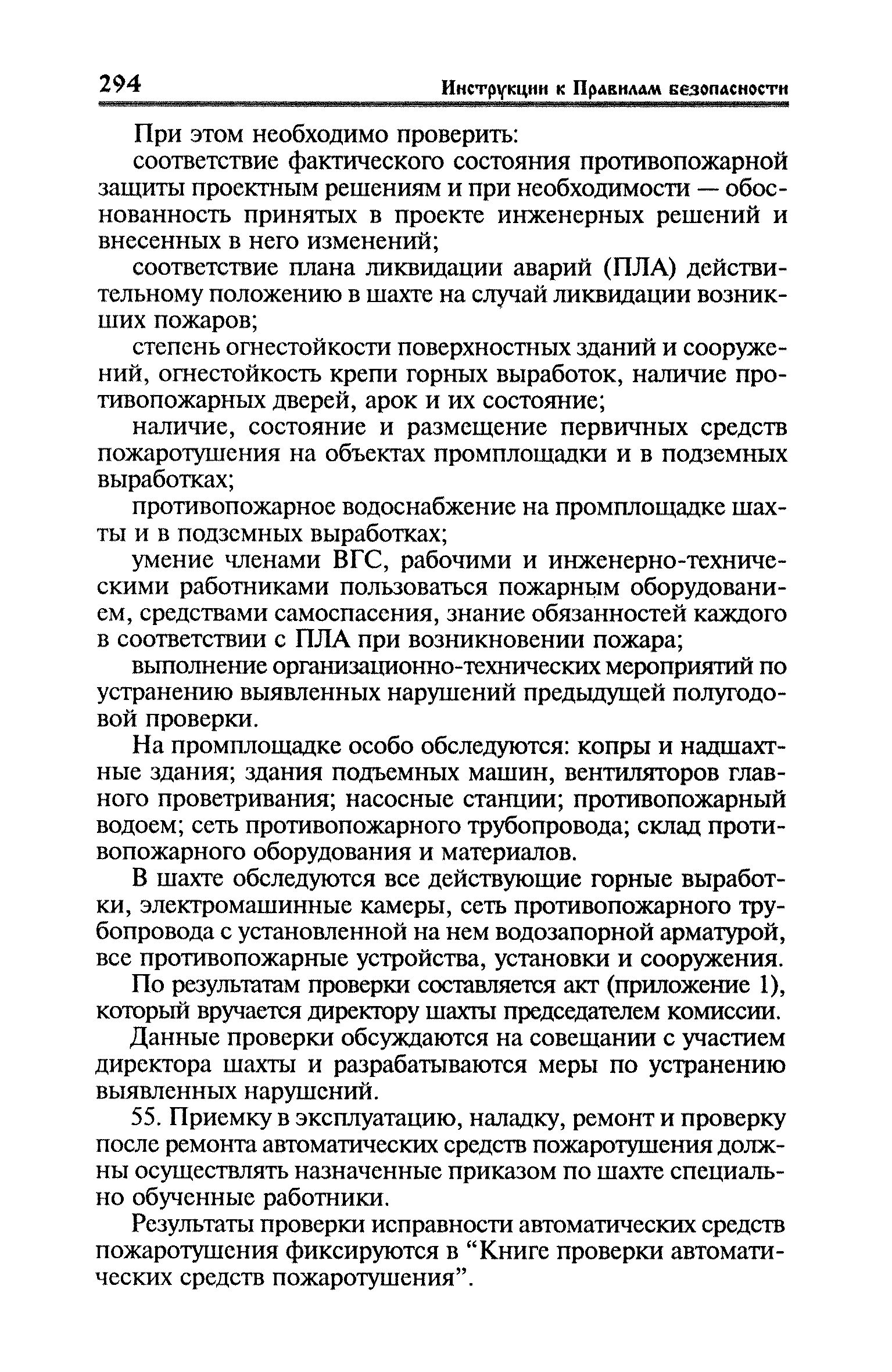 Правила безопасности в угольных шахтах (Инструкции). Книга 2| Статус: | справочные материалы, мп, тпр | | Название рус.: | Правила безопасности в угольных шахтах (Инструкции). Книга 2 | | Дата добавления в базу: | 01.02.2020 | | Дата актуализации: | 01.01.2021 | | Область применения: | В книгу 2 "Правил безопасности в угольных шахтах" включены Инструкции, определяющие вопросы безопасности при ведении горных работ, а также порядок выполнения ряда требований "Правил безопасности в угольных шахтах" (по составлению паспортов выемочных участков, проведению и креплению горных выработок; по ведению огневых работ в подземных выработках и надшахтных зданиях; по обеспечению безопасности при эксплуатации электромеханического оборудования, соблюдению пылегазового режима; противопожарной защите и др.). Приведены формы книг и журналов, ведение которых предусмотрено "Правилами безопасности в угольных шахтах". Все инструкции являются неотъемлемой частью "Правил безопасности в угольных шахтах» и на них полностью распространяются положения, изложенные в главе IХ "Правил безопасности в угольных шахтах" - "Ответственность за нарушение правил безопасности". | | Оглавление: | Инструкция по составлению паспортов выемочного участка проведения и крепления подземных выработок (к § 11, 113) Инструкция по безопасному производству работ в подземных электроустановках (к § 450, 541 - 543) Инструкция по ведению огневых работ в подземных выработках и надшахтных зданиях (к § 57, 533, 570) Инструкция по обучению работников шахт (к § 45, 49, 51) Инструкция по составлению планов ликвидации аварий (к § 16) Инструкция по контролю состава рудничного воздуха, определению газообильности и установлению категорий шахт по метану (к § 204, 273, 275, 276, 278, 220) Инструкция по безопасному применению холодильных установок (к § 206) Инструкция по реверсированию вснтиляционной струи и проверке действия реверсивных устройств вентиляционных установок (к § 222, 223) Инструкция по разгазированию горных выработок, расследованию, учету и предупреждению загазирований (к § 238) Инструкция по составлению вентиляционных планов (к § 272) Инструкция по электроснабжению и применению электрооборудования на шахтах, опасных по внезапным выбросам, разрабатывающих крутые пласты (к § 454) Инструкция по электроснабжению и применению электрооборудования в проветриваемых ВМП тупиковых выработок шахт, опасных по газу(к § 456) Инструкции по применению электрооборудования в рудничном нормальном исполнении и электрооборудования общего назначения в шахтах, опасных по газу и пыли (к § 463) Инструкция по выбору и проверке электрических аппаратов напряжением выше 1200 В (к § 497) Инструкция по определению токов короткого замыкания, выбору и проверке уставок максимальной токовой защиты в сетях напряжением до 1200 В (к § 499) Инструкция по устройству, осмотру и измерению сопротивления шахтных заземлений (к § 522, 550) Инструкция по осмотру и ревизии рудничного взрывобезопасного электрооборудования (к § 542) Инструкция по проверке максимальной токовой защиты шахтных аппаратов (к § 545) Инструкция по противопожарной защите угольных шахт (к § 553) Инструкция по предупреждению самовозгорания, тушению и разборке породных отвалов (к § 666) Книга осмотра стволов шахт (к § 182) Книга осмотра вентиляционных установок и проверки реверсирования (к § 223, 224) Книга учета работы вентиляцион