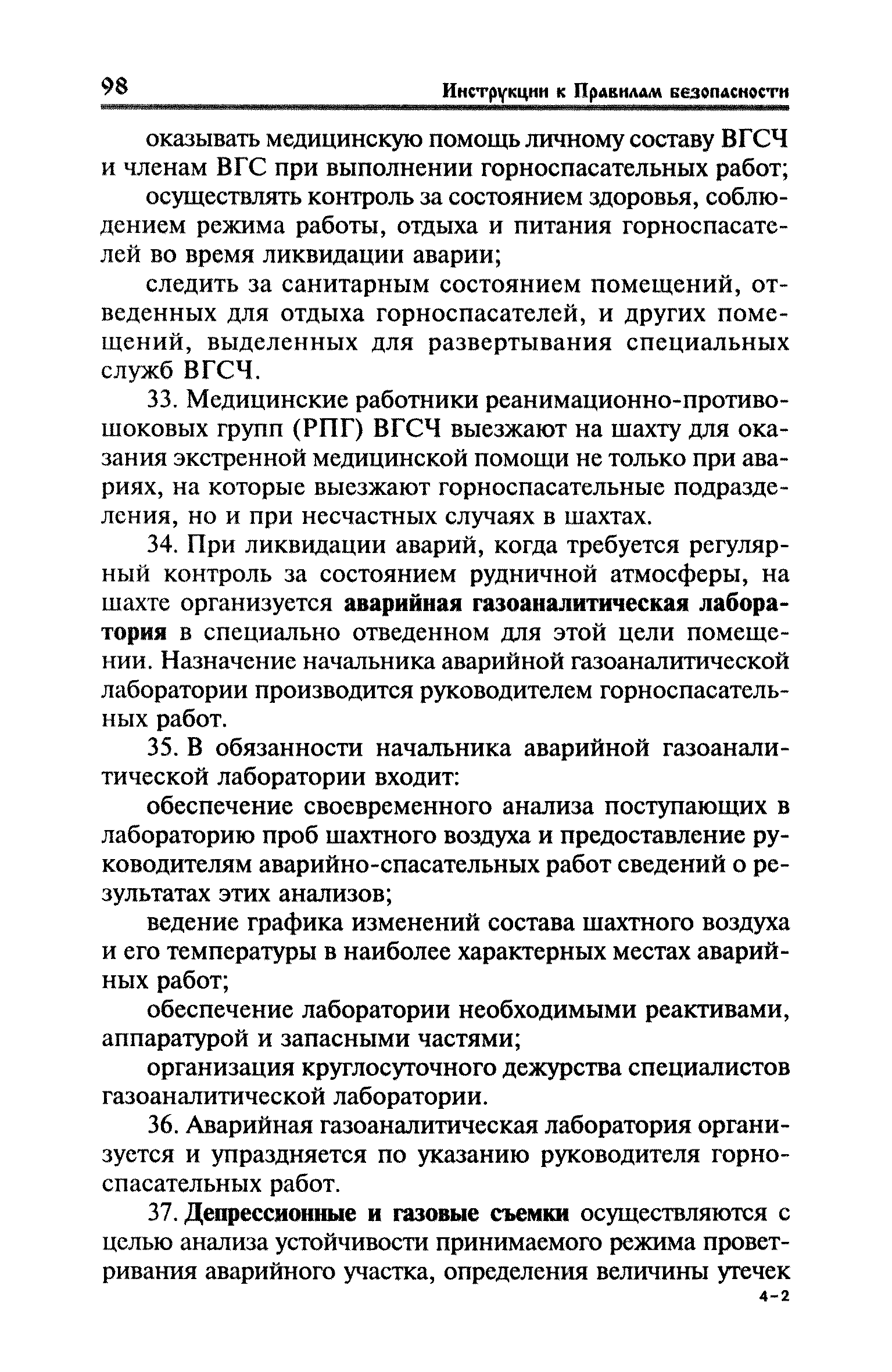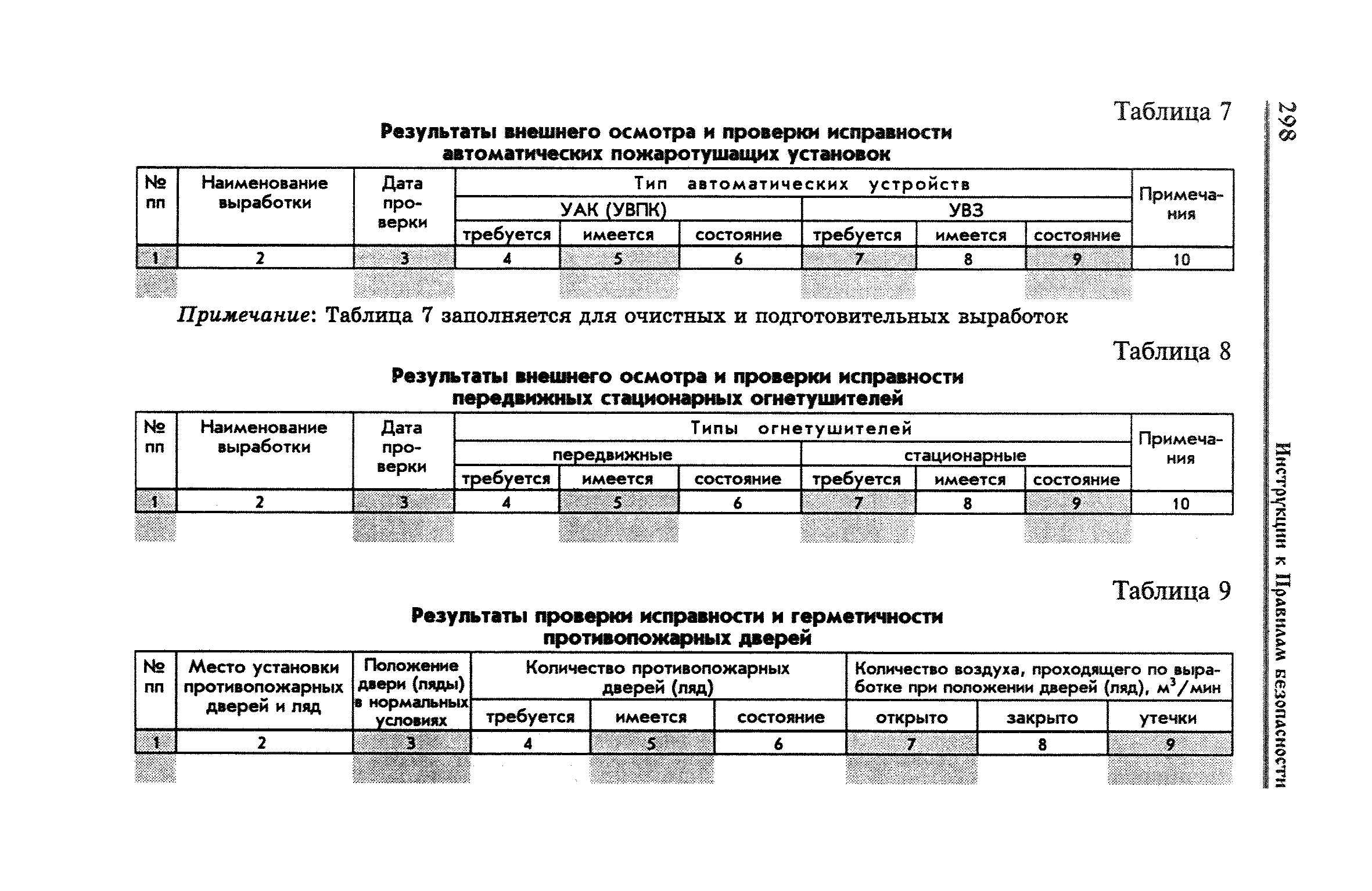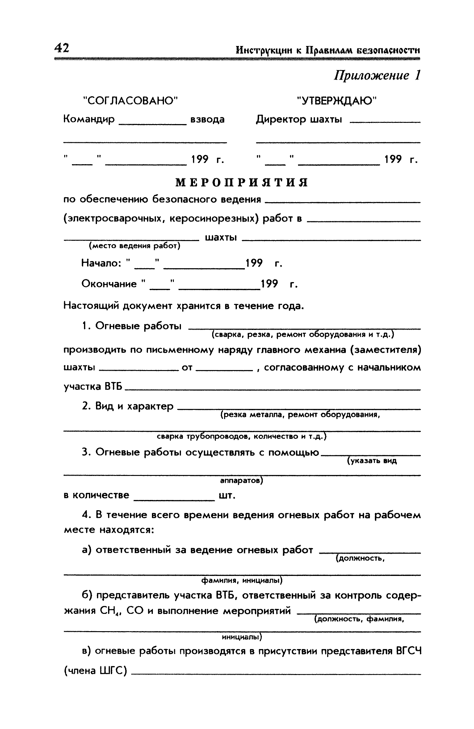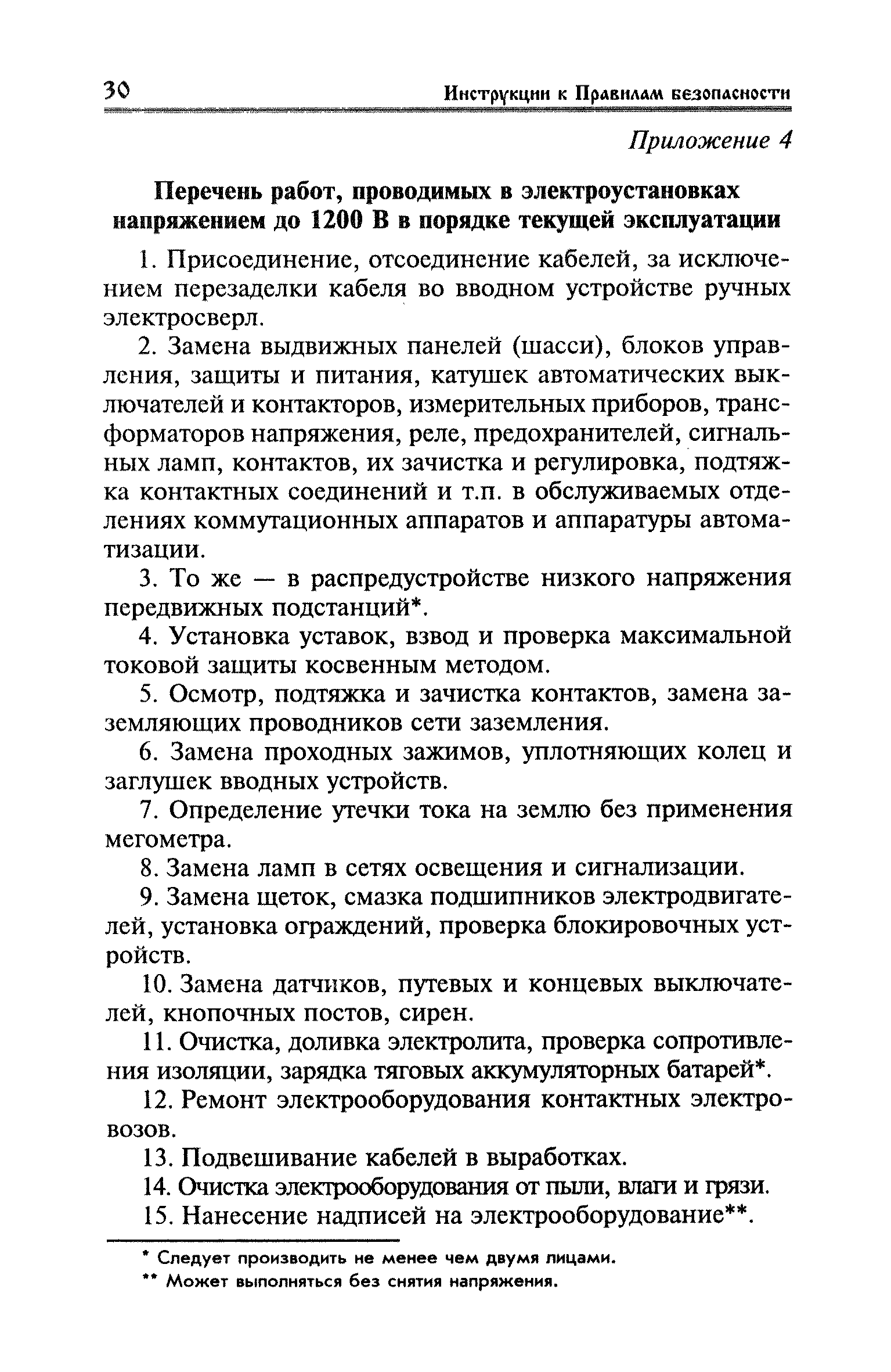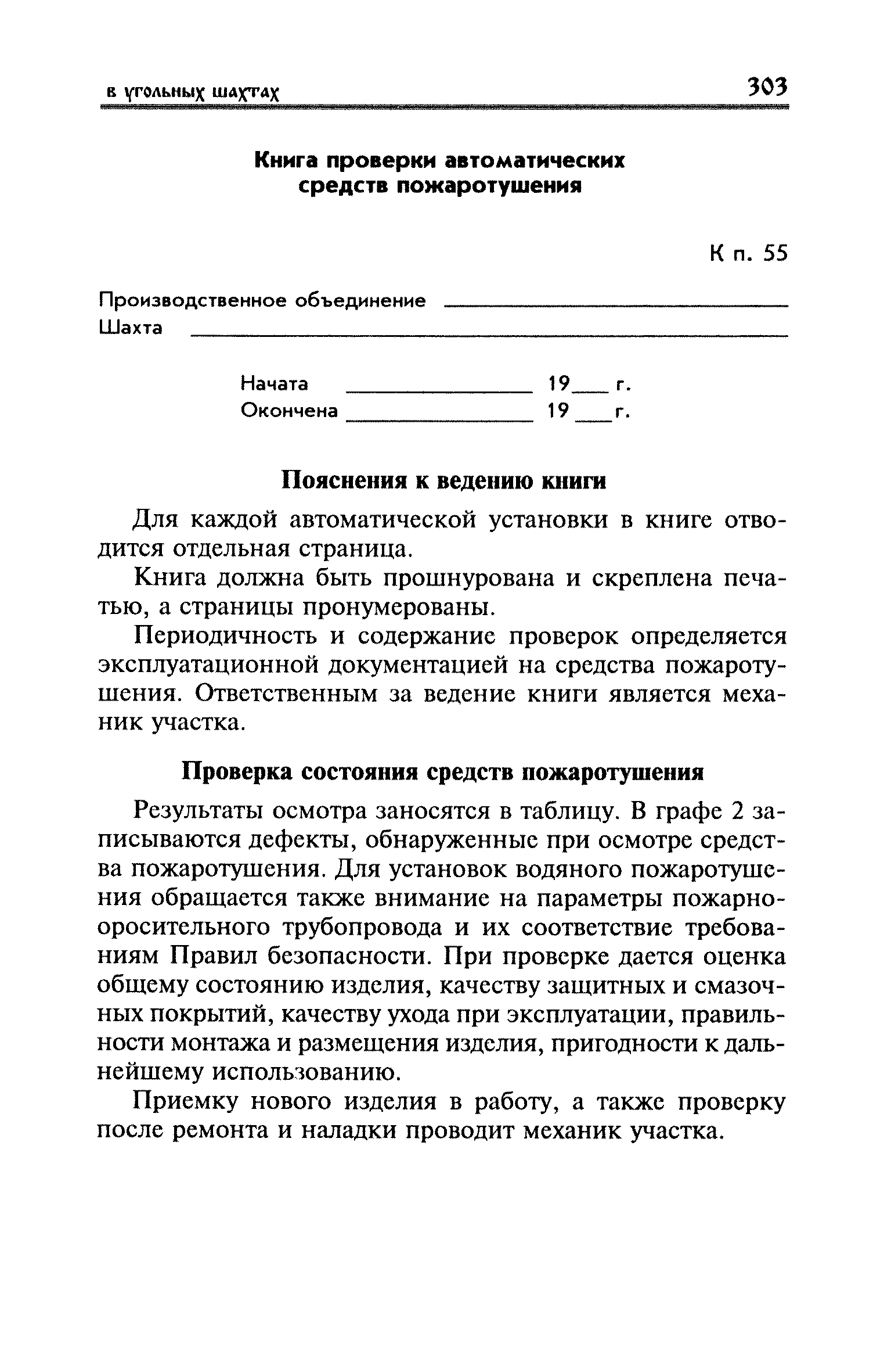 Правила безопасности в угольных шахтах (Инструкции). Книга 2| Статус: | справочные материалы, мп, тпр | | Название рус.: | Правила безопасности в угольных шахтах (Инструкции). Книга 2 | | Дата добавления в базу: | 01.02.2020 | | Дата актуализации: | 01.01.2021 | | Область применения: | В книгу 2 "Правил безопасности в угольных шахтах" включены Инструкции, определяющие вопросы безопасности при ведении горных работ, а также порядок выполнения ряда требований "Правил безопасности в угольных шахтах" (по составлению паспортов выемочных участков, проведению и креплению горных выработок; по ведению огневых работ в подземных выработках и надшахтных зданиях; по обеспечению безопасности при эксплуатации электромеханического оборудования, соблюдению пылегазового режима; противопожарной защите и др.). Приведены формы книг и журналов, ведение которых предусмотрено "Правилами безопасности в угольных шахтах". Все инструкции являются неотъемлемой частью "Правил безопасности в угольных шахтах» и на них полностью распространяются положения, изложенные в главе IХ "Правил безопасности в угольных шахтах" - "Ответственность за нарушение правил безопасности". | | Оглавление: | Инструкция по составлению паспортов выемочного участка проведения и крепления подземных выработок (к § 11, 113) Инструкция по безопасному производству работ в подземных электроустановках (к § 450, 541 - 543) Инструкция по ведению огневых работ в подземных выработках и надшахтных зданиях (к § 57, 533, 570) Инструкция по обучению работников шахт (к § 45, 49, 51) Инструкция по составлению планов ликвидации аварий (к § 16) Инструкция по контролю состава рудничного воздуха, определению газообильности и установлению категорий шахт по метану (к § 204, 273, 275, 276, 278, 220) Инструкция по безопасному применению холодильных установок (к § 206) Инструкция по реверсированию вснтиляционной струи и проверке действия реверсивных устройств вентиляционных установок (к § 222, 223) Инструкция по разгазированию горных выработок, расследованию, учету и предупреждению загазирований (к § 238) Инструкция по составлению вентиляционных планов (к § 272) Инструкция по электроснабжению и применению электрооборудования на шахтах, опасных по внезапным выбросам, разрабатывающих крутые пласты (к § 454) Инструкция по электроснабжению и применению электрооборудования в проветриваемых ВМП тупиковых выработок шахт, опасных по газу(к § 456) Инструкции по применению электрооборудования в рудничном нормальном исполнении и электрооборудования общего назначения в шахтах, опасных по газу и пыли (к § 463) Инструкция по выбору и проверке электрических аппаратов напряжением выше 1200 В (к § 497) Инструкция по определению токов короткого замыкания, выбору и проверке уставок максимальной токовой защиты в сетях напряжением до 1200 В (к § 499) Инструкция по устройству, осмотру и измерению сопротивления шахтных заземлений (к § 522, 550) Инструкция по осмотру и ревизии рудничного взрывобезопасного электрооборудования (к § 542) Инструкция по проверке максимальной токовой защиты шахтных аппаратов (к § 545) Инструкция по противопожарной защите угольных шахт (к § 553) Инструкция по предупреждению самовозгорания, тушению и разборке породных отвалов (к § 666) Книга осмотра стволов шахт (к § 182) Книга осмотра вентиляционных установок и проверки реверсирования (к § 223, 224) Книга учета работы вентиляцион