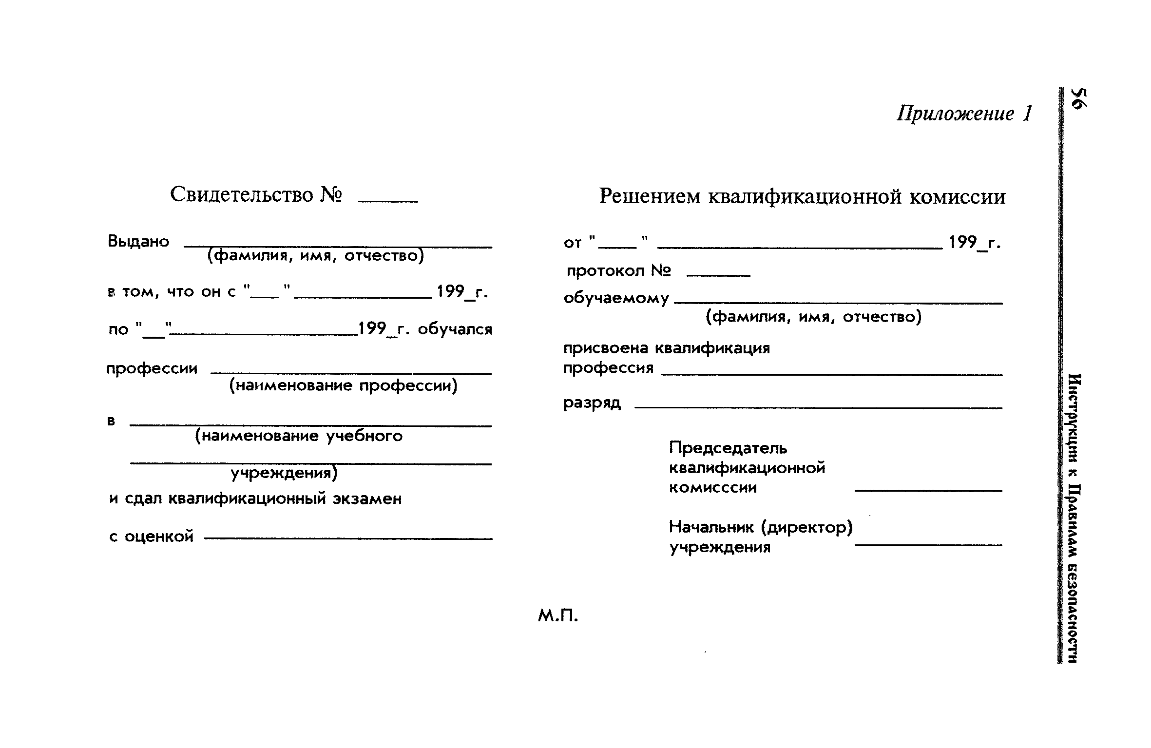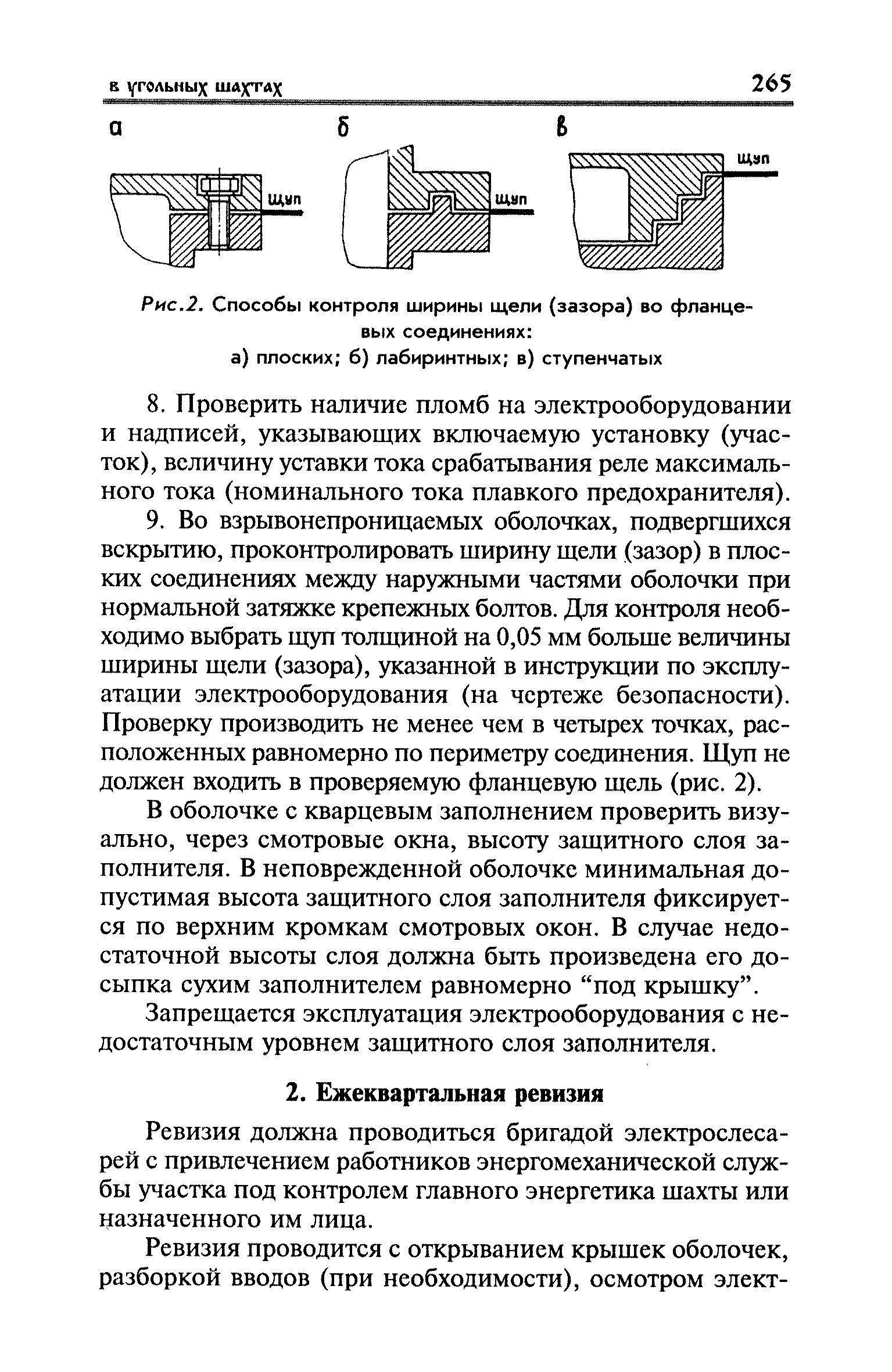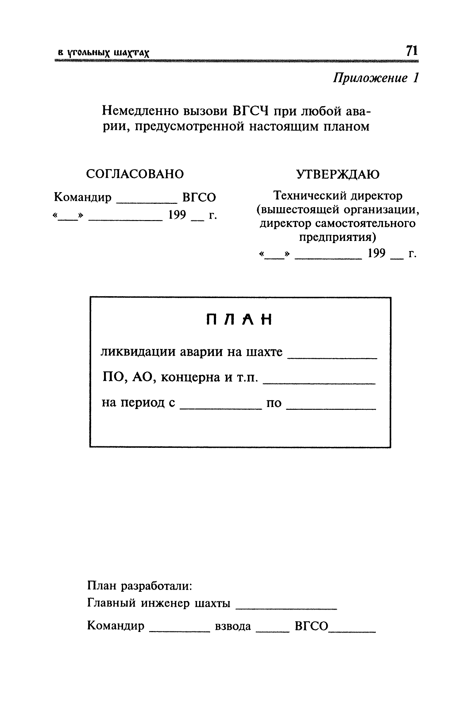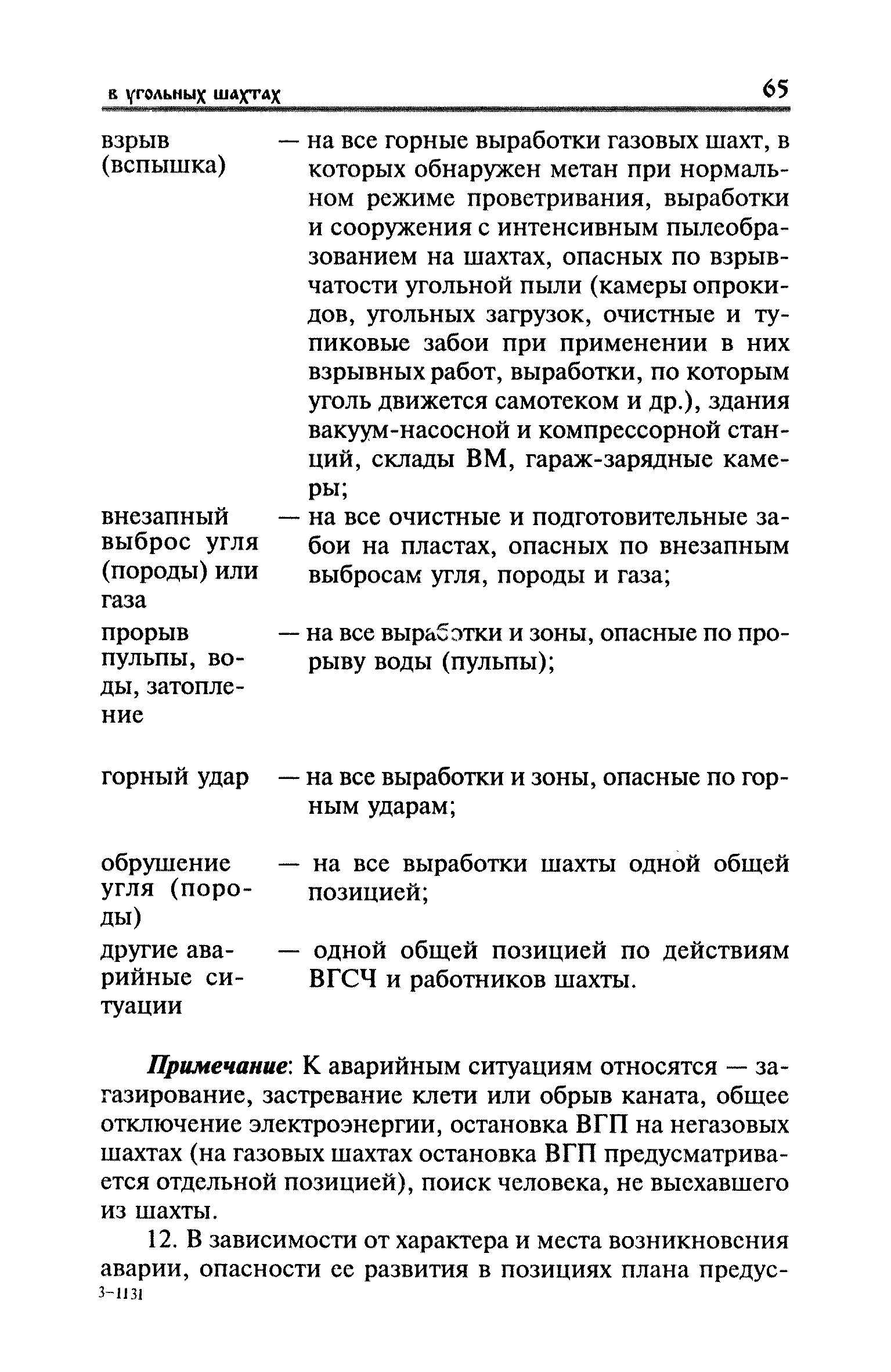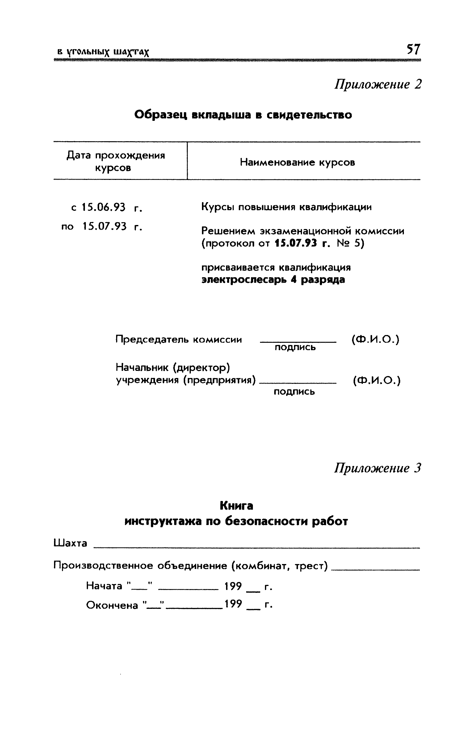 Правила безопасности в угольных шахтах (Инструкции). Книга 2| Статус: | справочные материалы, мп, тпр | | Название рус.: | Правила безопасности в угольных шахтах (Инструкции). Книга 2 | | Дата добавления в базу: | 01.02.2020 | | Дата актуализации: | 01.01.2021 | | Область применения: | В книгу 2 "Правил безопасности в угольных шахтах" включены Инструкции, определяющие вопросы безопасности при ведении горных работ, а также порядок выполнения ряда требований "Правил безопасности в угольных шахтах" (по составлению паспортов выемочных участков, проведению и креплению горных выработок; по ведению огневых работ в подземных выработках и надшахтных зданиях; по обеспечению безопасности при эксплуатации электромеханического оборудования, соблюдению пылегазового режима; противопожарной защите и др.). Приведены формы книг и журналов, ведение которых предусмотрено "Правилами безопасности в угольных шахтах". Все инструкции являются неотъемлемой частью "Правил безопасности в угольных шахтах» и на них полностью распространяются положения, изложенные в главе IХ "Правил безопасности в угольных шахтах" - "Ответственность за нарушение правил безопасности". | | Оглавление: | Инструкция по составлению паспортов выемочного участка проведения и крепления подземных выработок (к § 11, 113) Инструкция по безопасному производству работ в подземных электроустановках (к § 450, 541 - 543) Инструкция по ведению огневых работ в подземных выработках и надшахтных зданиях (к § 57, 533, 570) Инструкция по обучению работников шахт (к § 45, 49, 51) Инструкция по составлению планов ликвидации аварий (к § 16) Инструкция по контролю состава рудничного воздуха, определению газообильности и установлению категорий шахт по метану (к § 204, 273, 275, 276, 278, 220) Инструкция по безопасному применению холодильных установок (к § 206) Инструкция по реверсированию вснтиляционной струи и проверке действия реверсивных устройств вентиляционных установок (к § 222, 223) Инструкция по разгазированию горных выработок, расследованию, учету и предупреждению загазирований (к § 238) Инструкция по составлению вентиляционных планов (к § 272) Инструкция по электроснабжению и применению электрооборудования на шахтах, опасных по внезапным выбросам, разрабатывающих крутые пласты (к § 454) Инструкция по электроснабжению и применению электрооборудования в проветриваемых ВМП тупиковых выработок шахт, опасных по газу(к § 456) Инструкции по применению электрооборудования в рудничном нормальном исполнении и электрооборудования общего назначения в шахтах, опасных по газу и пыли (к § 463) Инструкция по выбору и проверке электрических аппаратов напряжением выше 1200 В (к § 497) Инструкция по определению токов короткого замыкания, выбору и проверке уставок максимальной токовой защиты в сетях напряжением до 1200 В (к § 499) Инструкция по устройству, осмотру и измерению сопротивления шахтных заземлений (к § 522, 550) Инструкция по осмотру и ревизии рудничного взрывобезопасного электрооборудования (к § 542) Инструкция по проверке максимальной токовой защиты шахтных аппаратов (к § 545) Инструкция по противопожарной защите угольных шахт (к § 553) Инструкция по предупреждению самовозгорания, тушению и разборке породных отвалов (к § 666) Книга осмотра стволов шахт (к § 182) Книга осмотра вентиляционных установок и проверки реверсирования (к § 223, 224) Книга учета работы вентиляцион