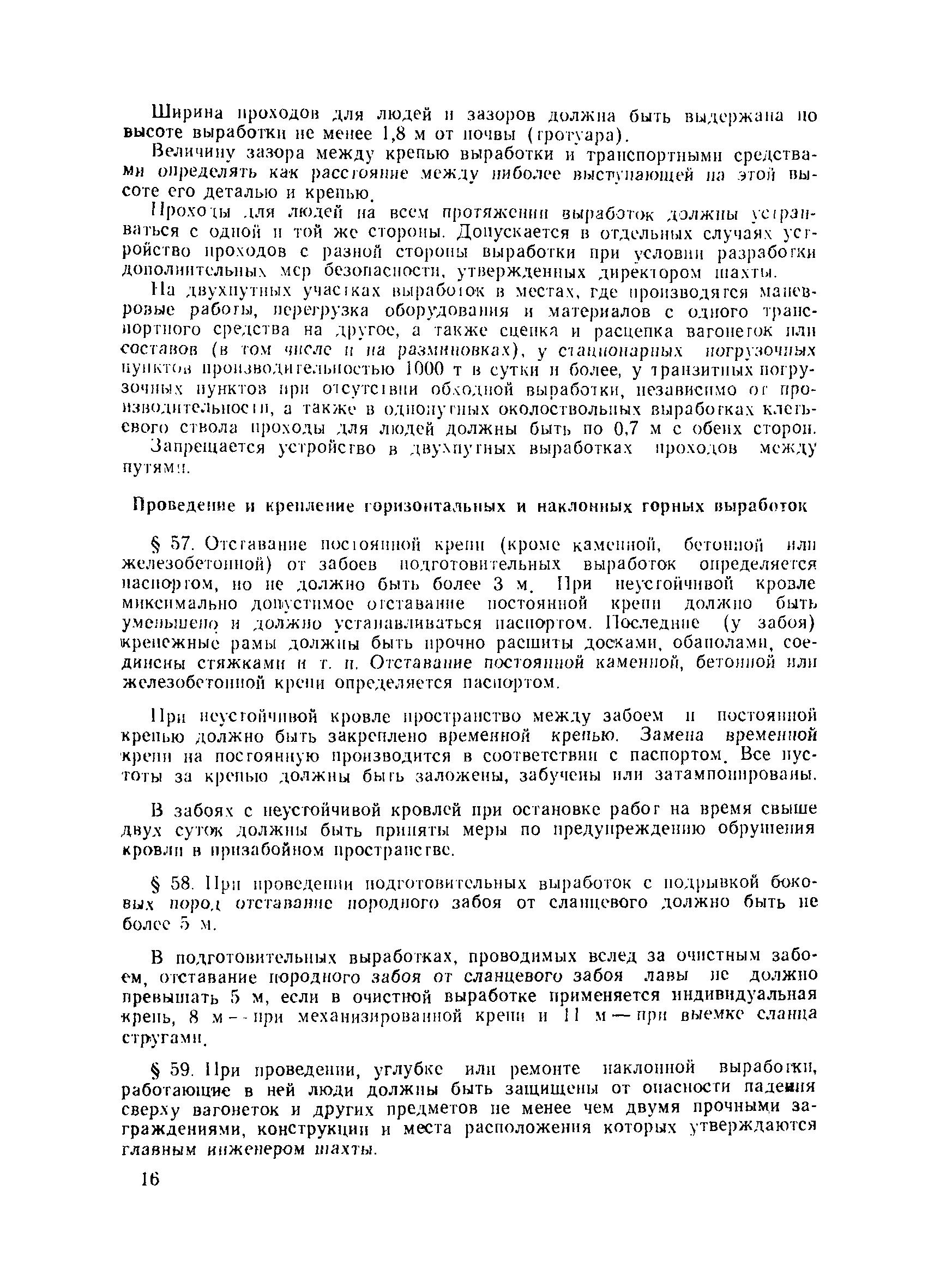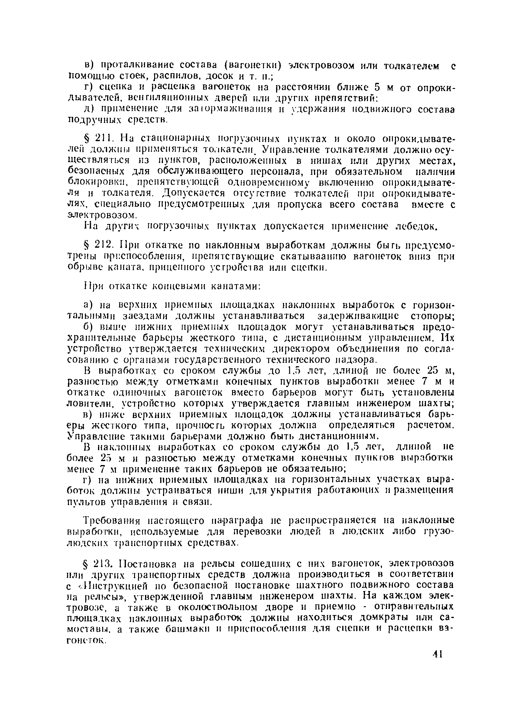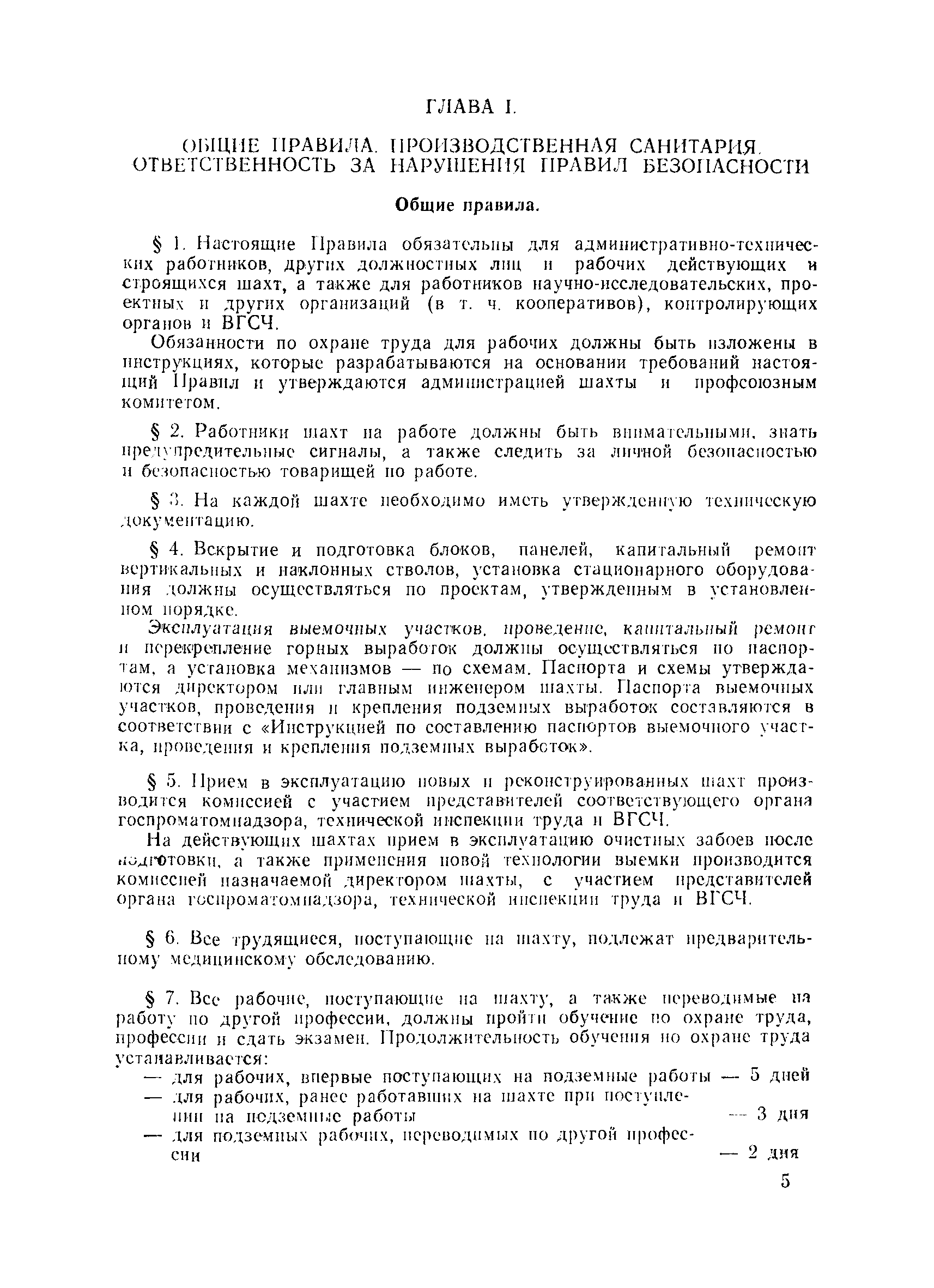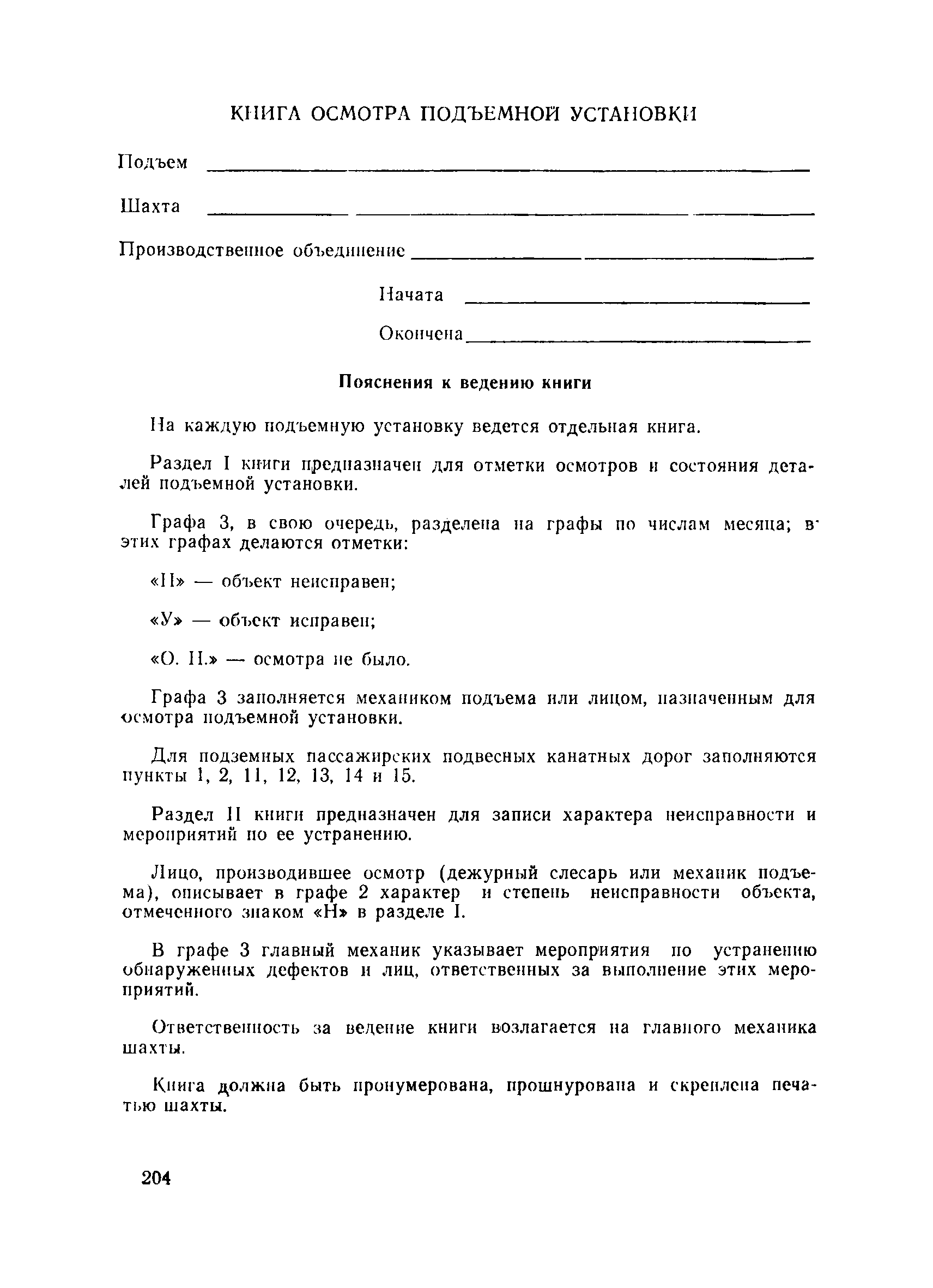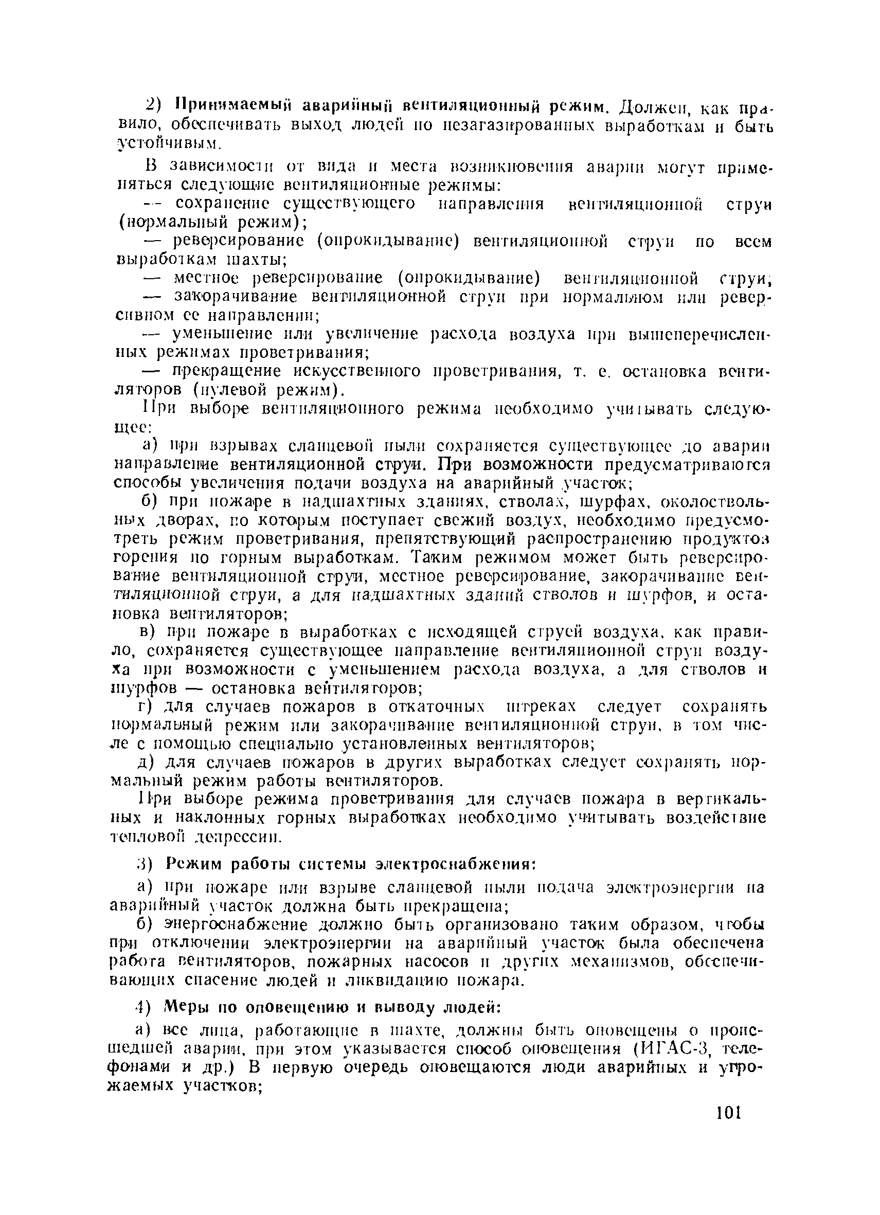 | Оглавление: | Глава I. Общие правила. Производственная санитария. Ответственность за нарушения правил безопасности Глава II. Ведение горных работ. Предотвращение затопления горных выработок Глава III. Проветривание подземных выработок. Борьба с пылью. Противопожарная защита. Глава IV. Рудничный транспорт и подъем. Глава V. Электромеханическое хозяйство. Глава VI. Ведение взрывных работ Инструкция по составлению паспортов выемочного участка проведения и крепления подземных выработок Инструкция по составлению планов ликвидации аварий Инструкция по проведению аварийных режимов вентиляции и вентиляционных устройств для их осуществления Инструкция по составлению вентиляционных планов Инструкция по проверке состава и измерению расхода рудничного воздуха Инструкция по противопожарной защите сланцевых шахт Инструкция по ведению огневых работ в подземных выработках и надшахтных зданиях Инструкция по устройству и эксплуатации подземных раздаточных камер и участковых пунктов хранения (УПХ) взрывчатых материалов на сланцевых шахтах Инструкция по определению тока короткого замыкания, выбору я проверке установок максимальной токовой защиты в сетях напряжением до 1140 В инструкция но проверке максимальной токовой защиты шахтных аппаратов Инструкция по безопасному производству работ в подземных электроустановках Инструкция по устройству, осмотру и измерению сопротивлений шахтных заземлителей Книга осмотра подземной установки Книга приема и сдачи смен Книга осмотра канатов и их расхода |
