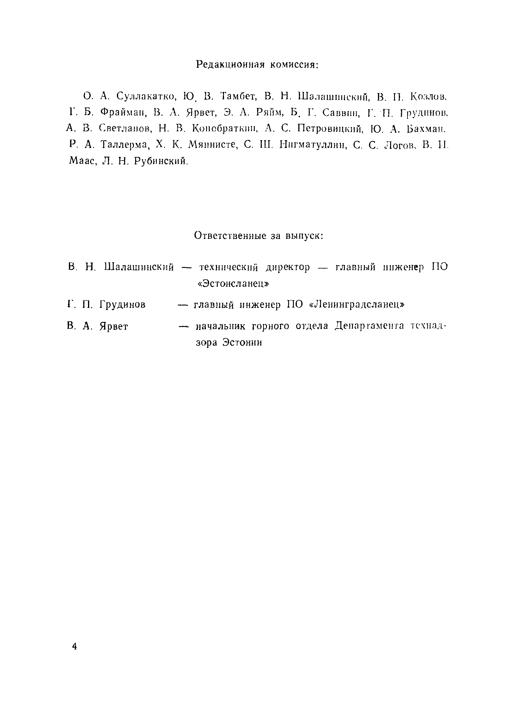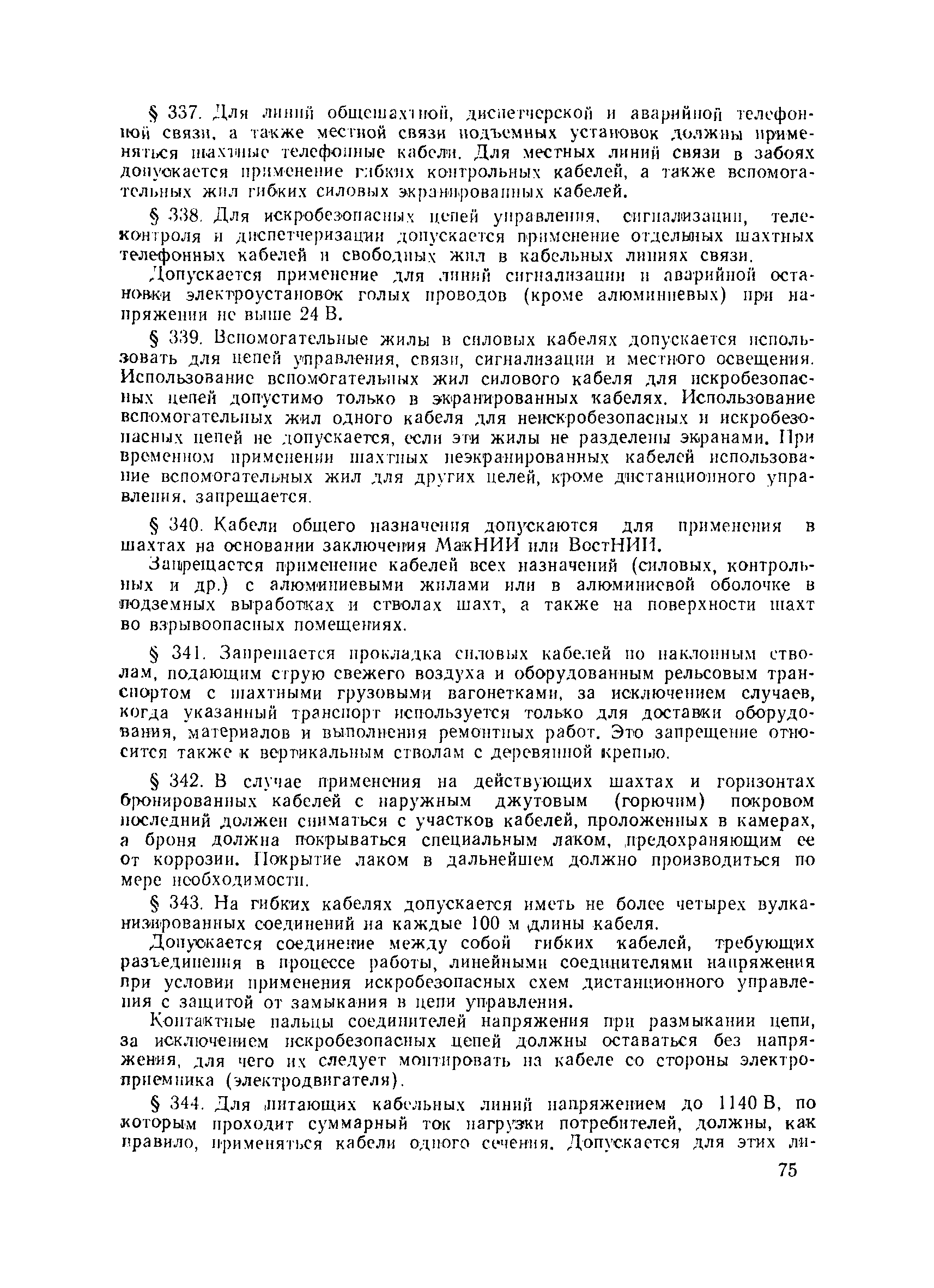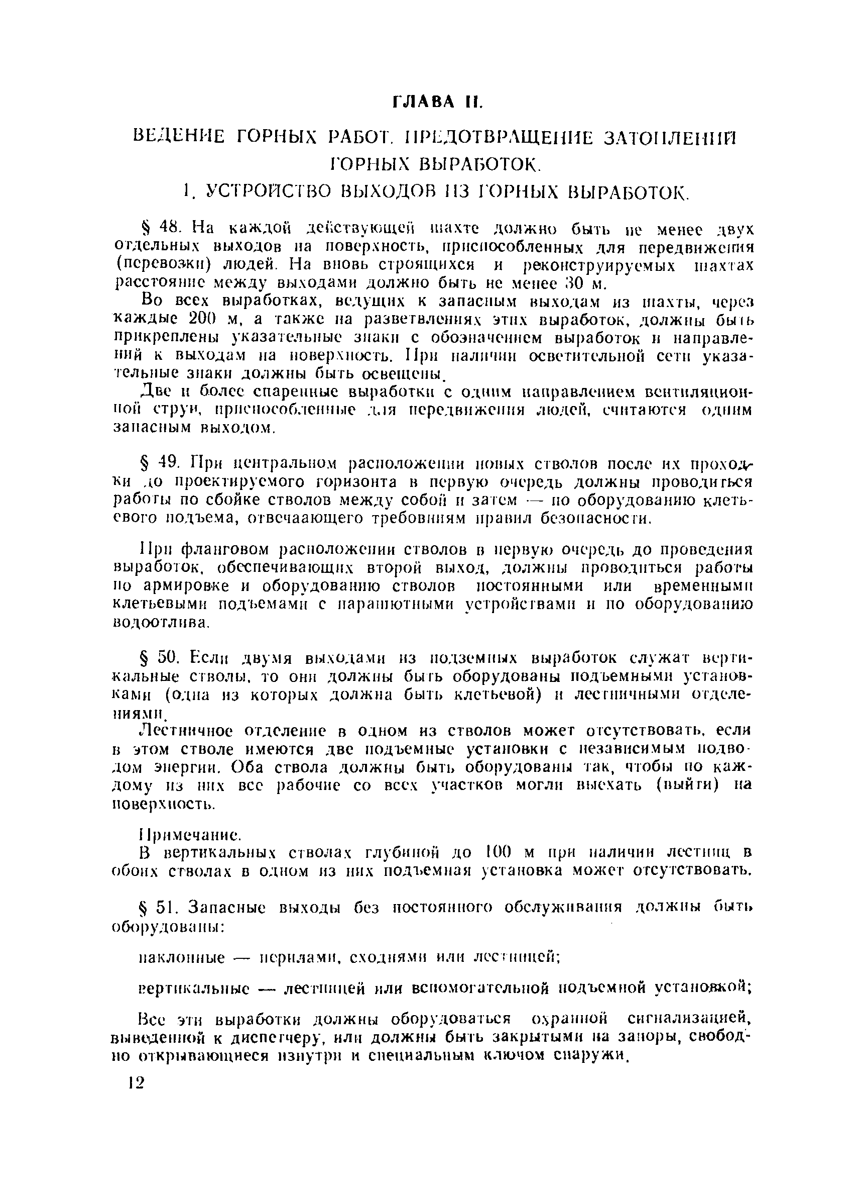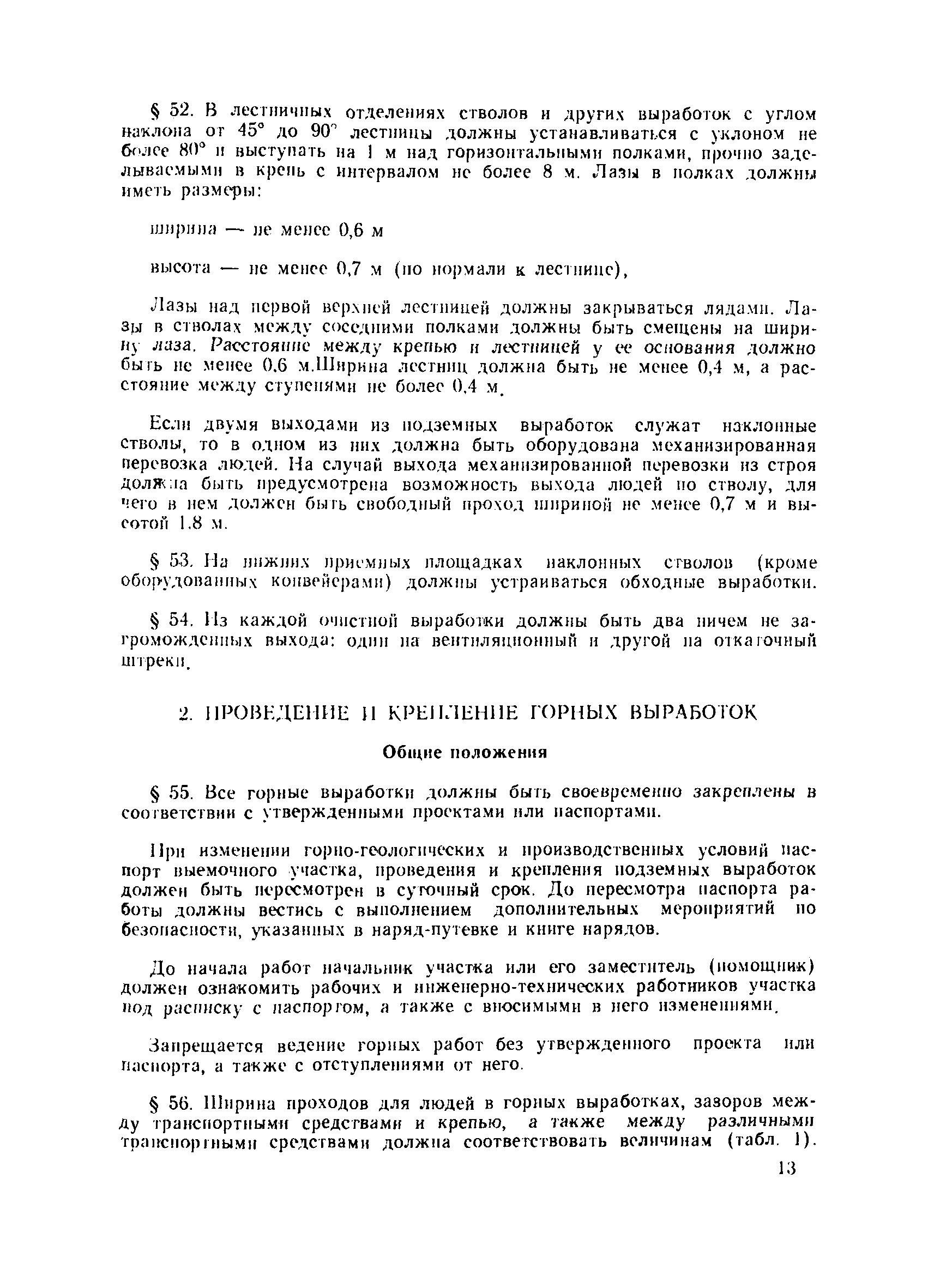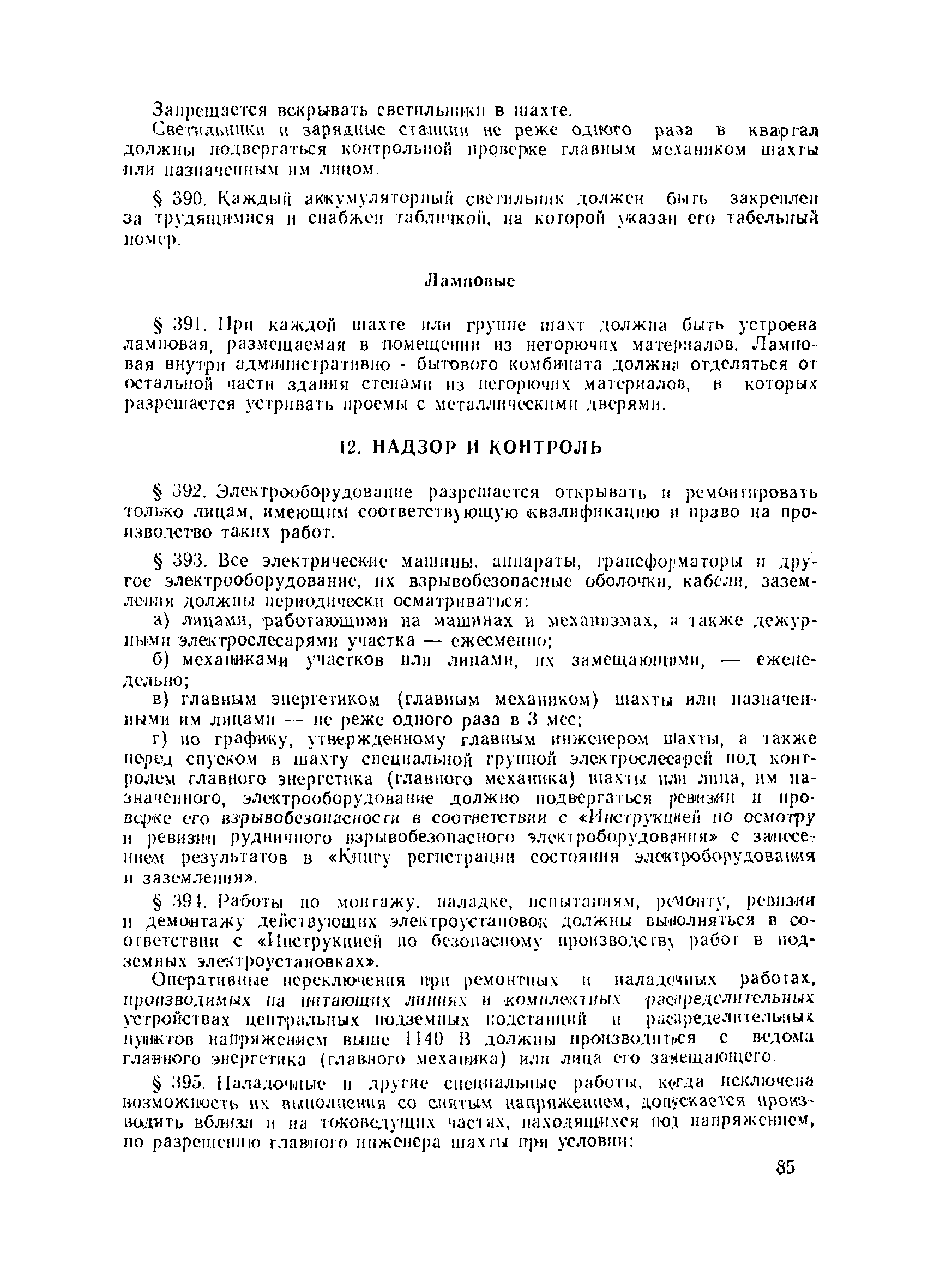 | Оглавление: | Глава I. Общие правила. Производственная санитария. Ответственность за нарушения правил безопасности Глава II. Ведение горных работ. Предотвращение затопления горных выработок Глава III. Проветривание подземных выработок. Борьба с пылью. Противопожарная защита. Глава IV. Рудничный транспорт и подъем. Глава V. Электромеханическое хозяйство. Глава VI. Ведение взрывных работ Инструкция по составлению паспортов выемочного участка проведения и крепления подземных выработок Инструкция по составлению планов ликвидации аварий Инструкция по проведению аварийных режимов вентиляции и вентиляционных устройств для их осуществления Инструкция по составлению вентиляционных планов Инструкция по проверке состава и измерению расхода рудничного воздуха Инструкция по противопожарной защите сланцевых шахт Инструкция по ведению огневых работ в подземных выработках и надшахтных зданиях Инструкция по устройству и эксплуатации подземных раздаточных камер и участковых пунктов хранения (УПХ) взрывчатых материалов на сланцевых шахтах Инструкция по определению тока короткого замыкания, выбору я проверке установок максимальной токовой защиты в сетях напряжением до 1140 В инструкция но проверке максимальной токовой защиты шахтных аппаратов Инструкция по безопасному производству работ в подземных электроустановках Инструкция по устройству, осмотру и измерению сопротивлений шахтных заземлителей Книга осмотра подземной установки Книга приема и сдачи смен Книга осмотра канатов и их расхода |