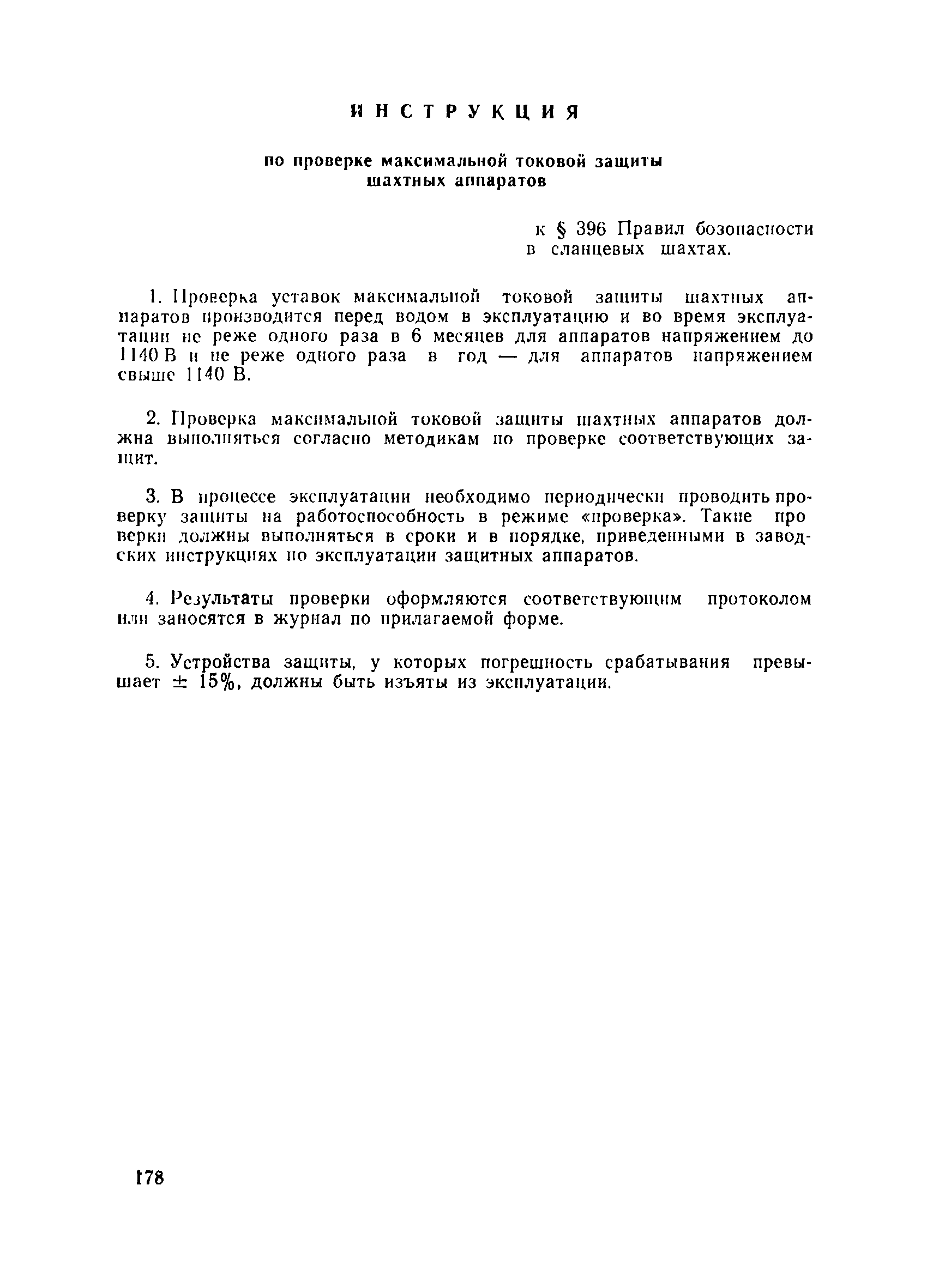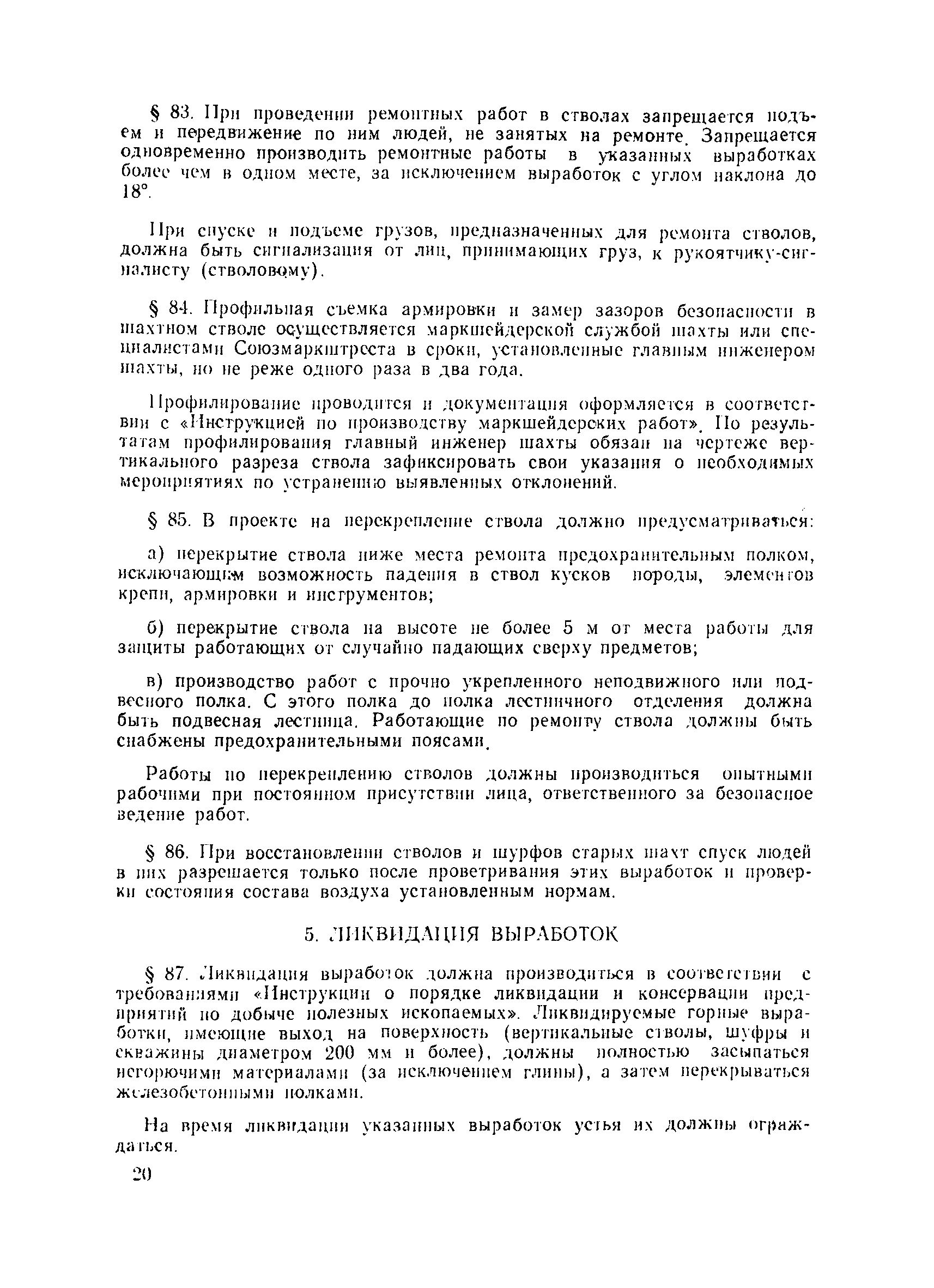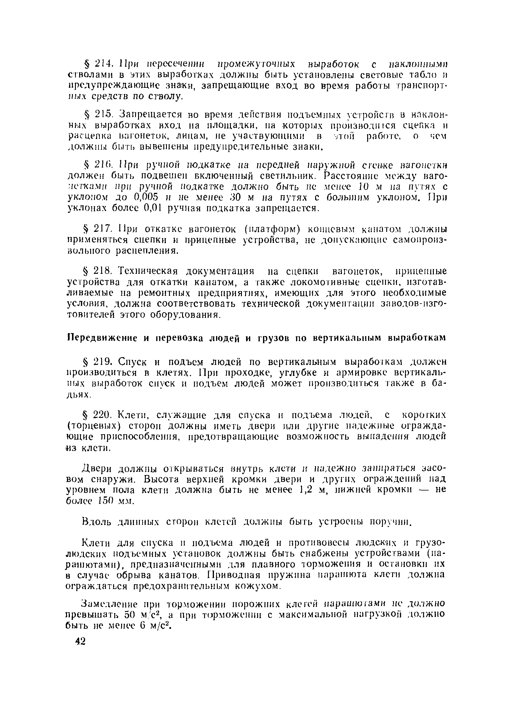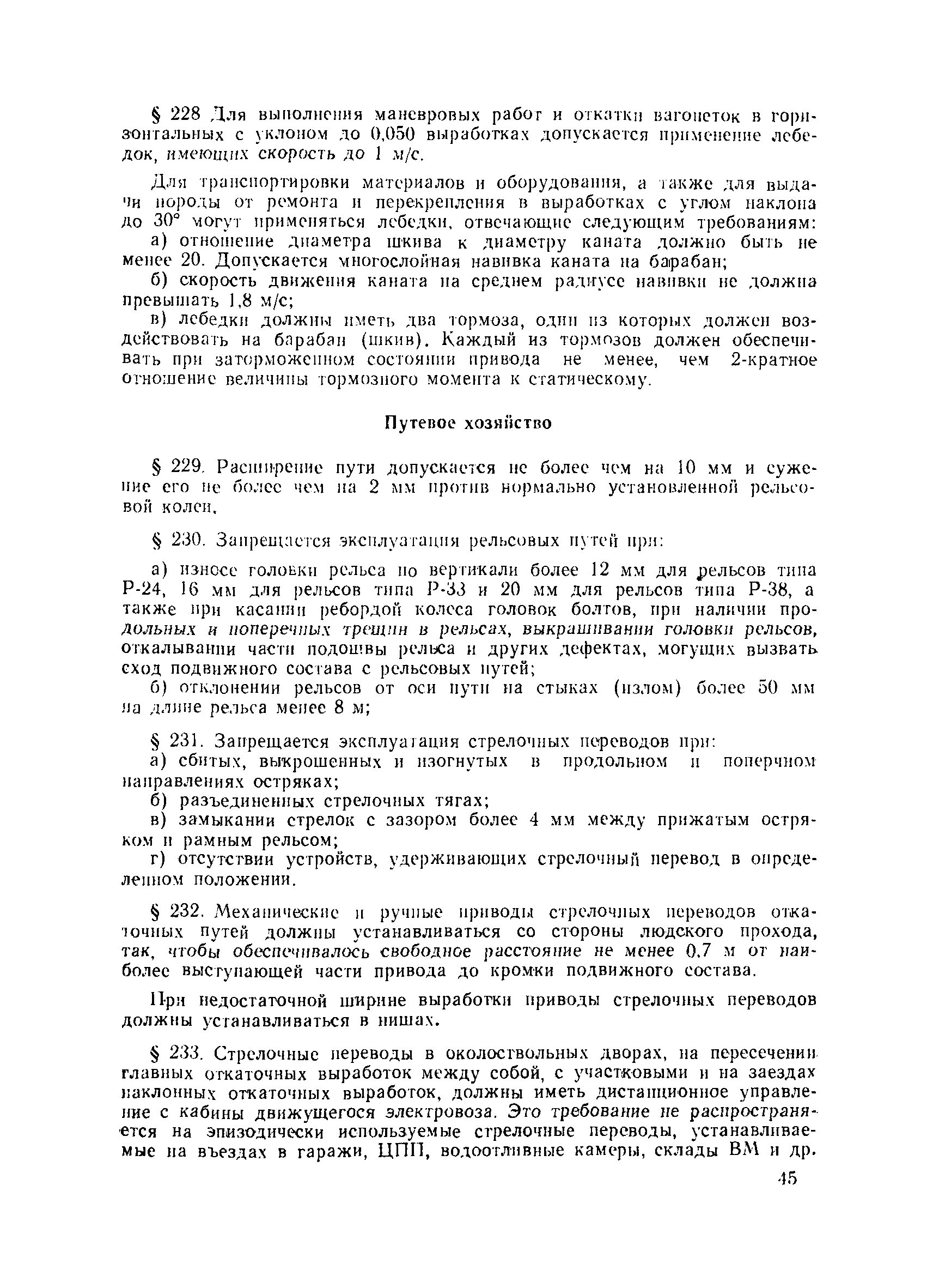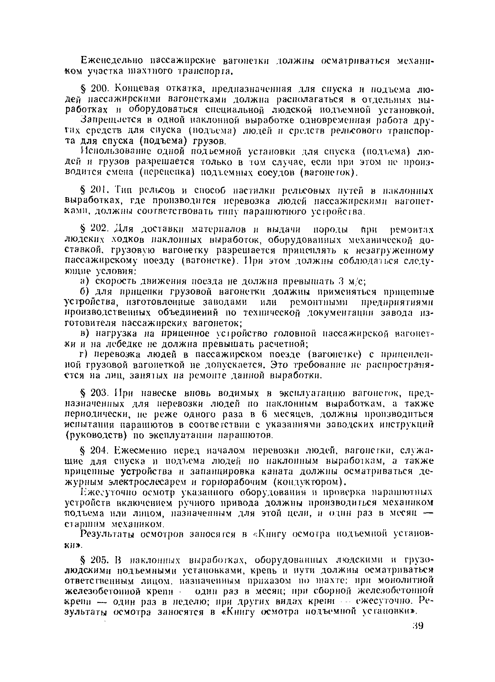 | Оглавление: | Глава I. Общие правила. Производственная санитария. Ответственность за нарушения правил безопасности Глава II. Ведение горных работ. Предотвращение затопления горных выработок Глава III. Проветривание подземных выработок. Борьба с пылью. Противопожарная защита. Глава IV. Рудничный транспорт и подъем. Глава V. Электромеханическое хозяйство. Глава VI. Ведение взрывных работ Инструкция по составлению паспортов выемочного участка проведения и крепления подземных выработок Инструкция по составлению планов ликвидации аварий Инструкция по проведению аварийных режимов вентиляции и вентиляционных устройств для их осуществления Инструкция по составлению вентиляционных планов Инструкция по проверке состава и измерению расхода рудничного воздуха Инструкция по противопожарной защите сланцевых шахт Инструкция по ведению огневых работ в подземных выработках и надшахтных зданиях Инструкция по устройству и эксплуатации подземных раздаточных камер и участковых пунктов хранения (УПХ) взрывчатых материалов на сланцевых шахтах Инструкция по определению тока короткого замыкания, выбору я проверке установок максимальной токовой защиты в сетях напряжением до 1140 В инструкция но проверке максимальной токовой защиты шахтных аппаратов Инструкция по безопасному производству работ в подземных электроустановках Инструкция по устройству, осмотру и измерению сопротивлений шахтных заземлителей Книга осмотра подземной установки Книга приема и сдачи смен Книга осмотра канатов и их расхода |
