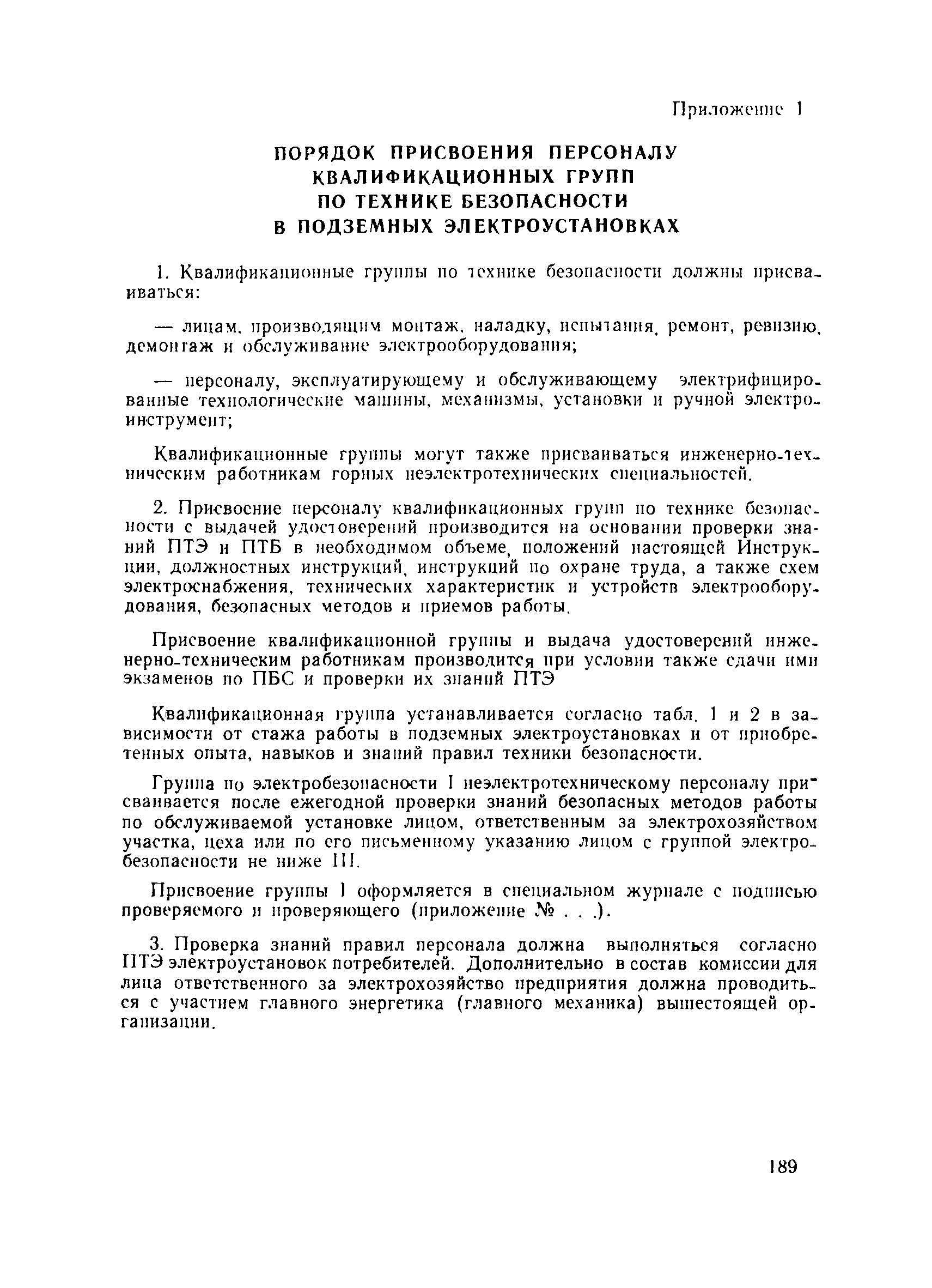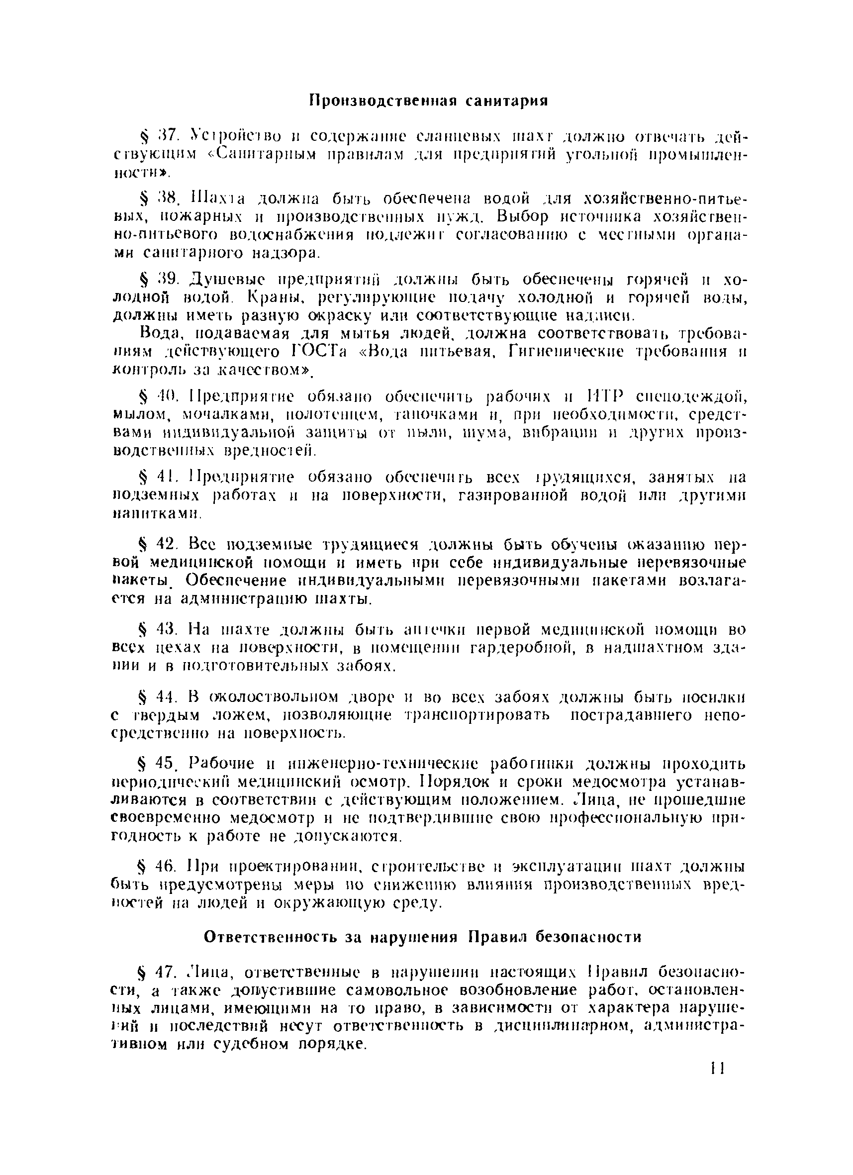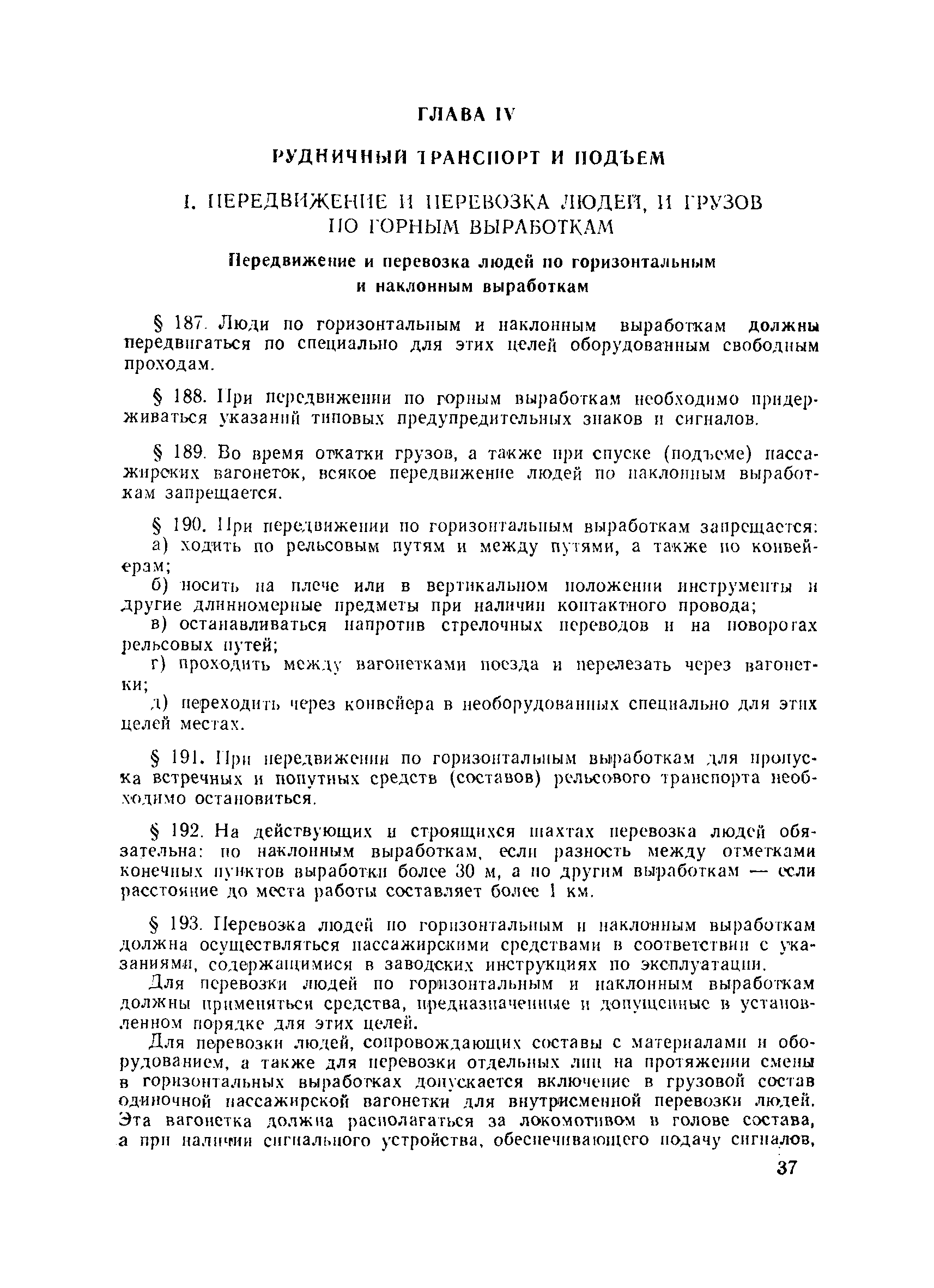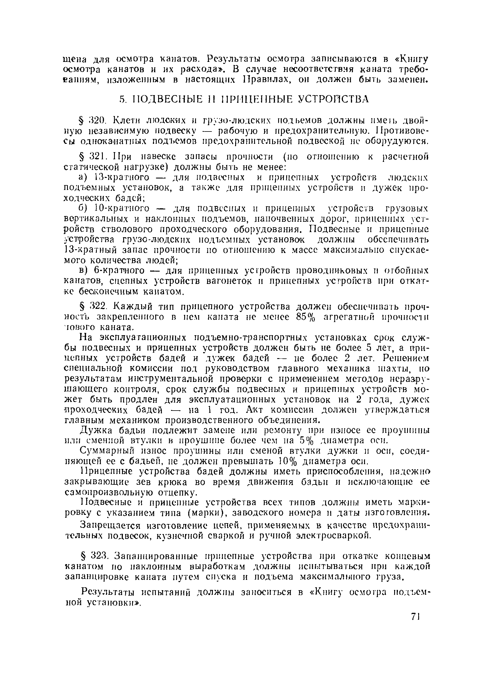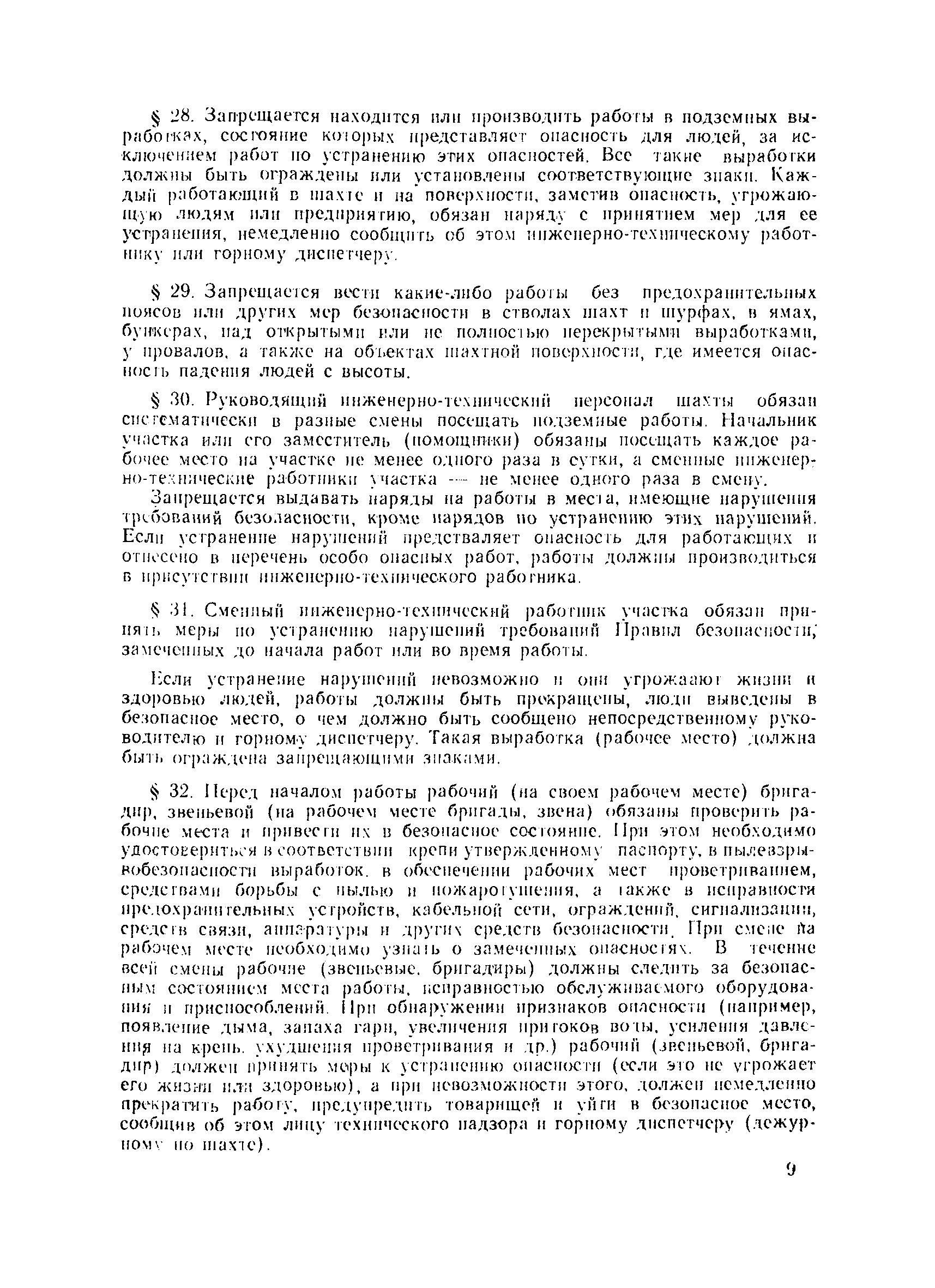 | Оглавление: | Глава I. Общие правила. Производственная санитария. Ответственность за нарушения правил безопасности Глава II. Ведение горных работ. Предотвращение затопления горных выработок Глава III. Проветривание подземных выработок. Борьба с пылью. Противопожарная защита. Глава IV. Рудничный транспорт и подъем. Глава V. Электромеханическое хозяйство. Глава VI. Ведение взрывных работ Инструкция по составлению паспортов выемочного участка проведения и крепления подземных выработок Инструкция по составлению планов ликвидации аварий Инструкция по проведению аварийных режимов вентиляции и вентиляционных устройств для их осуществления Инструкция по составлению вентиляционных планов Инструкция по проверке состава и измерению расхода рудничного воздуха Инструкция по противопожарной защите сланцевых шахт Инструкция по ведению огневых работ в подземных выработках и надшахтных зданиях Инструкция по устройству и эксплуатации подземных раздаточных камер и участковых пунктов хранения (УПХ) взрывчатых материалов на сланцевых шахтах Инструкция по определению тока короткого замыкания, выбору я проверке установок максимальной токовой защиты в сетях напряжением до 1140 В инструкция но проверке максимальной токовой защиты шахтных аппаратов Инструкция по безопасному производству работ в подземных электроустановках Инструкция по устройству, осмотру и измерению сопротивлений шахтных заземлителей Книга осмотра подземной установки Книга приема и сдачи смен Книга осмотра канатов и их расхода |