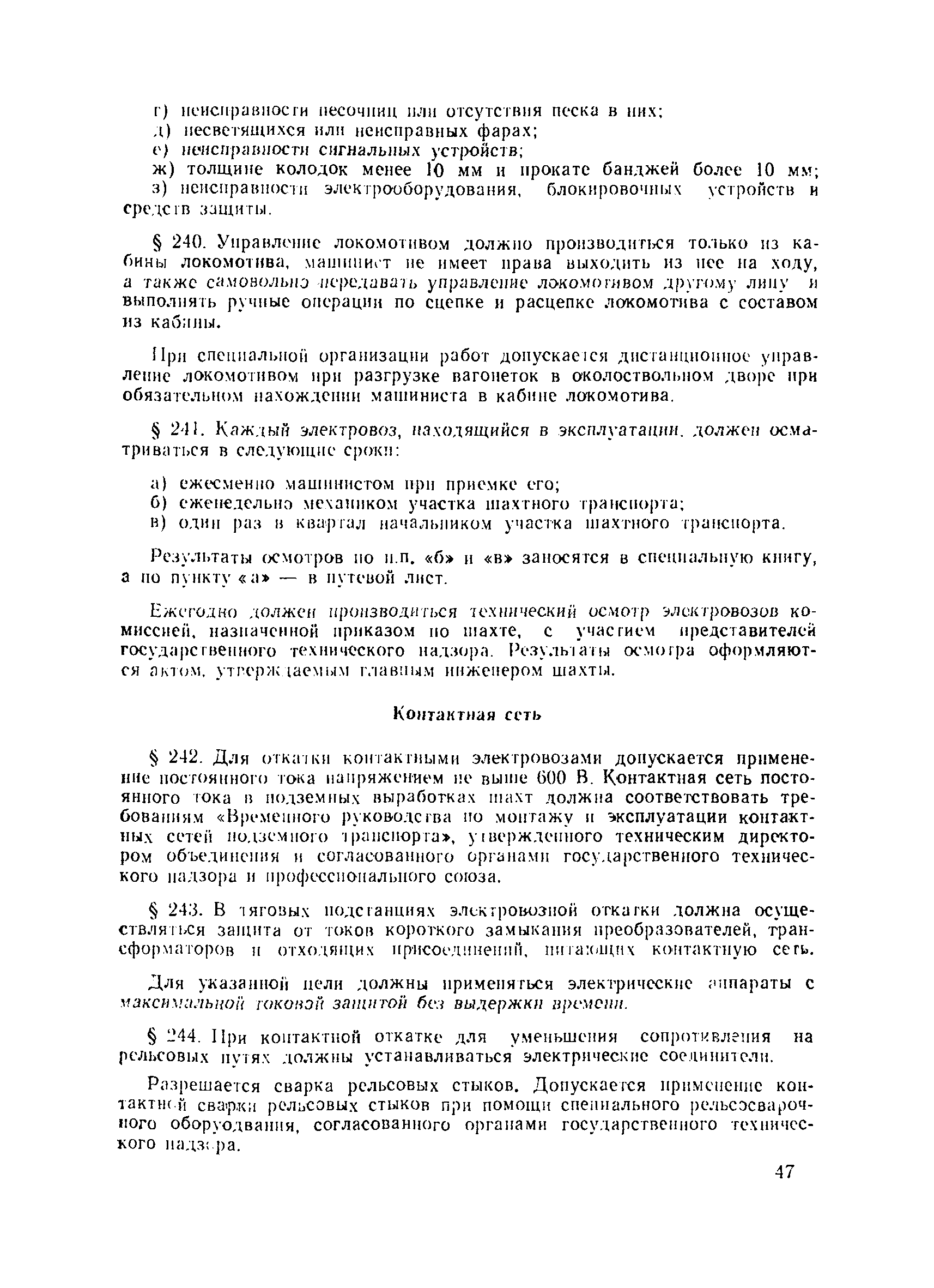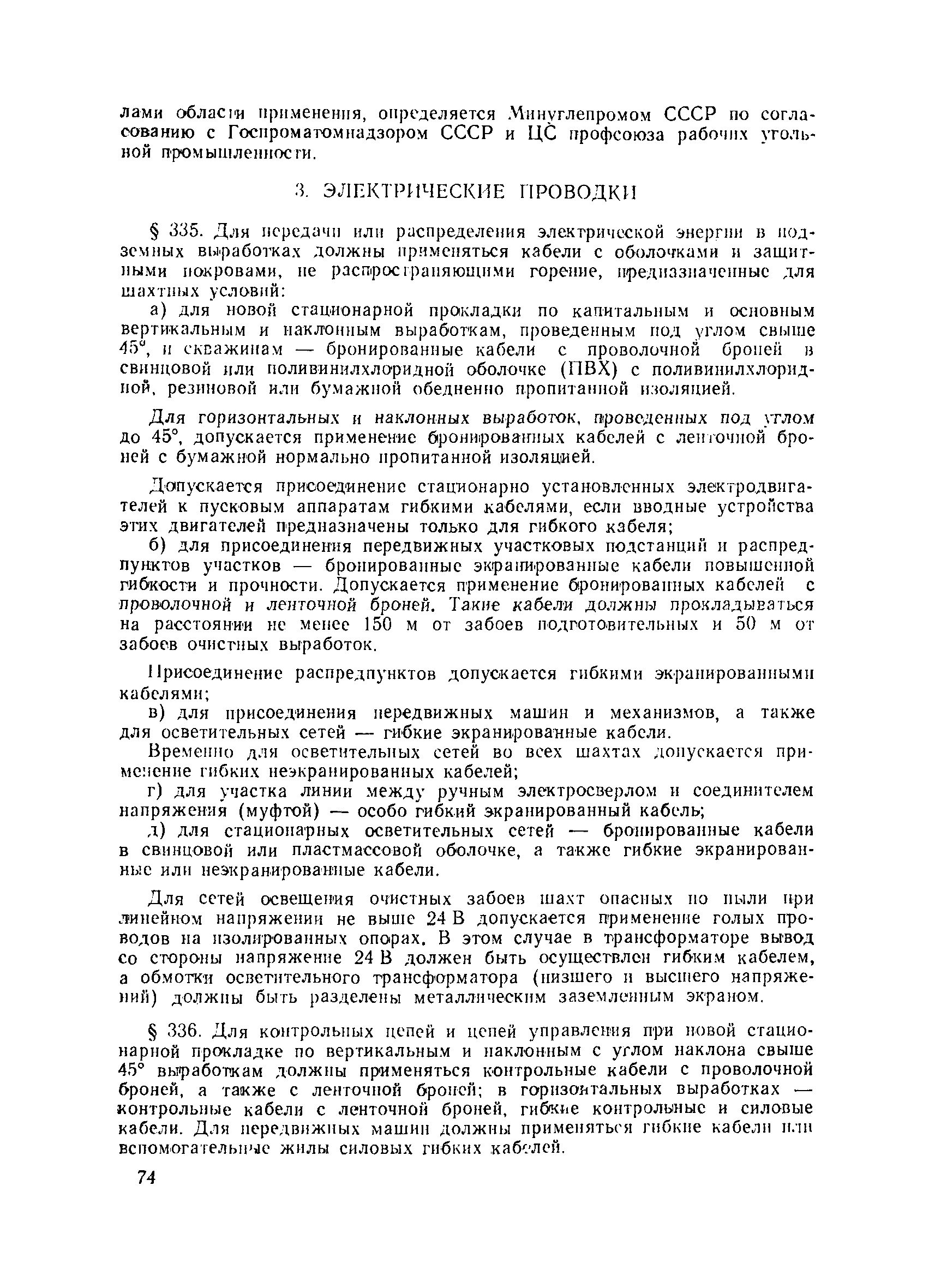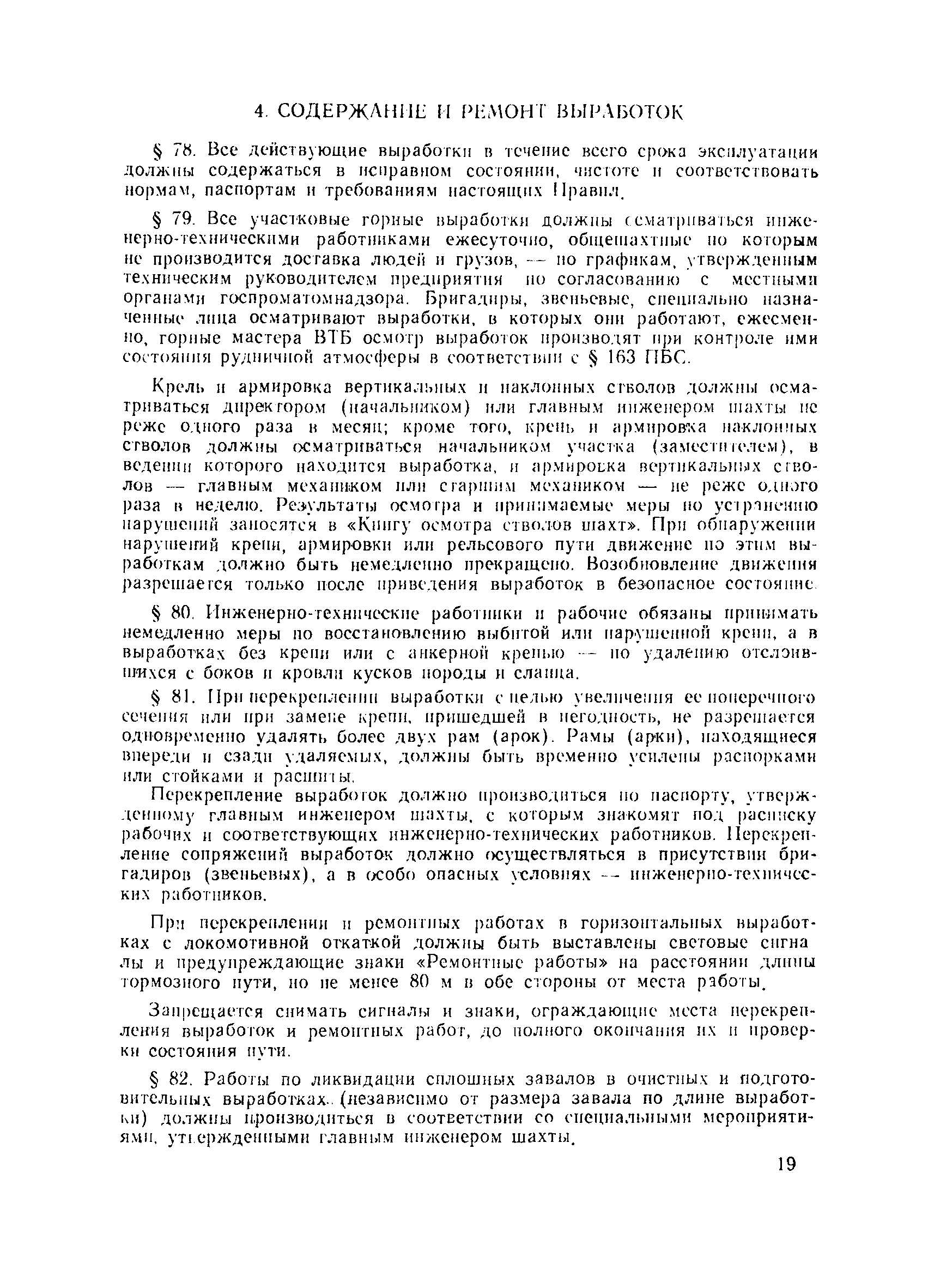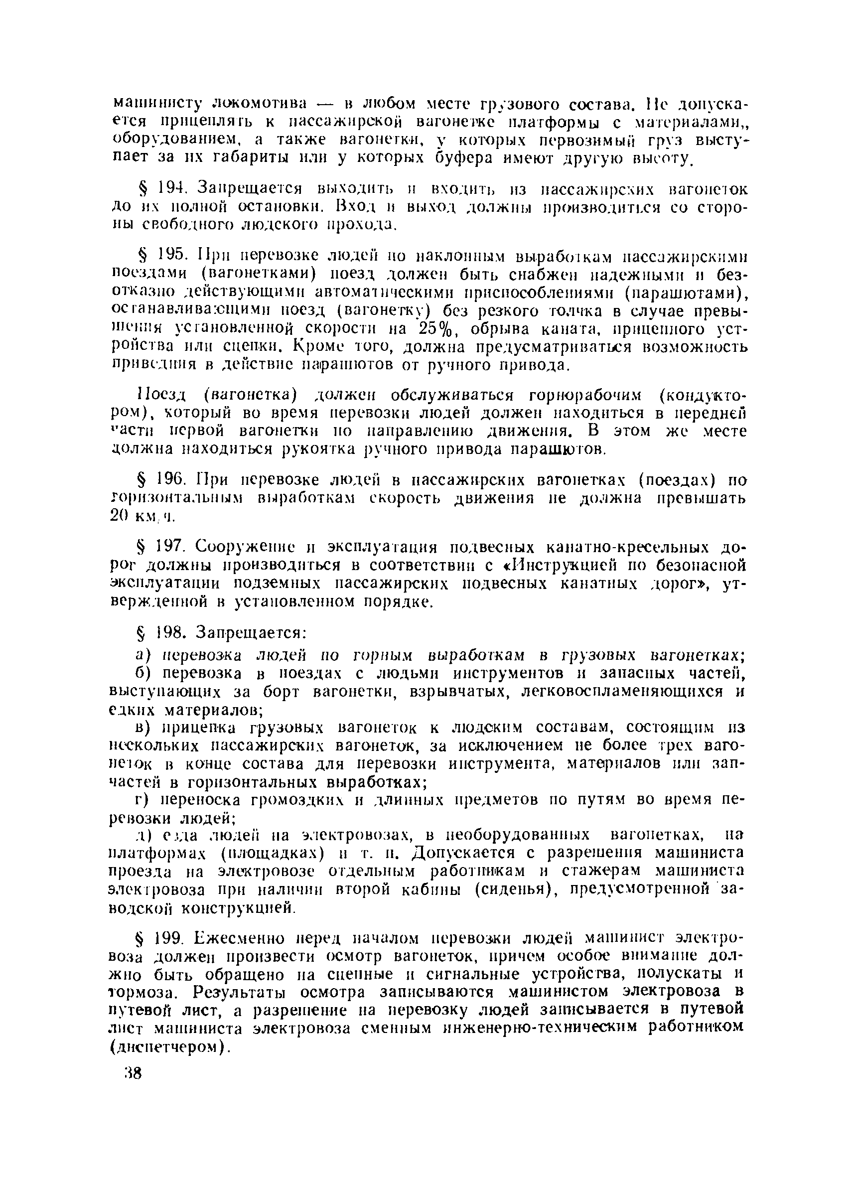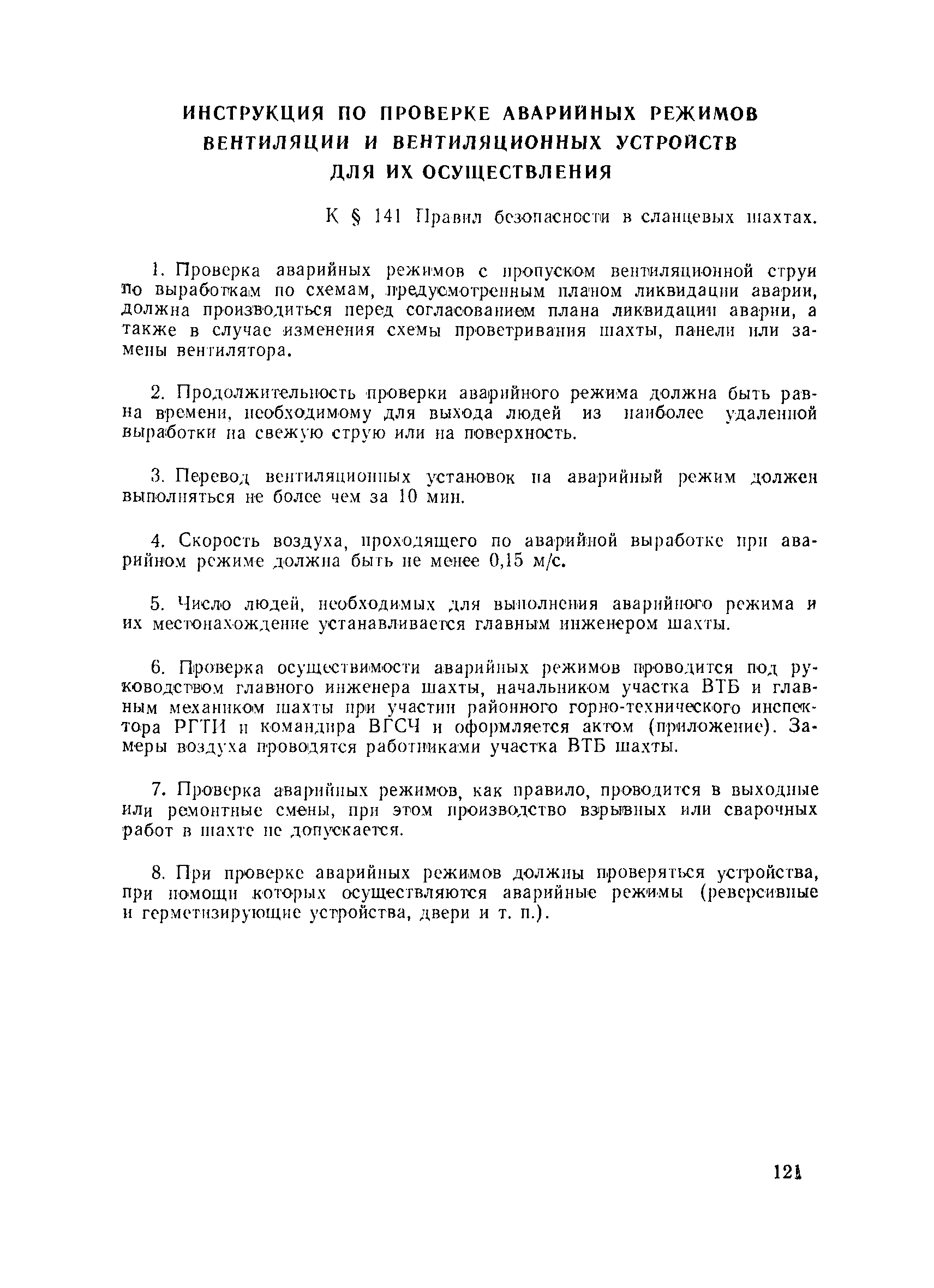 | Оглавление: | Глава I. Общие правила. Производственная санитария. Ответственность за нарушения правил безопасности Глава II. Ведение горных работ. Предотвращение затопления горных выработок Глава III. Проветривание подземных выработок. Борьба с пылью. Противопожарная защита. Глава IV. Рудничный транспорт и подъем. Глава V. Электромеханическое хозяйство. Глава VI. Ведение взрывных работ Инструкция по составлению паспортов выемочного участка проведения и крепления подземных выработок Инструкция по составлению планов ликвидации аварий Инструкция по проведению аварийных режимов вентиляции и вентиляционных устройств для их осуществления Инструкция по составлению вентиляционных планов Инструкция по проверке состава и измерению расхода рудничного воздуха Инструкция по противопожарной защите сланцевых шахт Инструкция по ведению огневых работ в подземных выработках и надшахтных зданиях Инструкция по устройству и эксплуатации подземных раздаточных камер и участковых пунктов хранения (УПХ) взрывчатых материалов на сланцевых шахтах Инструкция по определению тока короткого замыкания, выбору я проверке установок максимальной токовой защиты в сетях напряжением до 1140 В инструкция но проверке максимальной токовой защиты шахтных аппаратов Инструкция по безопасному производству работ в подземных электроустановках Инструкция по устройству, осмотру и измерению сопротивлений шахтных заземлителей Книга осмотра подземной установки Книга приема и сдачи смен Книга осмотра канатов и их расхода |