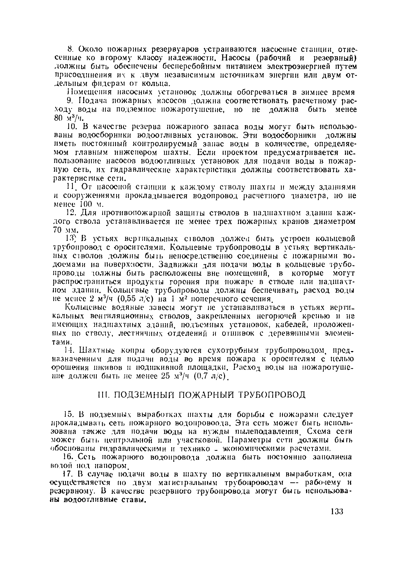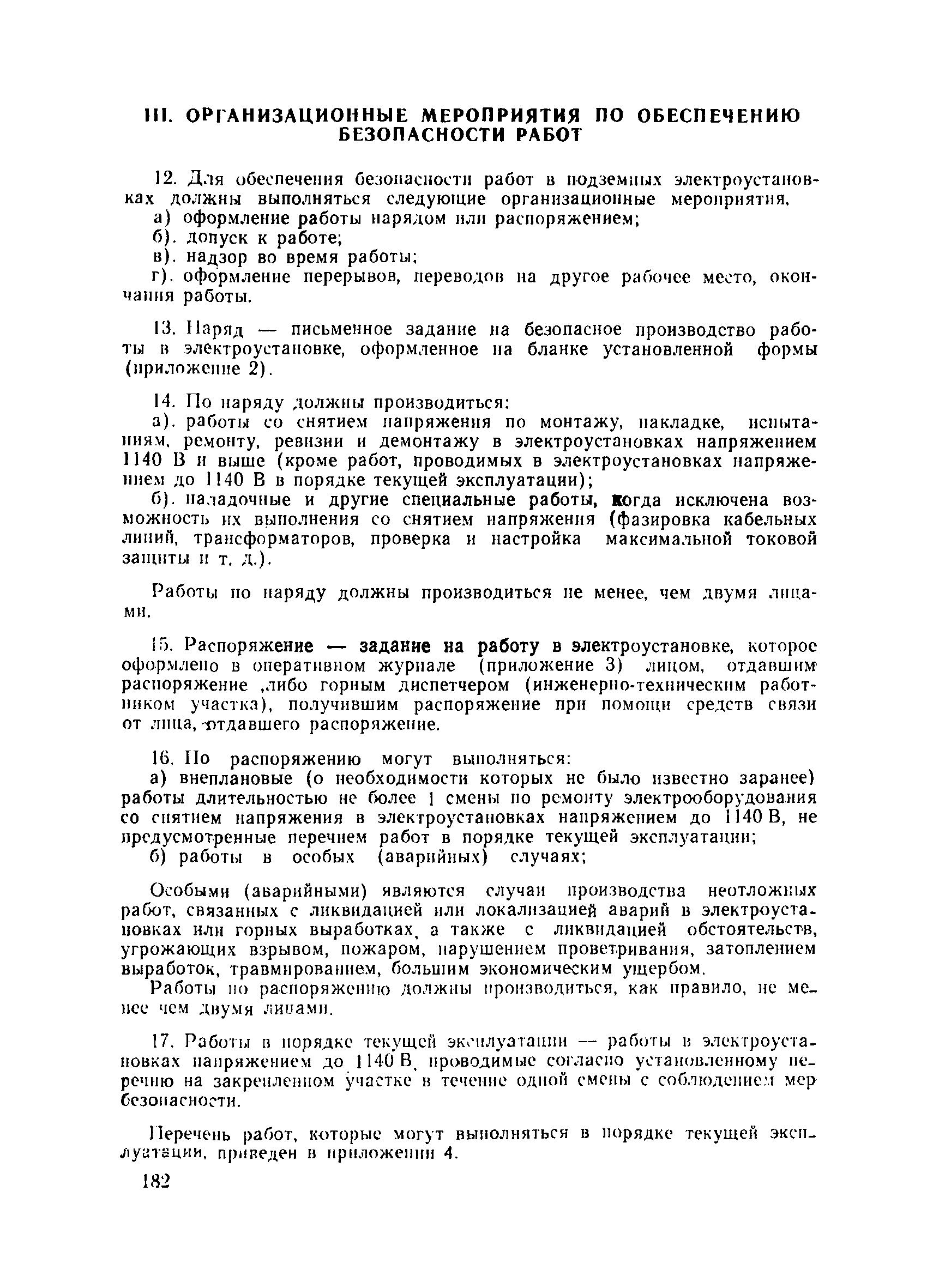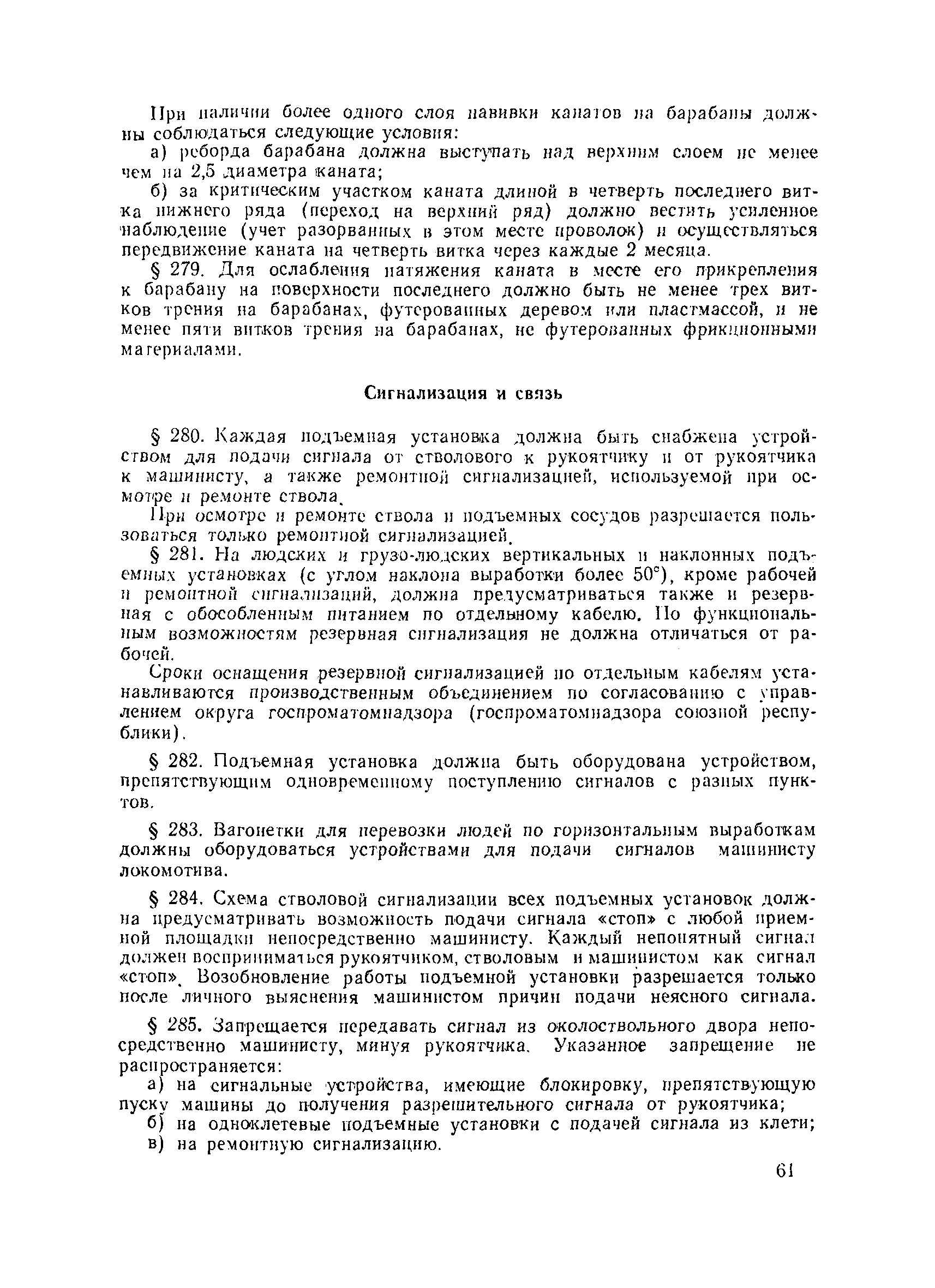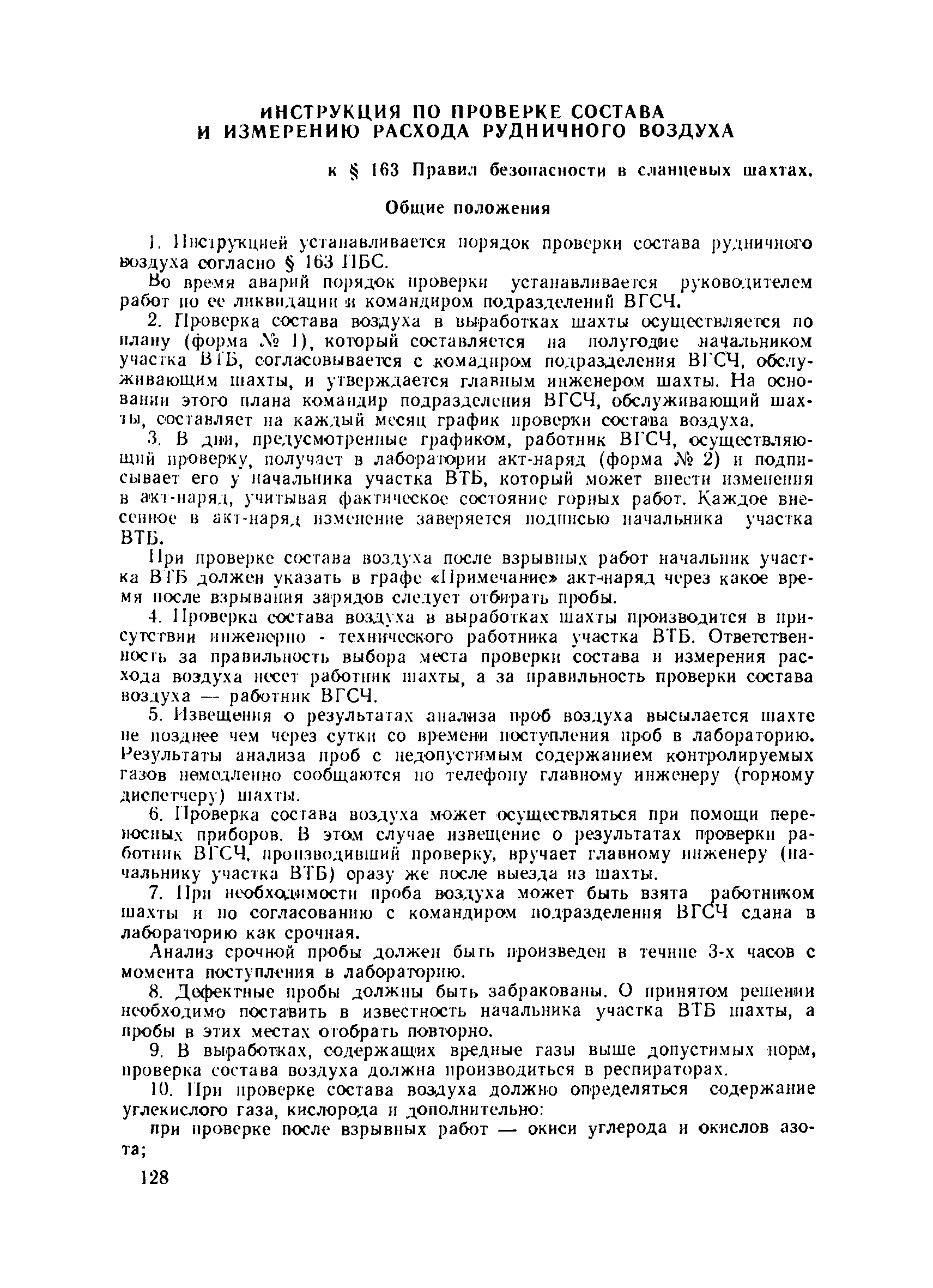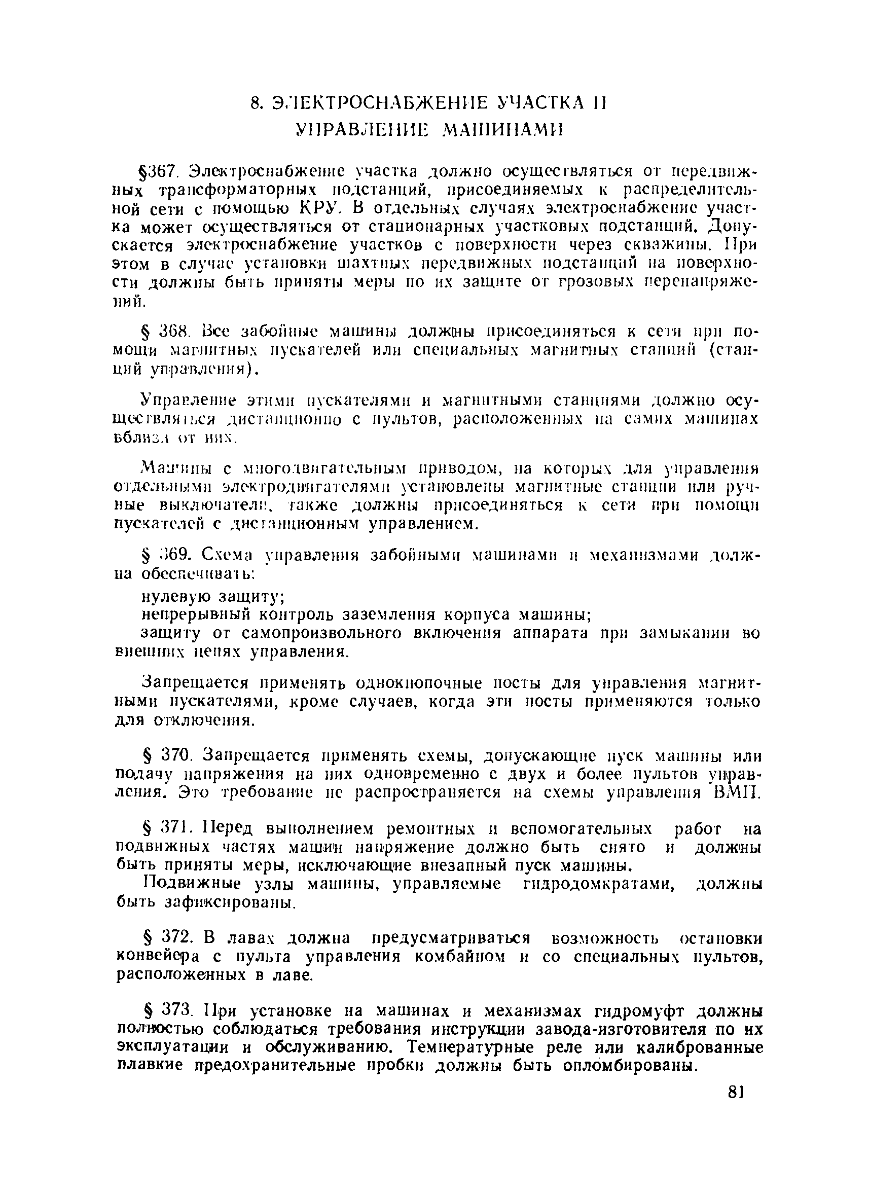 | Оглавление: | Глава I. Общие правила. Производственная санитария. Ответственность за нарушения правил безопасности Глава II. Ведение горных работ. Предотвращение затопления горных выработок Глава III. Проветривание подземных выработок. Борьба с пылью. Противопожарная защита. Глава IV. Рудничный транспорт и подъем. Глава V. Электромеханическое хозяйство. Глава VI. Ведение взрывных работ Инструкция по составлению паспортов выемочного участка проведения и крепления подземных выработок Инструкция по составлению планов ликвидации аварий Инструкция по проведению аварийных режимов вентиляции и вентиляционных устройств для их осуществления Инструкция по составлению вентиляционных планов Инструкция по проверке состава и измерению расхода рудничного воздуха Инструкция по противопожарной защите сланцевых шахт Инструкция по ведению огневых работ в подземных выработках и надшахтных зданиях Инструкция по устройству и эксплуатации подземных раздаточных камер и участковых пунктов хранения (УПХ) взрывчатых материалов на сланцевых шахтах Инструкция по определению тока короткого замыкания, выбору я проверке установок максимальной токовой защиты в сетях напряжением до 1140 В инструкция но проверке максимальной токовой защиты шахтных аппаратов Инструкция по безопасному производству работ в подземных электроустановках Инструкция по устройству, осмотру и измерению сопротивлений шахтных заземлителей Книга осмотра подземной установки Книга приема и сдачи смен Книга осмотра канатов и их расхода |