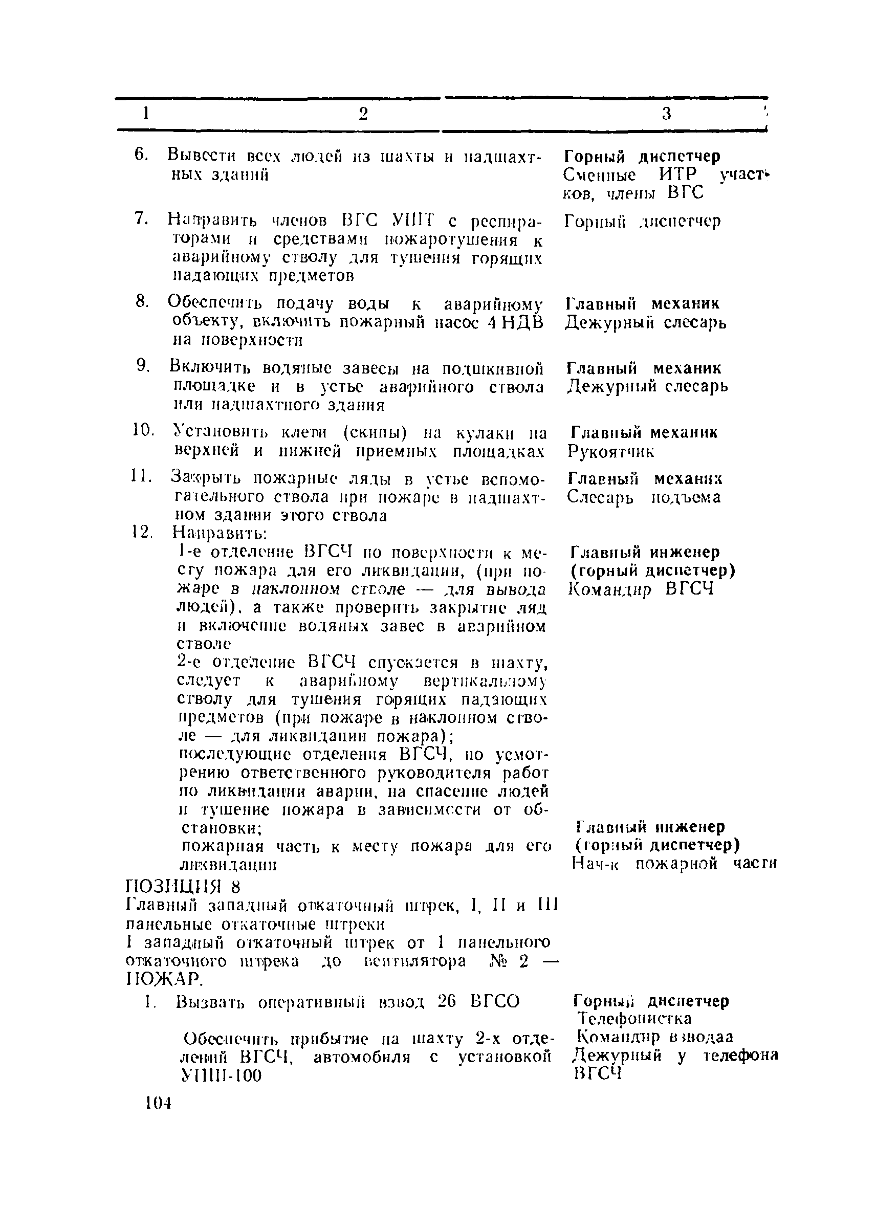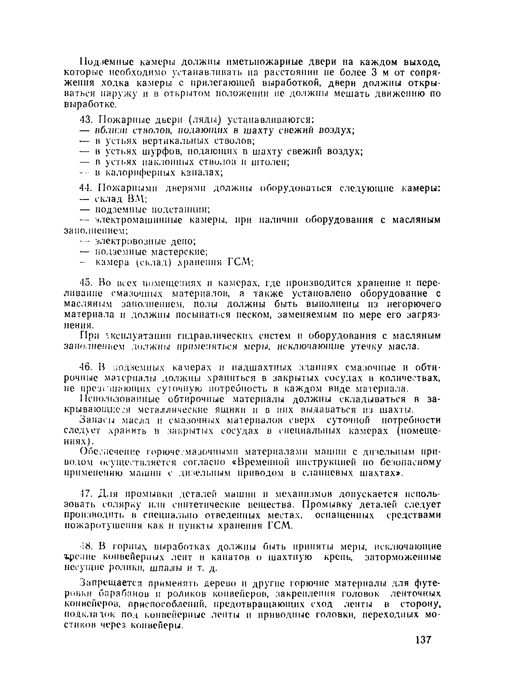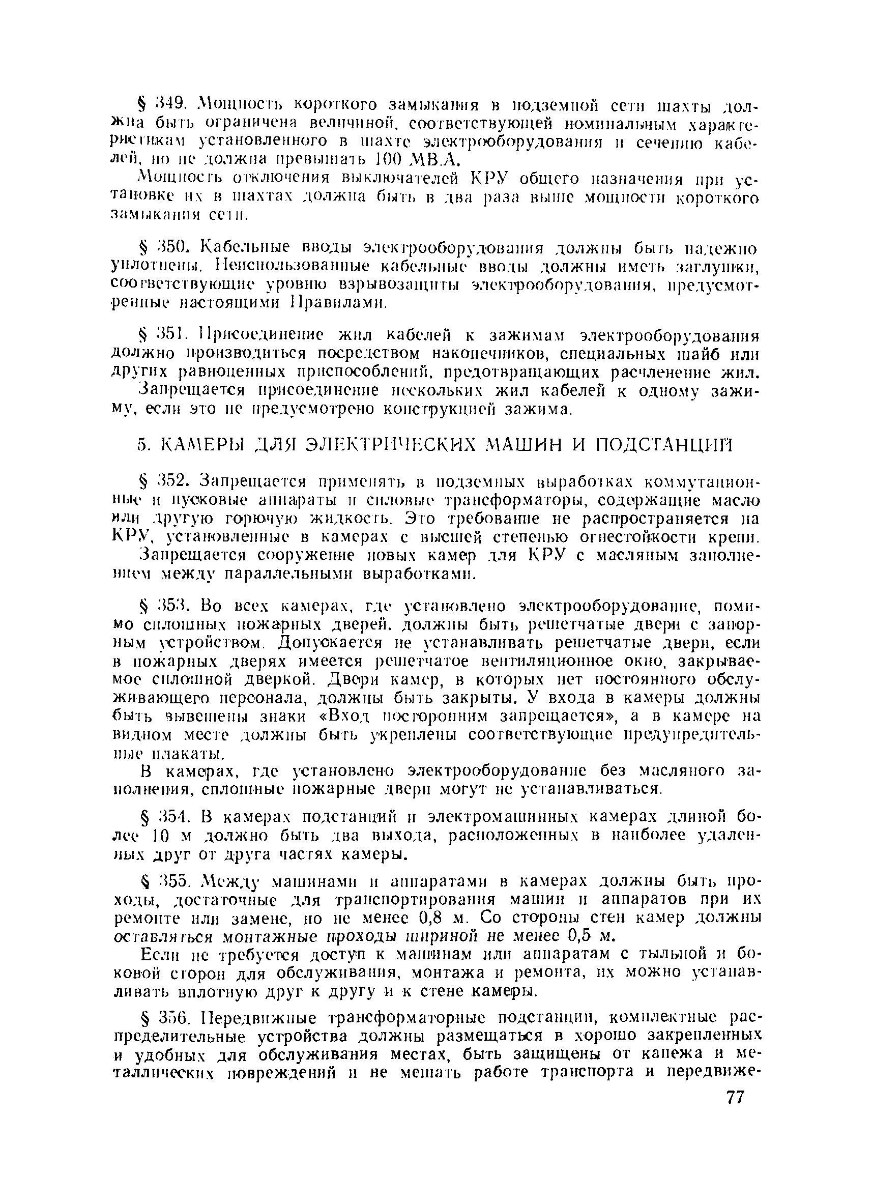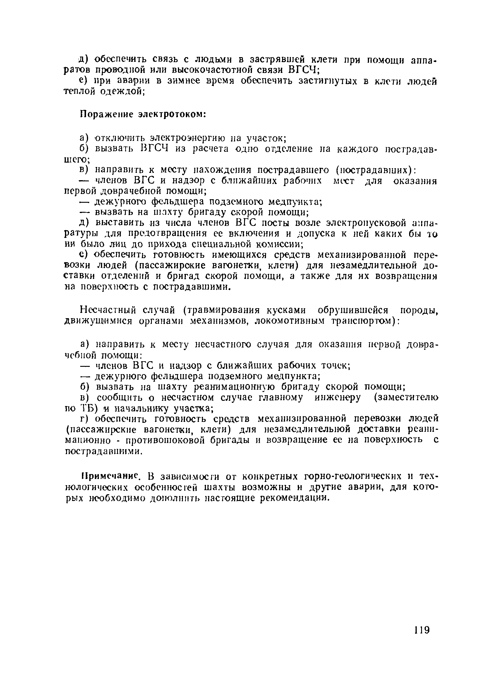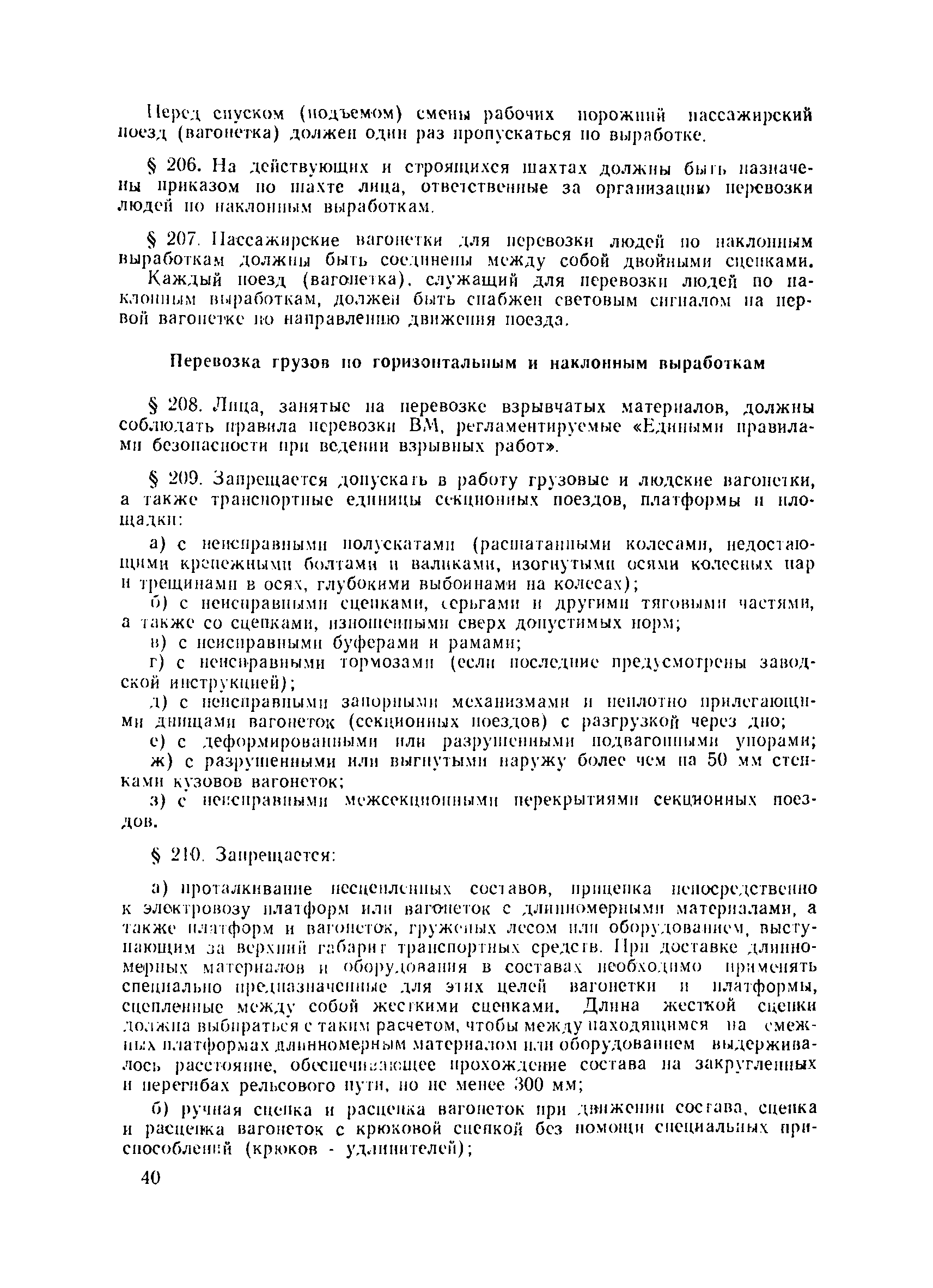 | Оглавление: | Глава I. Общие правила. Производственная санитария. Ответственность за нарушения правил безопасности Глава II. Ведение горных работ. Предотвращение затопления горных выработок Глава III. Проветривание подземных выработок. Борьба с пылью. Противопожарная защита. Глава IV. Рудничный транспорт и подъем. Глава V. Электромеханическое хозяйство. Глава VI. Ведение взрывных работ Инструкция по составлению паспортов выемочного участка проведения и крепления подземных выработок Инструкция по составлению планов ликвидации аварий Инструкция по проведению аварийных режимов вентиляции и вентиляционных устройств для их осуществления Инструкция по составлению вентиляционных планов Инструкция по проверке состава и измерению расхода рудничного воздуха Инструкция по противопожарной защите сланцевых шахт Инструкция по ведению огневых работ в подземных выработках и надшахтных зданиях Инструкция по устройству и эксплуатации подземных раздаточных камер и участковых пунктов хранения (УПХ) взрывчатых материалов на сланцевых шахтах Инструкция по определению тока короткого замыкания, выбору я проверке установок максимальной токовой защиты в сетях напряжением до 1140 В инструкция но проверке максимальной токовой защиты шахтных аппаратов Инструкция по безопасному производству работ в подземных электроустановках Инструкция по устройству, осмотру и измерению сопротивлений шахтных заземлителей Книга осмотра подземной установки Книга приема и сдачи смен Книга осмотра канатов и их расхода |