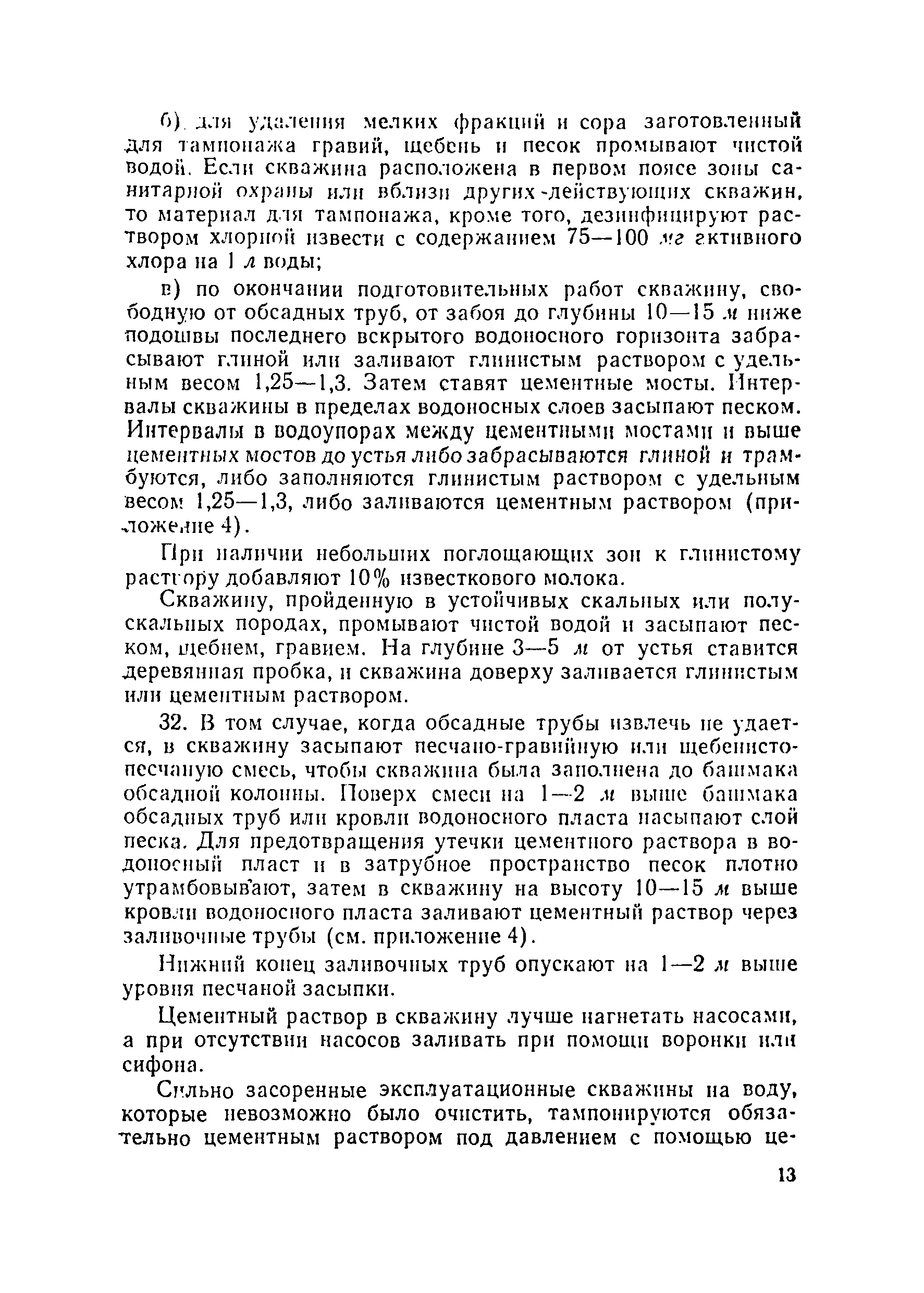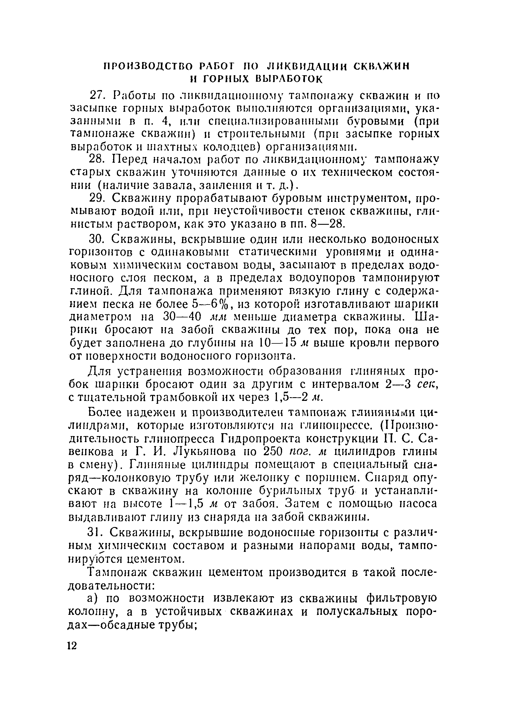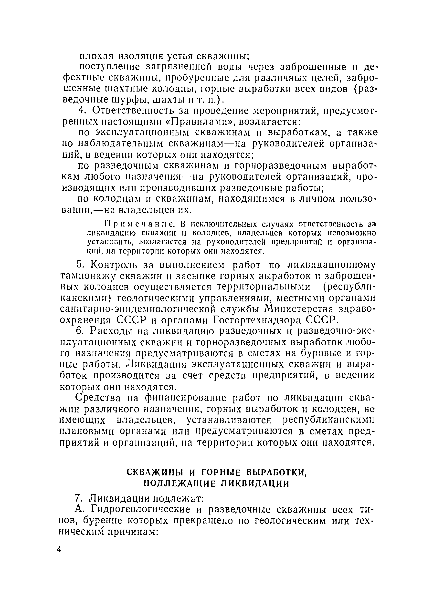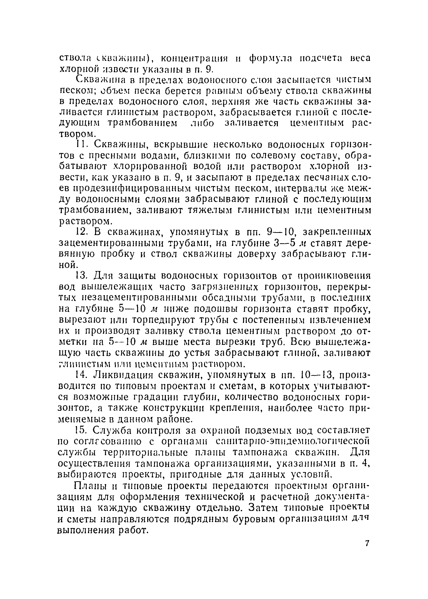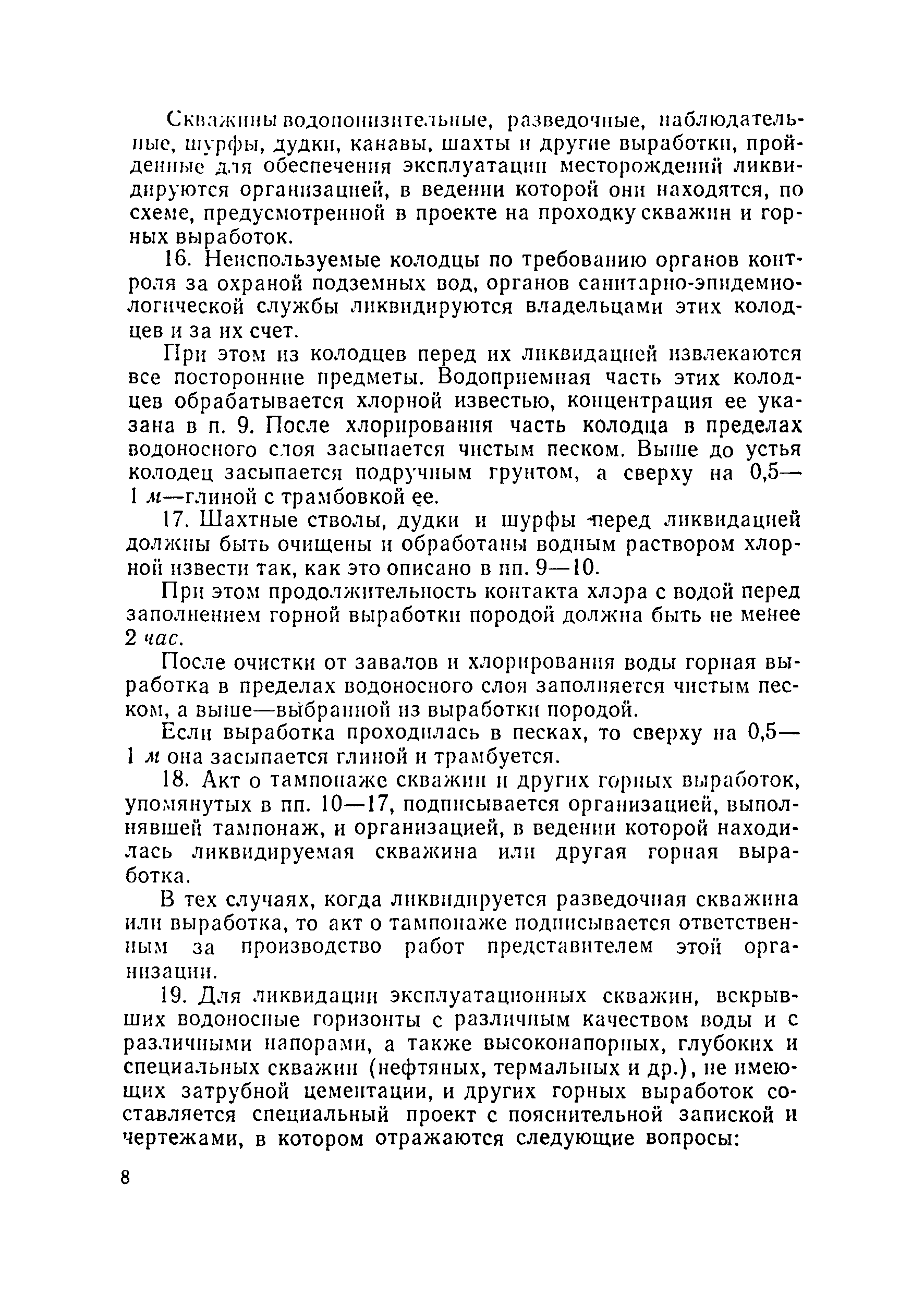 Правила и нормы техники безопасности и промышленной санитарии для проектирования, строительства и эксплуатации предприятий по производству активных углей| Статус: | справочные материалы, мп, тпр | | Название рус.: | Правила и нормы техники безопасности и промышленной санитарии для проектирования, строительства и эксплуатации предприятий по производству активных углей | | Дата добавления в базу: | 01.02.2020 | | Дата актуализации: | 01.01.2021 | | Область применения: | Правила являются обязательными для всех ведомств, предприятий, организаций и учреждений, независимо от их ведомственной подчиненности, а также для индивидуальных водопотребителей. | | Оглавление: | Общие положения Скважины и горные выработки, подлежащие ликвидации Ликвидационный тампонаж скважин различных типов Ликвидация самоизливающихся скважин Ликвидация скважин в зоне многолетней мерзлоты Частичный тампонаж Производство работ но ликвидации скважин и горных выработок Документация Приложение 1. Нормы количества глины и воды для приготовления 1 м3 глинистого раствора Приложение 2. Содержание глины, цемента и песка в растворах при сплошной заливке скважин в зависимости от поглощающих свойств пород, слагающих водоносный горизонт Приложение 3. Гранулометрический состав глины и песка, применяемых для глино-цементных и песчано-цементных растворов Приложение 4. Цементы для тампонажа скважин Приложение 5. Акт на производство ликвидационного тампонажа | | Утверждён: | 17.05.1961 Государственный комитет Совета Министров СССР по химии 21.12.1960 Президиум Центрального комитета профессионального Союза рабочих нефтяной и химической промышленности (13)
