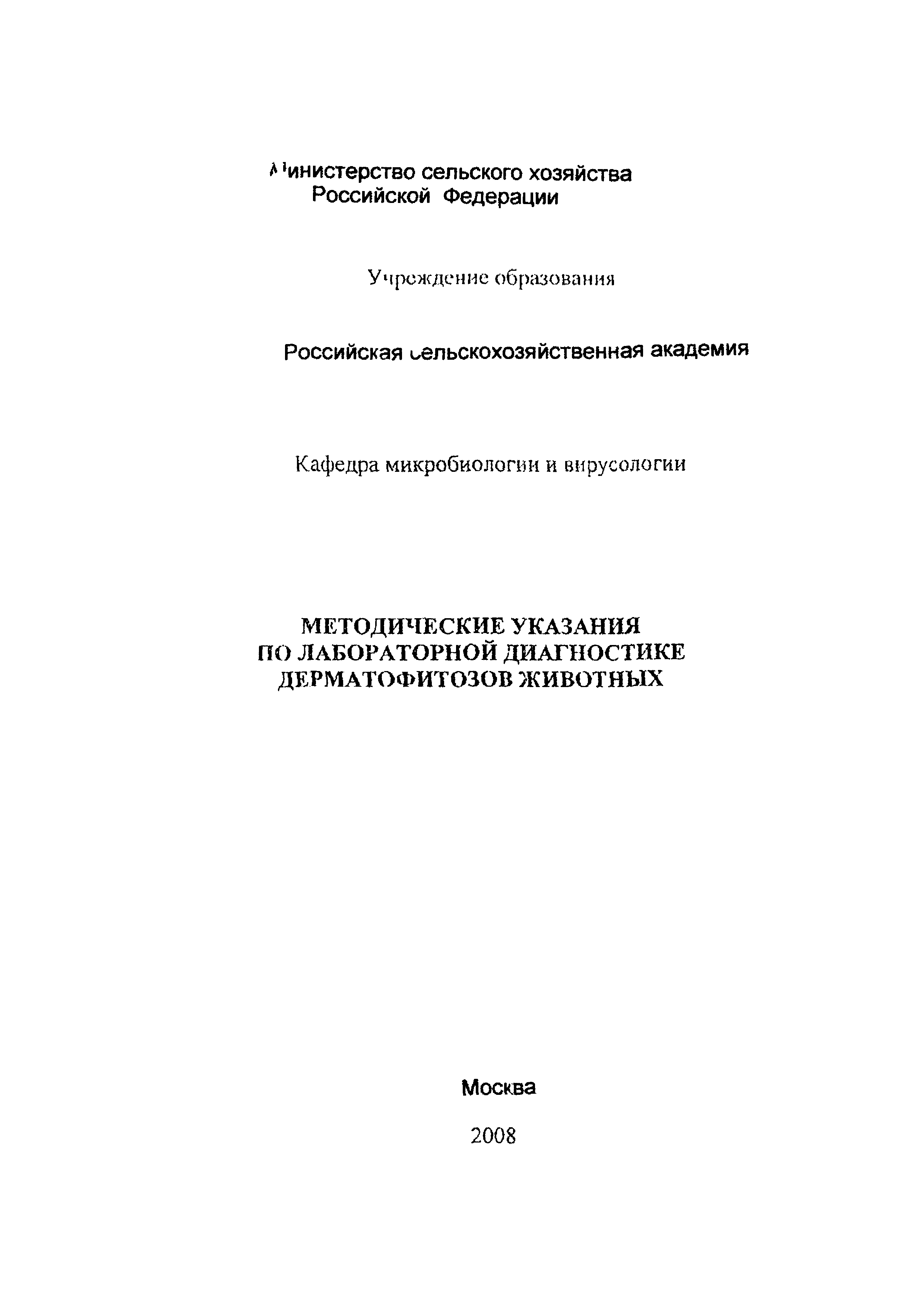 Скачать Методические указания по лабораторной диагностике дерматофитозов животныхДата актуализации: 01.01.2021