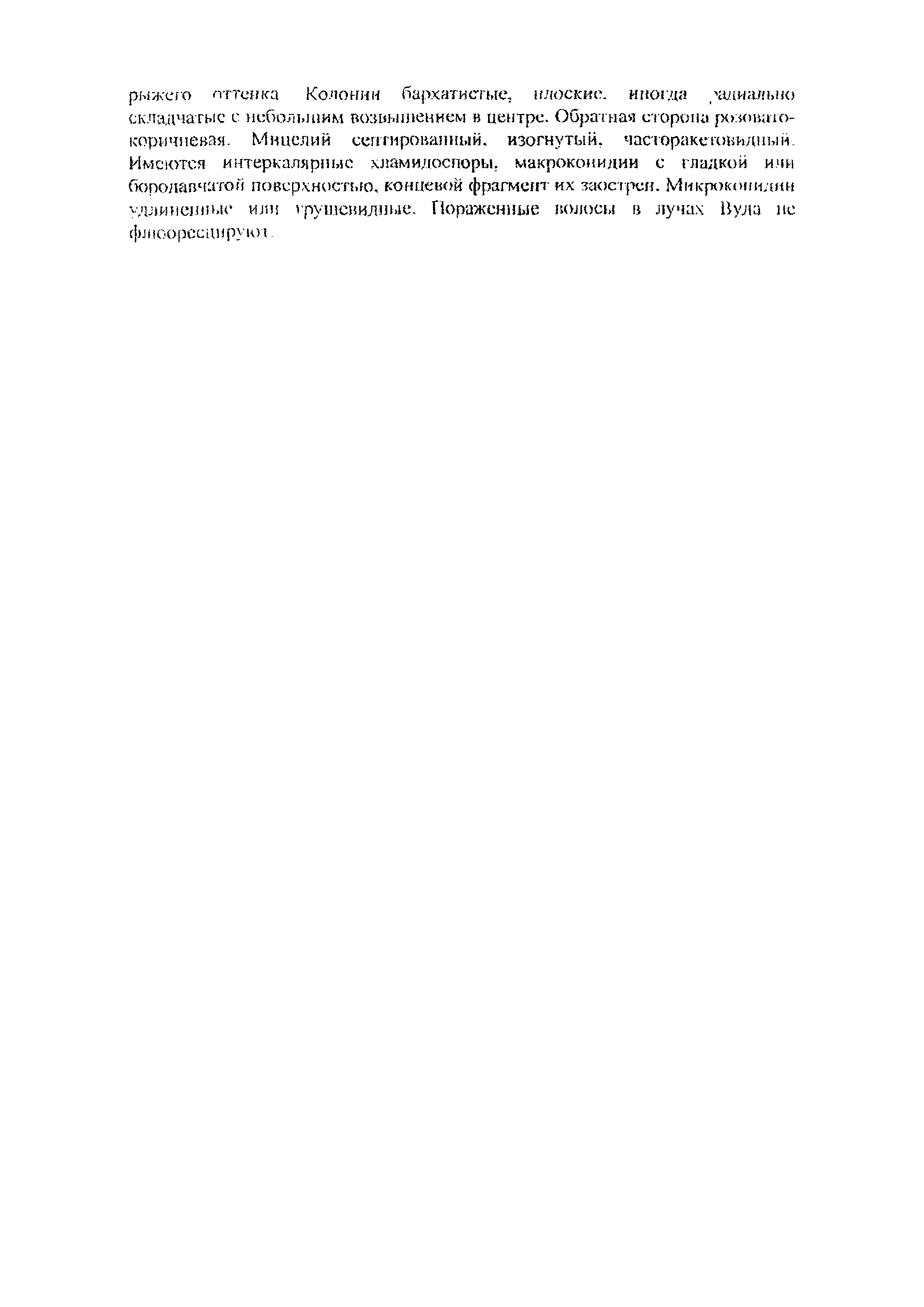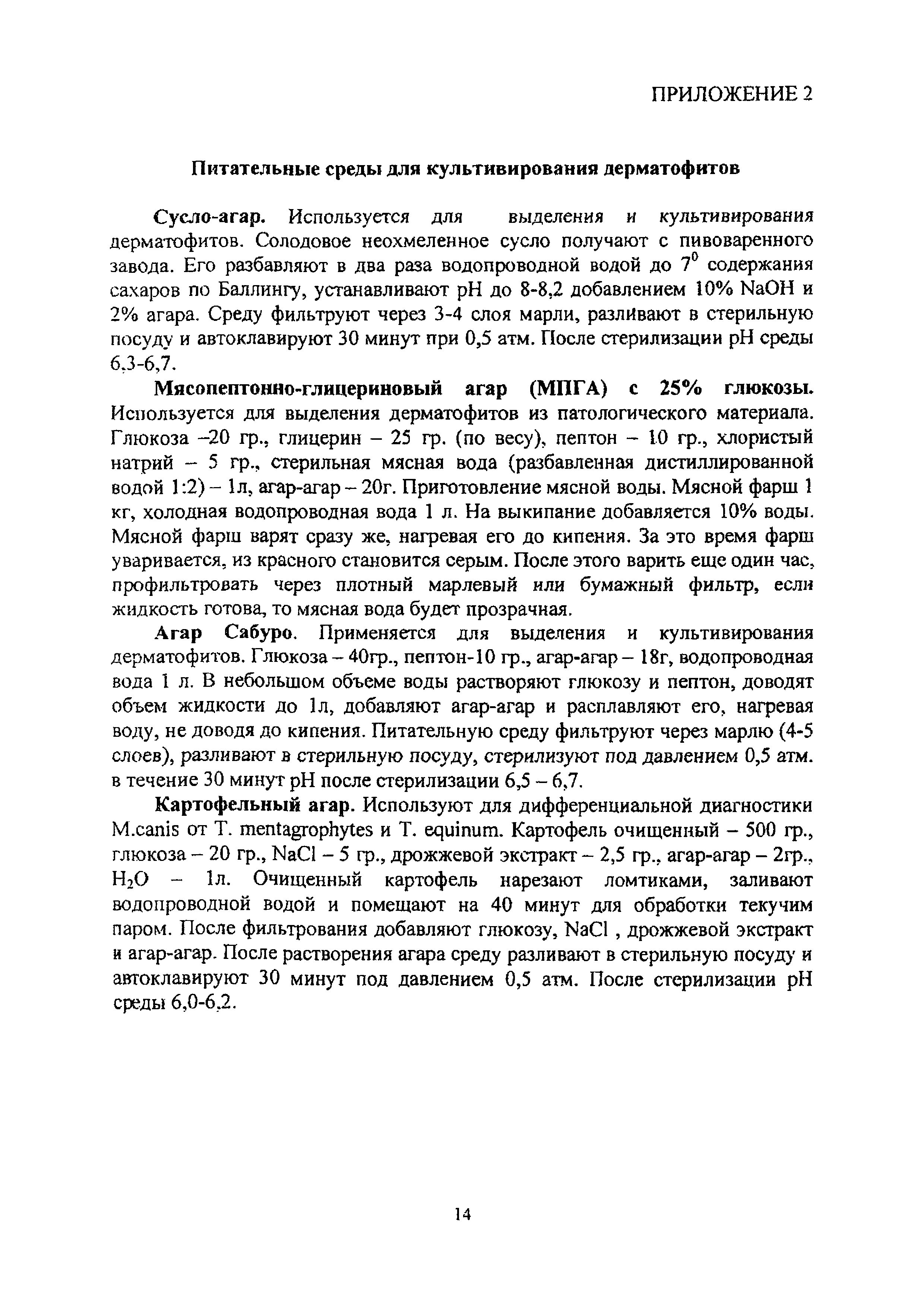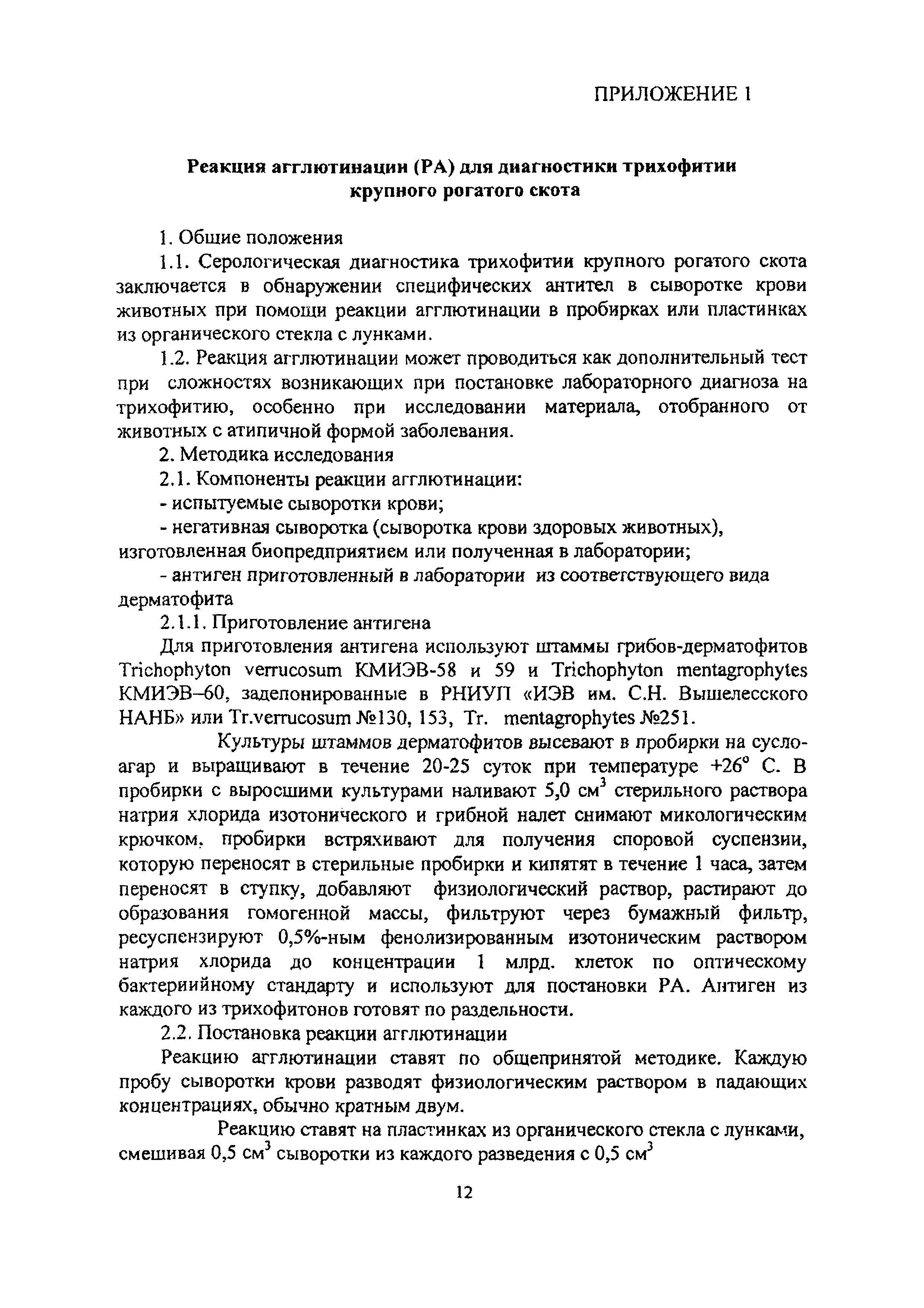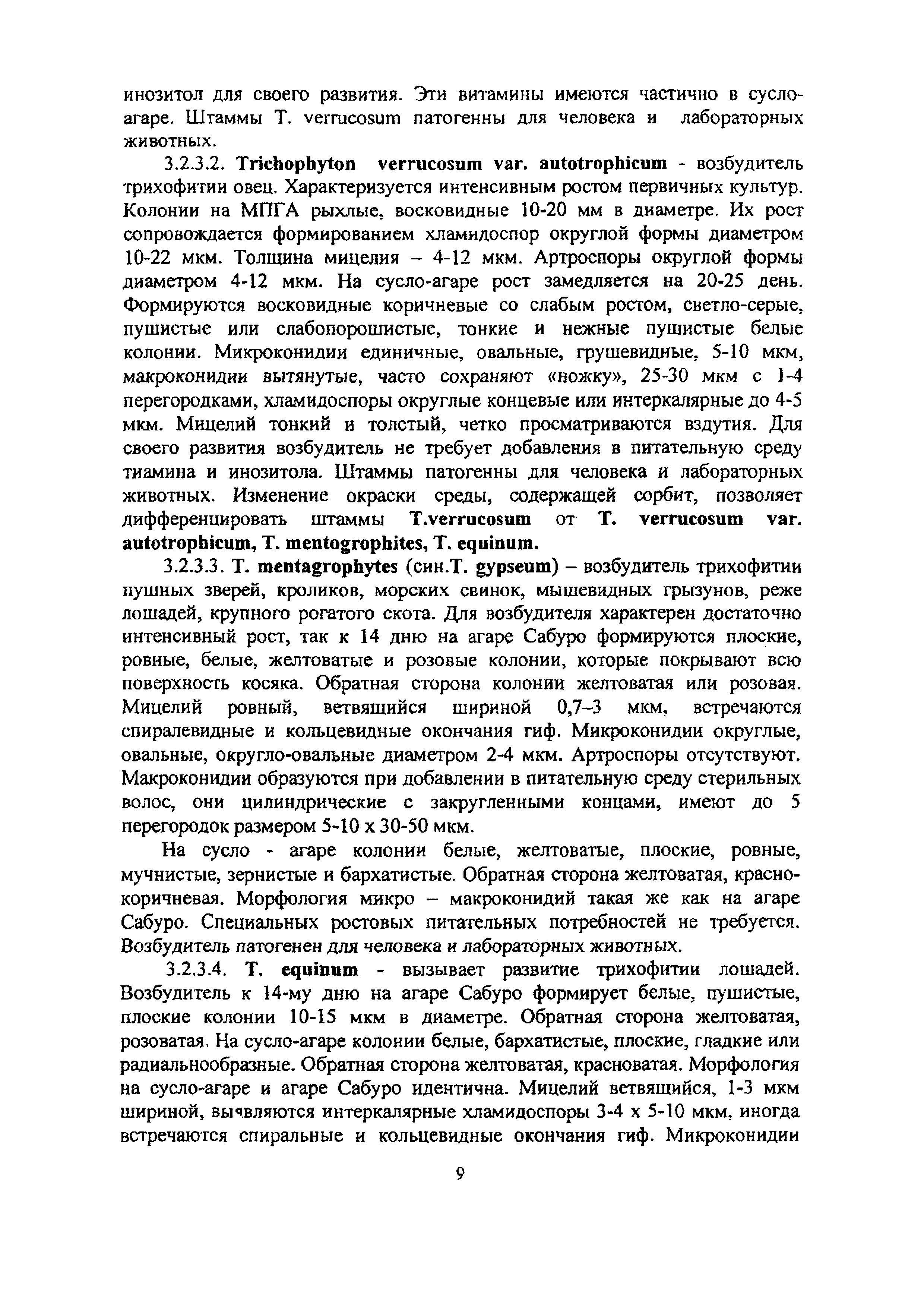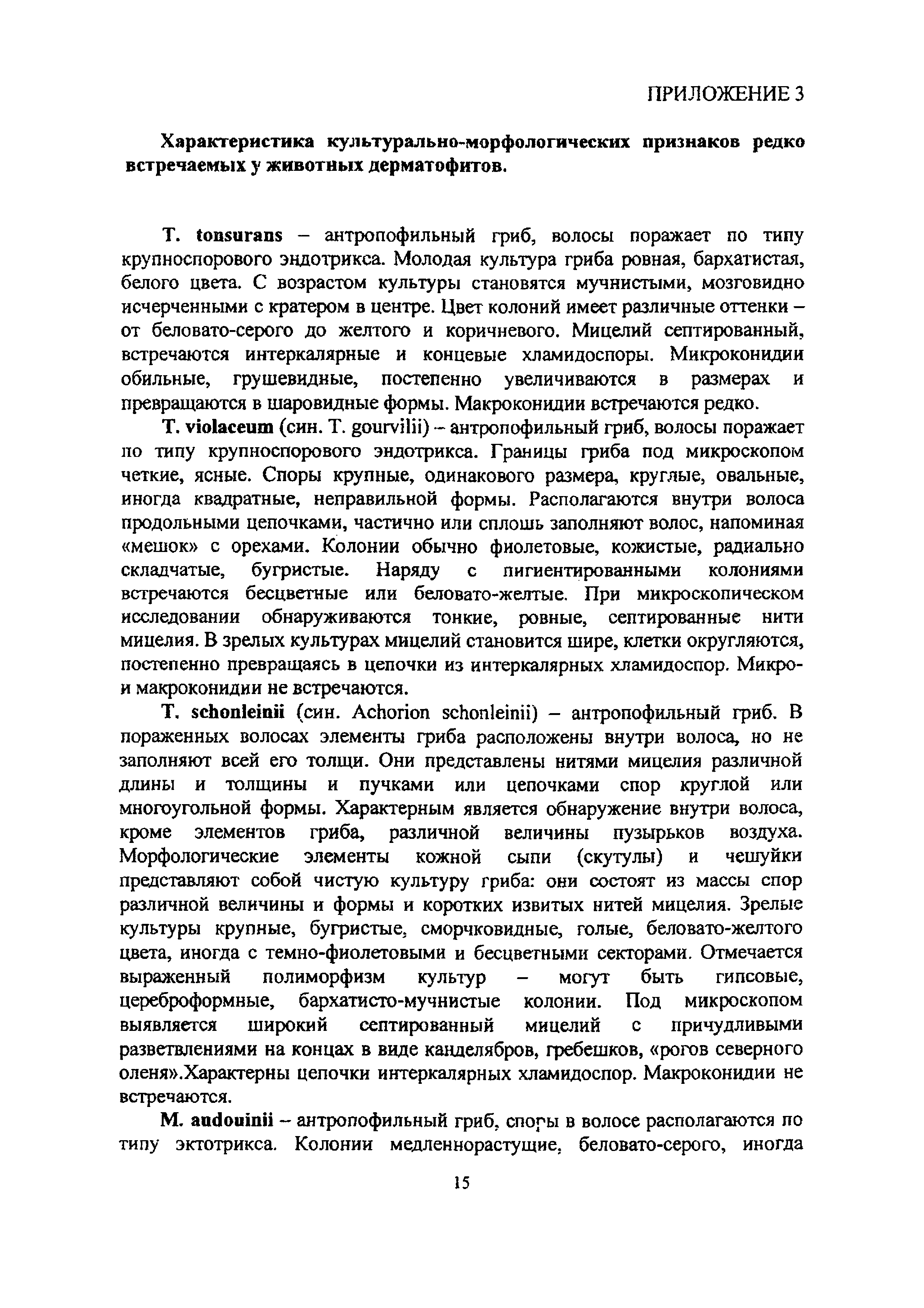 Методические указания по лабораторной диагностике дерматофитозов животных| Статус: | информационный документ | | Название рус.: | Методические указания по лабораторной диагностике дерматофитозов животных | | Дата добавления в базу: | 01.02.2020 | | Дата актуализации: | 01.01.2021 | | Оглавление: | 1 Общие положения 2 Отбор патологического материала 3 Методы лабораторной диагностики 3.1 Микроскопический метод исследования 3.1.1 Микроскопия в люминесцентном микроскопе 3.1.2 Микроскопия в световом микроскопе 3.2 Микологический метод исследования 3.2.1 Выделение чистой культуры возбудителя 3.2.2 Идентификация вида возбудителя 3.2.3 .Характеристика культурально-морфологических признаков возбудителей дерматофитозов животных Приложение 1. Реакция агглютинации (РА) для диагностики трихофитии крупного рогатого скота Приложение 2. Питательные среды для культивирования дерматофитов Приложение 3. Характеристика культурально-морфологических признаков дерматофитов, редко встречаемых у животных | | Утверждён: | 18.03.2008 Управление ветеринарии Министерства сельского хозяйства РФ