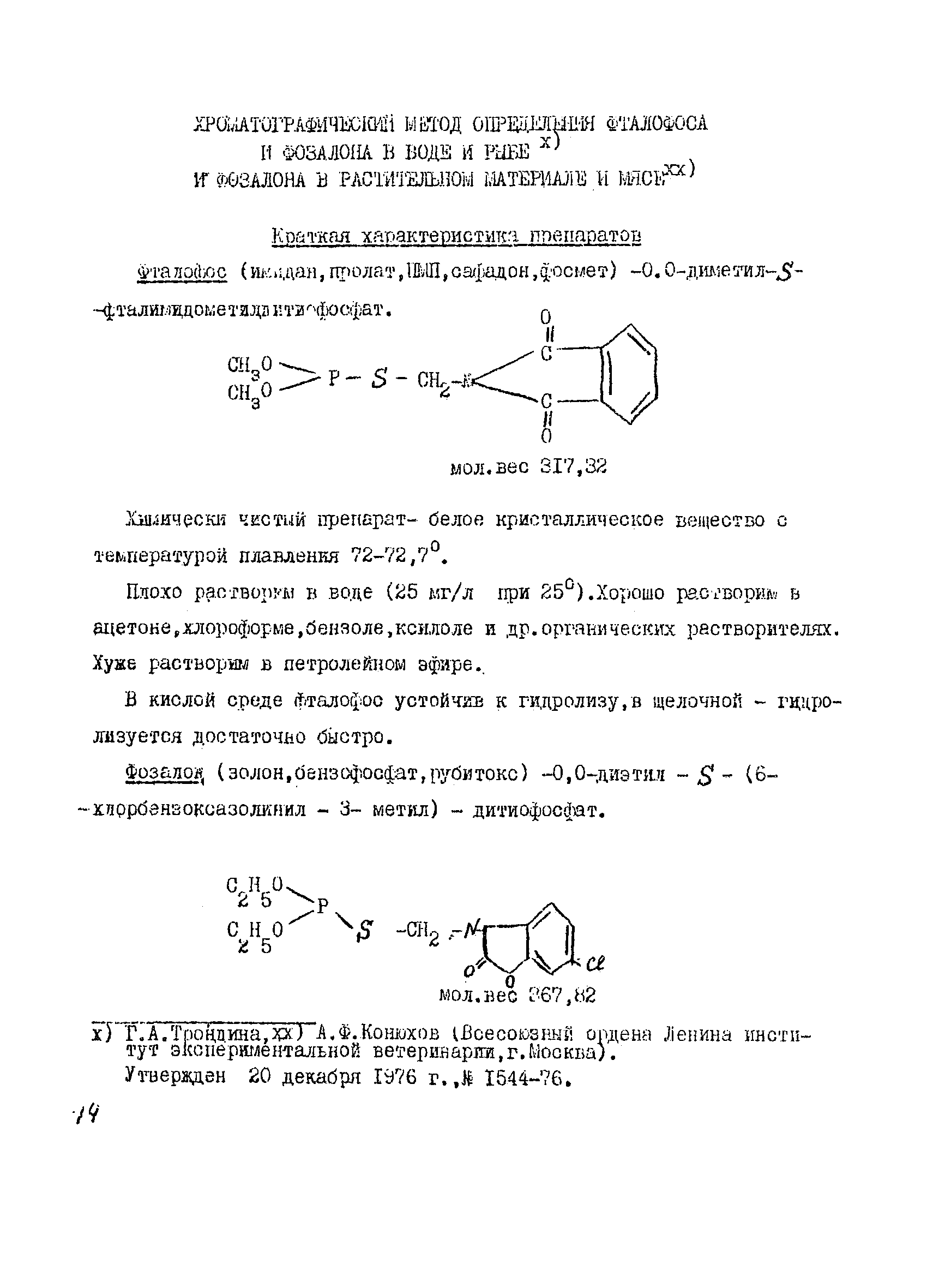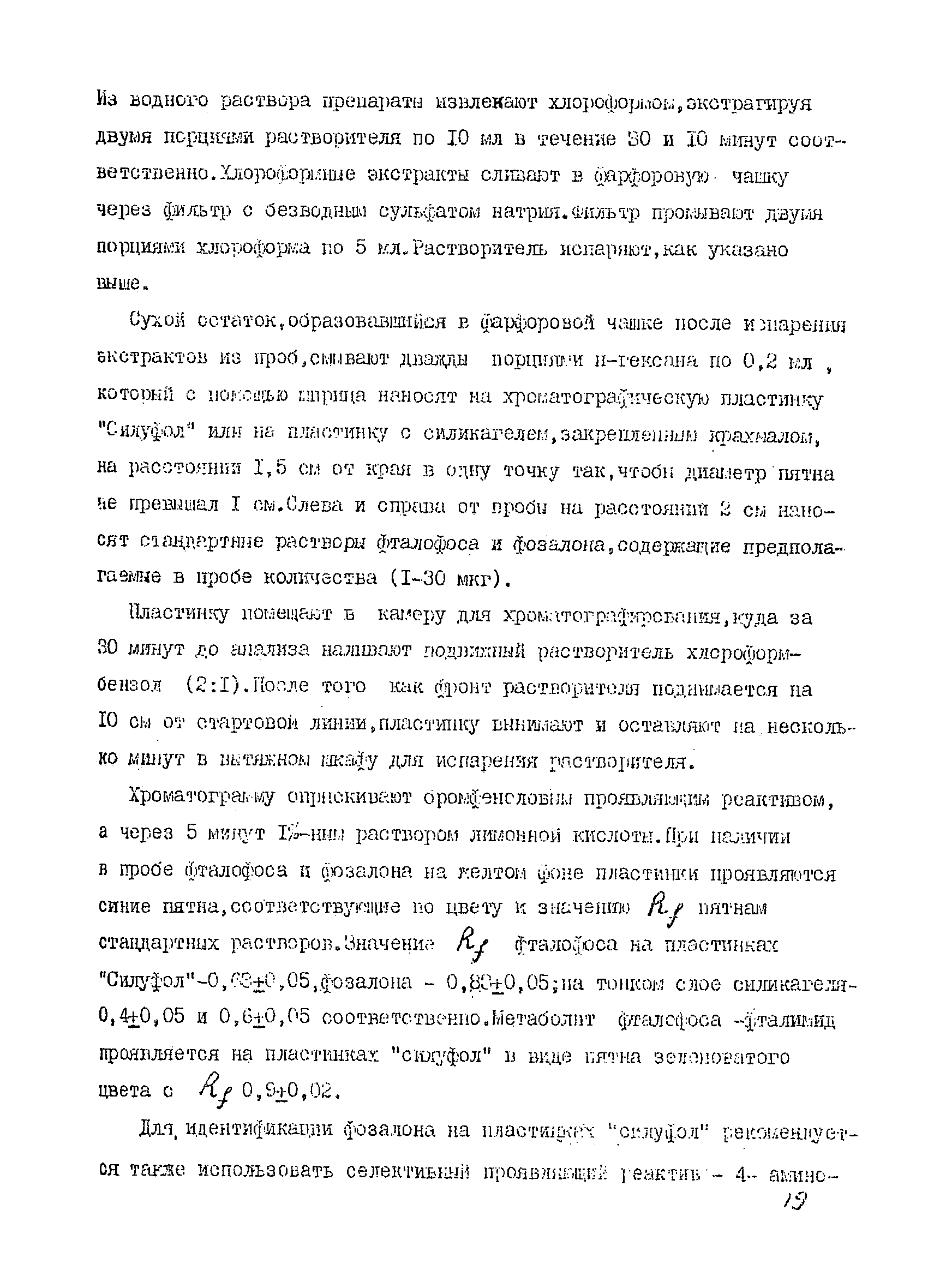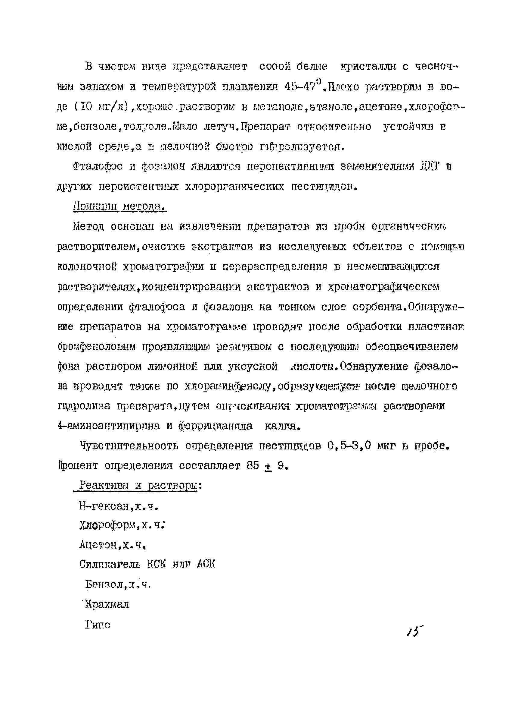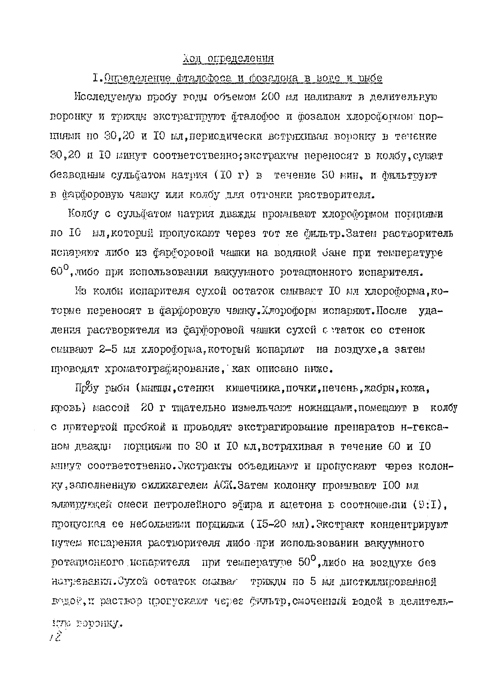 | Название рус.: | Хроматографический метод определения фталофоса и фозалона в воде и рыбе и фозалона в растительном материале и мясе |