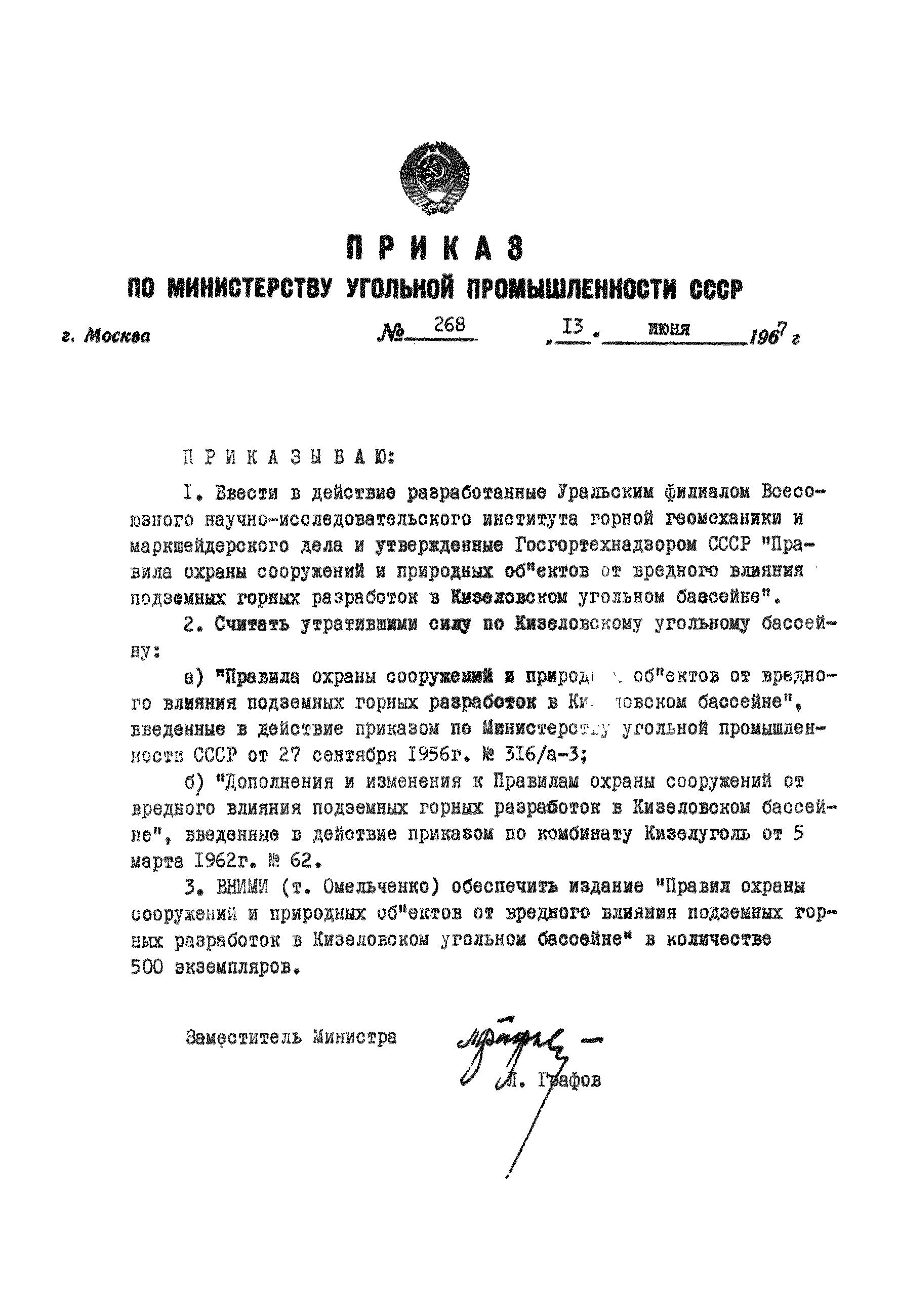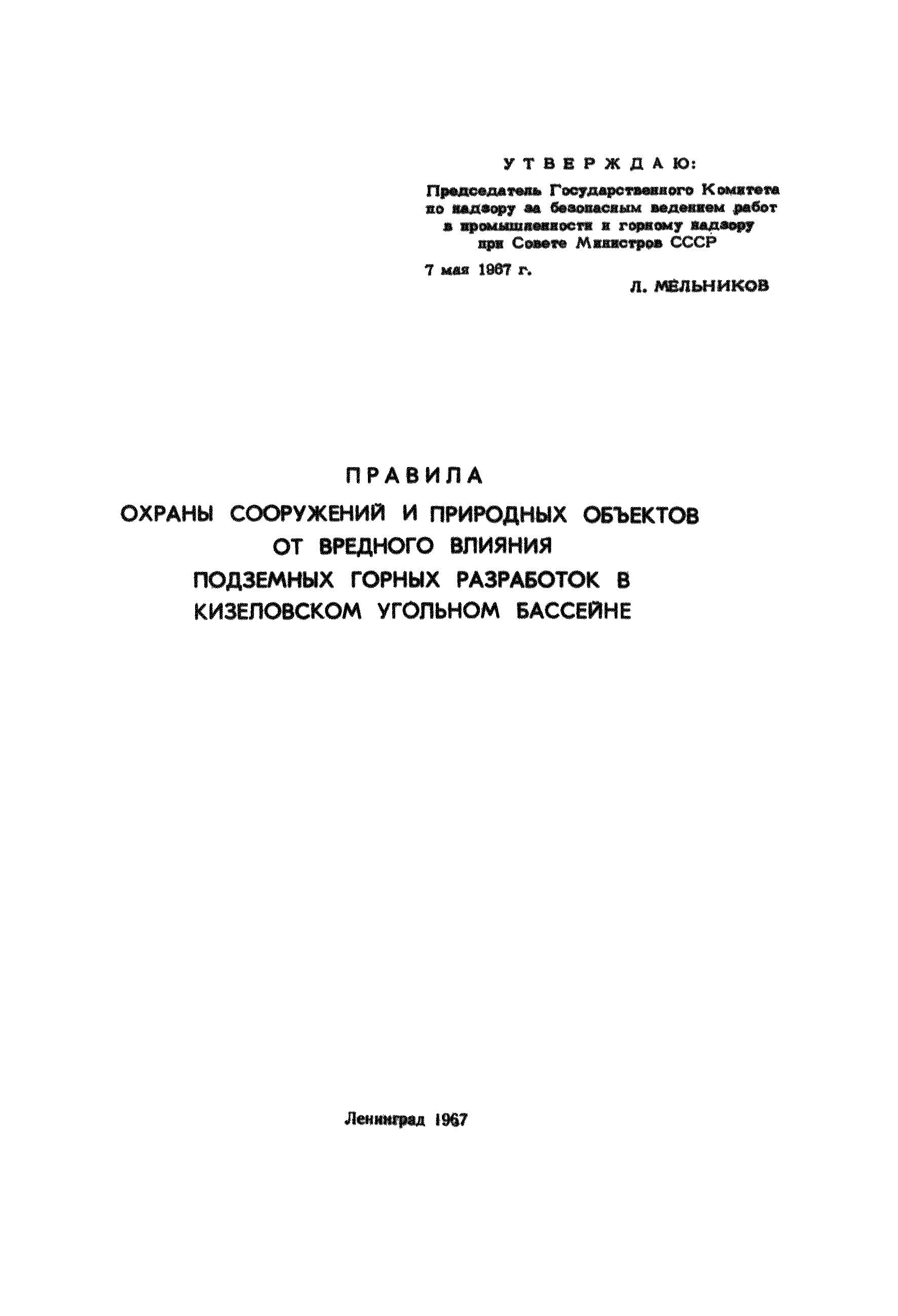 | | Утверждён: | 07.05.1967 Государственный комитет по надзору за безопасным ведением работ и горному надзору при совете Министров СССР