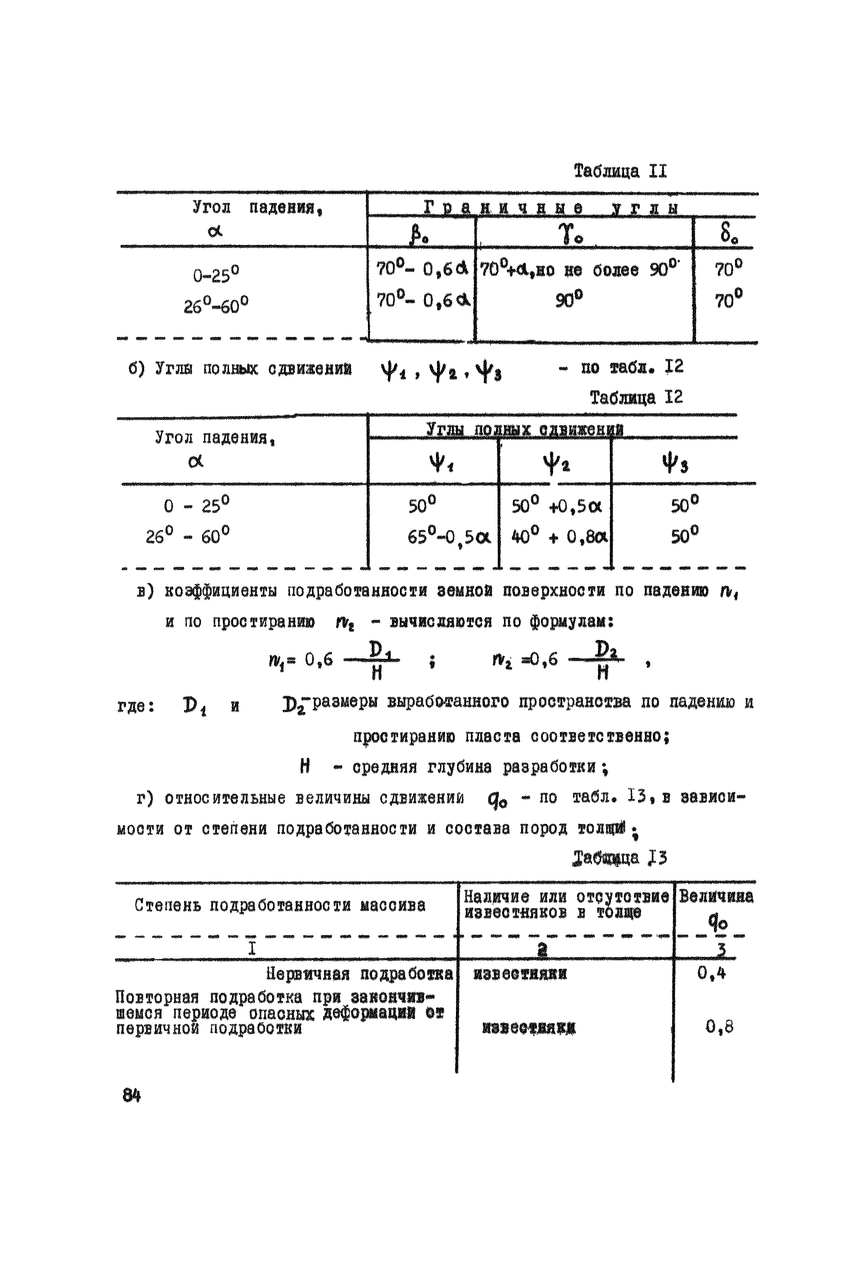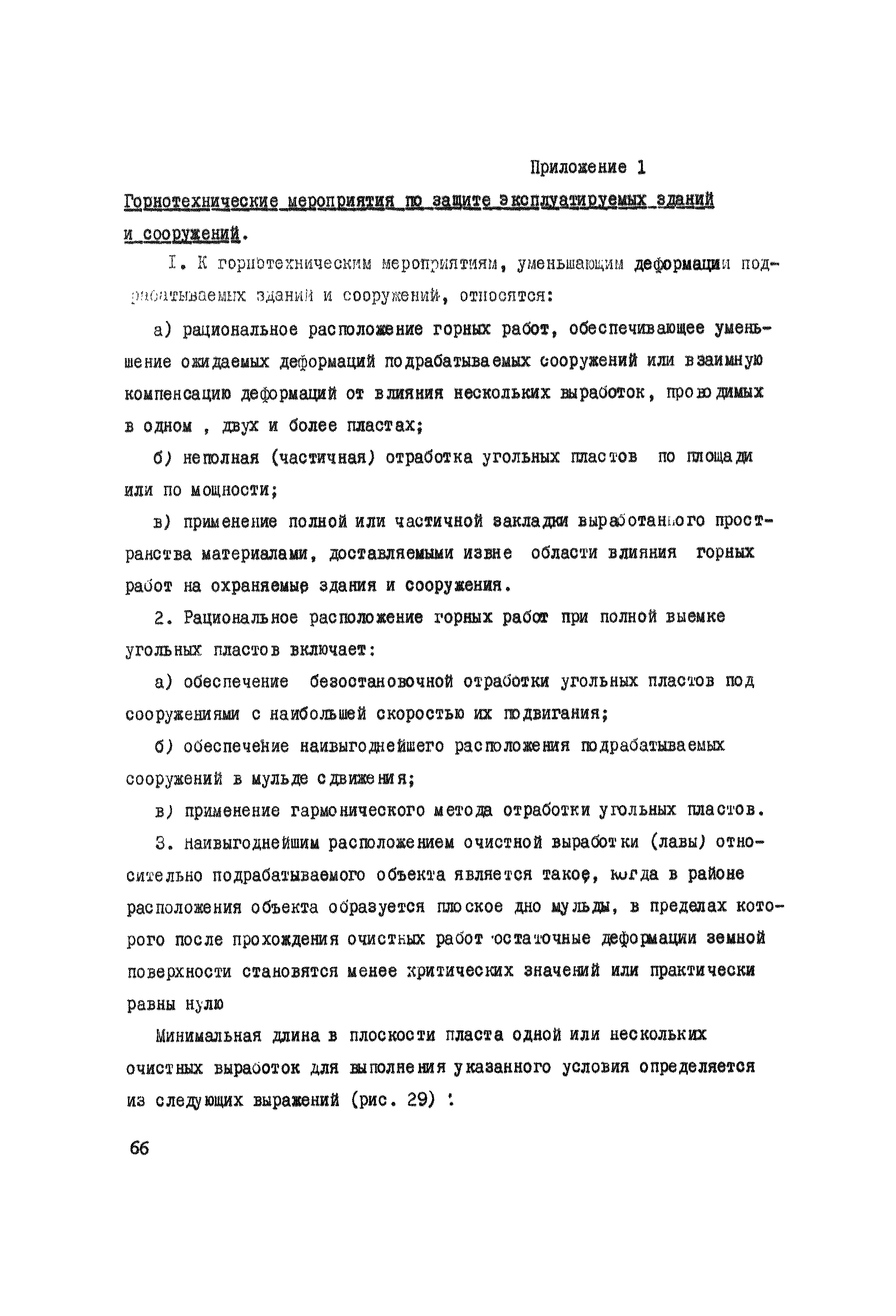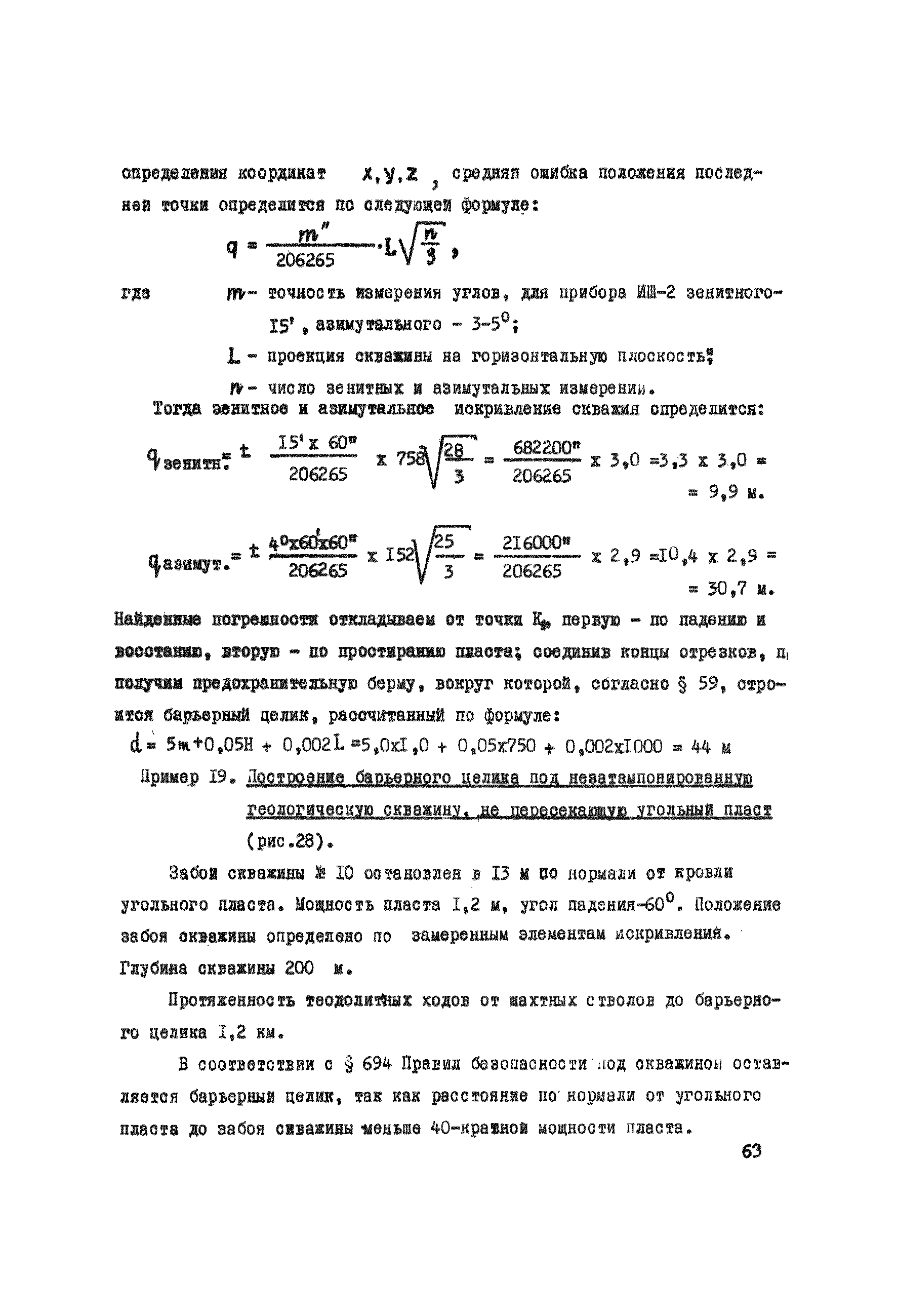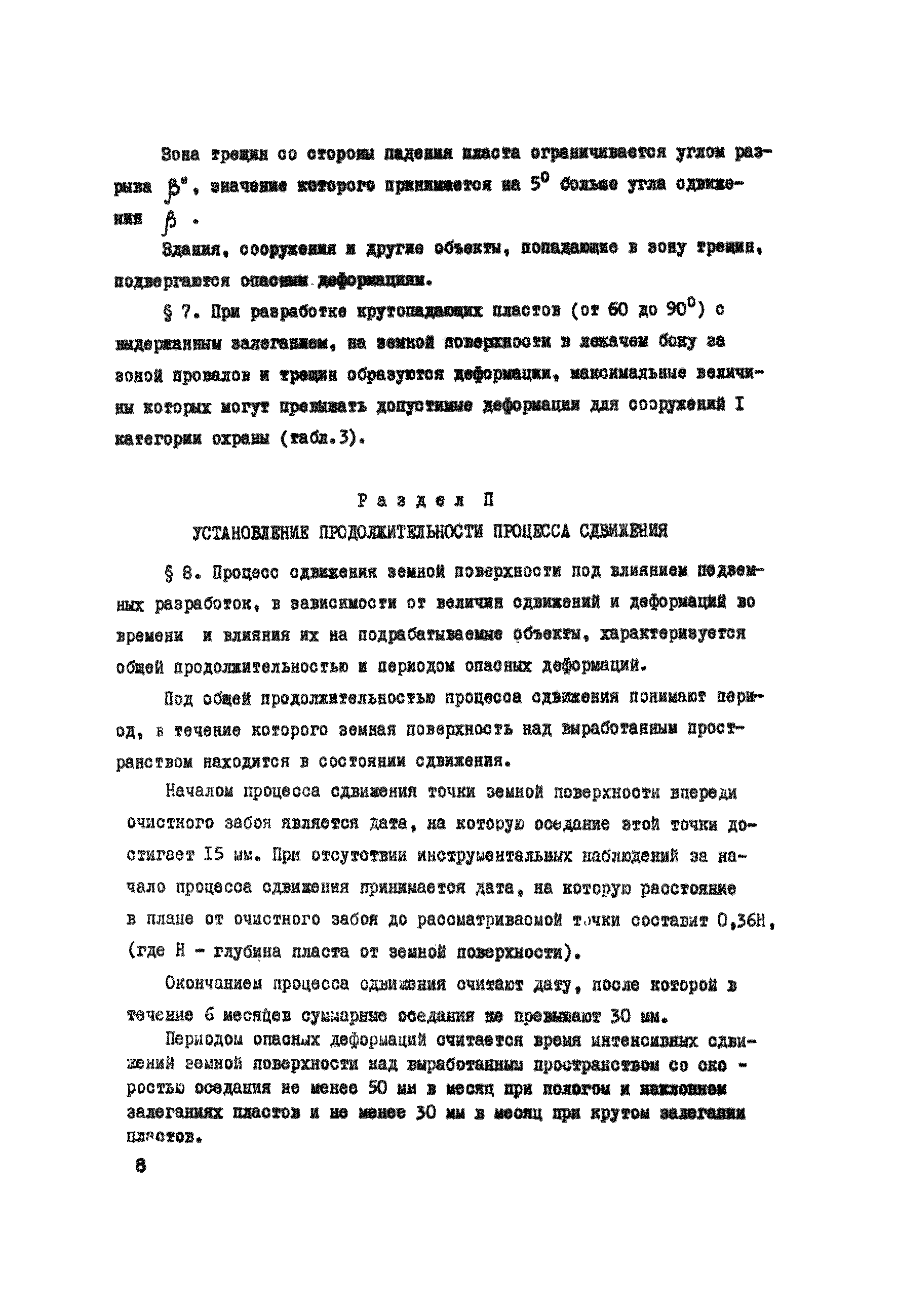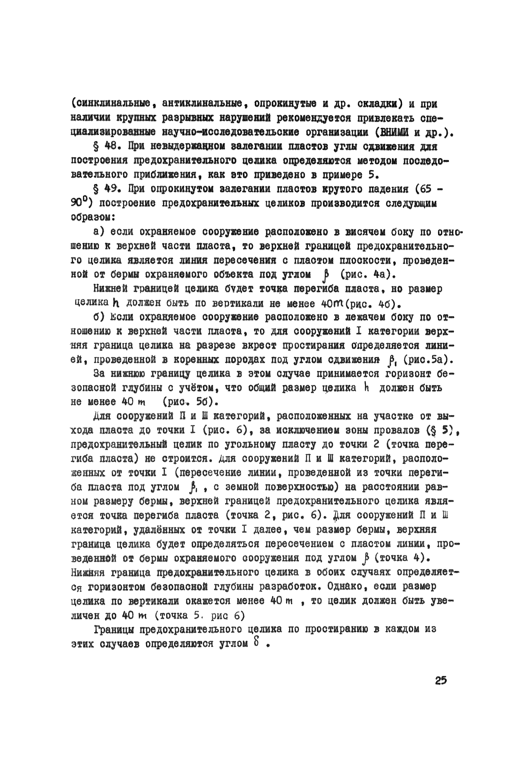 Правила охраны сооружений и природных объектов от вредного влияния подземных горных разработок в Кизеловском угольном бассейне| Статус: | отменен | | Название рус.: | Правила охраны сооружений и природных объектов от вредного влияния подземных горных разработок в Кизеловском угольном бассейне | | Дата добавления в базу: | 01.02.2020 | | Дата актуализации: | 01.01.2021 | | Область применения: | Правила являются основным и руководящим пособием для работников производства и проектных организаций по выбору мер охраны зданий, сооружений, природных объектов от вредного влияния горных выработок на шахтах Кизеловского бассейна. В Правилах даются нормы и методы защиты охраняемых объектов, излагается методика построения предохранительных целиков и приводятся основные требования для выемки угля под различными объектами. | | Оглавление: | Раздел I Определение границ зоны опасного влияния подземных разработок на подрабатываемые сооружения и другие объекты Раздел II Установление продолжительности процесса сдвижения Раздел III Разделение объектов на категории охраны Раздел IV Меры охраны сооружений и природных объектов от вредного влияния подземных разработок Раздел V Правила построения предохранительных целиков Раздел VI Правила построения барьерных целиков для охраны геологических скважин Раздел VII Примеры построения предохранительных целиков Пример 1 Построение предохранительных целиков в трех пластах для охраны зданий Пример 2 Построение предохранительных целиков для охраны магистральной железной дороги МПС Пример 3 Построение предохранительного целика для охраны реки Пример 4 Построение предохранительного целика для охраны наклонного шахтного ствола при угле падения пластов не менее 60 градусов Пример 5 Построение предохранительного целика в пласте с невыдержанными элементами залегания Пример 6 Построение предохранительного целика для охраны промплощадки Пример 7 Построение предохранительного целика минимальных размеров для охраны сооружения, расположенного диагонально к простиранию пласта Пример 8 Построение предохранительного целика для охраны сооружения I категории, расположенного в лежачем боку крутопадающего пласта Пример 9 Построение предохранительного целика для охраны сооружения I категории, расположенного в висячем боку крутопадающего пласта Пример 10 Построение предохранительного целика при опрокинутом залегании пласта/объект расположен в висячем боку/ Пример 11 Построение предохранительного целика при опрокинутом залегании пласта/объект расположен в лежачем боку/ Пример 12 Построение предохранительного целика для охраны сооружения, расположенного над крылом синклинальной складки Пример 13 Построение предохранительного целика для охраны сооружения I категории, расположенного над осью антиклинальной складки Пример 14 Построение барьерного целика под незатампонированную геологическую скважину, пересекшую для угольных пласта и недобуренную до третьего пласта Пример 15 Построение барьерного целика под незатампонированную геологическую скважину Пример 16 Построение барьерного целика под незатампонированную геологическую скважину при отсутствии данных измерения искривления скважины Пример 17 Построение барьерного целика при наличии данных измерения зенитных углов искривления скважины Пример 18 Постро