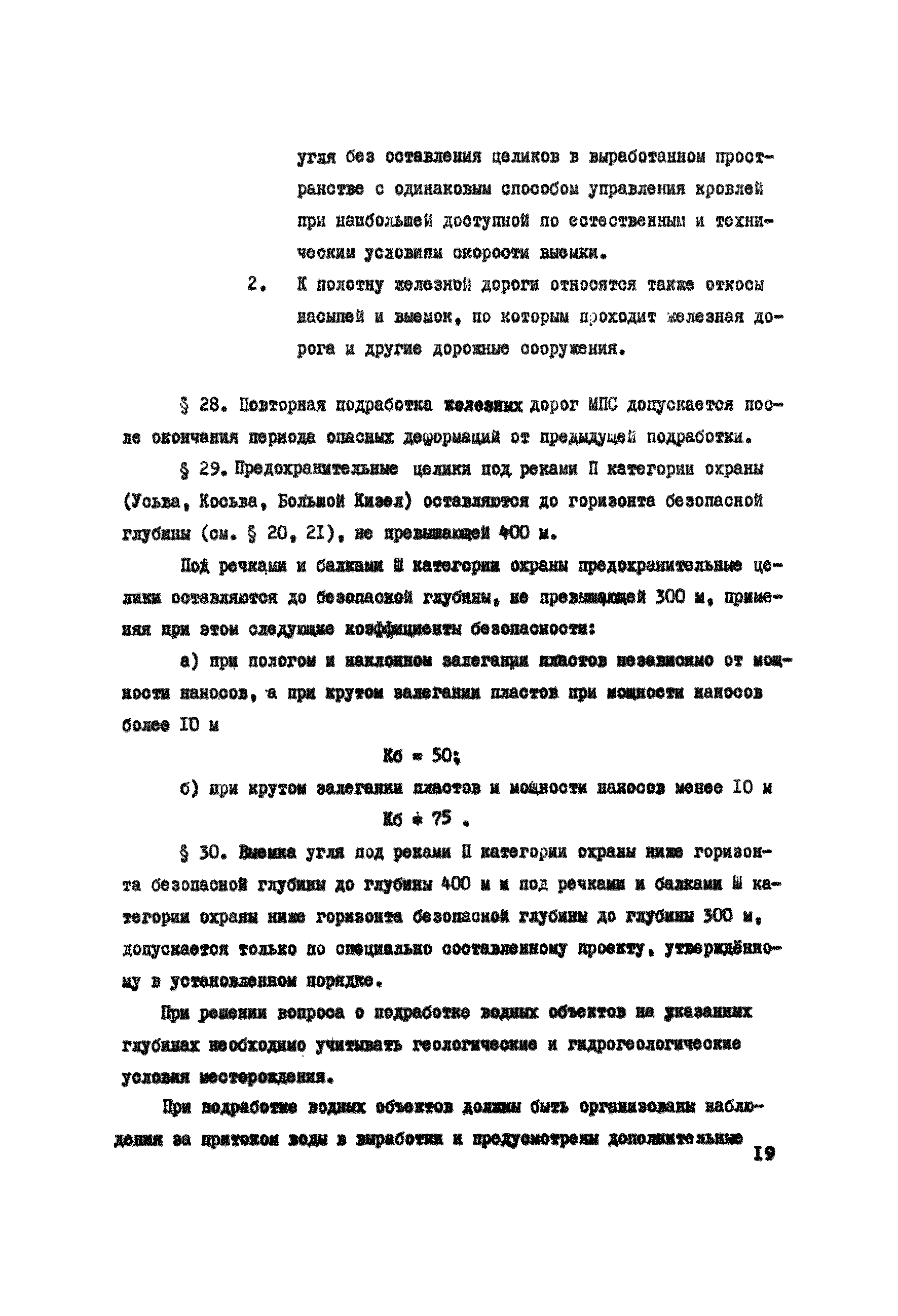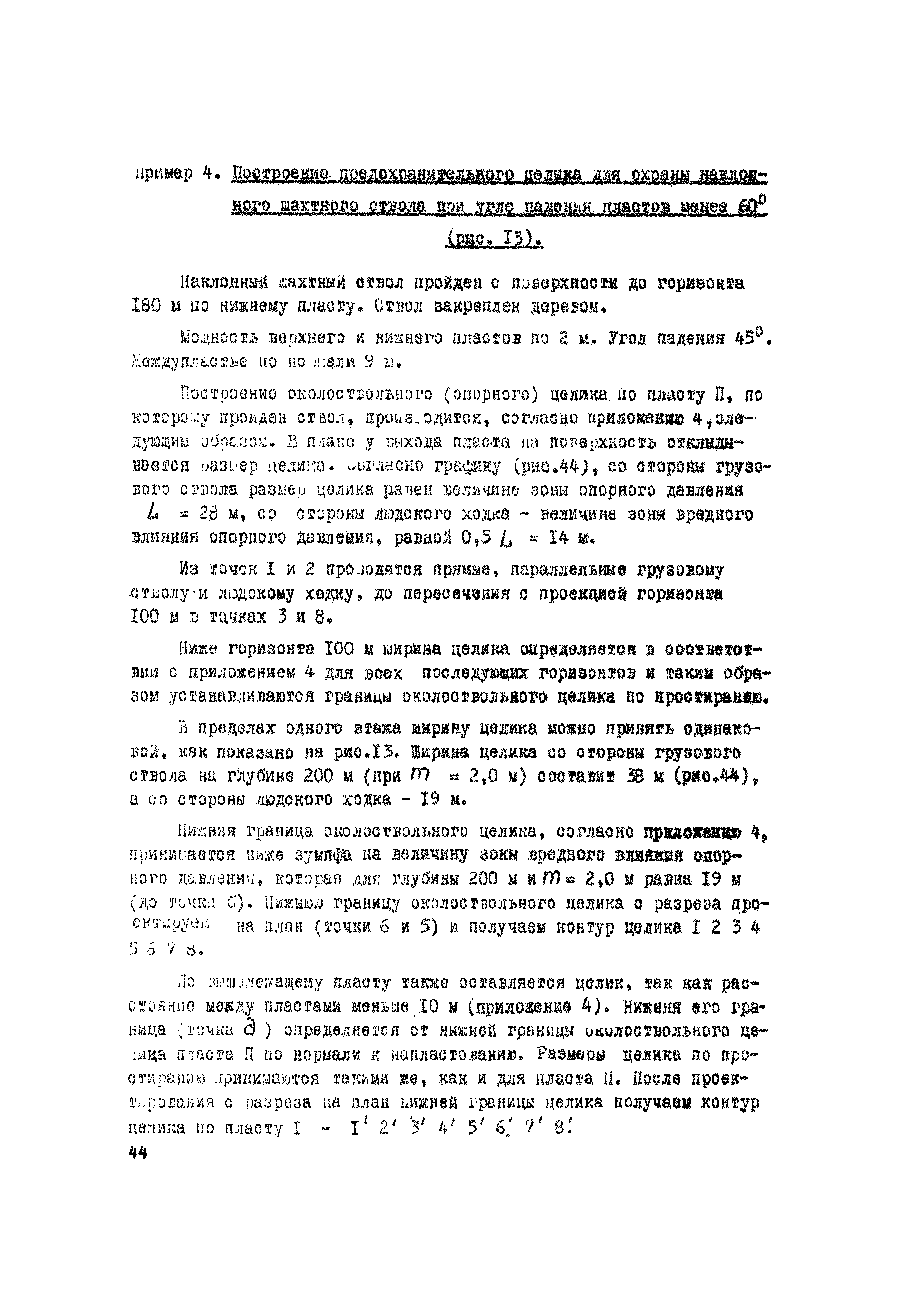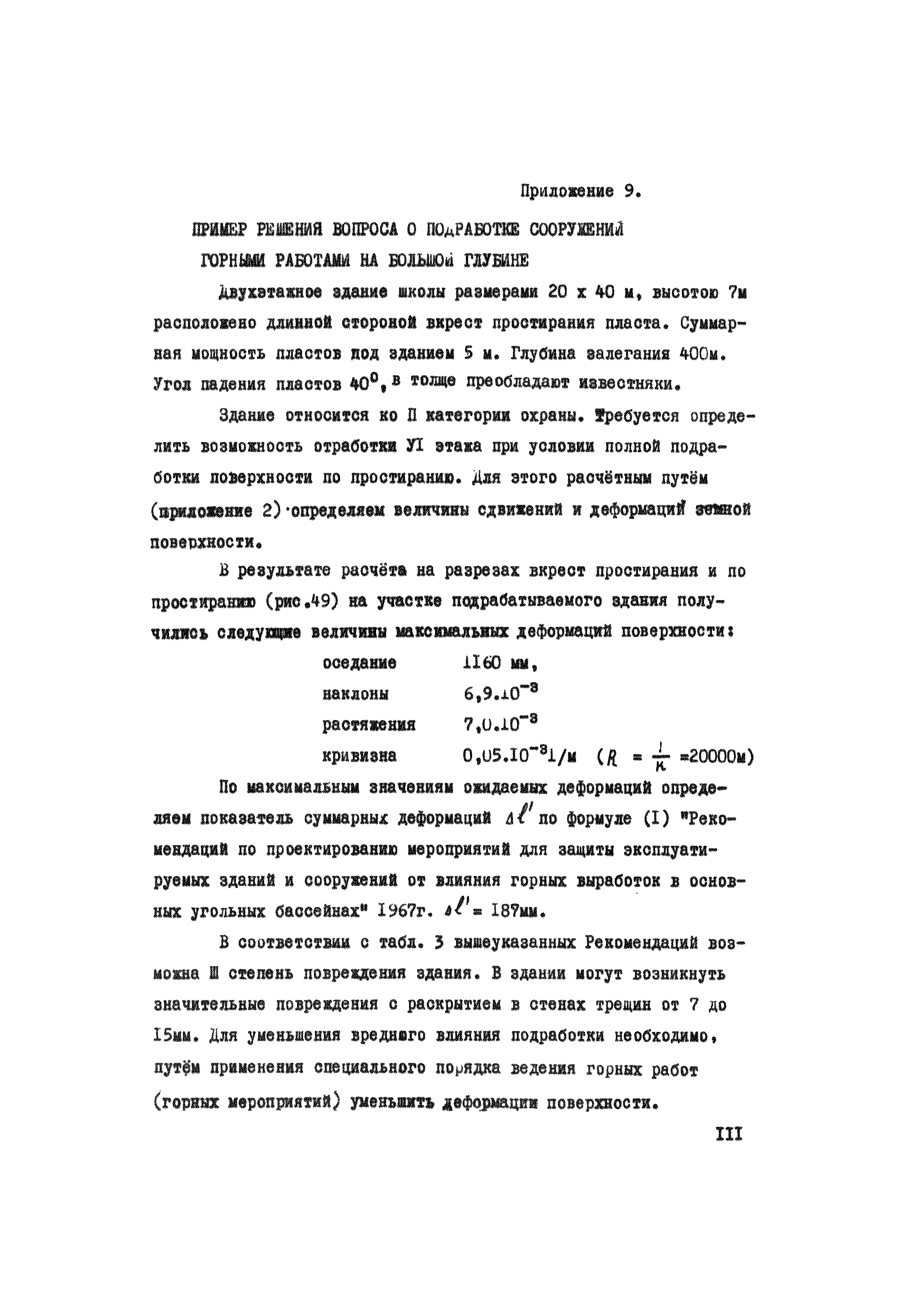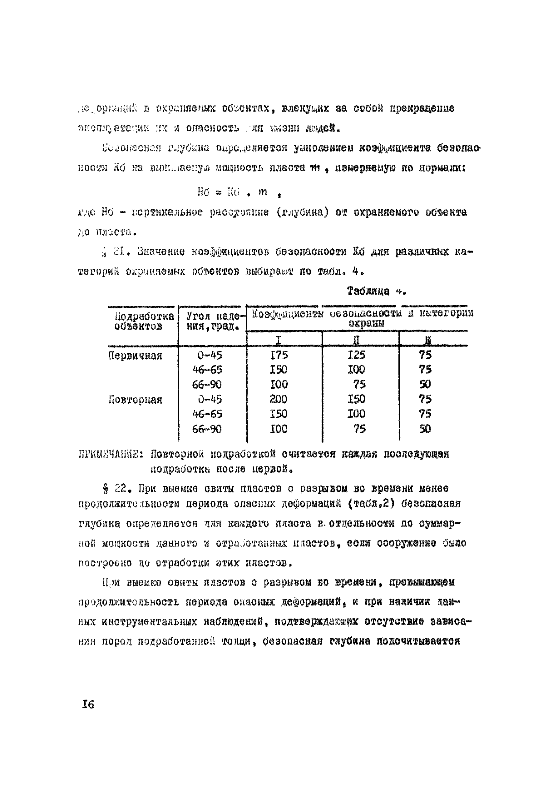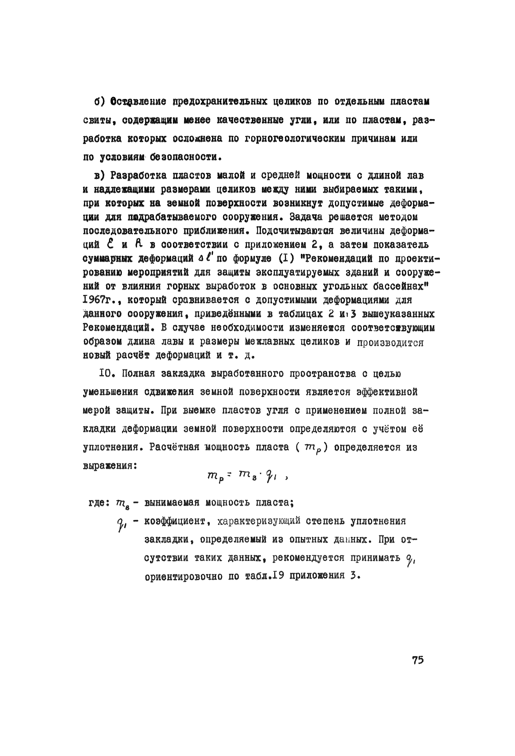 Правила охраны сооружений и природных объектов от вредного влияния подземных горных разработок в Кизеловском угольном бассейне| Статус: | отменен | | Название рус.: | Правила охраны сооружений и природных объектов от вредного влияния подземных горных разработок в Кизеловском угольном бассейне | | Дата добавления в базу: | 01.02.2020 | | Дата актуализации: | 01.01.2021 | | Область применения: | Правила являются основным и руководящим пособием для работников производства и проектных организаций по выбору мер охраны зданий, сооружений, природных объектов от вредного влияния горных выработок на шахтах Кизеловского бассейна. В Правилах даются нормы и методы защиты охраняемых объектов, излагается методика построения предохранительных целиков и приводятся основные требования для выемки угля под различными объектами. | | Оглавление: | Раздел I Определение границ зоны опасного влияния подземных разработок на подрабатываемые сооружения и другие объекты Раздел II Установление продолжительности процесса сдвижения Раздел III Разделение объектов на категории охраны Раздел IV Меры охраны сооружений и природных объектов от вредного влияния подземных разработок Раздел V Правила построения предохранительных целиков Раздел VI Правила построения барьерных целиков для охраны геологических скважин Раздел VII Примеры построения предохранительных целиков Пример 1 Построение предохранительных целиков в трех пластах для охраны зданий Пример 2 Построение предохранительных целиков для охраны магистральной железной дороги МПС Пример 3 Построение предохранительного целика для охраны реки Пример 4 Построение предохранительного целика для охраны наклонного шахтного ствола при угле падения пластов не менее 60 градусов Пример 5 Построение предохранительного целика в пласте с невыдержанными элементами залегания Пример 6 Построение предохранительного целика для охраны промплощадки Пример 7 Построение предохранительного целика минимальных размеров для охраны сооружения, расположенного диагонально к простиранию пласта Пример 8 Построение предохранительного целика для охраны сооружения I категории, расположенного в лежачем боку крутопадающего пласта Пример 9 Построение предохранительного целика для охраны сооружения I категории, расположенного в висячем боку крутопадающего пласта Пример 10 Построение предохранительного целика при опрокинутом залегании пласта/объект расположен в висячем боку/ Пример 11 Построение предохранительного целика при опрокинутом залегании пласта/объект расположен в лежачем боку/ Пример 12 Построение предохранительного целика для охраны сооружения, расположенного над крылом синклинальной складки Пример 13 Построение предохранительного целика для охраны сооружения I категории, расположенного над осью антиклинальной складки Пример 14 Построение барьерного целика под незатампонированную геологическую скважину, пересекшую для угольных пласта и недобуренную до третьего пласта Пример 15 Построение барьерного целика под незатампонированную геологическую скважину Пример 16 Построение барьерного целика под незатампонированную геологическую скважину при отсутствии данных измерения искривления скважины Пример 17 Построение барьерного целика при наличии данных измерения зенитных углов искривления скважины Пример 18 Постро