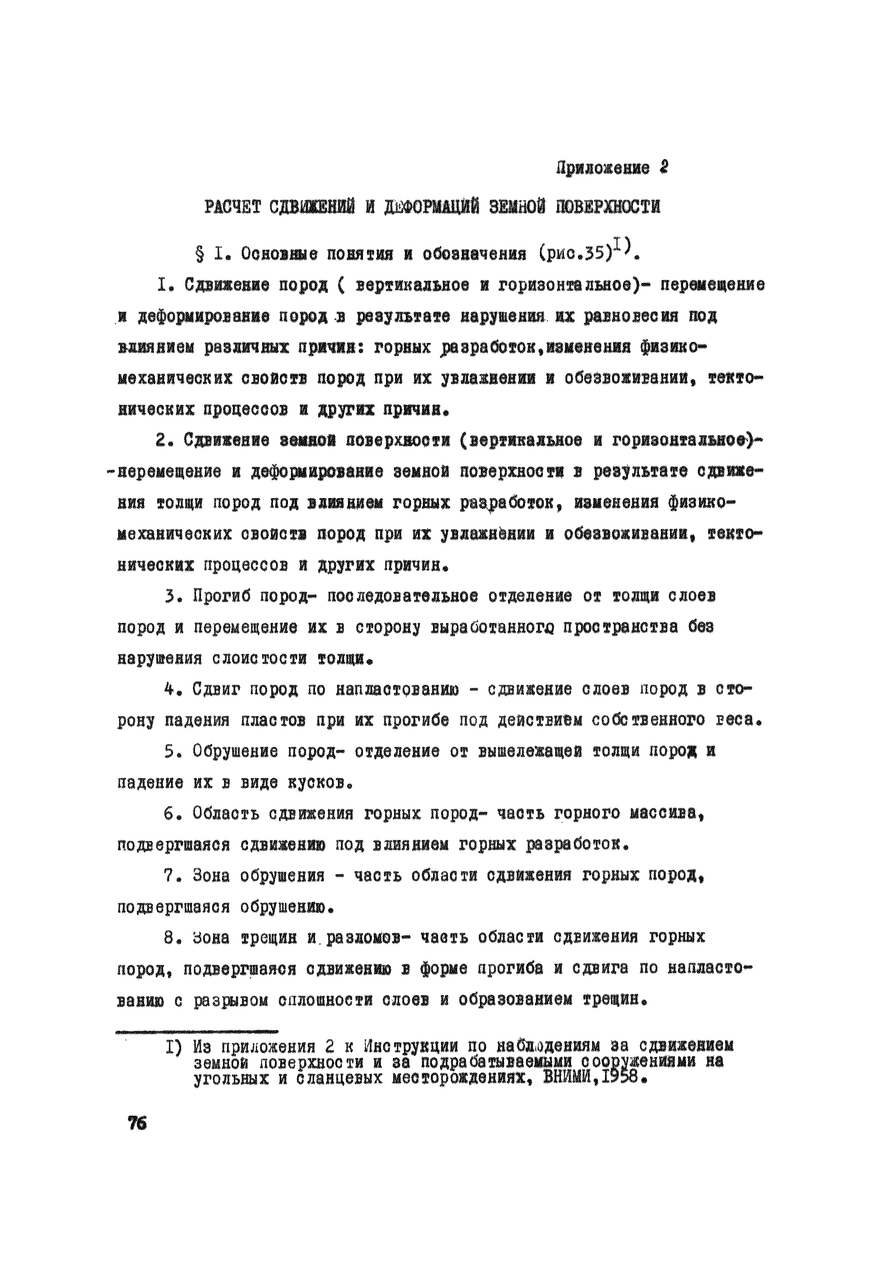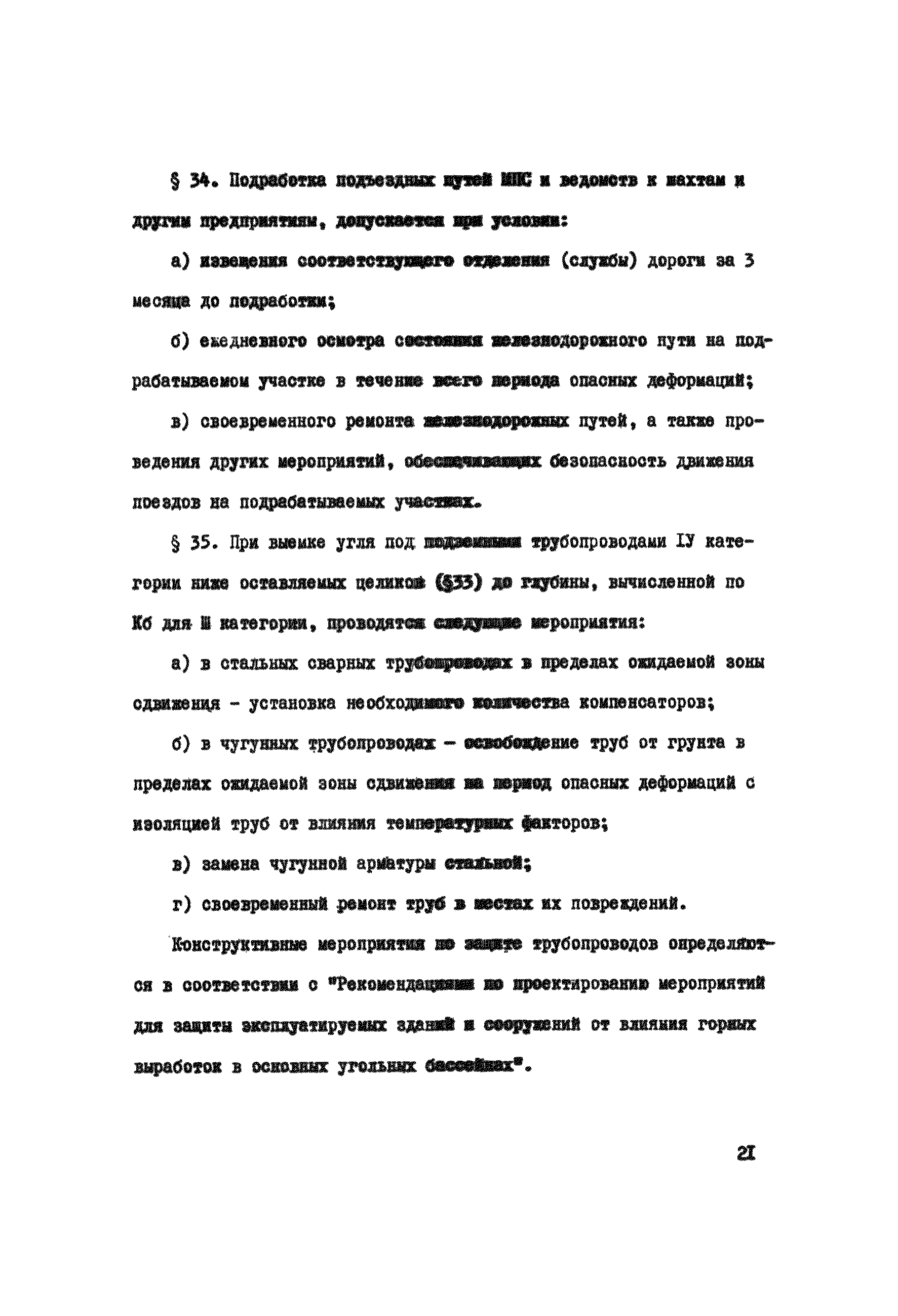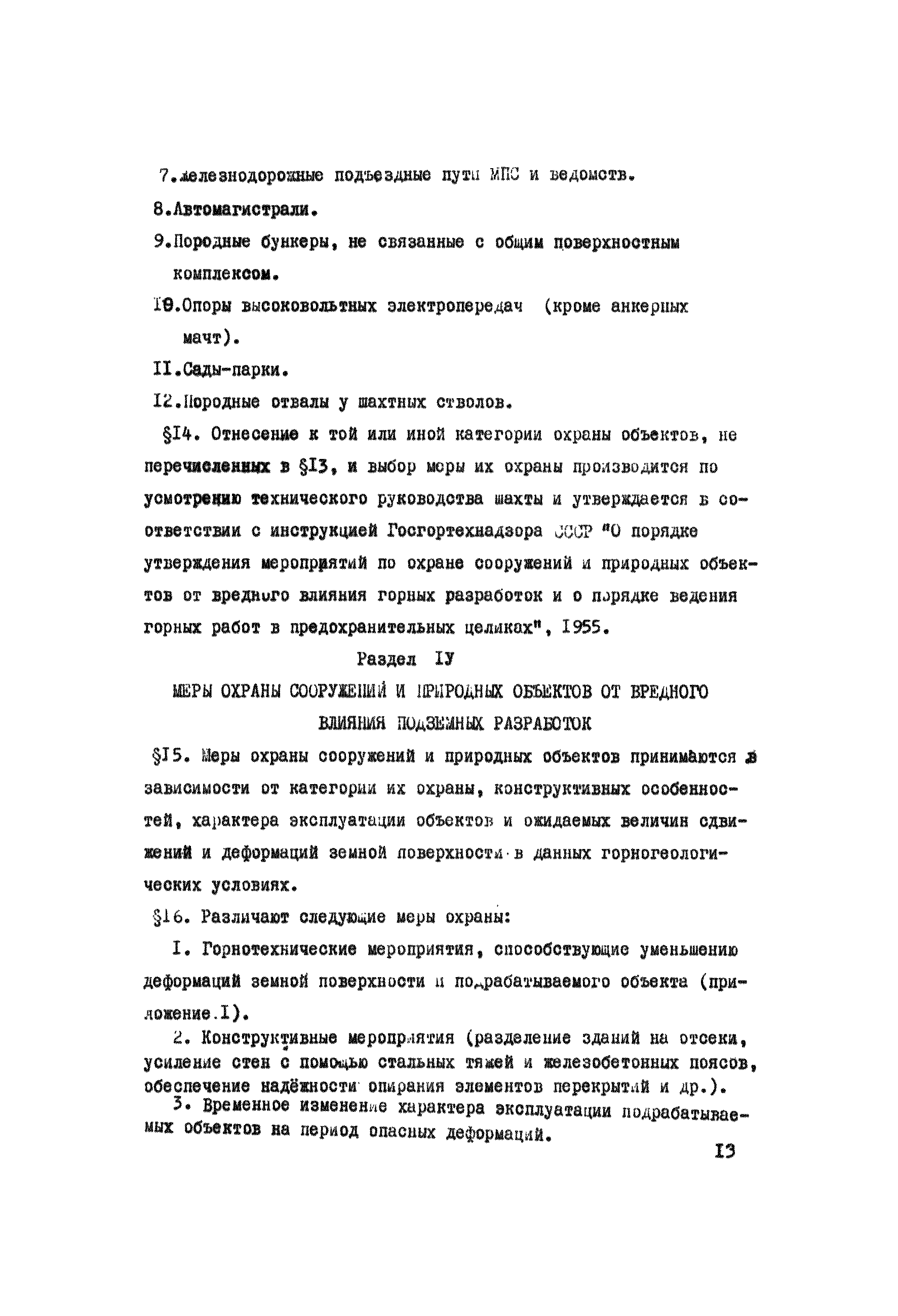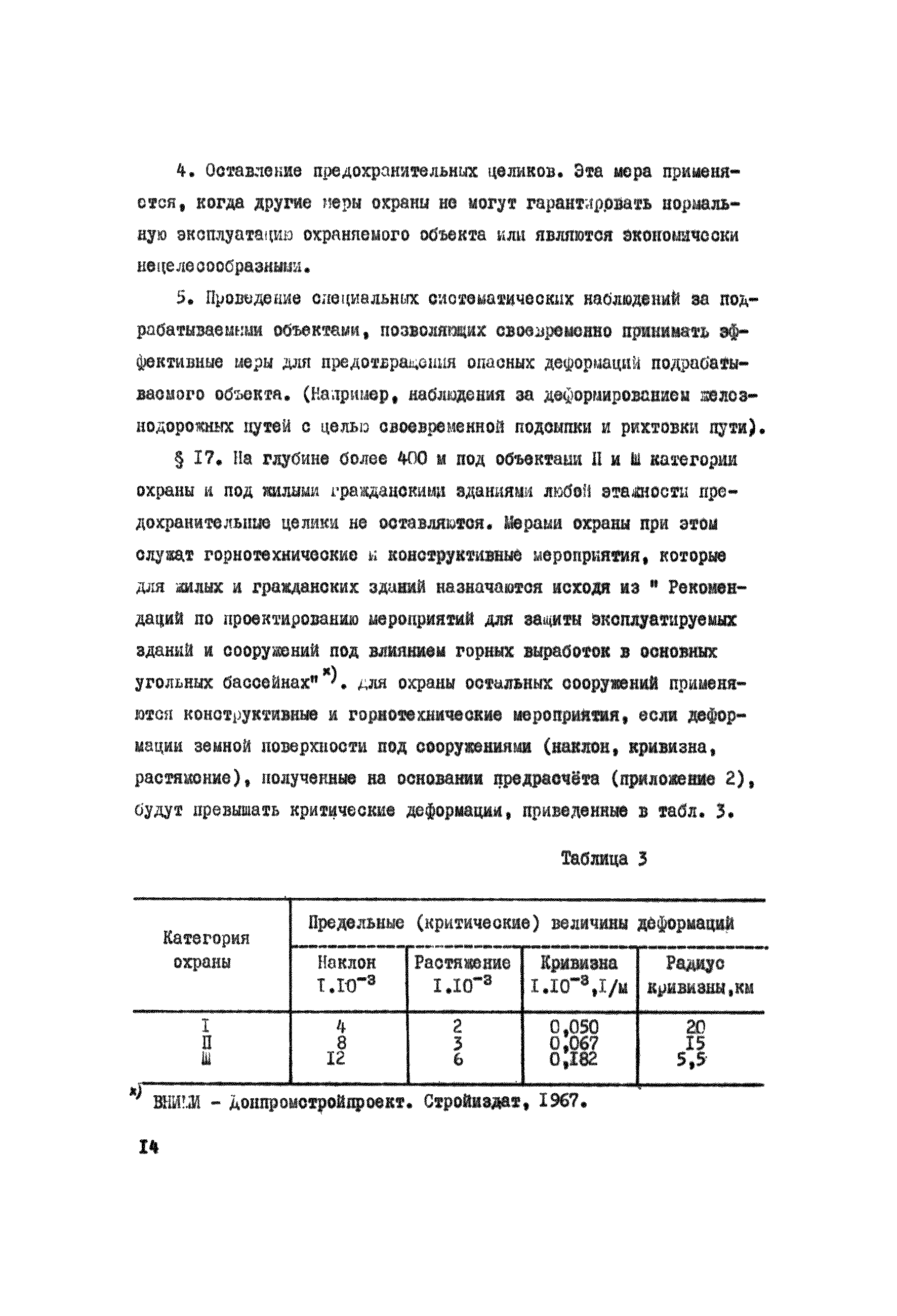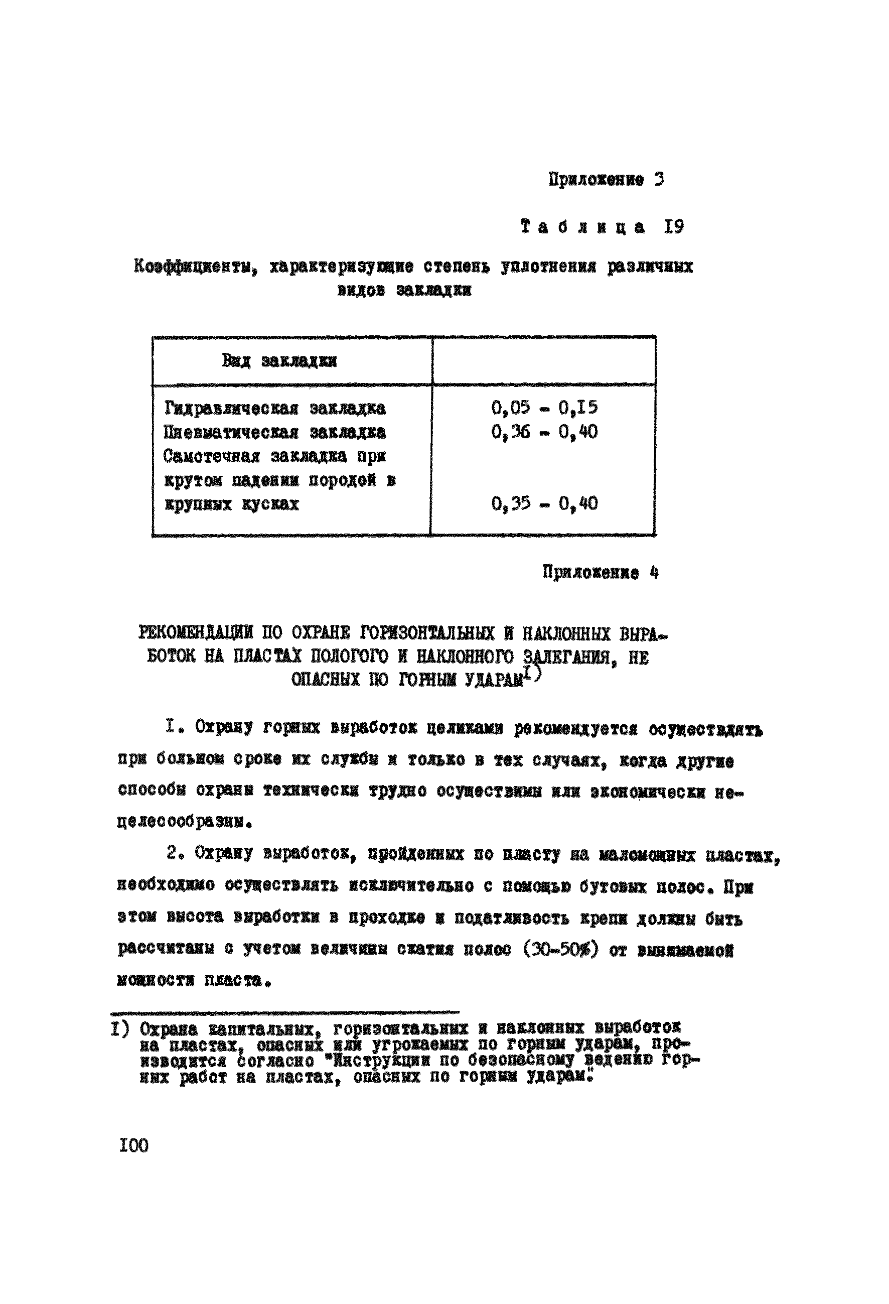 Правила охраны сооружений и природных объектов от вредного влияния подземных горных разработок в Кизеловском угольном бассейне| Статус: | отменен | | Название рус.: | Правила охраны сооружений и природных объектов от вредного влияния подземных горных разработок в Кизеловском угольном бассейне | | Дата добавления в базу: | 01.02.2020 | | Дата актуализации: | 01.01.2021 | | Область применения: | Правила являются основным и руководящим пособием для работников производства и проектных организаций по выбору мер охраны зданий, сооружений, природных объектов от вредного влияния горных выработок на шахтах Кизеловского бассейна. В Правилах даются нормы и методы защиты охраняемых объектов, излагается методика построения предохранительных целиков и приводятся основные требования для выемки угля под различными объектами. | | Оглавление: | Раздел I Определение границ зоны опасного влияния подземных разработок на подрабатываемые сооружения и другие объекты Раздел II Установление продолжительности процесса сдвижения Раздел III Разделение объектов на категории охраны Раздел IV Меры охраны сооружений и природных объектов от вредного влияния подземных разработок Раздел V Правила построения предохранительных целиков Раздел VI Правила построения барьерных целиков для охраны геологических скважин Раздел VII Примеры построения предохранительных целиков Пример 1 Построение предохранительных целиков в трех пластах для охраны зданий Пример 2 Построение предохранительных целиков для охраны магистральной железной дороги МПС Пример 3 Построение предохранительного целика для охраны реки Пример 4 Построение предохранительного целика для охраны наклонного шахтного ствола при угле падения пластов не менее 60 градусов Пример 5 Построение предохранительного целика в пласте с невыдержанными элементами залегания Пример 6 Построение предохранительного целика для охраны промплощадки Пример 7 Построение предохранительного целика минимальных размеров для охраны сооружения, расположенного диагонально к простиранию пласта Пример 8 Построение предохранительного целика для охраны сооружения I категории, расположенного в лежачем боку крутопадающего пласта Пример 9 Построение предохранительного целика для охраны сооружения I категории, расположенного в висячем боку крутопадающего пласта Пример 10 Построение предохранительного целика при опрокинутом залегании пласта/объект расположен в висячем боку/ Пример 11 Построение предохранительного целика при опрокинутом залегании пласта/объект расположен в лежачем боку/ Пример 12 Построение предохранительного целика для охраны сооружения, расположенного над крылом синклинальной складки Пример 13 Построение предохранительного целика для охраны сооружения I категории, расположенного над осью антиклинальной складки Пример 14 Построение барьерного целика под незатампонированную геологическую скважину, пересекшую для угольных пласта и недобуренную до третьего пласта Пример 15 Построение барьерного целика под незатампонированную геологическую скважину Пример 16 Построение барьерного целика под незатампонированную геологическую скважину при отсутствии данных измерения искривления скважины Пример 17 Построение барьерного целика при наличии данных измерения зенитных углов искривления скважины Пример 18 Постро
