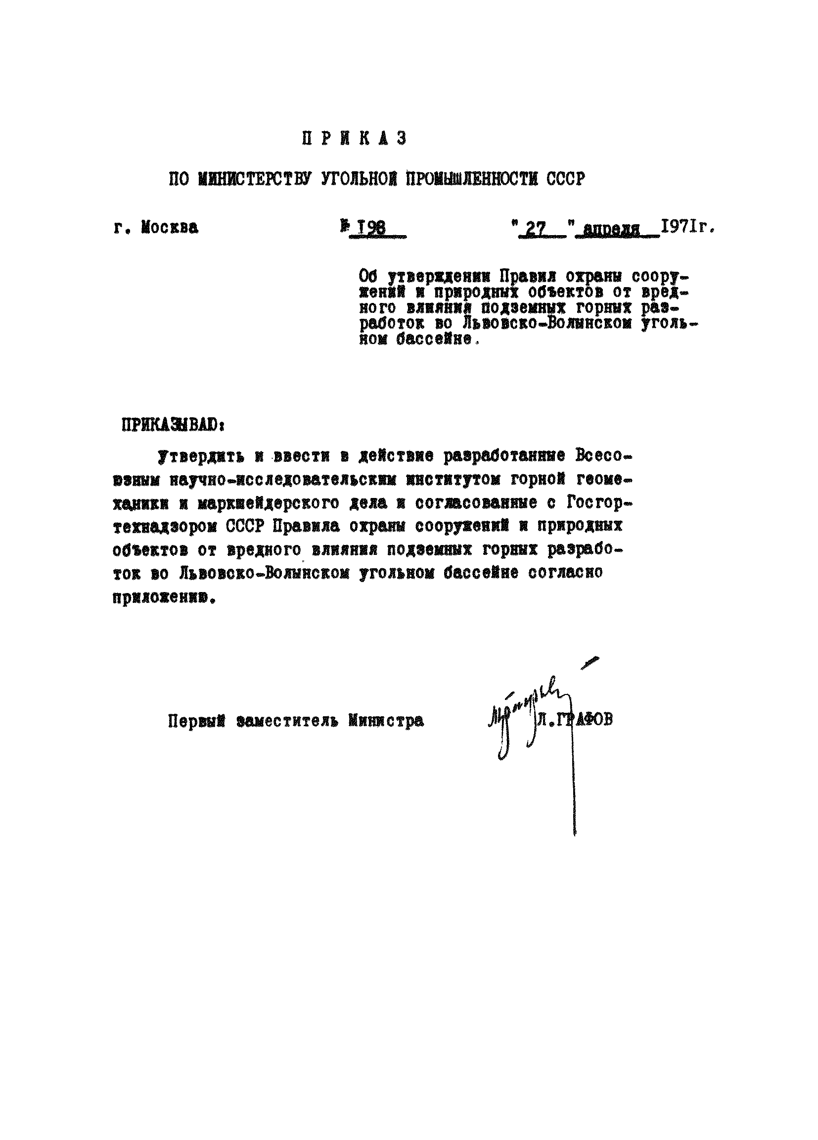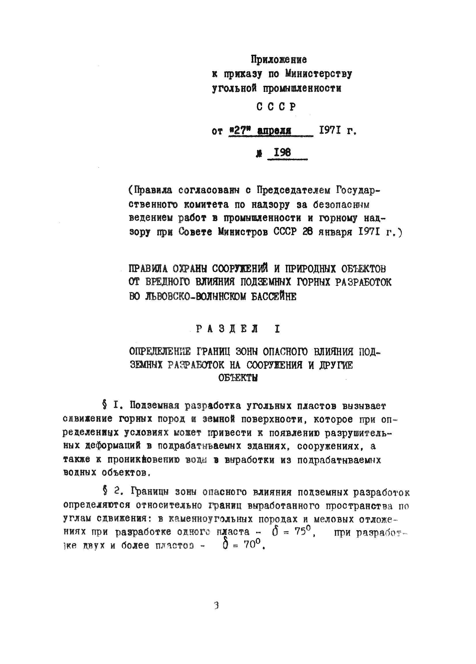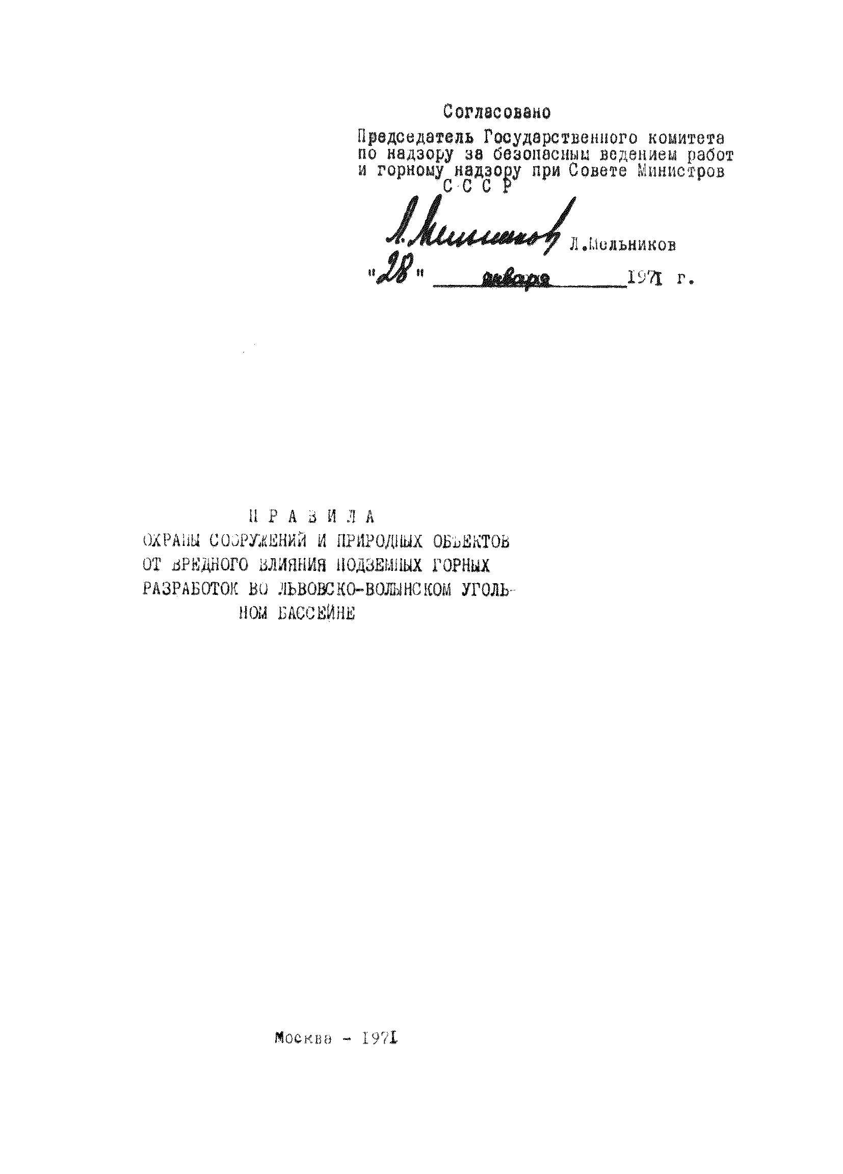 | Принят: | 28.01.1971 Государственный комитет по надзору за безопасным ведением работ и горному надзору при совете Министров СССР