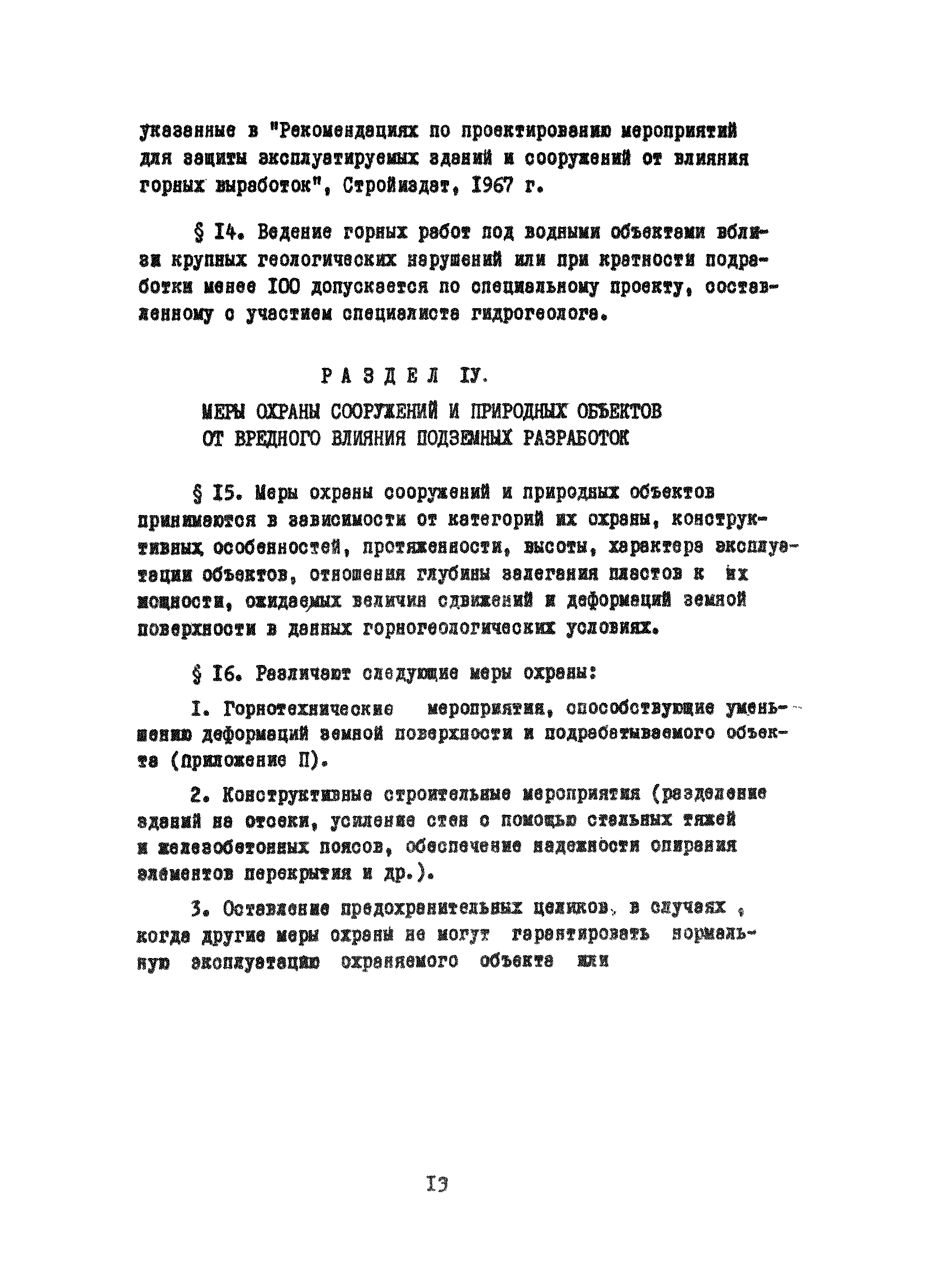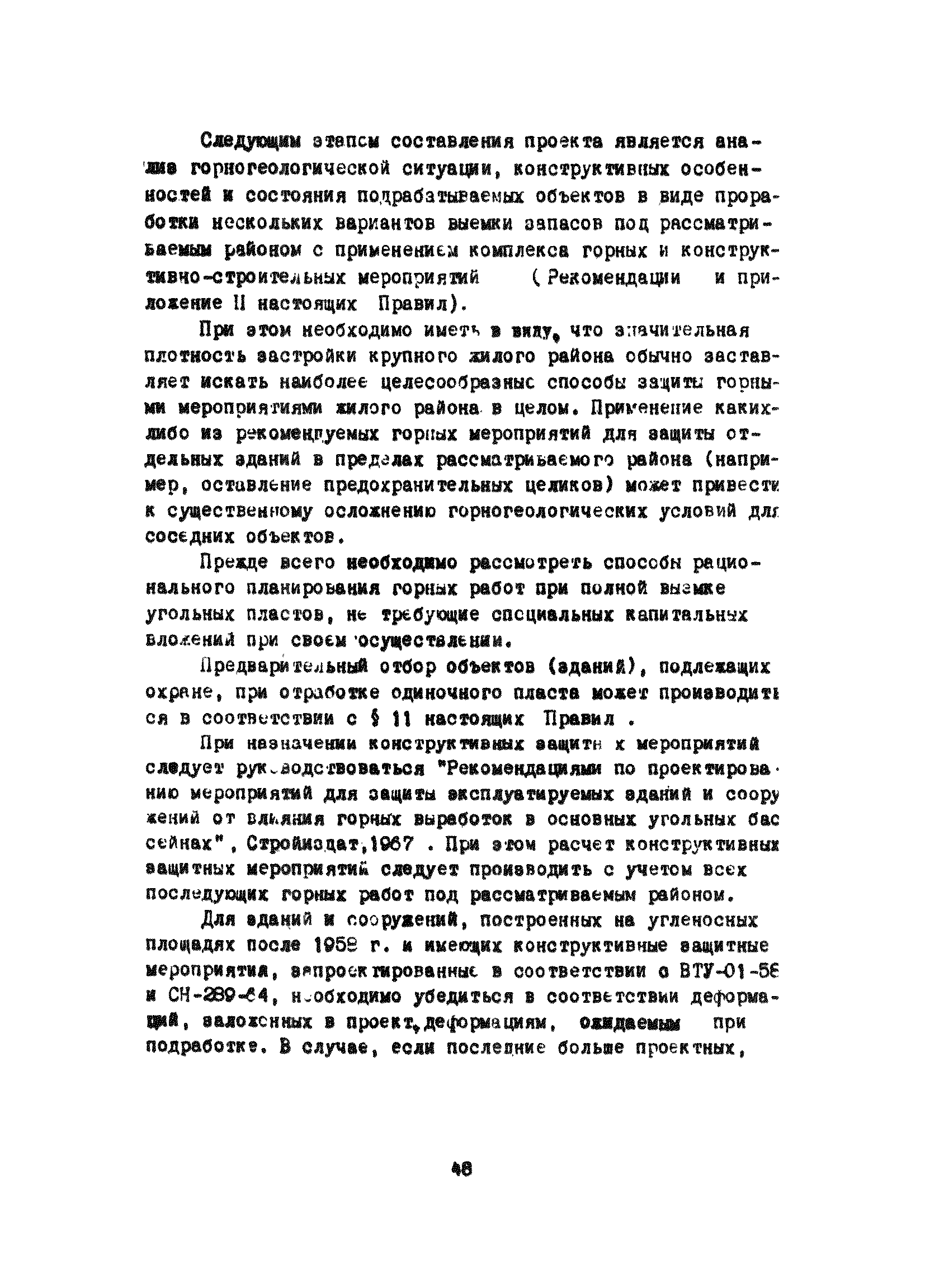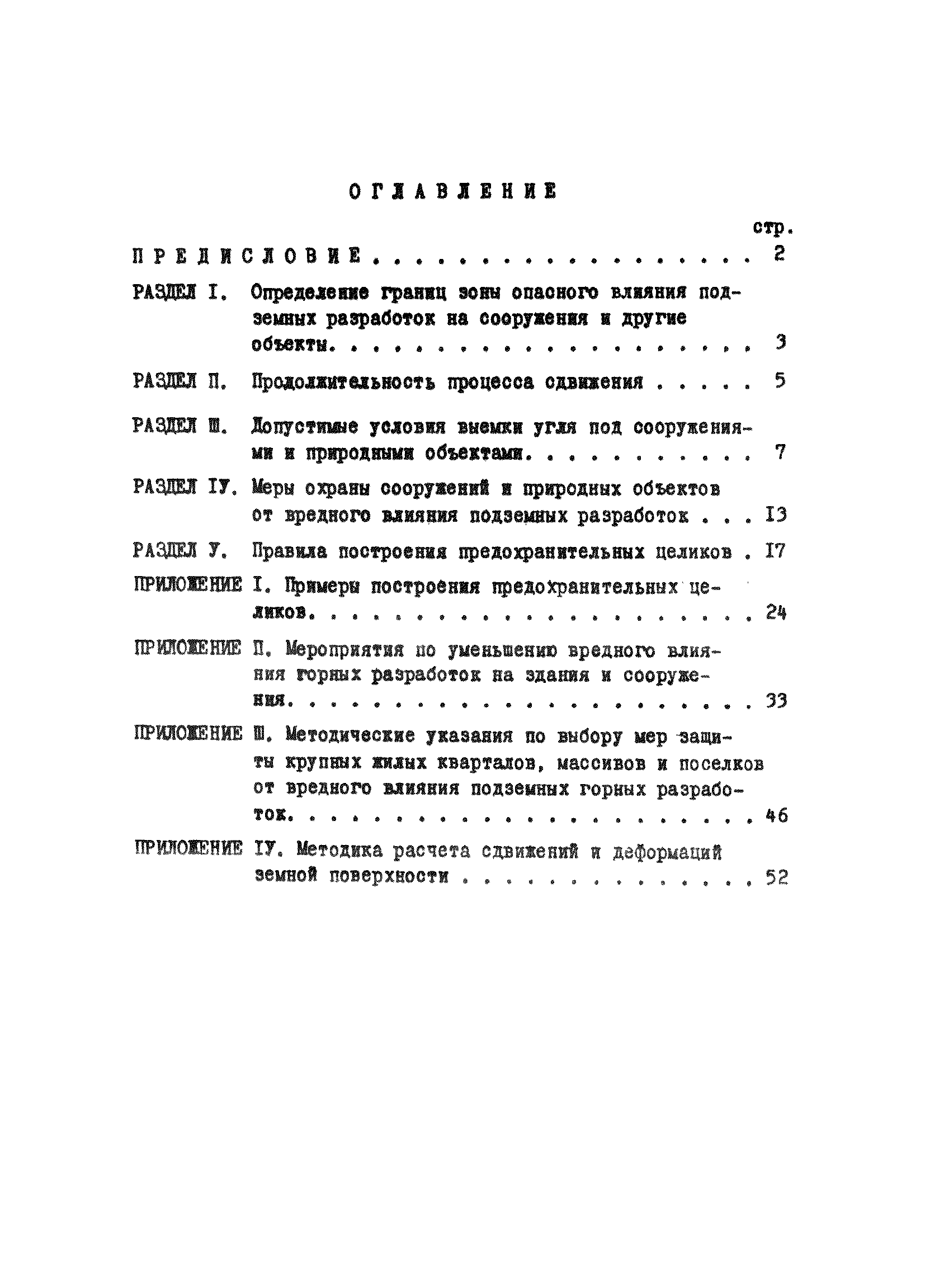 | Оглавление: | Раздел I. Определение границ зоны опасного влияния подземных разработок на сооружения и другие объекты Раздел II. Продолжительность процесса сдвижения Раздел III. Допустимые условия выемки угля под сооружениями и природными объектами Раздел IV. Меры охраны сооружений и природных объектов от вредного влияния подземных целиков Раздел V. Правила построения предохранительных целиков Приложение I Примеры построения предохранительных целиков Приложение II Мероприятия по уменьшению вредного влияния горных разработок на здания и сооружения Приложение III Методические указания по выбору мер защиты крупных жилых кварталов, массивов и поселков от вредного влияния подземных горных разработок Приложение IV. Методика расчета сдвижений и деформаций земной поверхности |