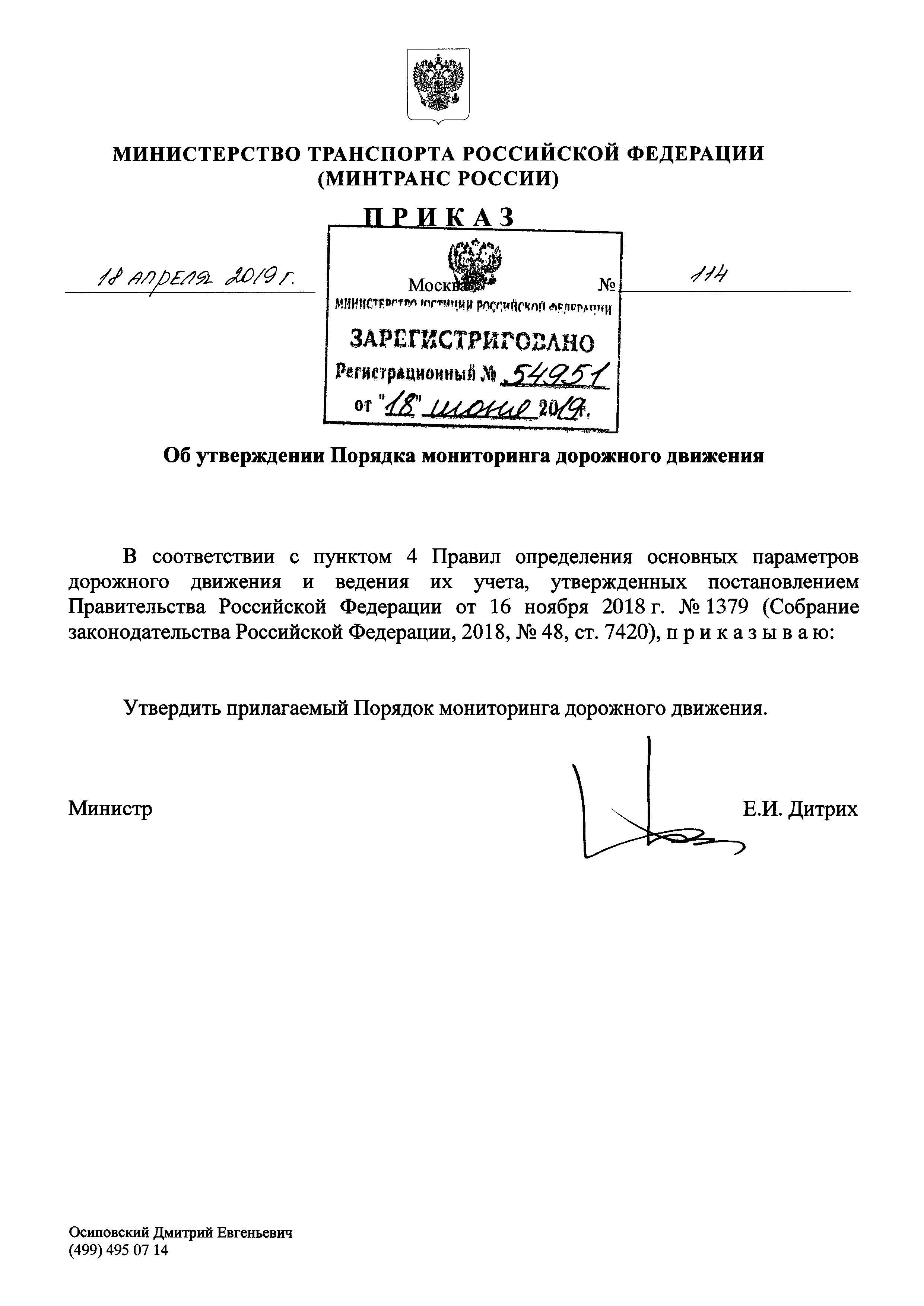 | Утверждён: | 18.04.2019 Министерство транспорта Российской Федерации (Russian Federation Ministry of Transportation 114) |