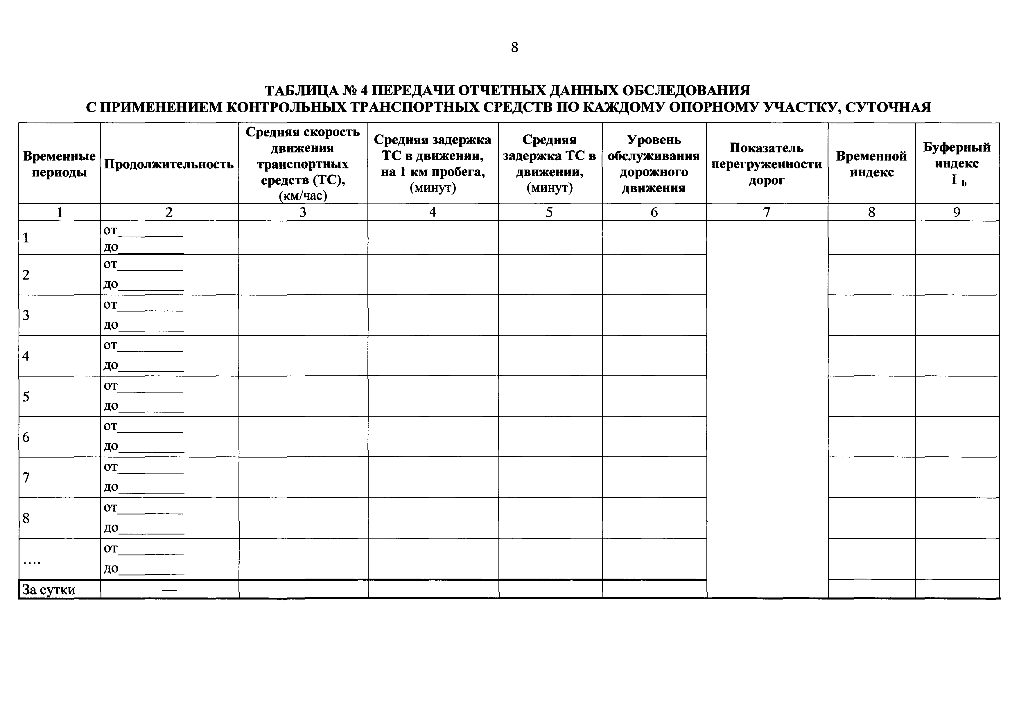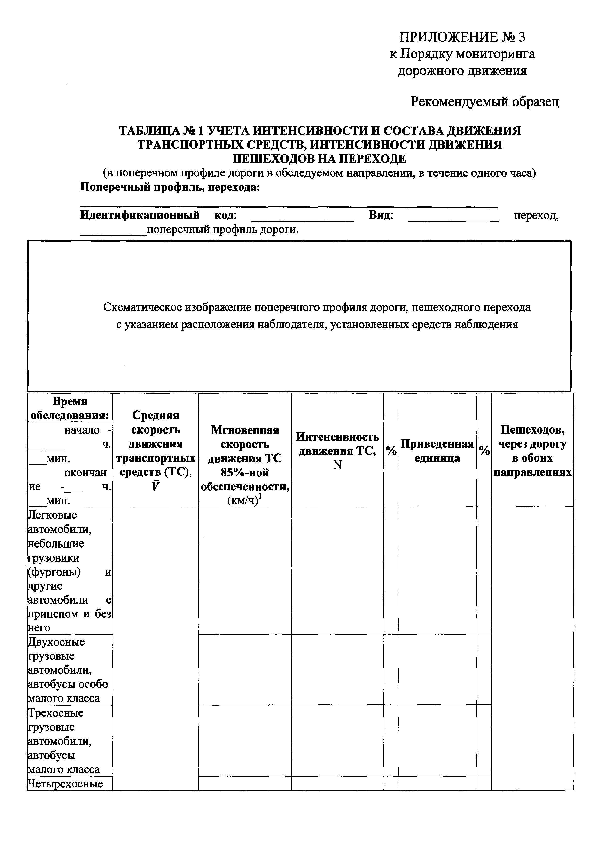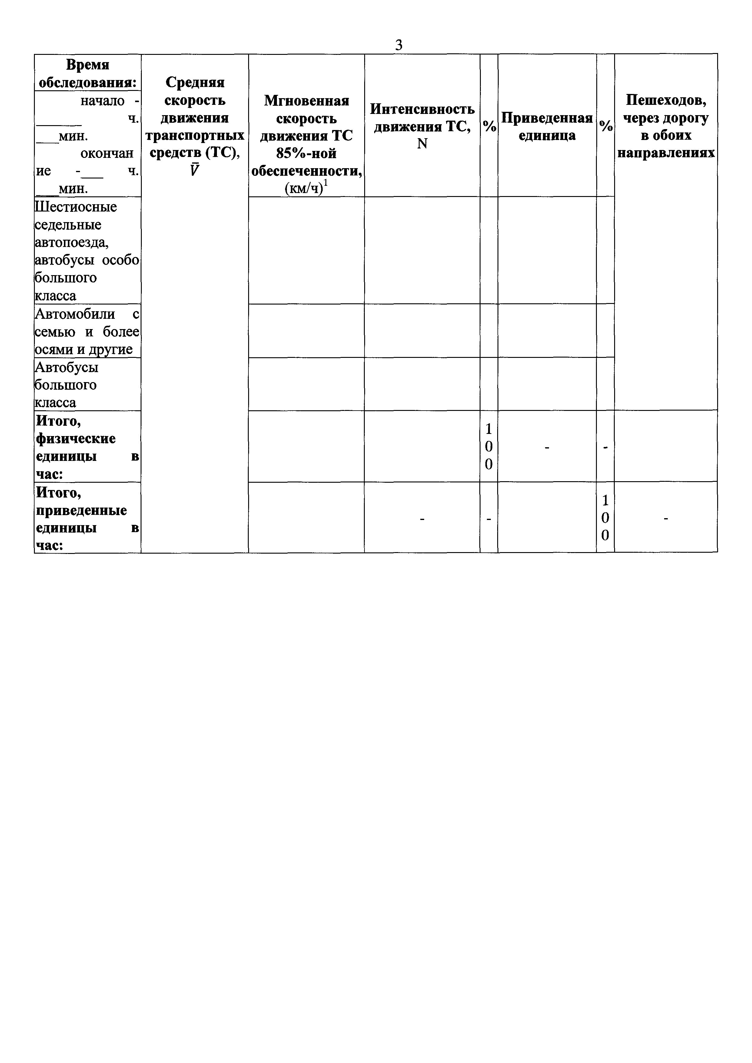 | Оглавление: | I. Общие положения II. Проведение обследования дорожного движения Приложение № 1. Рекомендуемые образцы таблиц передачи отчетных данных обследования Приложение № 2. Определение значений уровней обслуживания дорожного движения Приложение № 3. Рекомендуемые образцы учета интенсивности, состава и параметров движения Приложение № 4. Рекомендуемый образец задания на проведение обследования с применением контрольных транспортных средств |