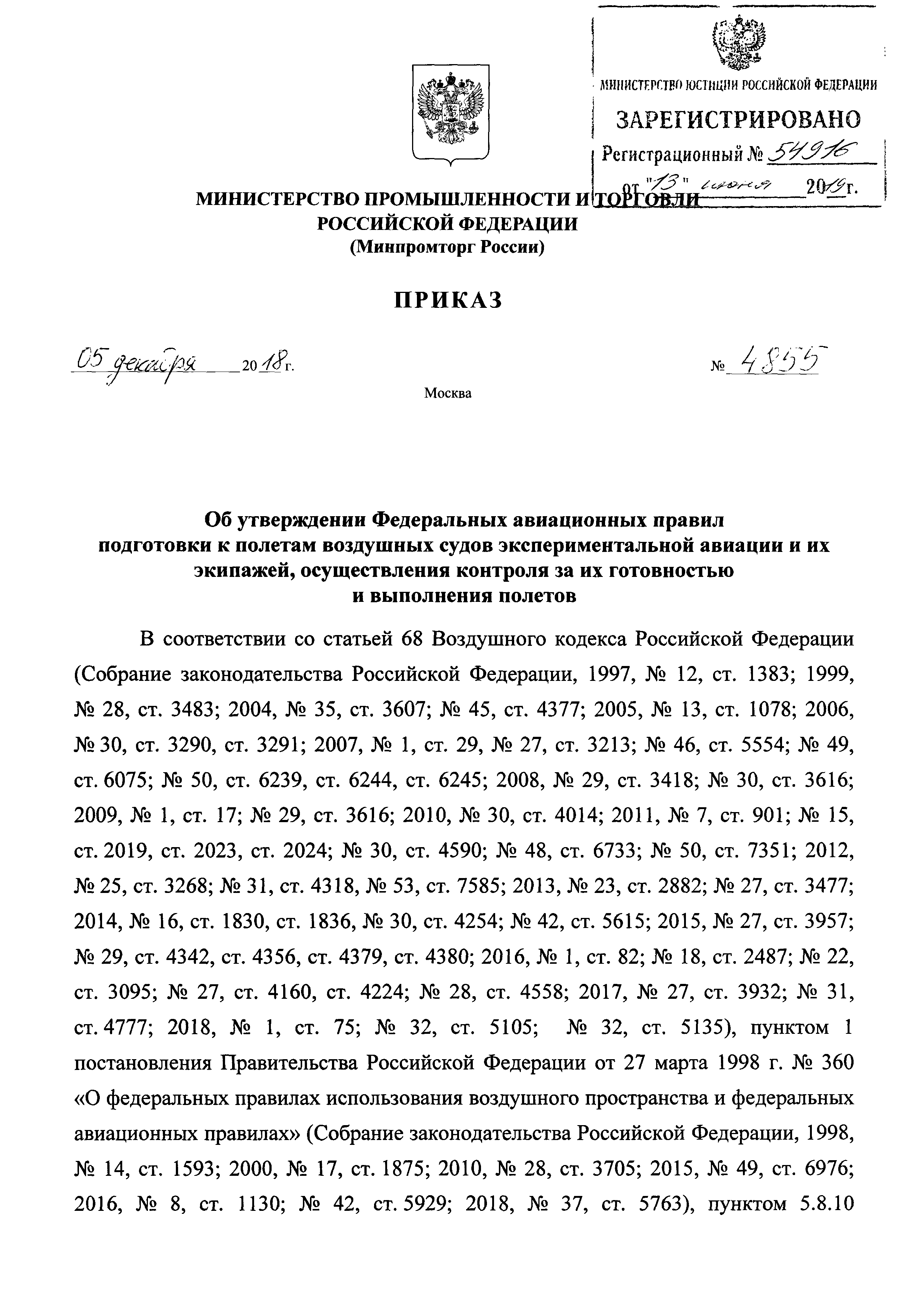 | Утверждён: | 05.12.2018 Министерство промышленности и торговли РФ (4855) |