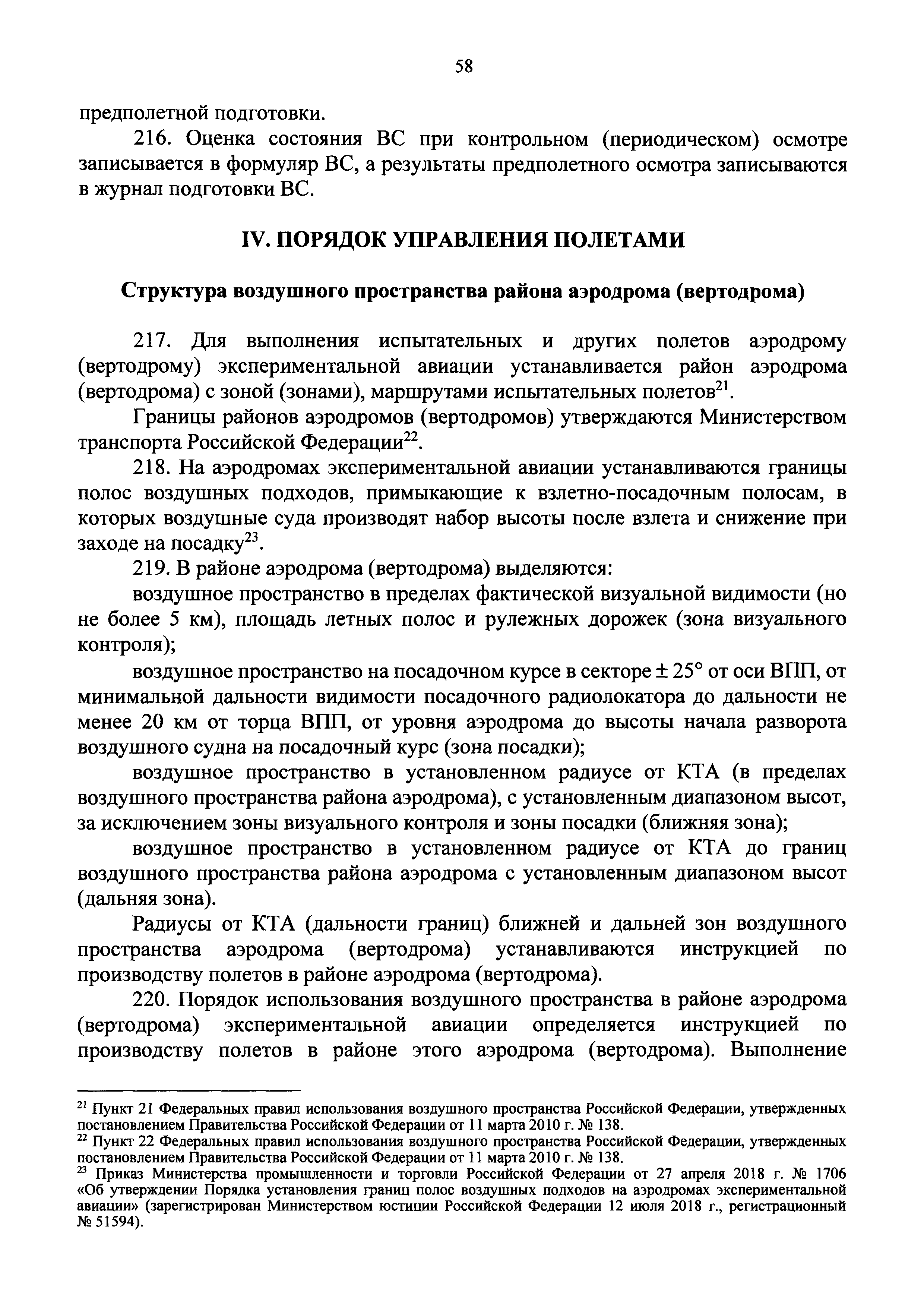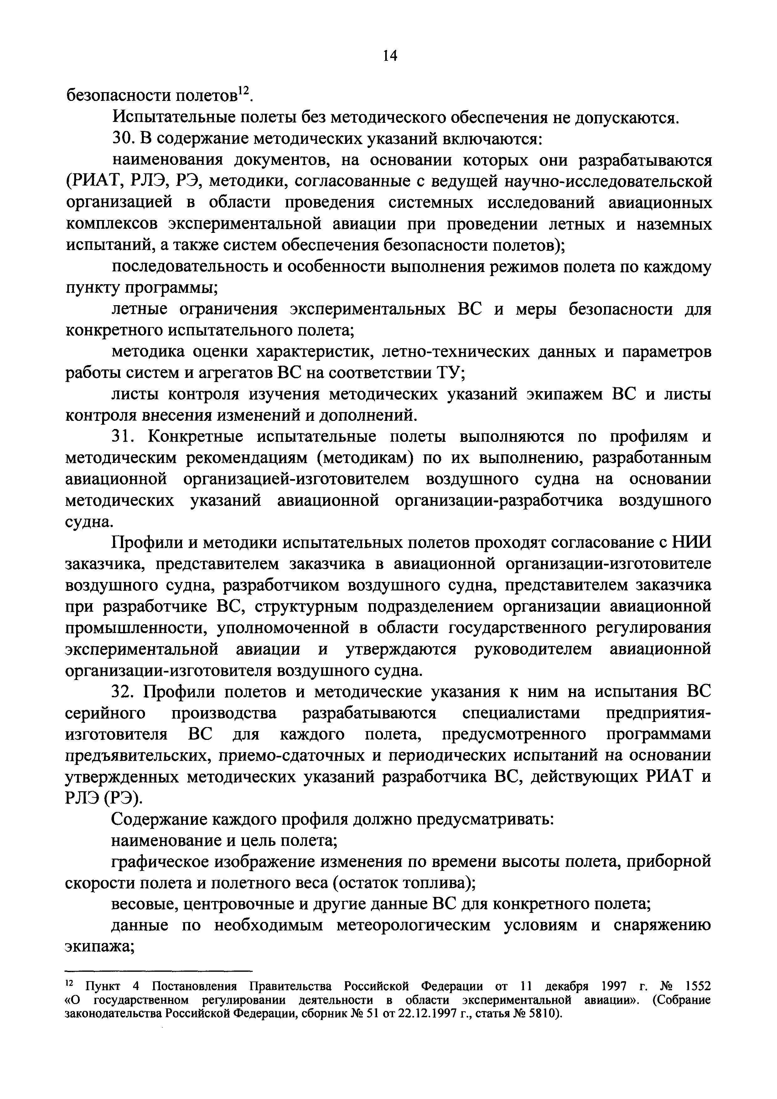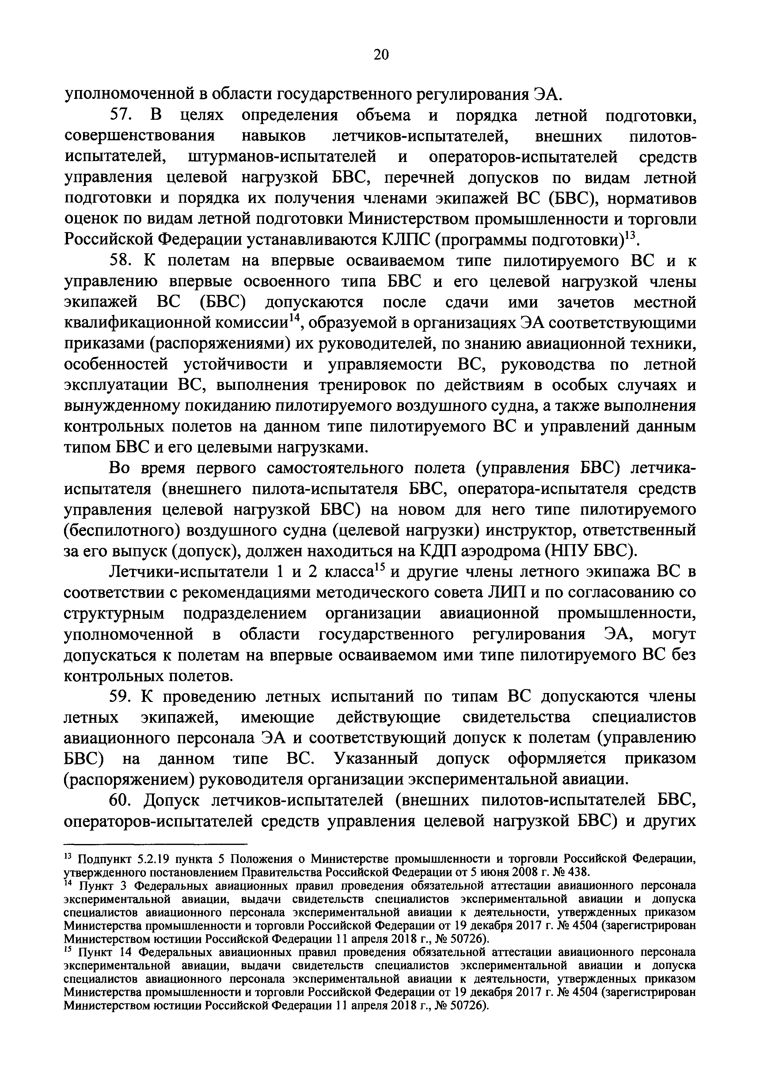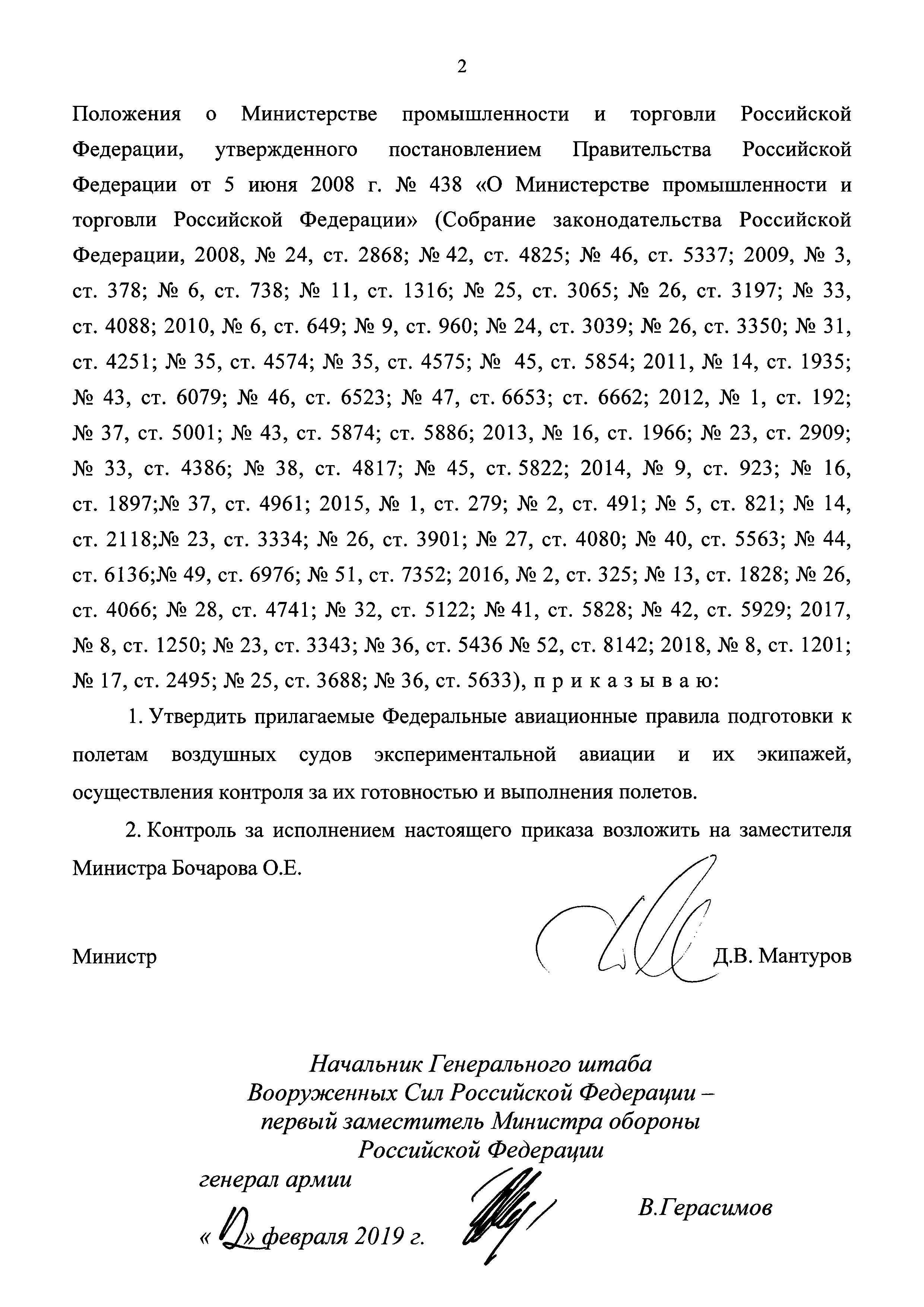 | Область применения: | Федеральные авиационные правила подготовки к полетам воздушных судов экспериментальной авиации и их экипажей, осуществления контроля за их готовностью и выполнения полетов устанавливают порядок подготовки к полету экспериментального воздушного судна и его экипажа, порядок осуществления контроля за их готовностью и порядок выполнения полетов в организациях экспериментальной авиации |