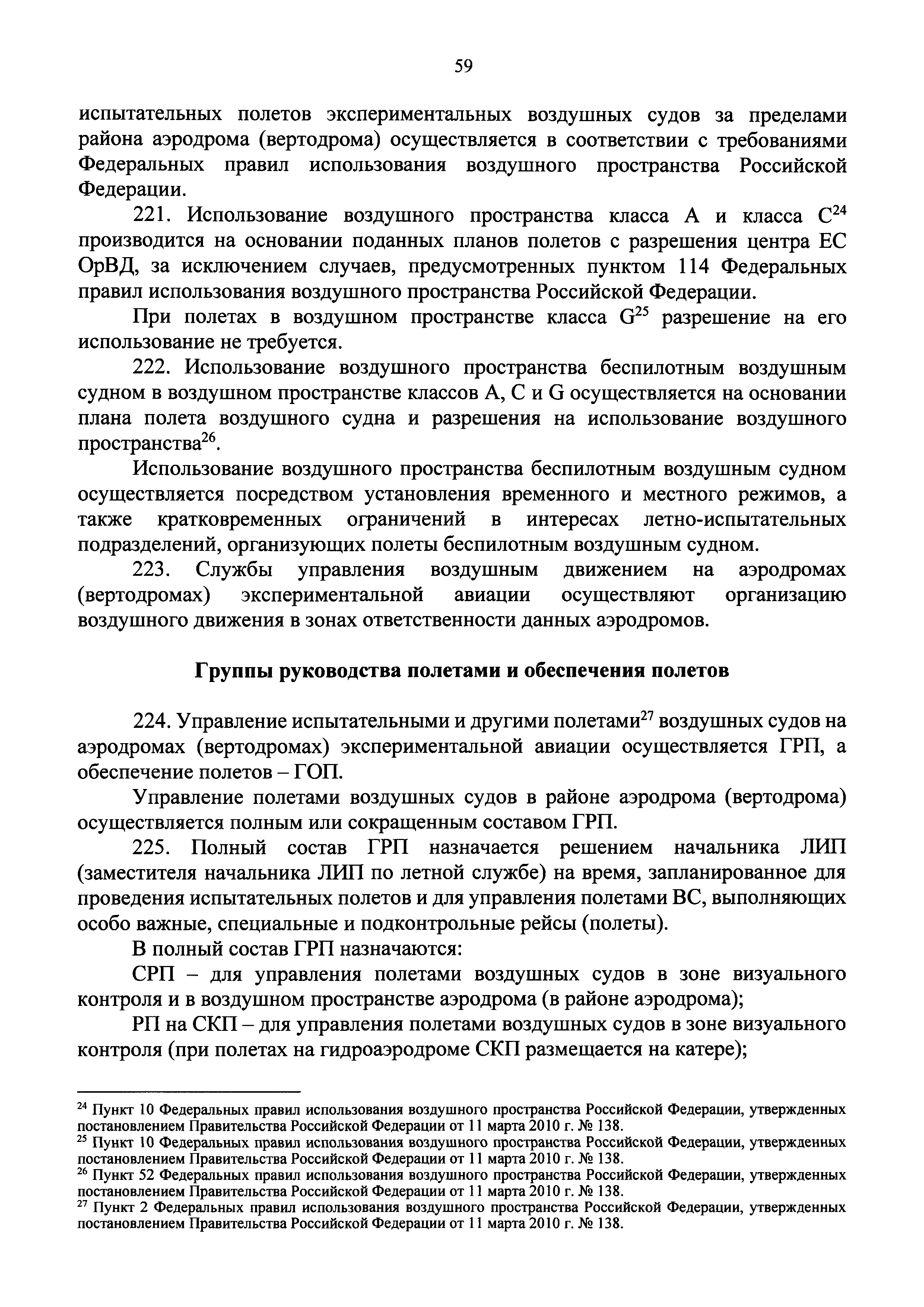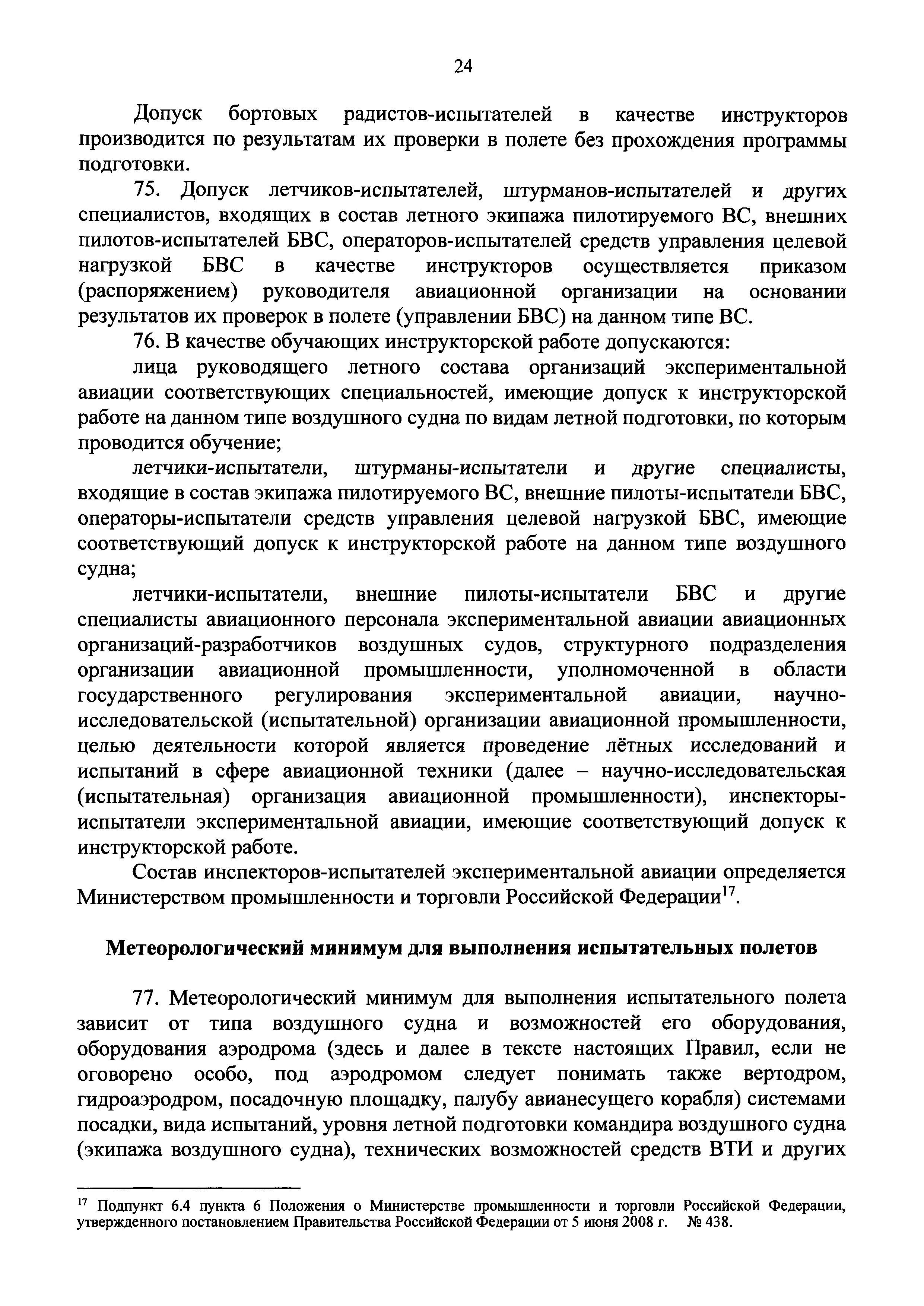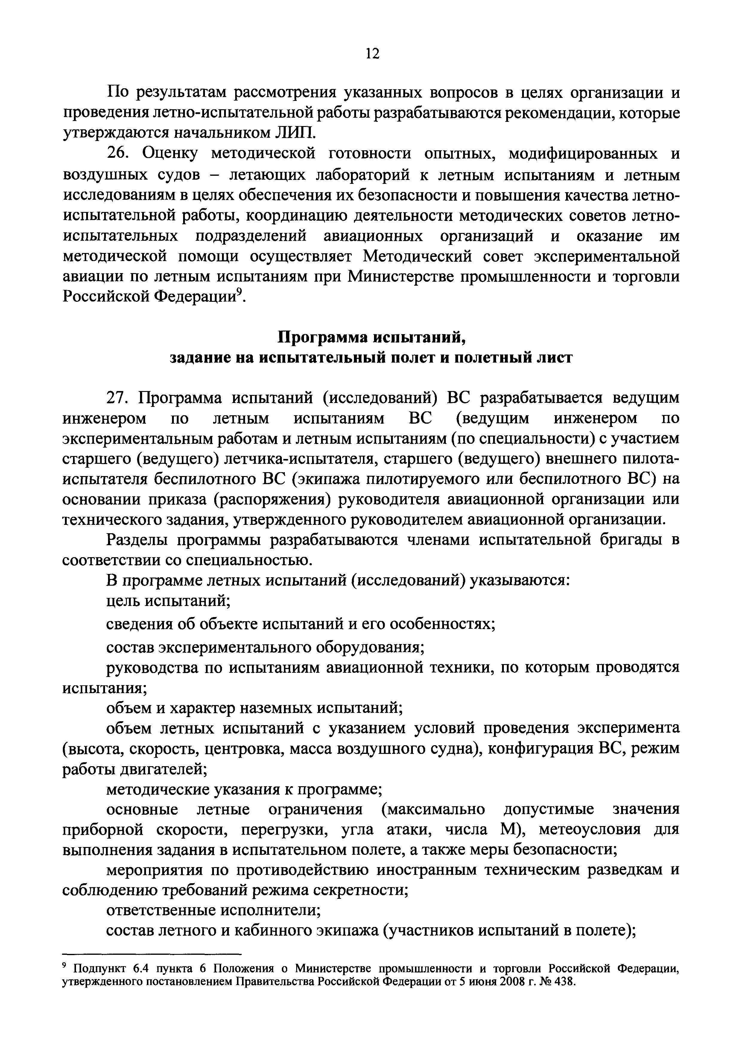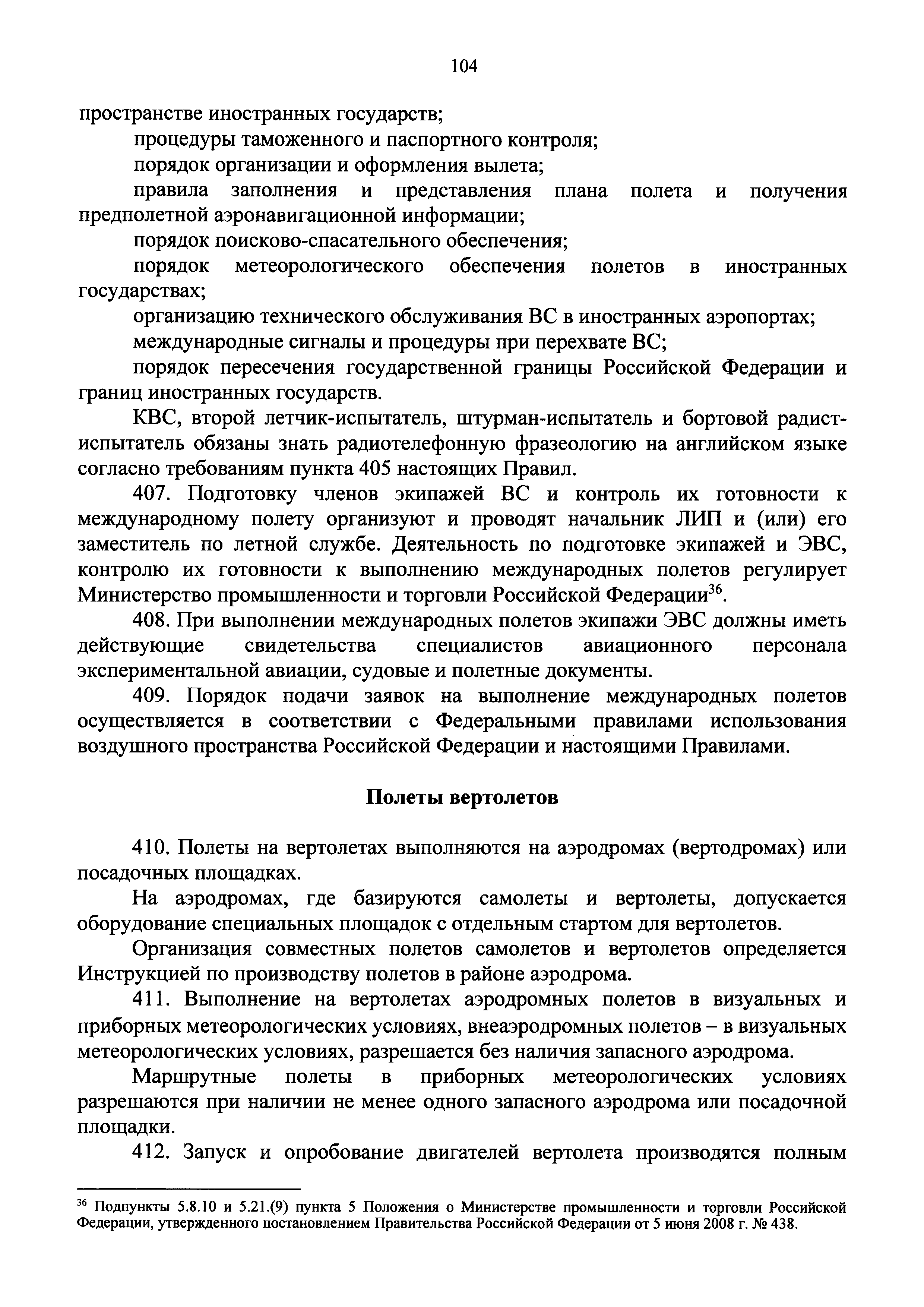| Область применения: | Федеральные авиационные правила подготовки к полетам воздушных судов экспериментальной авиации и их экипажей, осуществления контроля за их готовностью и выполнения полетов устанавливают порядок подготовки к полету экспериментального воздушного судна и его экипажа, порядок осуществления контроля за их готовностью и порядок выполнения полетов в организациях экспериментальной авиации |