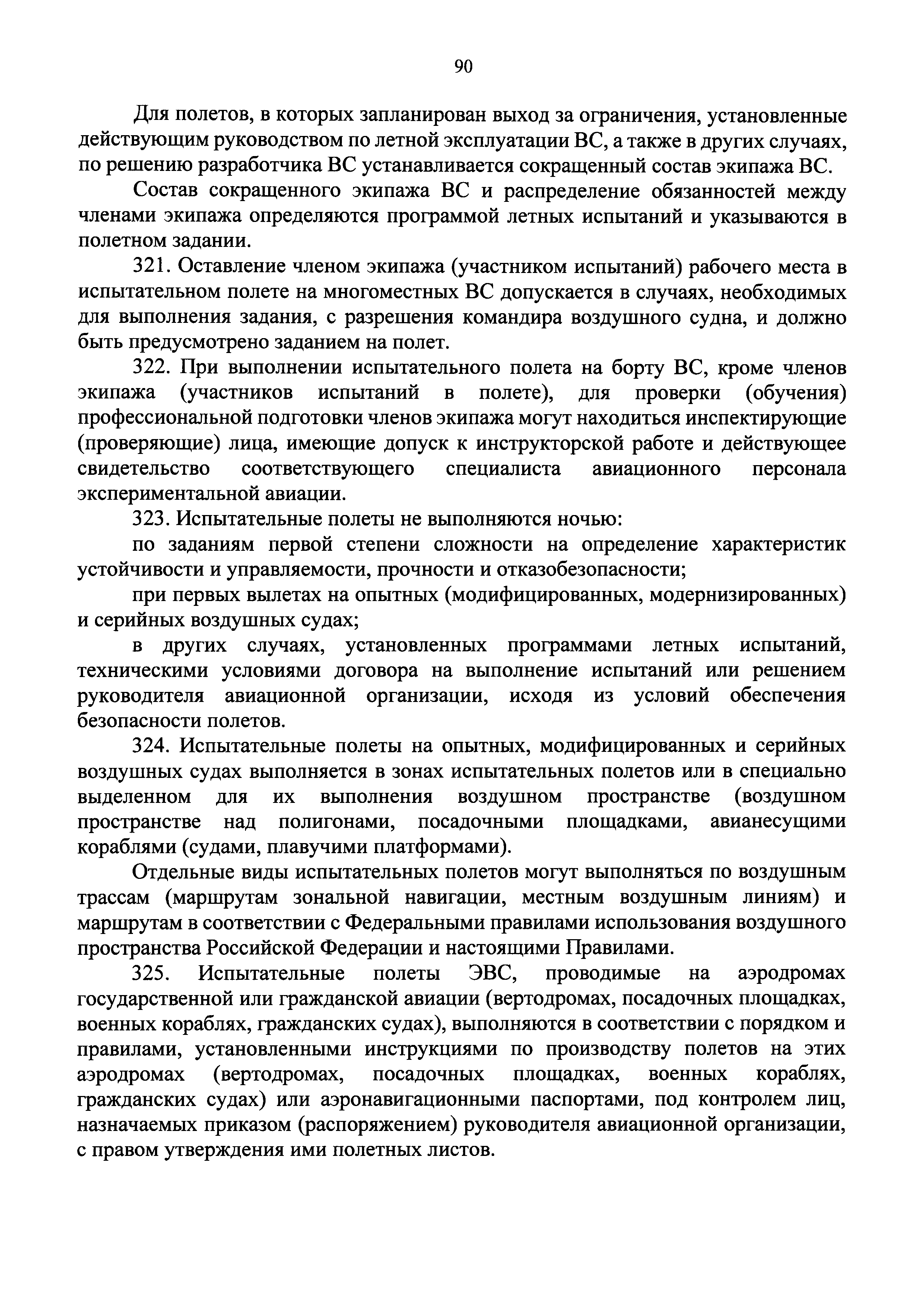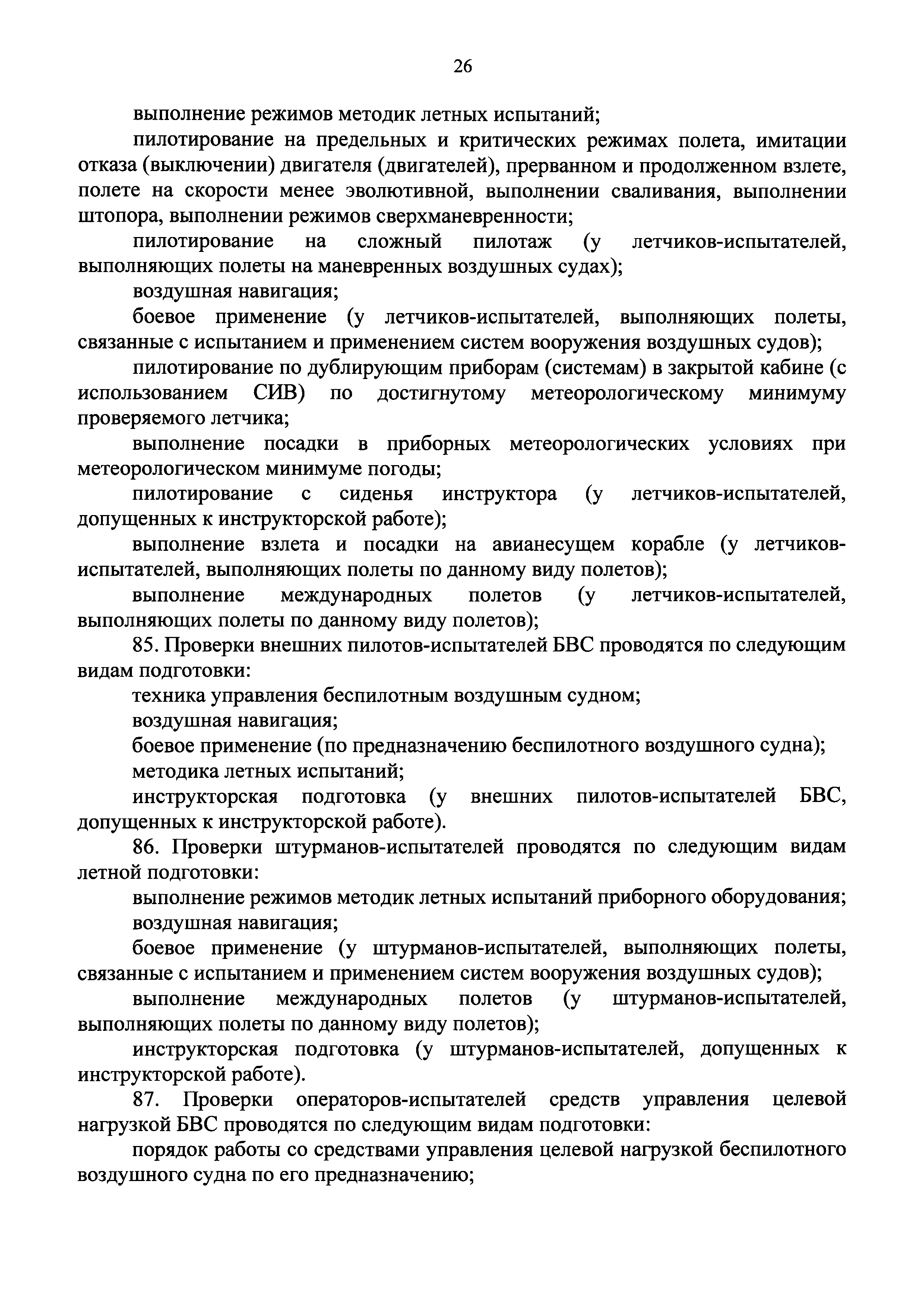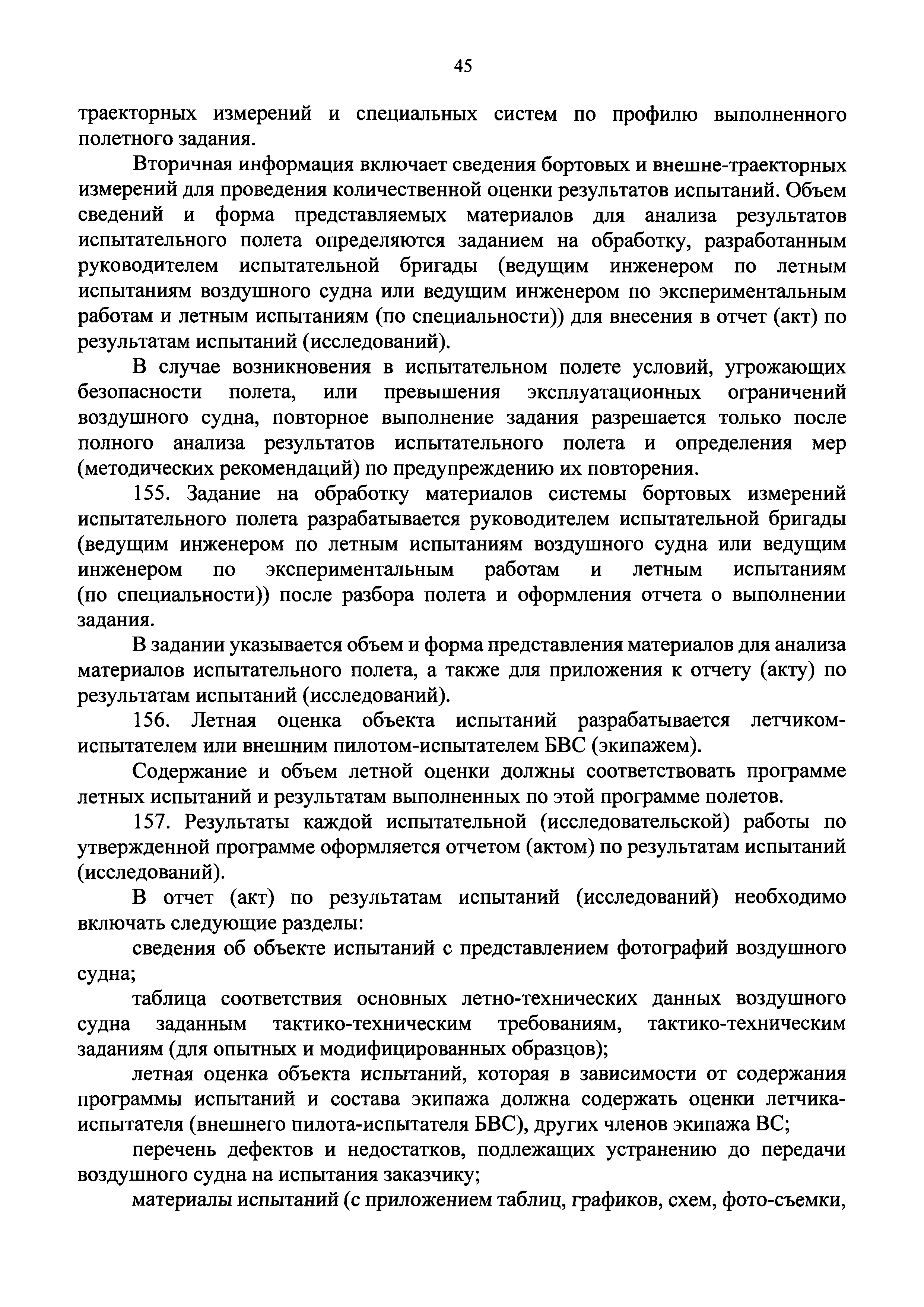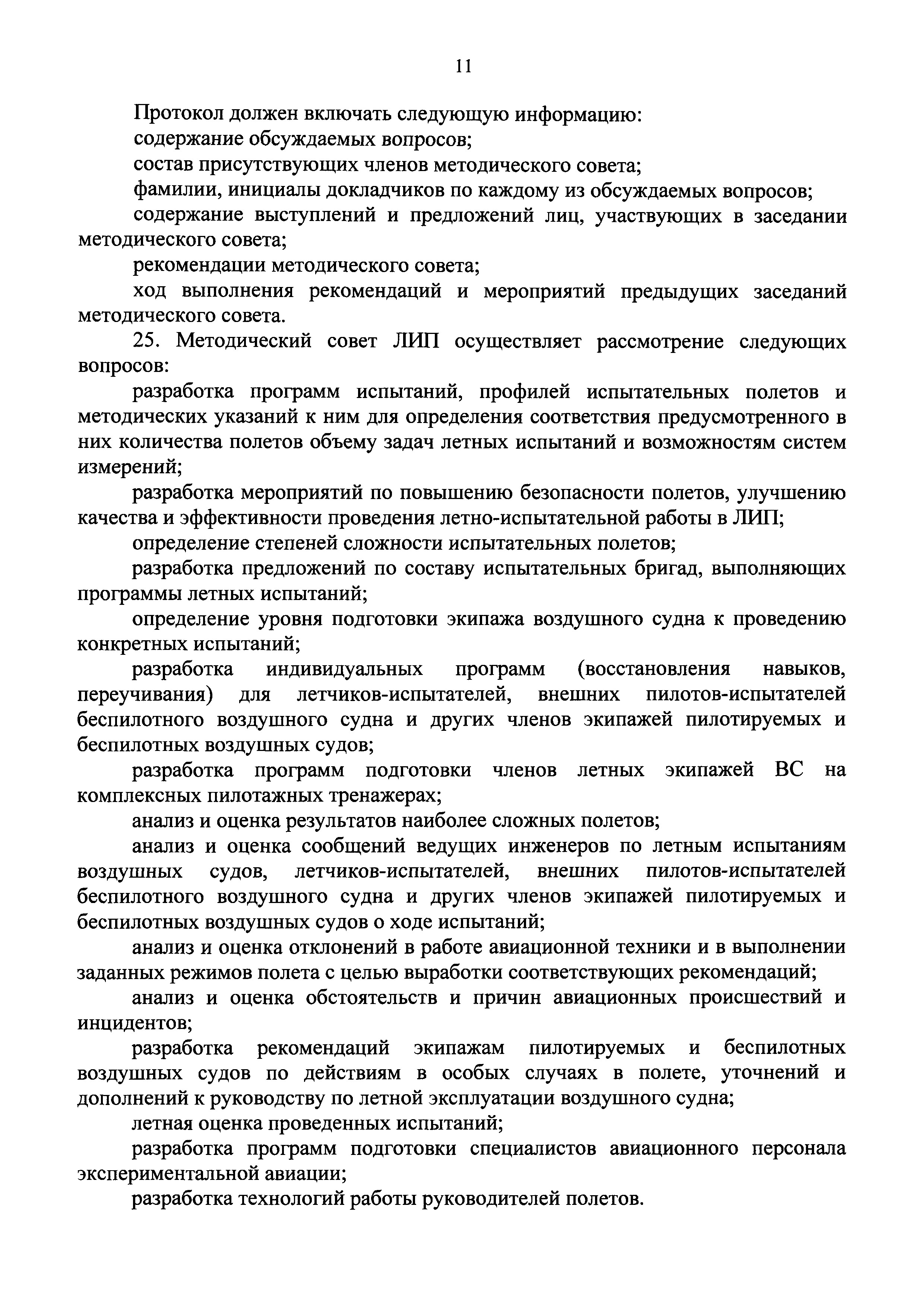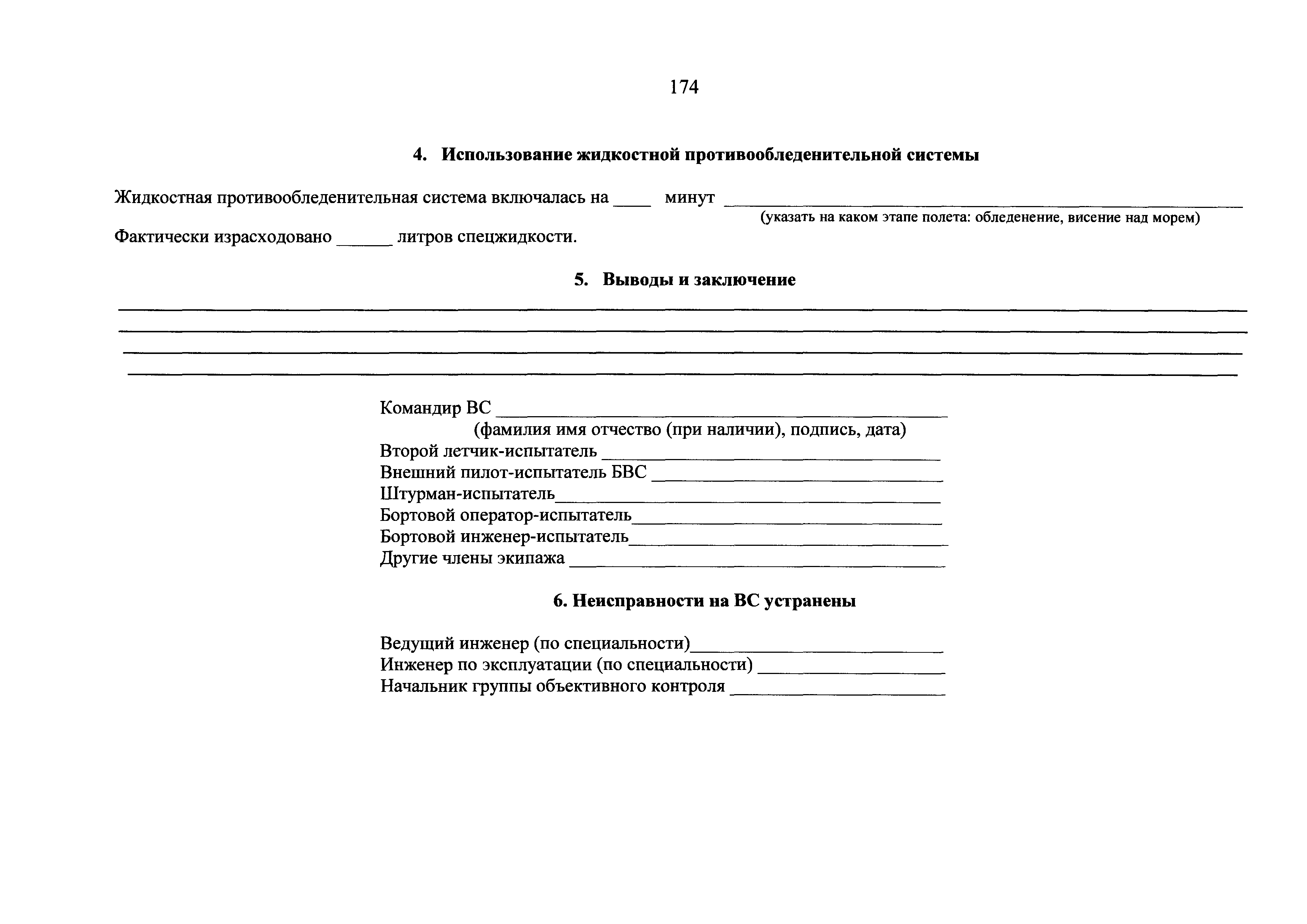 | Оглавление: | I. Общие положения II. Подготовка экипажей к полетам, порядок осуществления контроля за их готовностью к полетам III. Подготовка экспериментальных воздушных судов к полетам и порядок осуществления контроля за их готовностью к полетам IV. Порядок управления полетами V. Порядок выполнения полетов экспериментальных воздушных судов и их экипажей VI. Порядок оформления и ведения документации по летно-испытательной работе в летно-испытательных подразделениях организаций экспериментальной авиации Приложение № 1. Перечень сокращенных наименований и обозначений Приложение № 2. Плановая таблица полетов Приложение № 3. Условные знаки для оформления плановых таблиц полетов и других документов Приложение № 4. Максимальные перерывы в выполнении полетов (в месяцах) Приложение № 5. Условия, при которых полет выполняется по правилам визуальных полетов (ПВП) Приложение № 6. Максимальные значения параметров метеорологических элементов, полеты при которых считаются выполненными в приборных метеорологических условиях (ПМУ) и заходы на посадку при метеорологическом минимуме погоды Приложение № 7. Сигналы (команды), подаваемые эволюциями самолета при управлении группой Приложение № 8. Порядок передачи сигнала и сообщения о бедствии Приложение № 9. Сигналы (команды), подаваемые экипажам воздушных судов при отсутствии радиосвязи Приложение № 10. Журнал старшего руководителя полетов Приложение № 11. Журнал диспетчерских разрешений и решений командиров воздушных судов на вылет Приложение № 12. План работы летно-испытательного подразделения Приложение № 13. План-график тренировок членов экипажей воздушных судов в технике пилотирования (управления БВС), воздушной навигации и боевом применении Приложение № 14. План-график проверок членов экипажей воздушных судов в технике пилотирования (управления БВС), воздушной навигации и боевом применении, отпусков и прохождения врачебно-летной экспертизы Приложение № 15. План технической учебы специалистов авиационного персонала летно-испытательного подразделения Приложение № 16. Журнал технической учебы Приложение № 17. Журнал учета проведения предварительной, предполетной подготовок экипажей к полетам и разбора полетов Приложение № 18. Журнал подготовки экспериментального воздушного судна к испытательным и другим видам полетов Приложение № 19. Бортовая карточка на перелет экспериментального ВС Приложение № 20. План работы методического совета ЛИП Приложение № 21. Задание на испытательный полет Приложение № 22. Полетный лист для организаций-разработчиков ВС, научно-исследовательских (испытательных) организациях авиационной промышленности Приложение № 23. Полетный лист для организаций-изготовителей ВС (АРЗ) Приложение № 24. Ведомость замечаний, выявленных экипажем в полете |