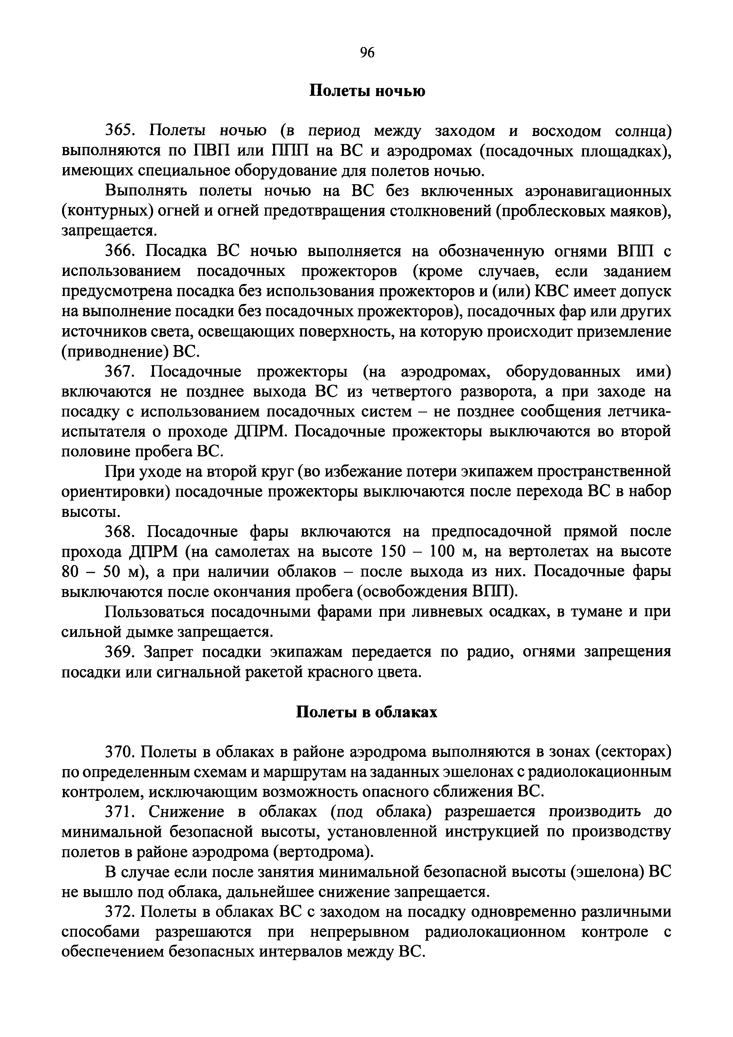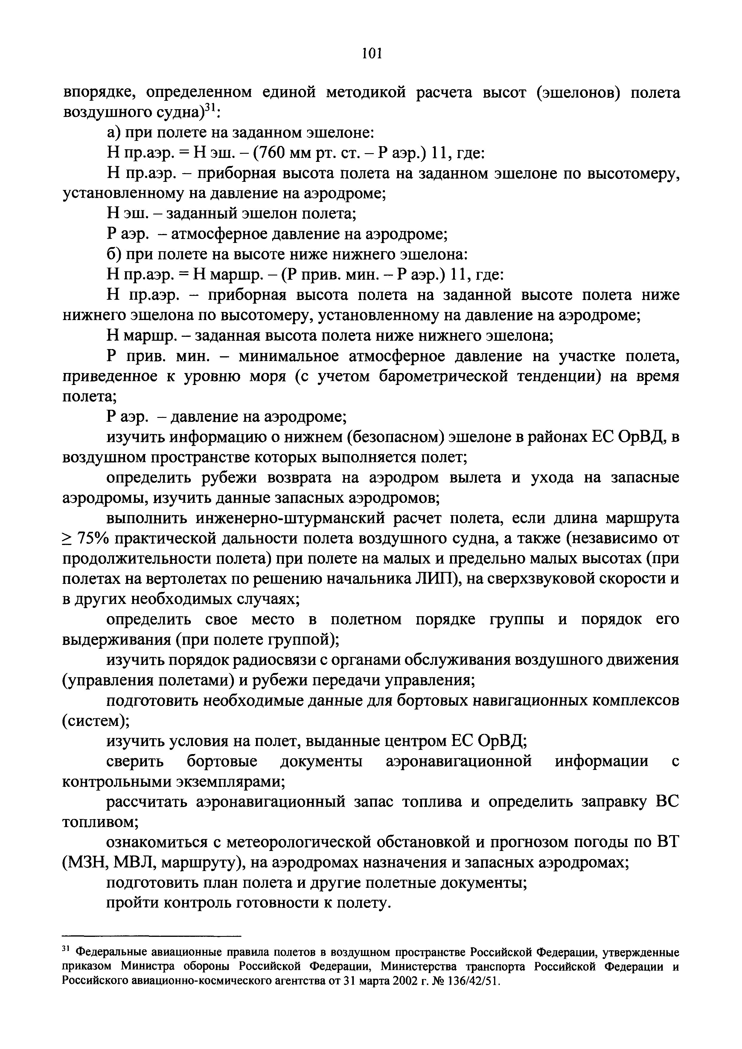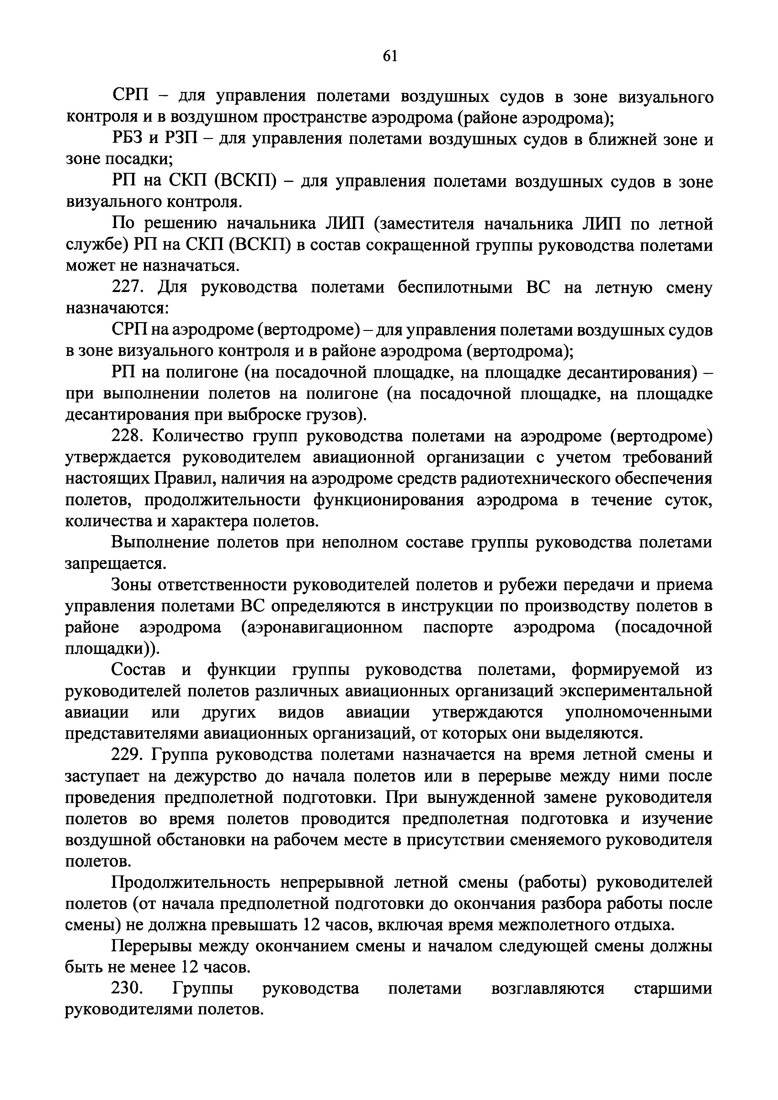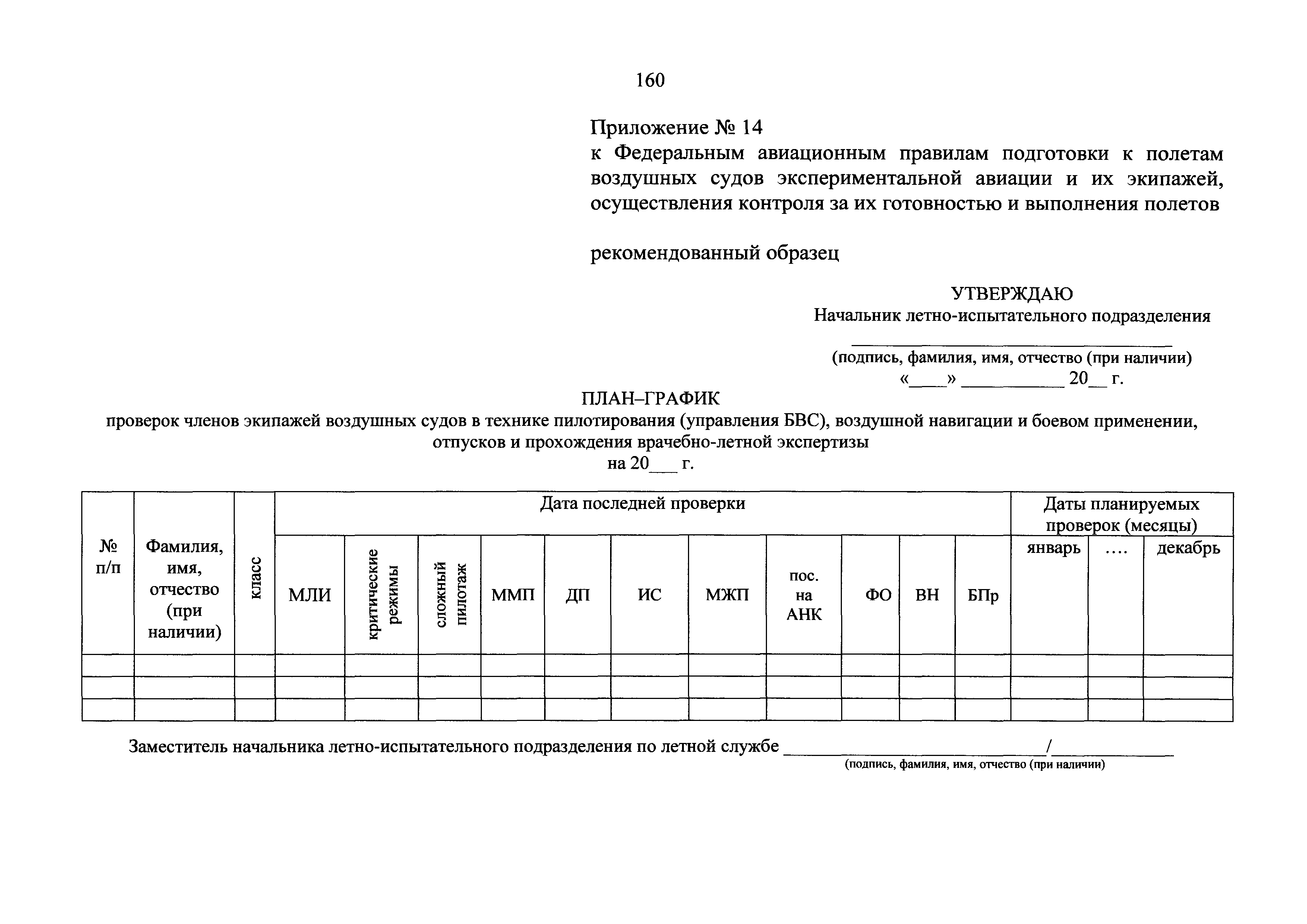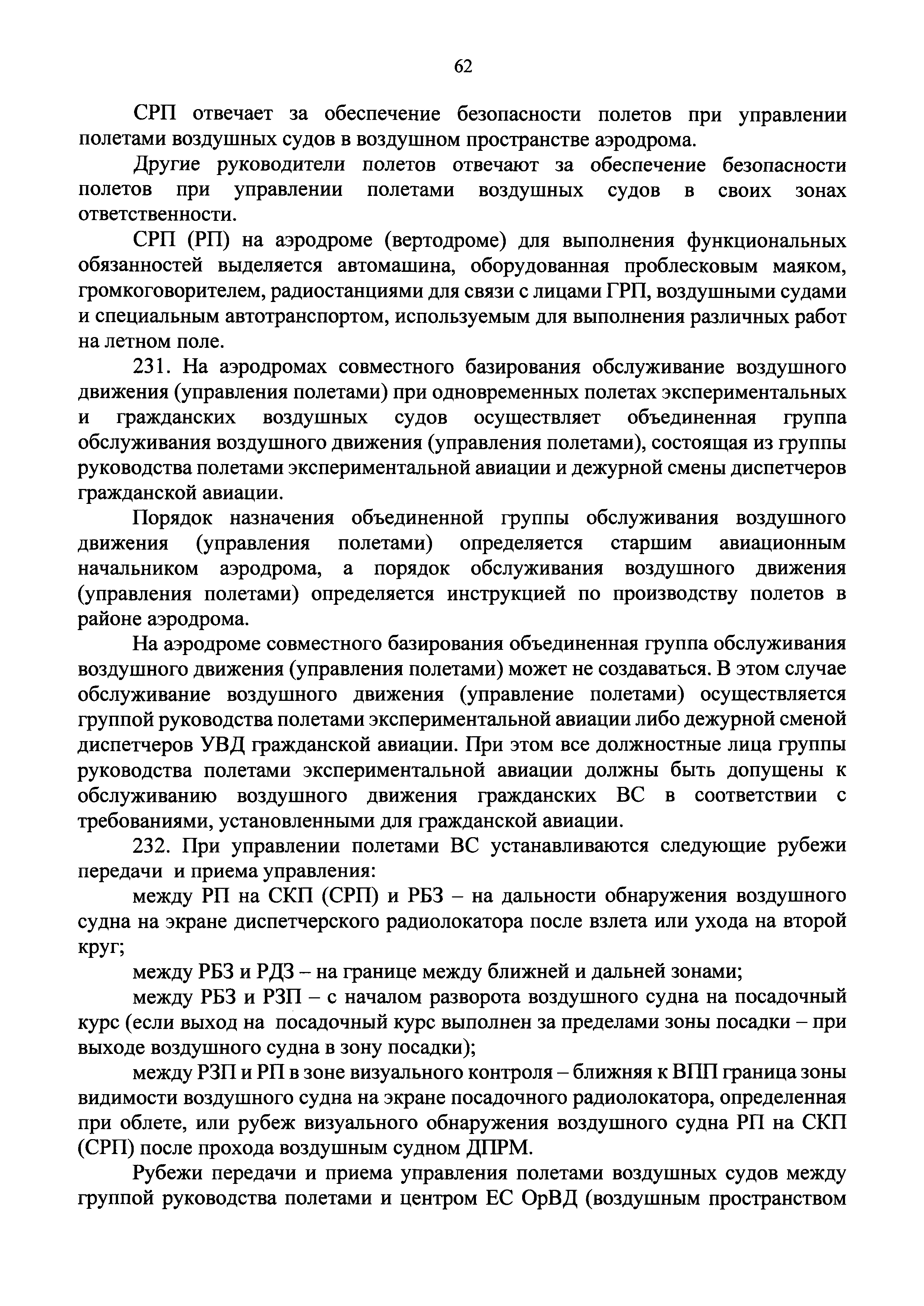 | Оглавление: | I. Общие положения II. Подготовка экипажей к полетам, порядок осуществления контроля за их готовностью к полетам III. Подготовка экспериментальных воздушных судов к полетам и порядок осуществления контроля за их готовностью к полетам IV. Порядок управления полетами V. Порядок выполнения полетов экспериментальных воздушных судов и их экипажей VI. Порядок оформления и ведения документации по летно-испытательной работе в летно-испытательных подразделениях организаций экспериментальной авиации Приложение № 1. Перечень сокращенных наименований и обозначений Приложение № 2. Плановая таблица полетов Приложение № 3. Условные знаки для оформления плановых таблиц полетов и других документов Приложение № 4. Максимальные перерывы в выполнении полетов (в месяцах) Приложение № 5. Условия, при которых полет выполняется по правилам визуальных полетов (ПВП) Приложение № 6. Максимальные значения параметров метеорологических элементов, полеты при которых считаются выполненными в приборных метеорологических условиях (ПМУ) и заходы на посадку при метеорологическом минимуме погоды Приложение № 7. Сигналы (команды), подаваемые эволюциями самолета при управлении группой Приложение № 8. Порядок передачи сигнала и сообщения о бедствии Приложение № 9. Сигналы (команды), подаваемые экипажам воздушных судов при отсутствии радиосвязи Приложение № 10. Журнал старшего руководителя полетов Приложение № 11. Журнал диспетчерских разрешений и решений командиров воздушных судов на вылет Приложение № 12. План работы летно-испытательного подразделения Приложение № 13. План-график тренировок членов экипажей воздушных судов в технике пилотирования (управления БВС), воздушной навигации и боевом применении Приложение № 14. План-график проверок членов экипажей воздушных судов в технике пилотирования (управления БВС), воздушной навигации и боевом применении, отпусков и прохождения врачебно-летной экспертизы Приложение № 15. План технической учебы специалистов авиационного персонала летно-испытательного подразделения Приложение № 16. Журнал технической учебы Приложение № 17. Журнал учета проведения предварительной, предполетной подготовок экипажей к полетам и разбора полетов Приложение № 18. Журнал подготовки экспериментального воздушного судна к испытательным и другим видам полетов Приложение № 19. Бортовая карточка на перелет экспериментального ВС Приложение № 20. План работы методического совета ЛИП Приложение № 21. Задание на испытательный полет Приложение № 22. Полетный лист для организаций-разработчиков ВС, научно-исследовательских (испытательных) организациях авиационной промышленности Приложение № 23. Полетный лист для организаций-изготовителей ВС (АРЗ) Приложение № 24. Ведомость замечаний, выявленных экипажем в полете |