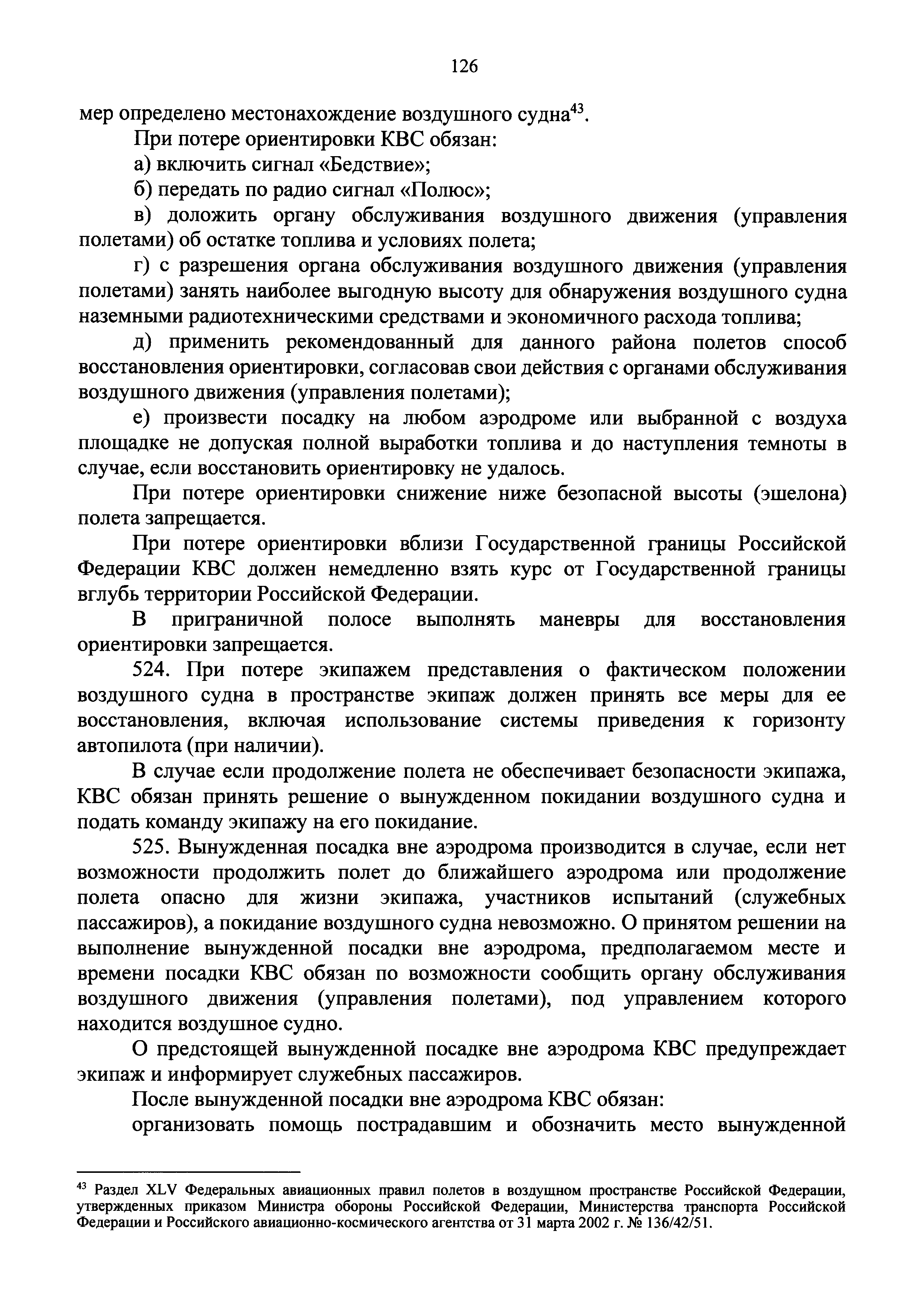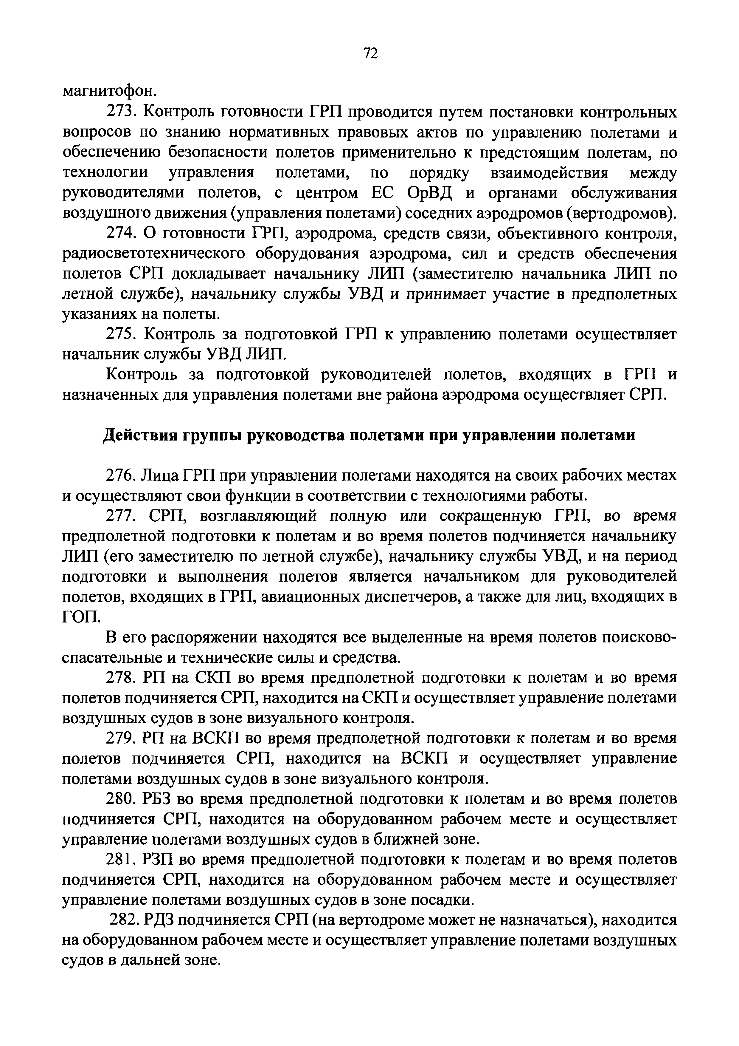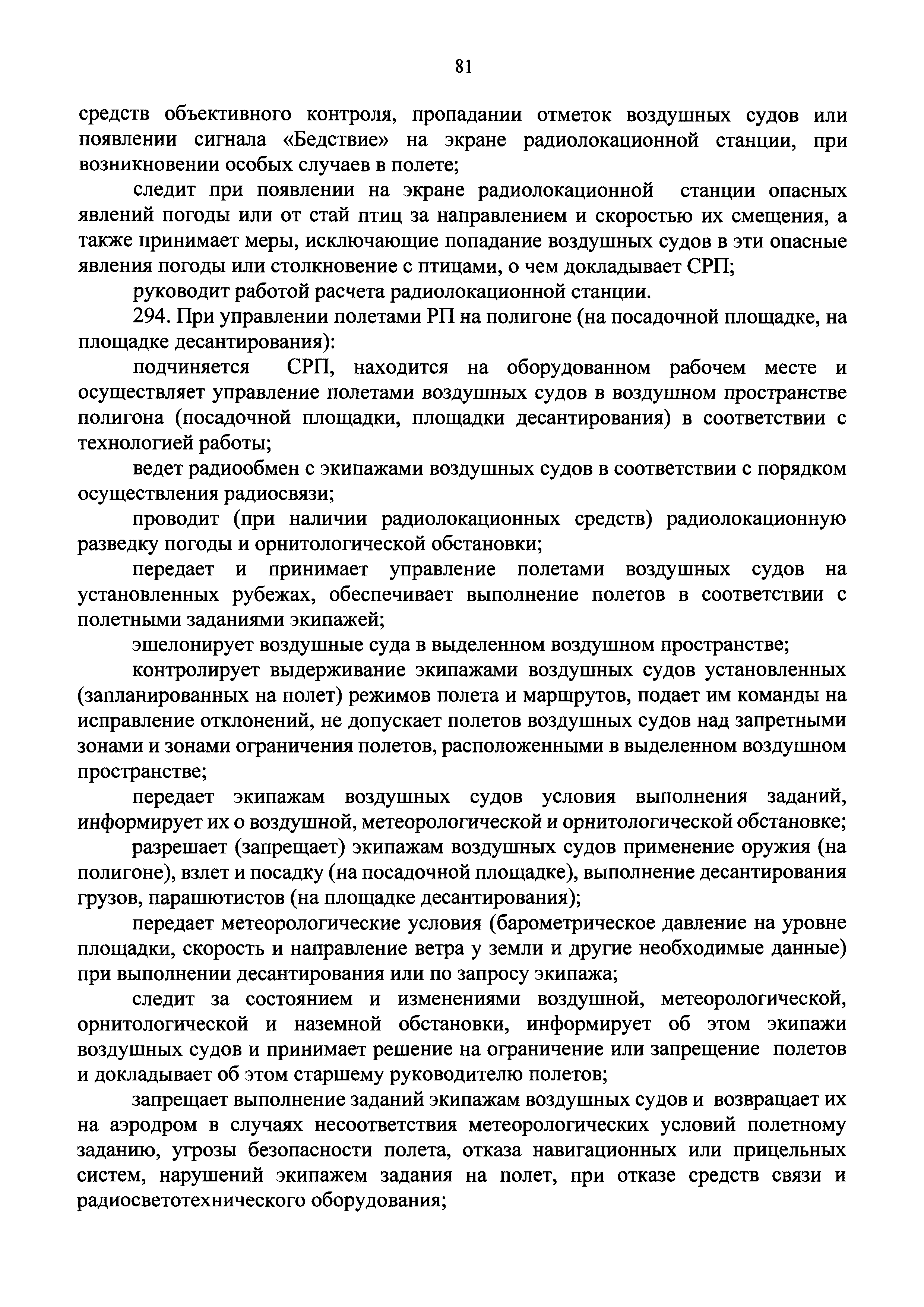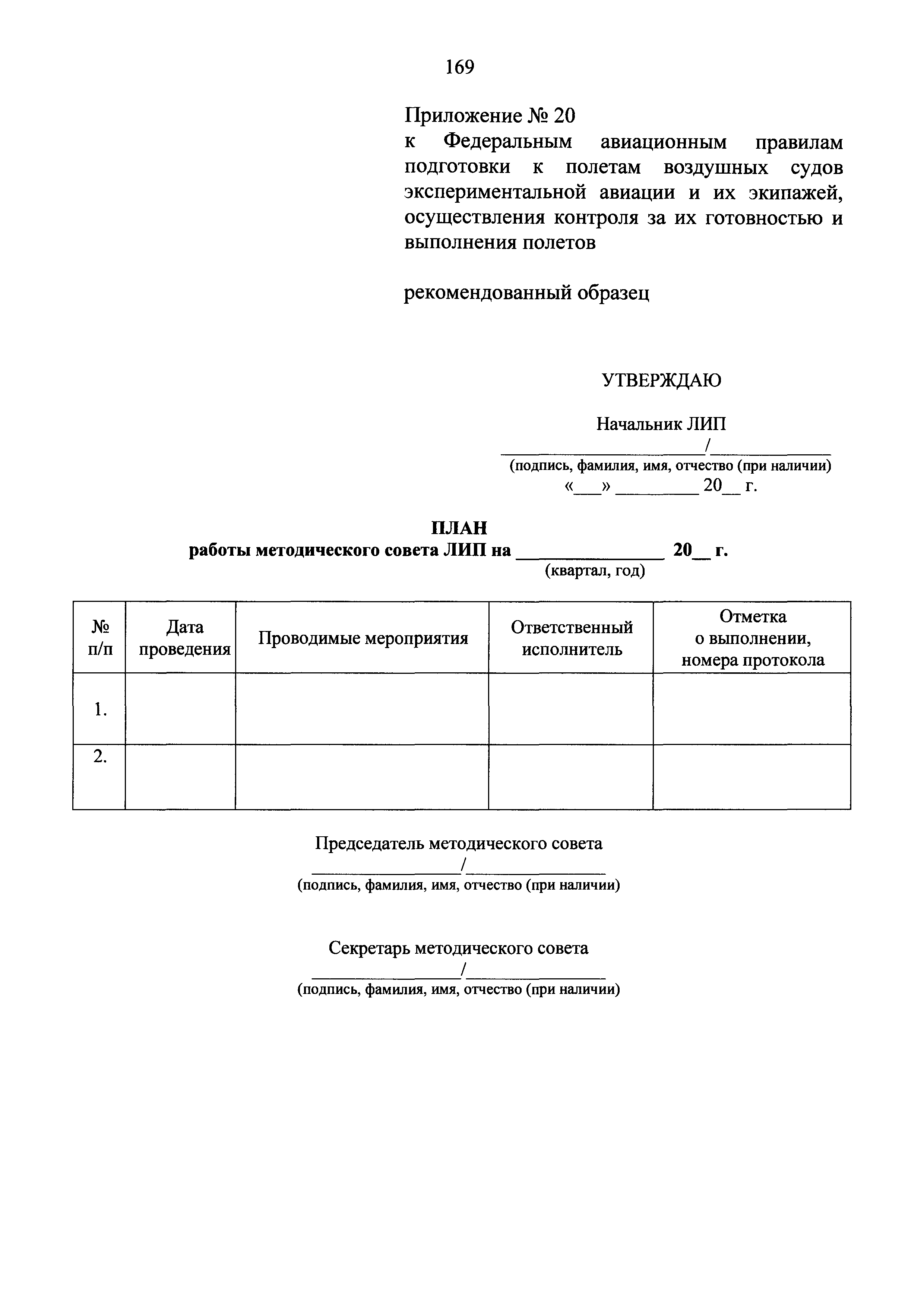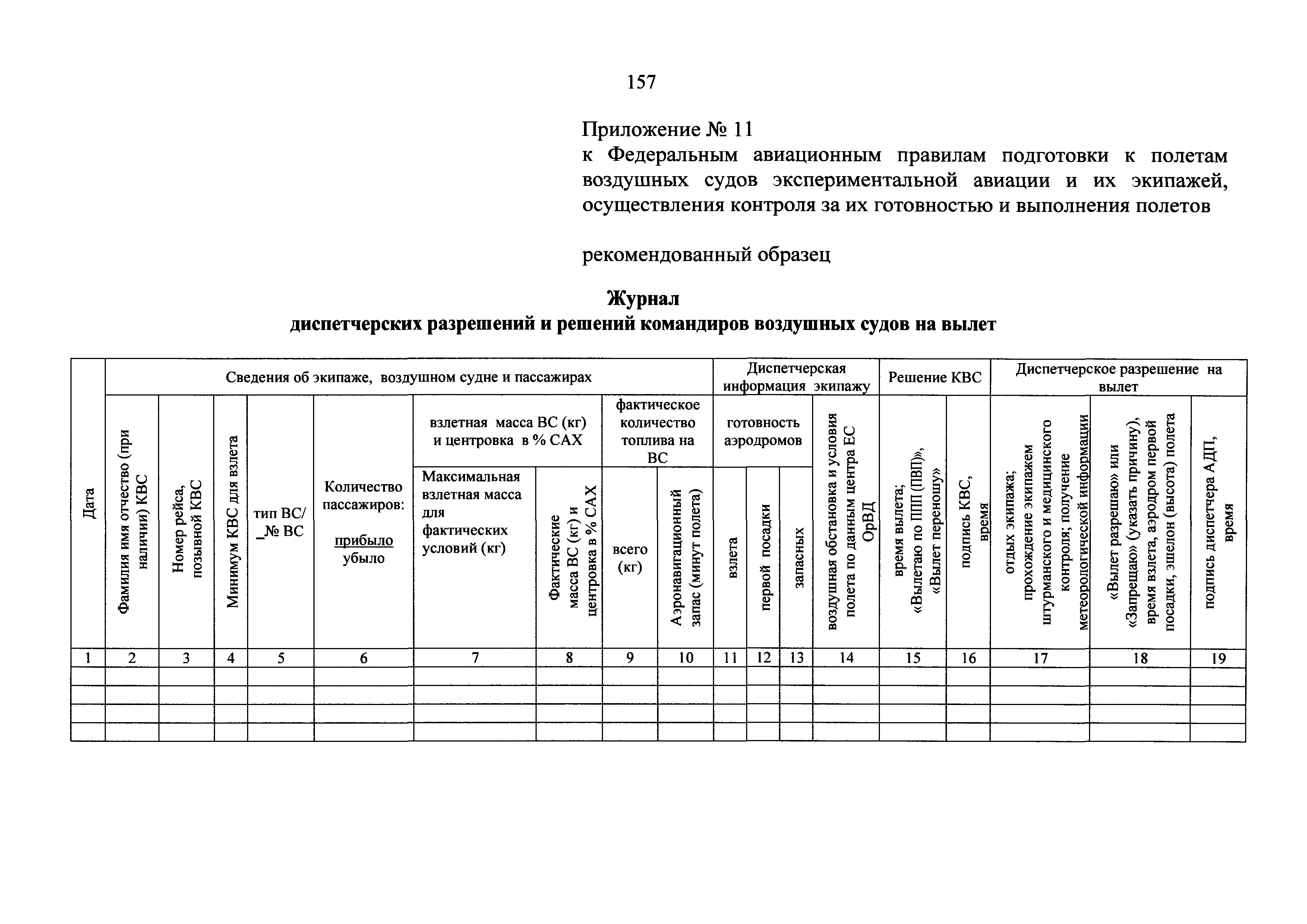 | Оглавление: | I. Общие положения II. Подготовка экипажей к полетам, порядок осуществления контроля за их готовностью к полетам III. Подготовка экспериментальных воздушных судов к полетам и порядок осуществления контроля за их готовностью к полетам IV. Порядок управления полетами V. Порядок выполнения полетов экспериментальных воздушных судов и их экипажей VI. Порядок оформления и ведения документации по летно-испытательной работе в летно-испытательных подразделениях организаций экспериментальной авиации Приложение № 1. Перечень сокращенных наименований и обозначений Приложение № 2. Плановая таблица полетов Приложение № 3. Условные знаки для оформления плановых таблиц полетов и других документов Приложение № 4. Максимальные перерывы в выполнении полетов (в месяцах) Приложение № 5. Условия, при которых полет выполняется по правилам визуальных полетов (ПВП) Приложение № 6. Максимальные значения параметров метеорологических элементов, полеты при которых считаются выполненными в приборных метеорологических условиях (ПМУ) и заходы на посадку при метеорологическом минимуме погоды Приложение № 7. Сигналы (команды), подаваемые эволюциями самолета при управлении группой Приложение № 8. Порядок передачи сигнала и сообщения о бедствии Приложение № 9. Сигналы (команды), подаваемые экипажам воздушных судов при отсутствии радиосвязи Приложение № 10. Журнал старшего руководителя полетов Приложение № 11. Журнал диспетчерских разрешений и решений командиров воздушных судов на вылет Приложение № 12. План работы летно-испытательного подразделения Приложение № 13. План-график тренировок членов экипажей воздушных судов в технике пилотирования (управления БВС), воздушной навигации и боевом применении Приложение № 14. План-график проверок членов экипажей воздушных судов в технике пилотирования (управления БВС), воздушной навигации и боевом применении, отпусков и прохождения врачебно-летной экспертизы Приложение № 15. План технической учебы специалистов авиационного персонала летно-испытательного подразделения Приложение № 16. Журнал технической учебы Приложение № 17. Журнал учета проведения предварительной, предполетной подготовок экипажей к полетам и разбора полетов Приложение № 18. Журнал подготовки экспериментального воздушного судна к испытательным и другим видам полетов Приложение № 19. Бортовая карточка на перелет экспериментального ВС Приложение № 20. План работы методического совета ЛИП Приложение № 21. Задание на испытательный полет Приложение № 22. Полетный лист для организаций-разработчиков ВС, научно-исследовательских (испытательных) организациях авиационной промышленности Приложение № 23. Полетный лист для организаций-изготовителей ВС (АРЗ) Приложение № 24. Ведомость замечаний, выявленных экипажем в полете |