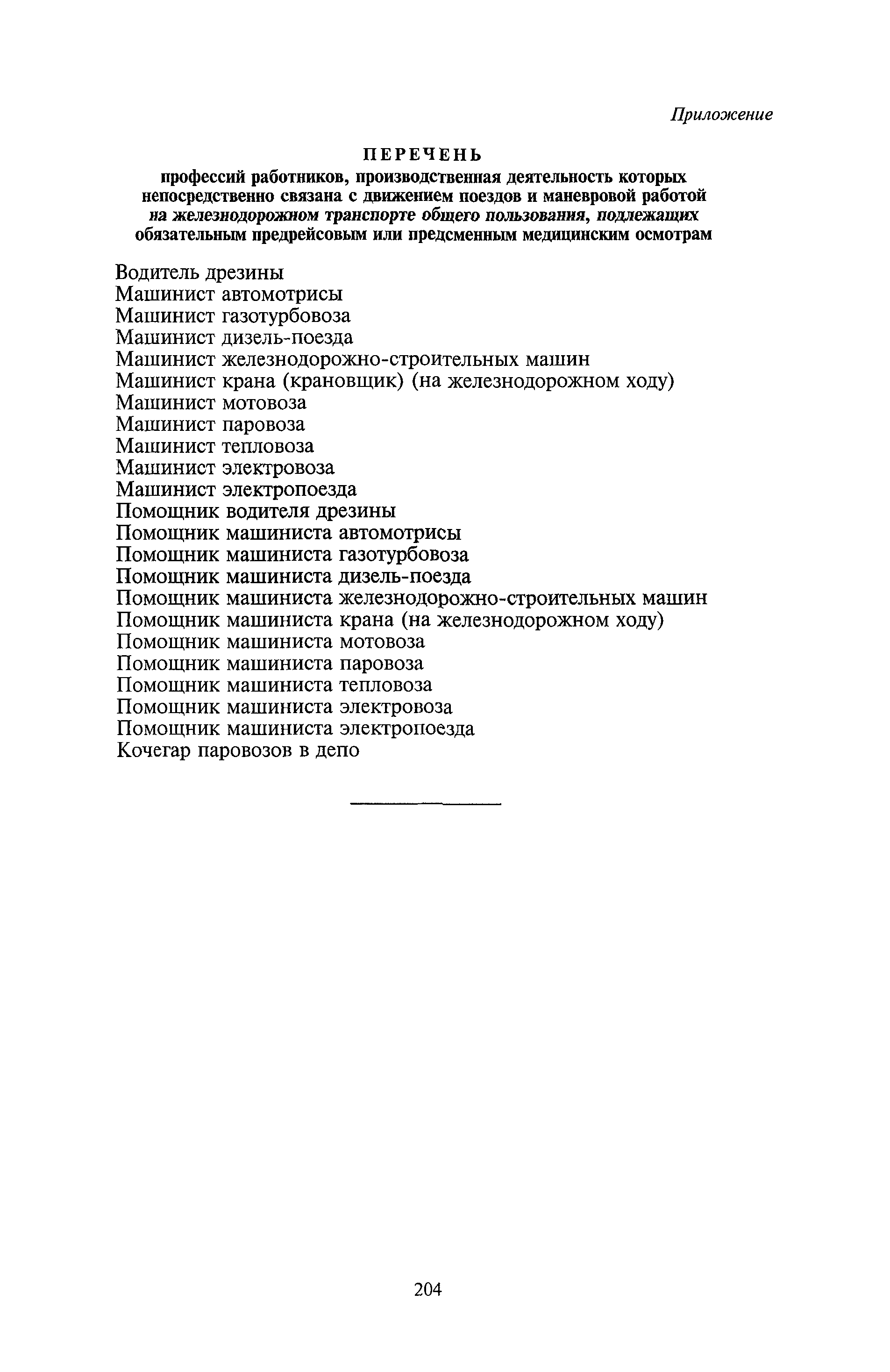 Перечень профессий работников, производственная деятельность которых непосредственно связана с движением поездов и маневровой работой на железнодорожном транспорте общего пользования, подлежащих обязательным предрейсовым или предсменным медицинским осмотрам| Статус: | действует | | Название рус.: | Перечень профессий работников, производственная деятельность которых непосредственно связана с движением поездов и маневровой работой на железнодорожном транспорте общего пользования, подлежащих обязательным предрейсовым или предсменным медицинским осмотрам | | Дата добавления в базу: | 01.02.2020 | | Дата актуализации: | 01.01.2021 | | Дата введения: | 25.05.2007 | | Утверждён: | 28.03.2007 Министерство транспорта Российской Федерации (Russian Federation Ministry of Transportation 36)