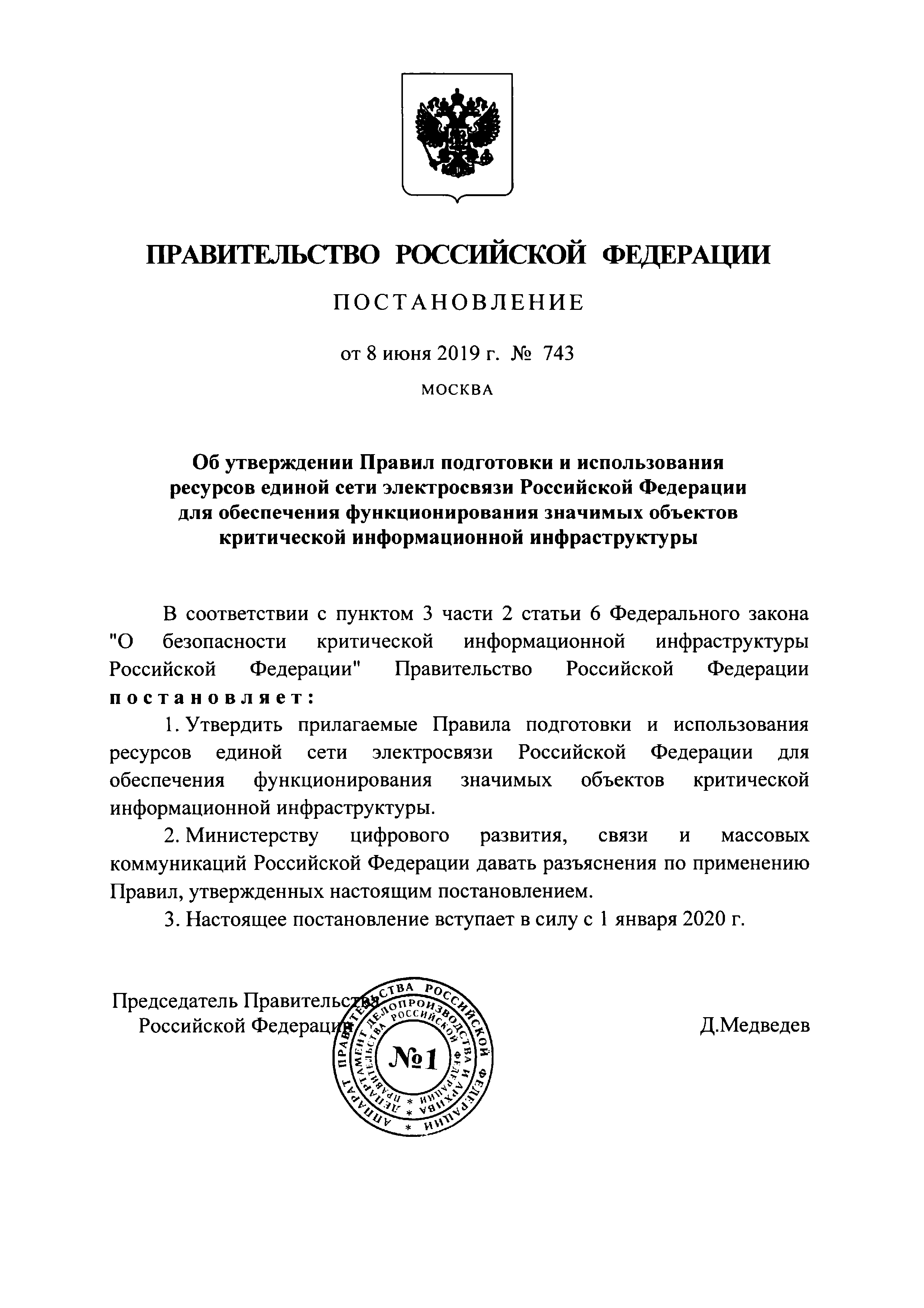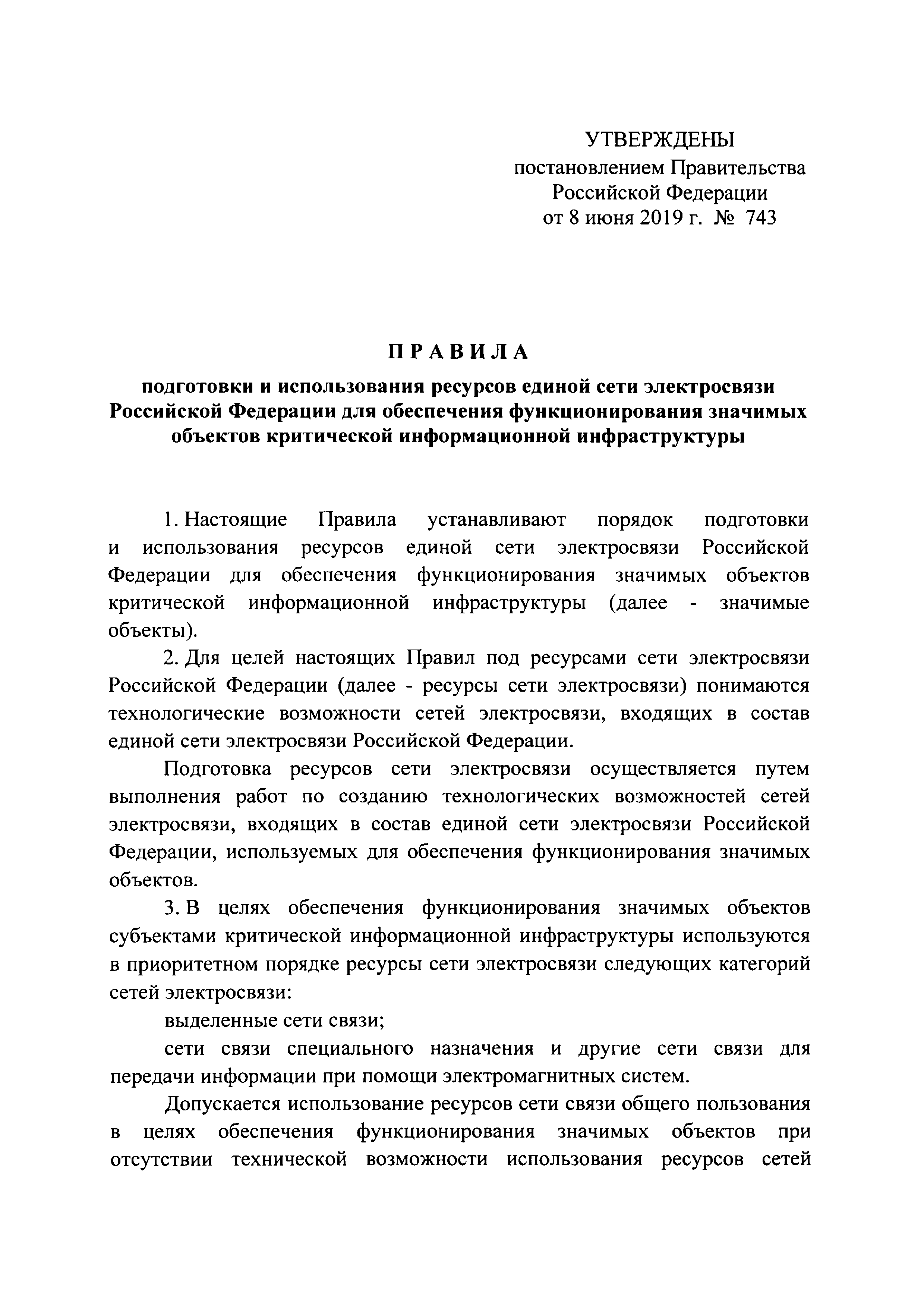 | Утверждён: | 08.06.2019 Правительство Российской Федерации (743)